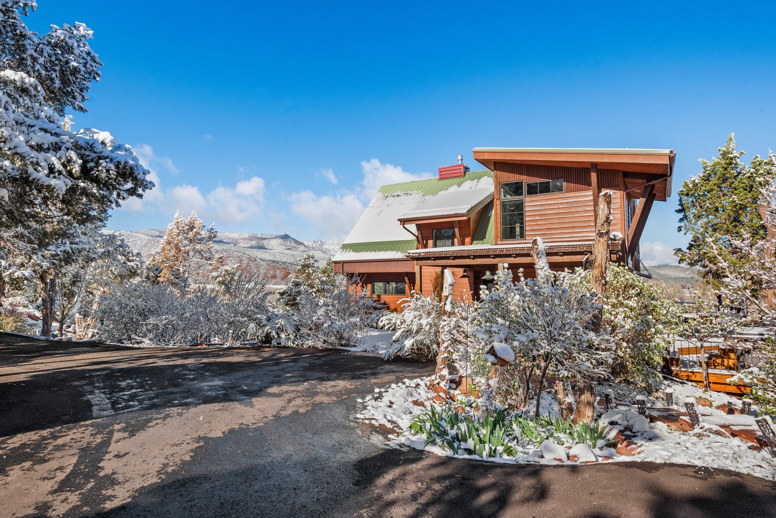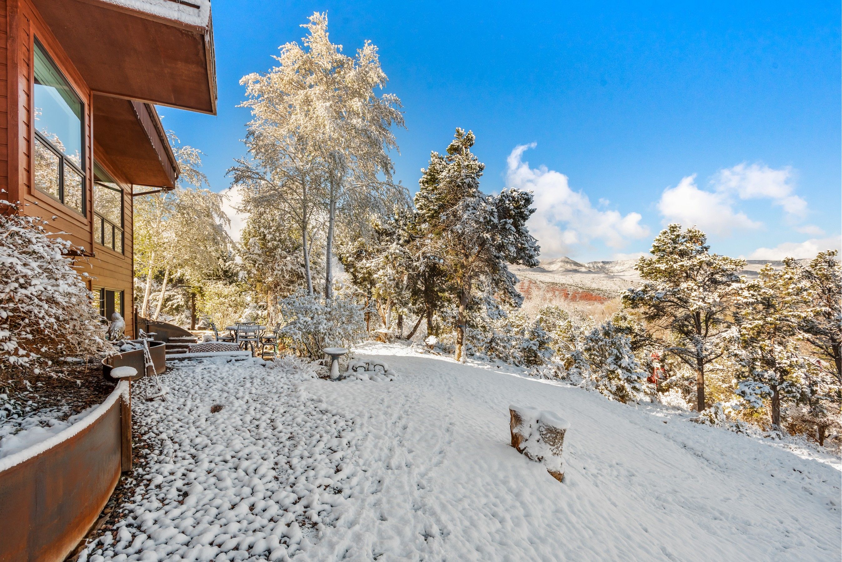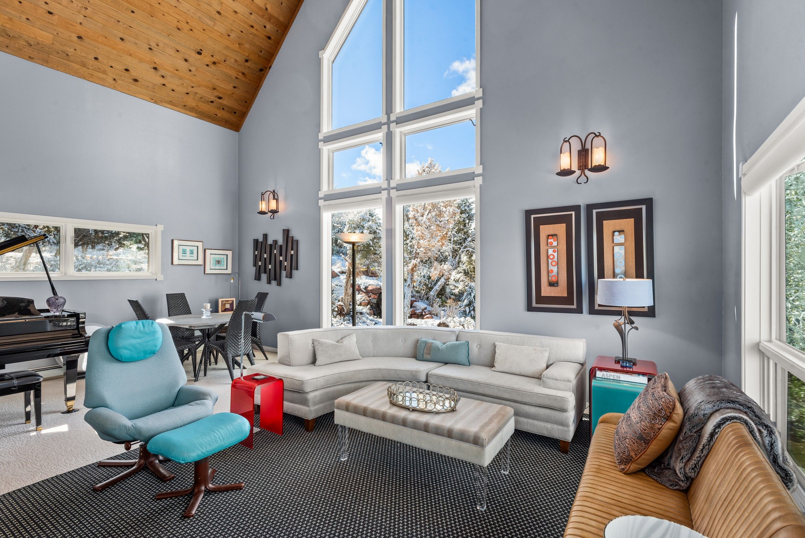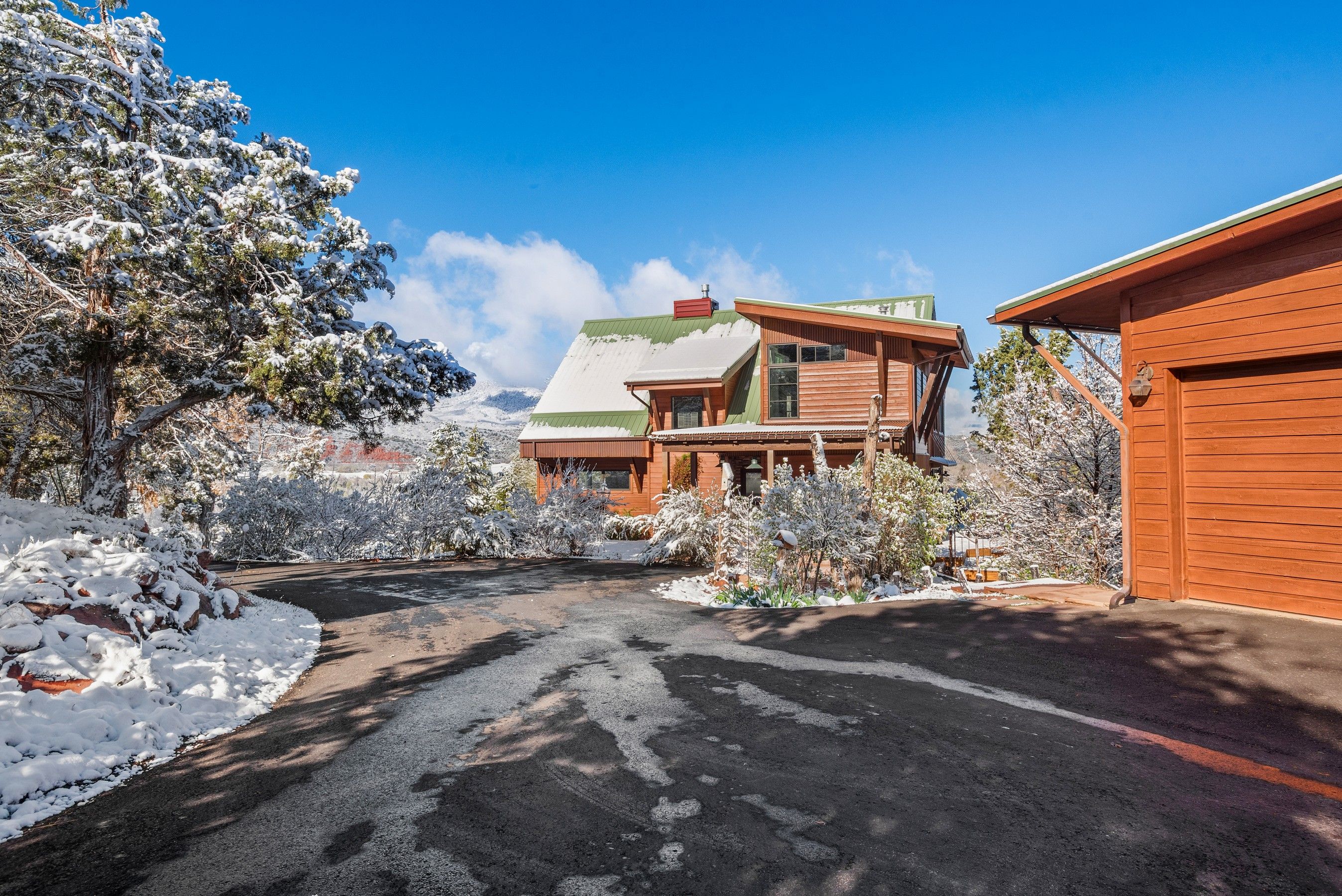 Experience the ultimate blend of privacy and proximity with this exceptional 2.3-acre estate. Nestled in a private setting with breathtaking mountain views, this home nevertheless offers just a 10-minute walk to bus stops, Whole Foods, and the amenities of Willits, including TACAW (The Arts Center at Willits). Access to the ever-popular Rio Grand trail is an easy walk or bike ride. The masterfully-remodeled interior boasts high-end finishes throughout. Expansive south-facing windows bathe the home in abundant sunlight while framing stunning views. Enjoy soaring ceilings and an open, airy floor plan, or move outside onto the expansive deck. Wander through beautifully landscaped gardens, replete with amenities such as a firepit, hot tub, and on-site water feature. A detached, oversized three-car garage ensures plenty of space for vehicles, gear, and mountain toys. It also contains a 2-bedroom apartment for overflow guests, or long-term rental income. In short, 255 Little Pinon Drive is the rarest of properties, offering the seclusion and luxury of a mountain retreat without sacrificing the convenience of town living.