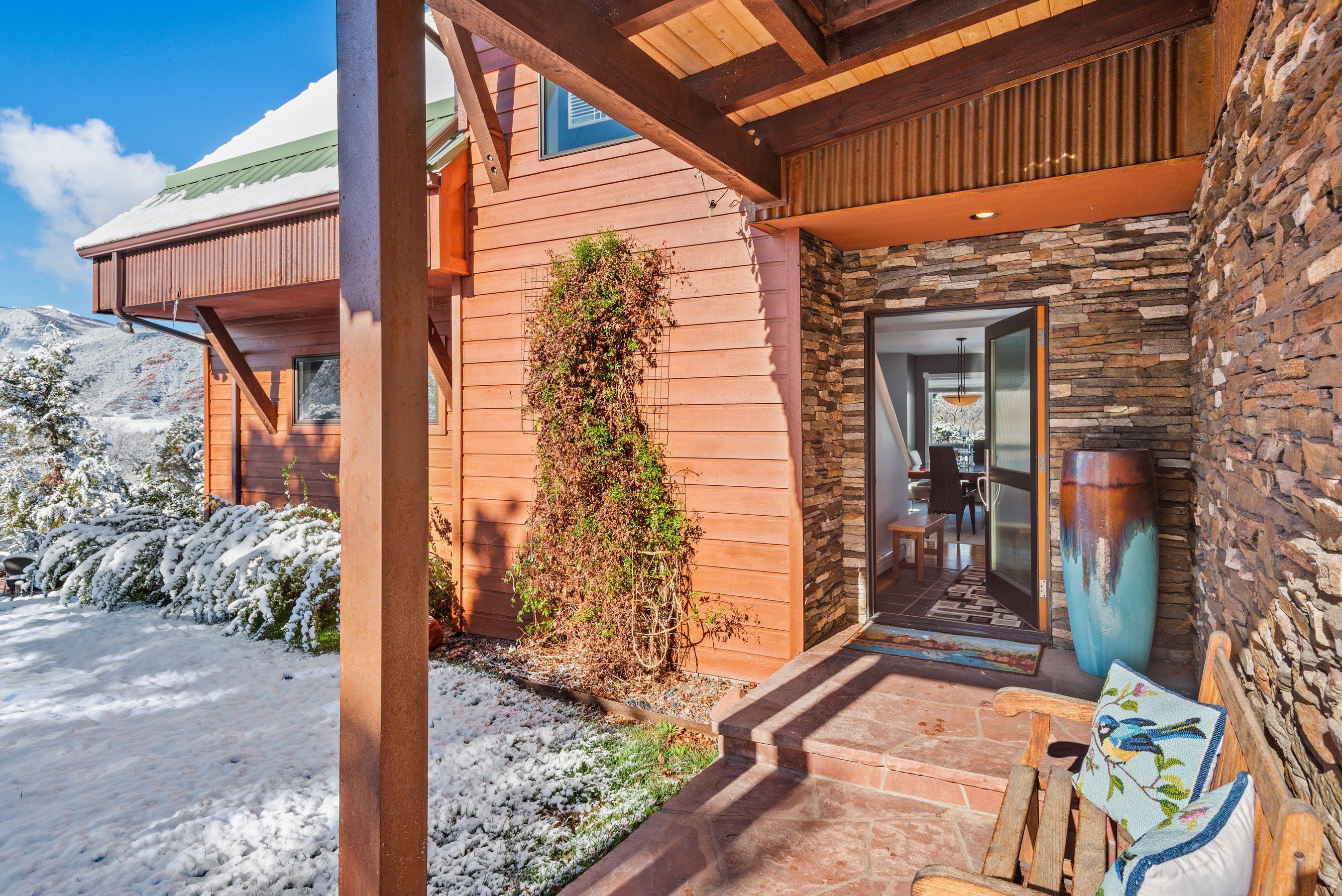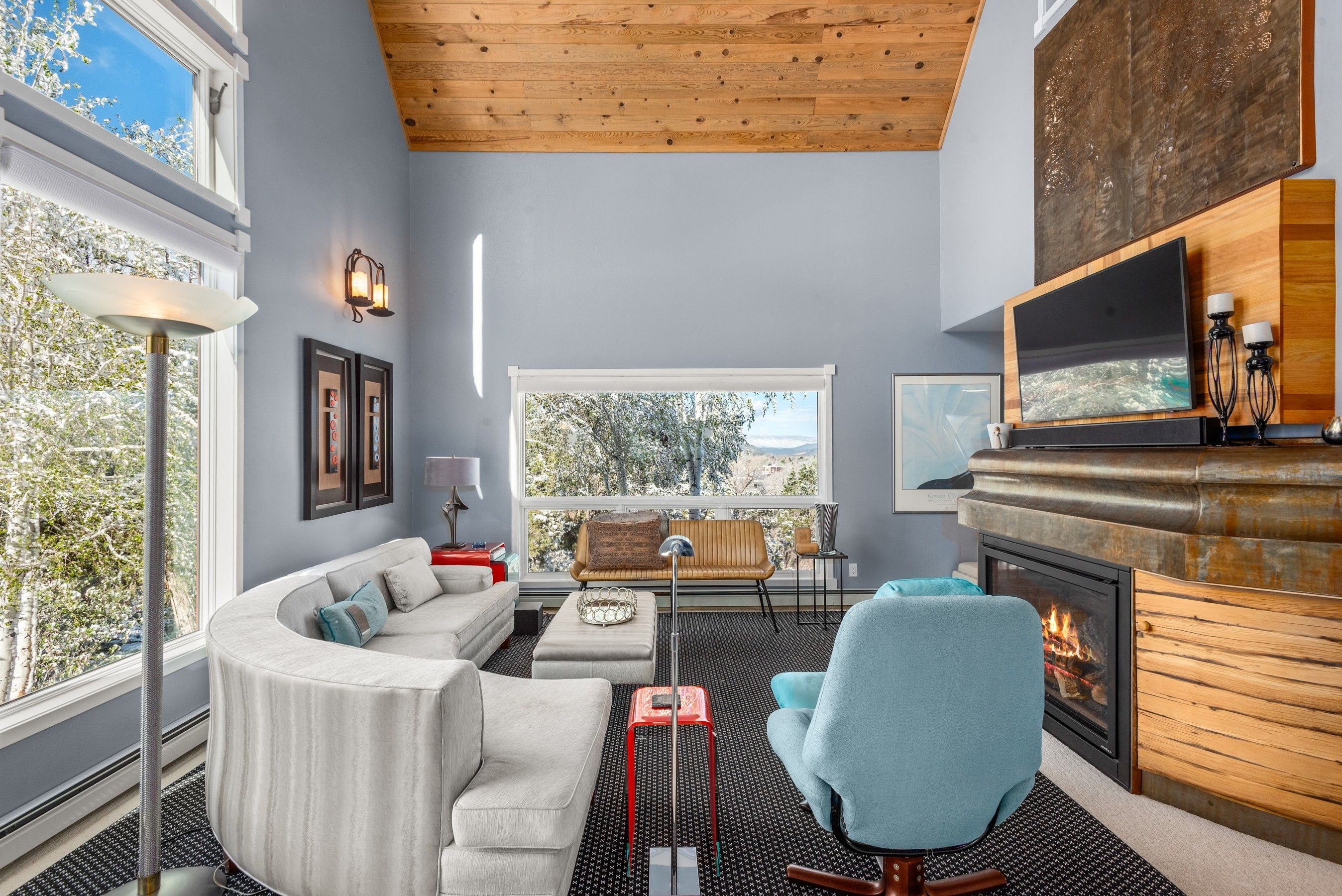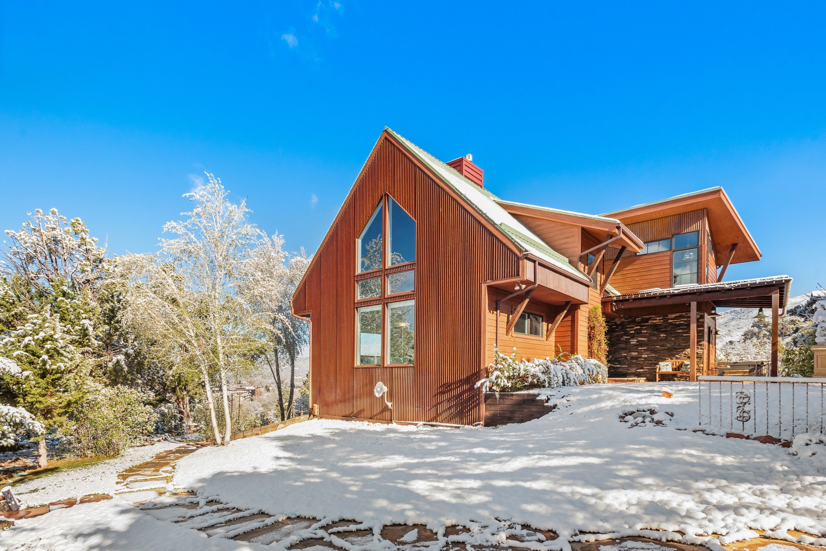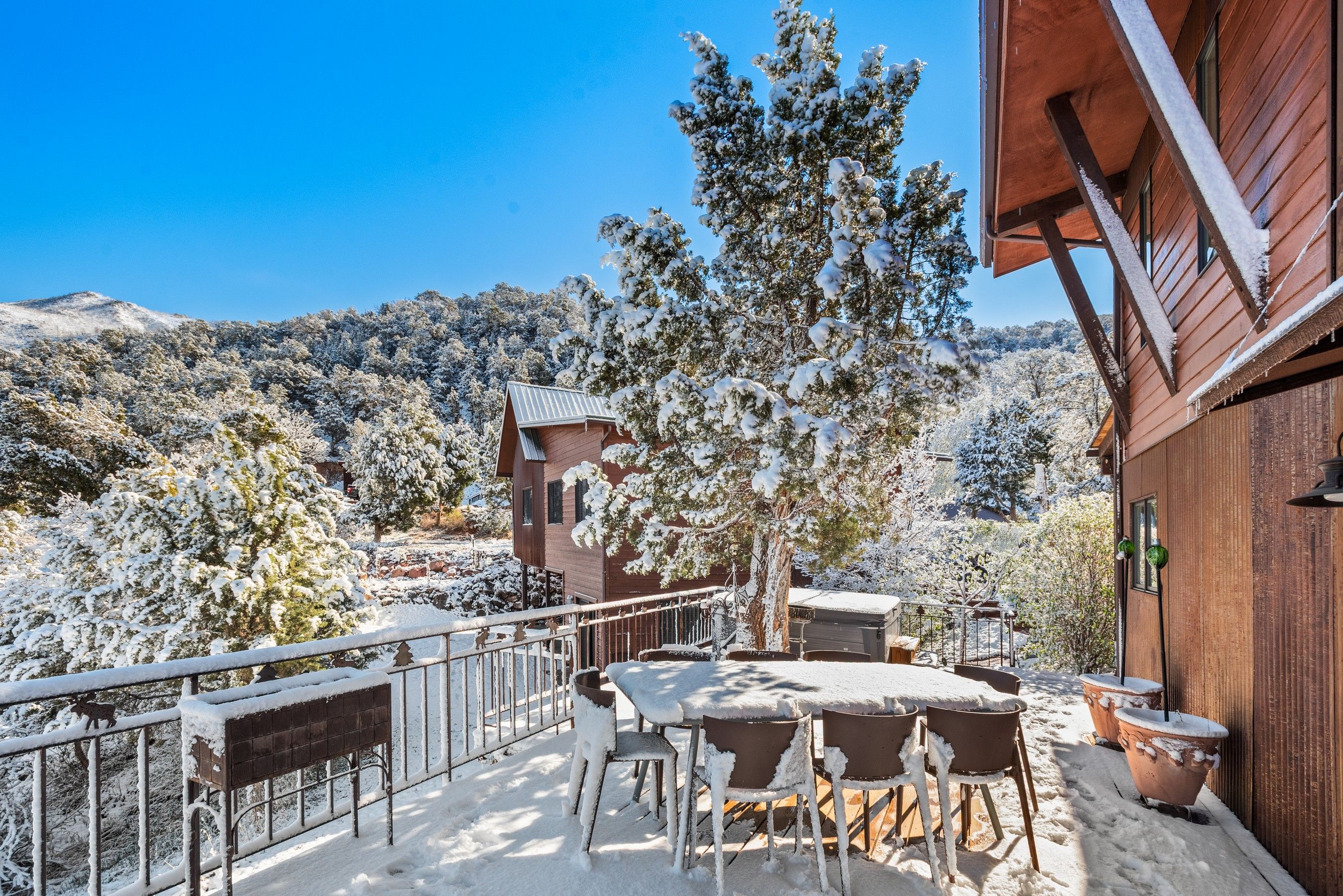 Experience the ultimate blend of privacy and proximity with this exceptional 2.3-acre estate. Nestled in a private setting with breathtaking mountain views, this home nevertheless offers just a 10-minute walk to bus stops, Whole Foods, and the amenities of Willits, including TACAW (The Arts Center at Willits). Access to the ever-popular Rio Grand trail is an easy walk or bike ride. The masterfully-remodeled interior boasts high-end finishes throughout. Expansive south-facing windows bathe the home in abundant sunlight while framing stunning views. Enjoy soaring ceilings and an open, airy floor plan, or move outside onto the expansive deck. Wander through beautifully landscaped gardens, replete with amenities such as a firepit, hot tub, and on-site water feature. A detached, oversized three-car garage ensures plenty of space for vehicles, gear, and mountain toys. It also contains a 2-bedroom apartment for overflow guests, or long-term rental income. In short, 255 Little Pinon Drive is the rarest of properties, offering the seclusion and luxury of a mountain retreat without sacrificing the convenience of town living.