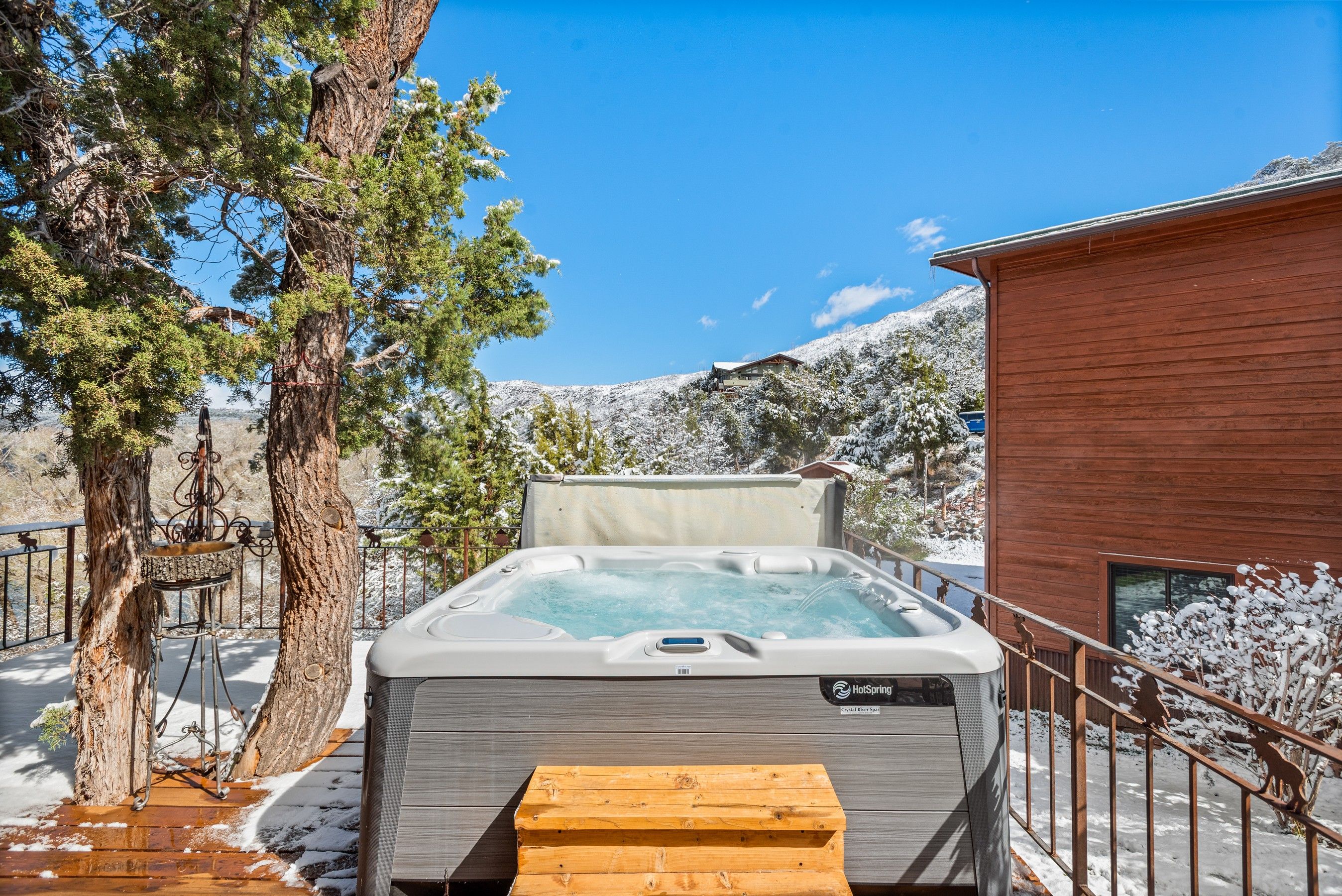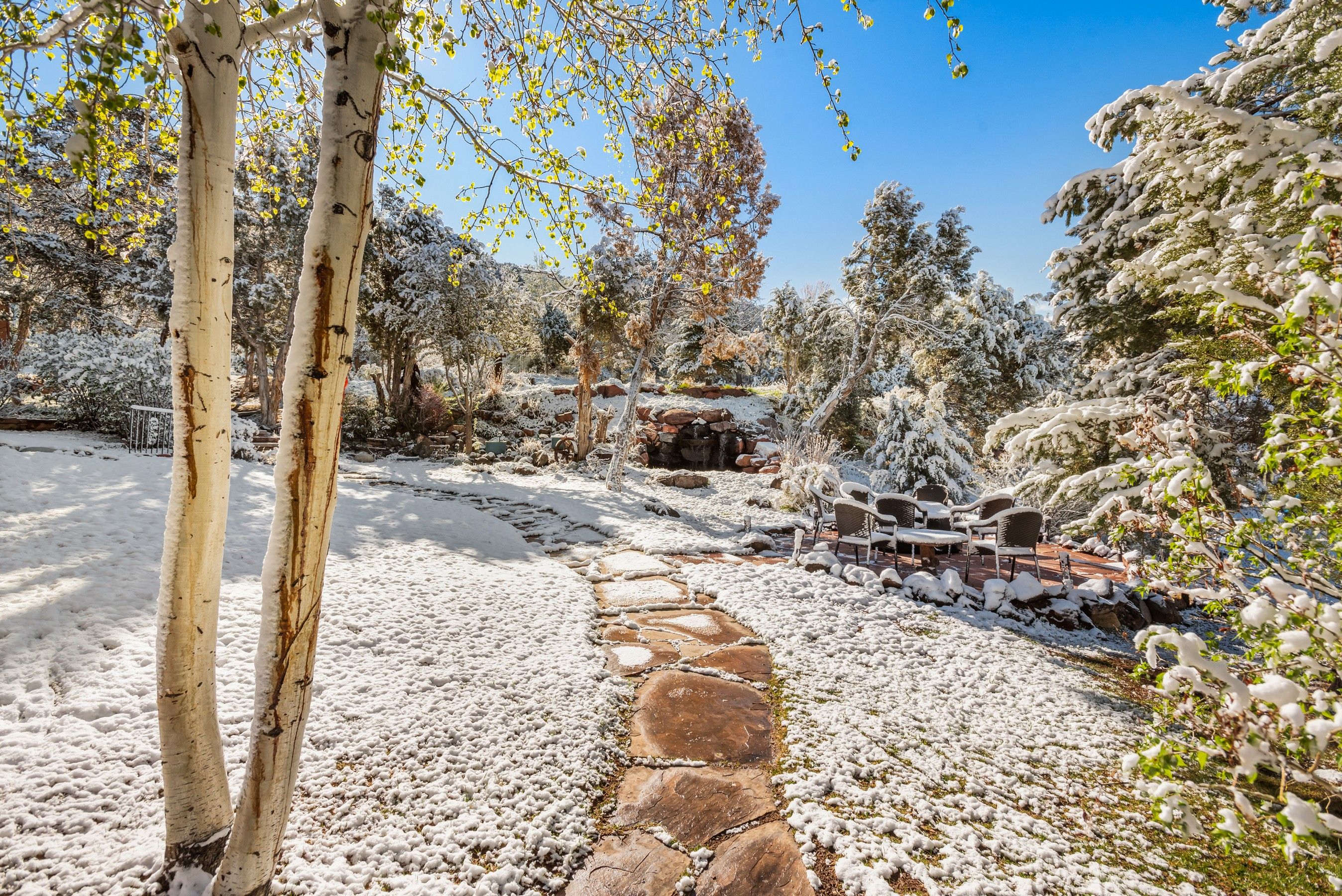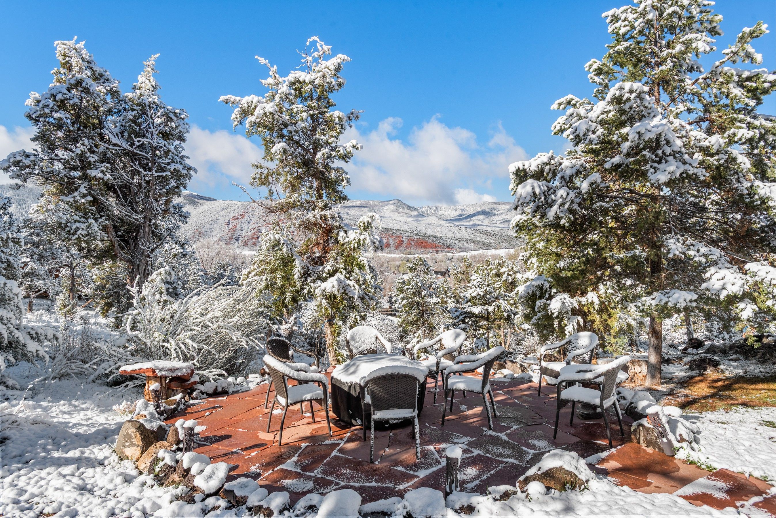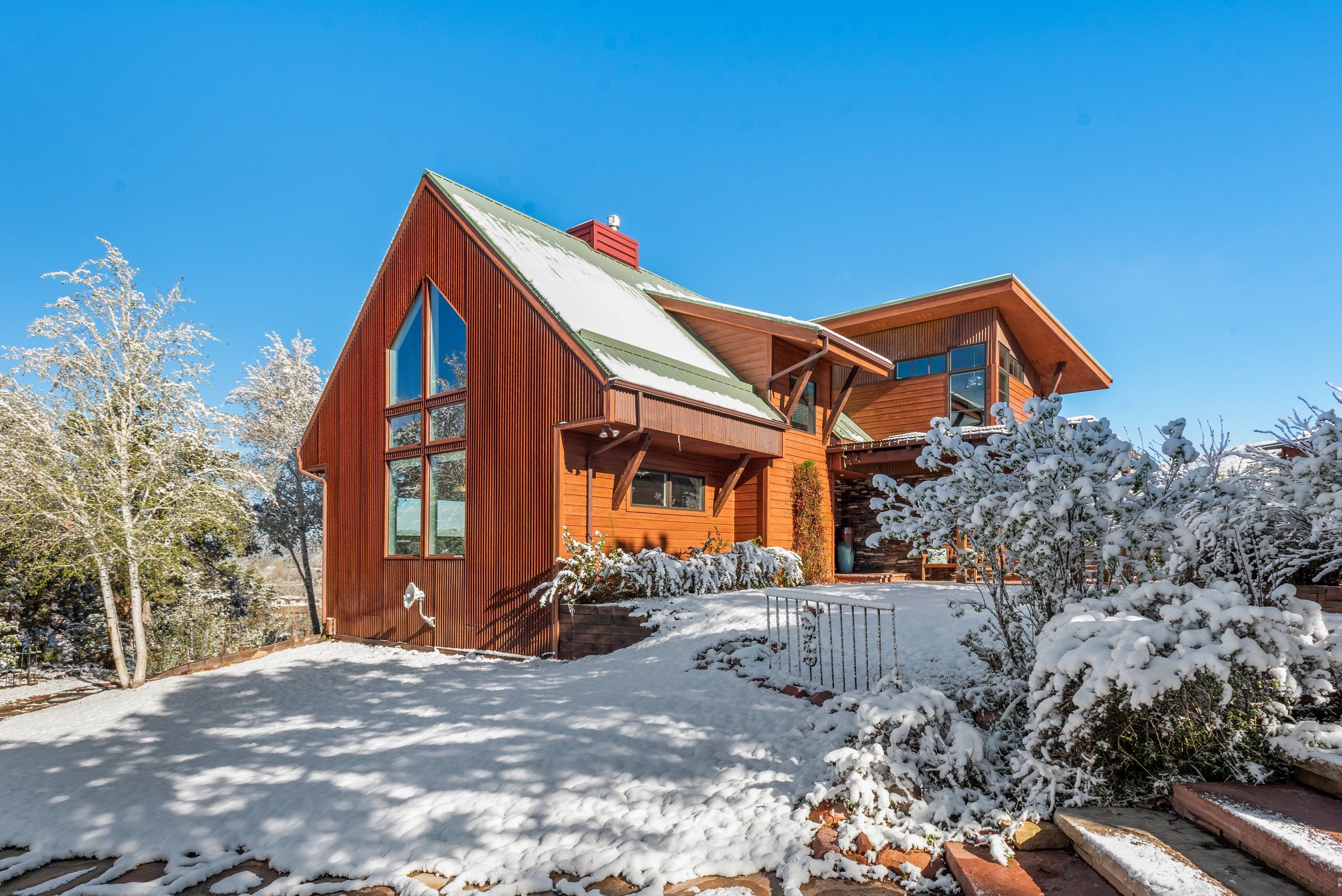 Experience the ultimate blend of privacy and proximity with this exceptional 2.3-acre estate. Nestled in a private setting with breathtaking mountain views, this home nevertheless offers just a 10-minute walk to bus stops, Whole Foods, and the amenities of Willits, including TACAW (The Arts Center at Willits). Access to the ever-popular Rio Grand trail is an easy walk or bike ride. The masterfully-remodeled interior boasts high-end finishes throughout. Expansive south-facing windows bathe the home in abundant sunlight while framing stunning views. Enjoy soaring ceilings and an open, airy floor plan, or move outside onto the expansive deck. Wander through beautifully landscaped gardens, replete with amenities such as a firepit, hot tub, and on-site water feature. A detached, oversized three-car garage ensures plenty of space for vehicles, gear, and mountain toys. It also contains a 2-bedroom apartment for overflow guests, or long-term rental income. In short, 255 Little Pinon Drive is the rarest of properties, offering the seclusion and luxury of a mountain retreat without sacrificing the convenience of town living.