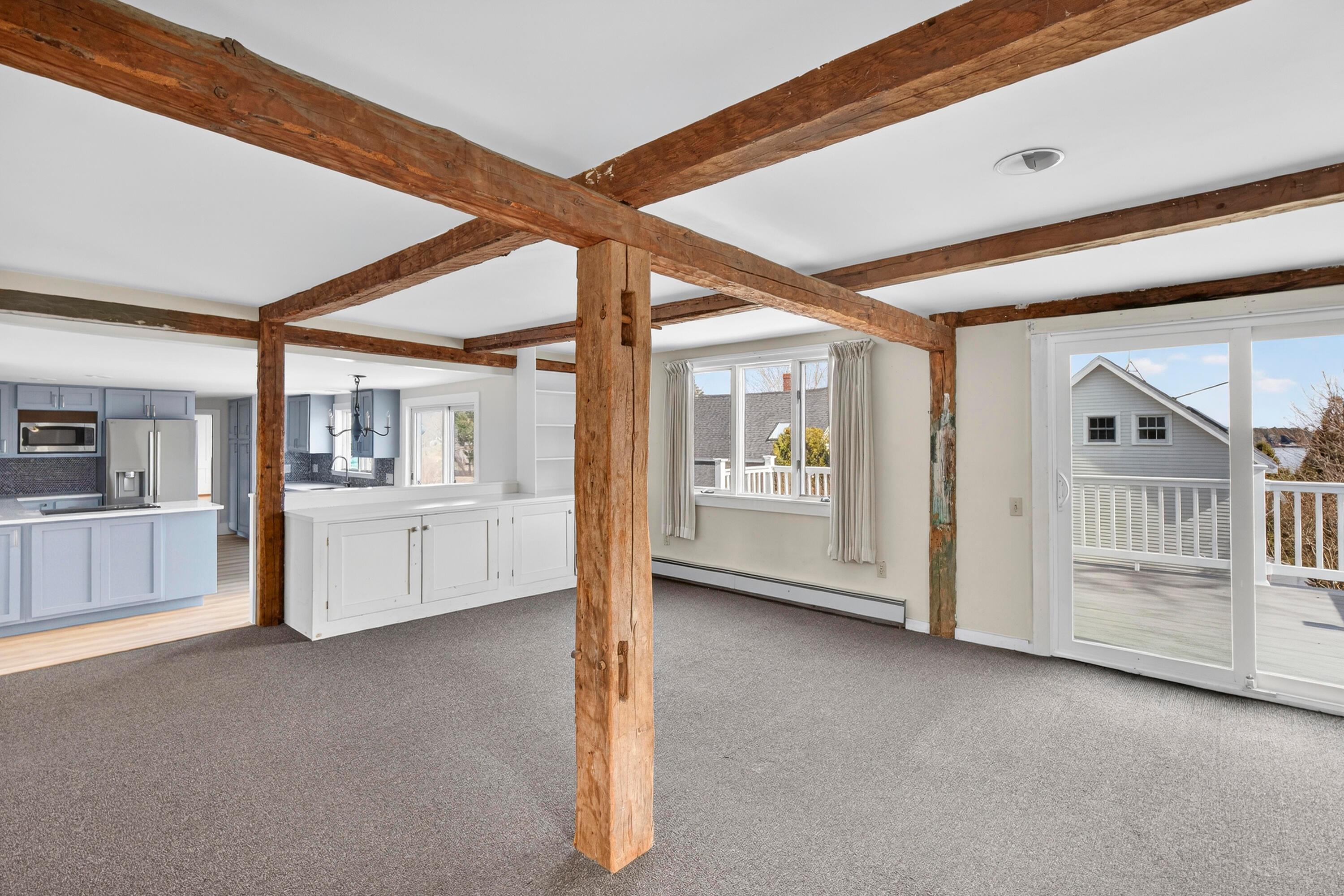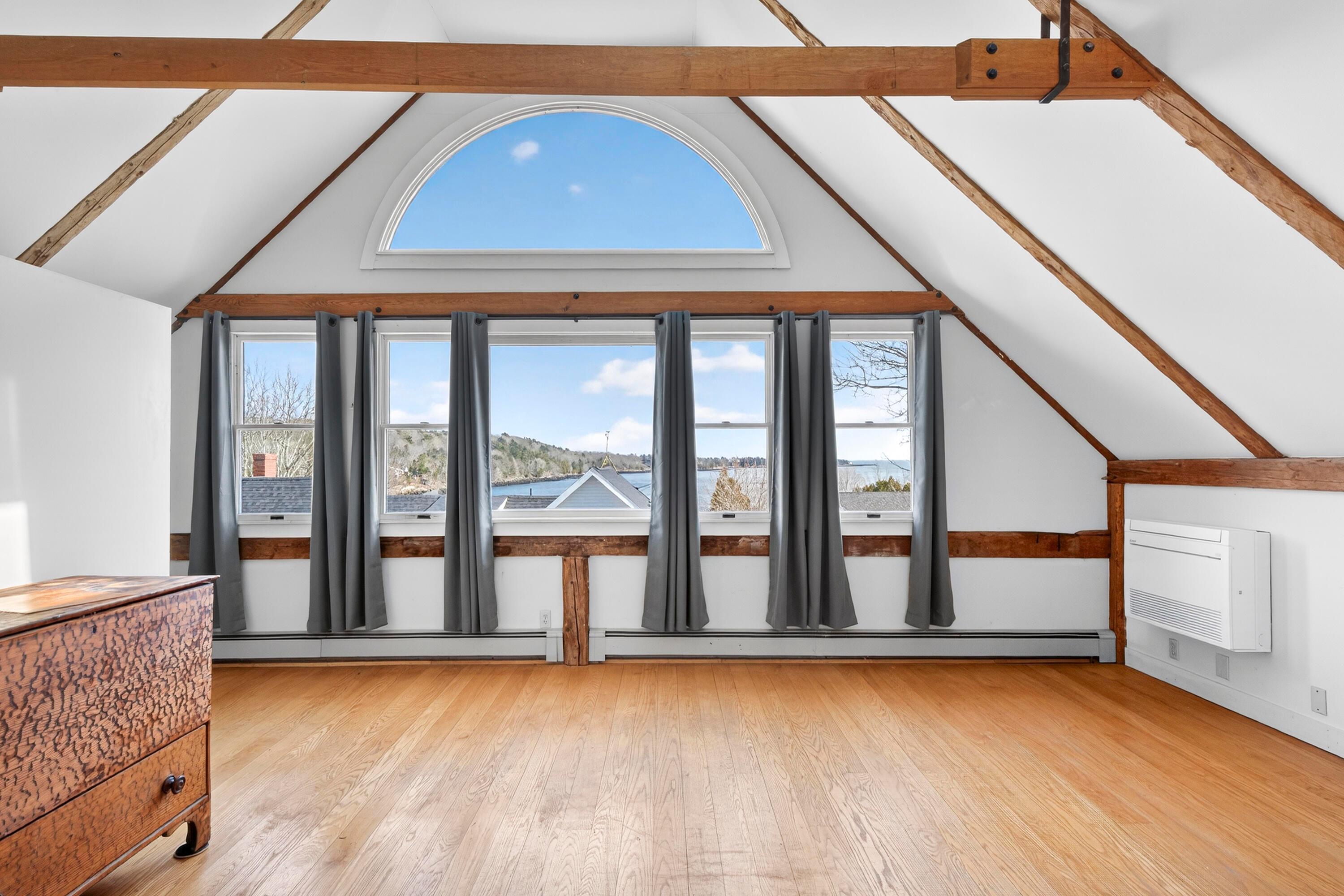 Harbor View at 8 Ship Street is available to the market for the first time in almost 40 years! This beautifully preserved and updated 19th century home is ideally located in one of Maine's most beloved coastal villages, offering harbor views and an unbeatable location just steps from Rockport's Marine Park and Goodies Beach. From this home you can also enjoy an enviable and easy stroll to local cafes, shops, live music events, and the newly built library. At the heart of Harbor View is an inviting post and beam family room which flows seamlessly from the modern kitchen and features a cozy gas fireplace, a brand-new heat pump for year-round comfort, and direct access to the deck. Also on the first floor is a formal dining room, double living room, half bath, and mud and laundry room connected to the barn which is a perfect workshop, or potential garage conversion with storage above. Upstairs there is a sitting/office area with a large picture window that frames the unfolding harbor scenes, two bedrooms, a full bath awaiting updates, and a spacious primary suite - converted from part of the original barn. This suite is a true retreat, featuring soaring ceilings, abundant natural light, and stunning views of Rockport Harbor. A charming half-moon window offers the perfect vantage point for moonlit nights reflected over the water. Extensive 2025 upgrades include energy-efficient Ascend composite siding with insulation and Class A fire rating, three new heat pumps, a fully renovated kitchen with cork-backed insulated flooring, a redesigned primary bath with radiant floor heat and rain shower, a redesigned and transformed half-bath, improved drainage systems, foundation stonework, basement insulation and encapsulation, repaved driveway, and a new backyard deck. Some final finishing touches await your completion. Finally, a charming backyard off the deck has plenty of room to garden, relax, entertain and play, accompanied by the fresh salt air.