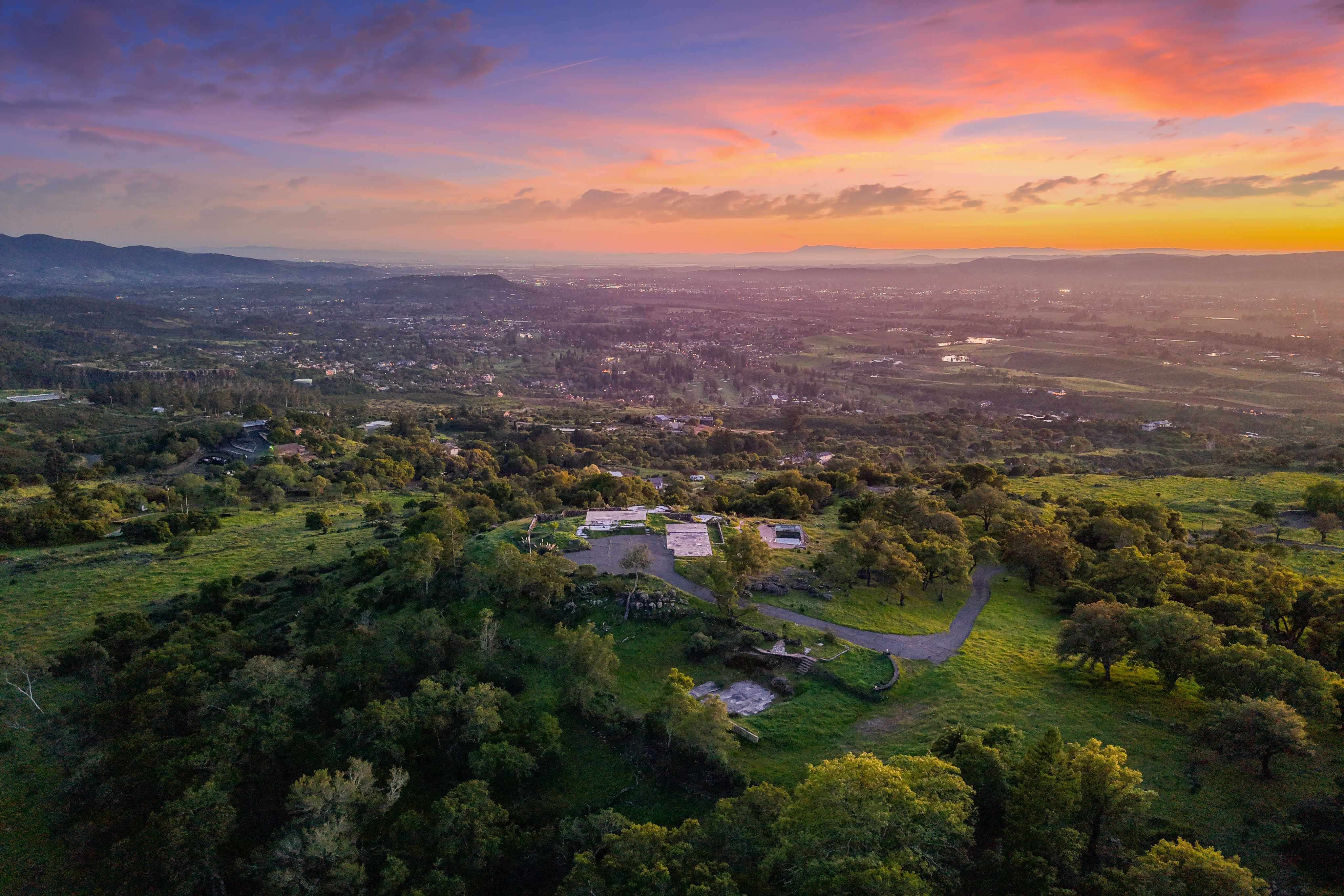 Sitting on the east side of Napa 1,200 feet above the scenic valley floor, and a scant 2.5 miles from the renowned Silverado Country Club, is an exceptional 18.7 acres with breathtaking views. The sweeping view encompasses Yountville, which is the center of the Napa Valley, south to the hills of Marin County and Mount Tamalpais and on to San Francisco, the City by the Bay, and back into the east side of the valley where the 1,800 foot Mount George stands. East and behind the property the terrain reveals little to no civilization with the ambiance of solace, silence, solitude a slice of heaven. Viewing the sunset on a summer day with the sun silhouetting the verdant hills to the west is a soul lifting experience. The occasional dusting of winter snow adds to the magic. This property is located close to Silverado Country Club, six miles from Napa Valley Country Club, eight miles from downtown Napa and thirty minutes from the Napa Airport, one hour from Sacramento International Airport, and ninety minutes plus from the Oakland and San Francisco International airports. This remarkable offering invites its next owner to create a legacy estate to be enjoyed for generations. Bring your vision and creativity to this spectacular panoramic view site and design a Napa Valley residence that fully embraces the dramatic landscape, iconic valley floor, and surrounding mountain vistas.