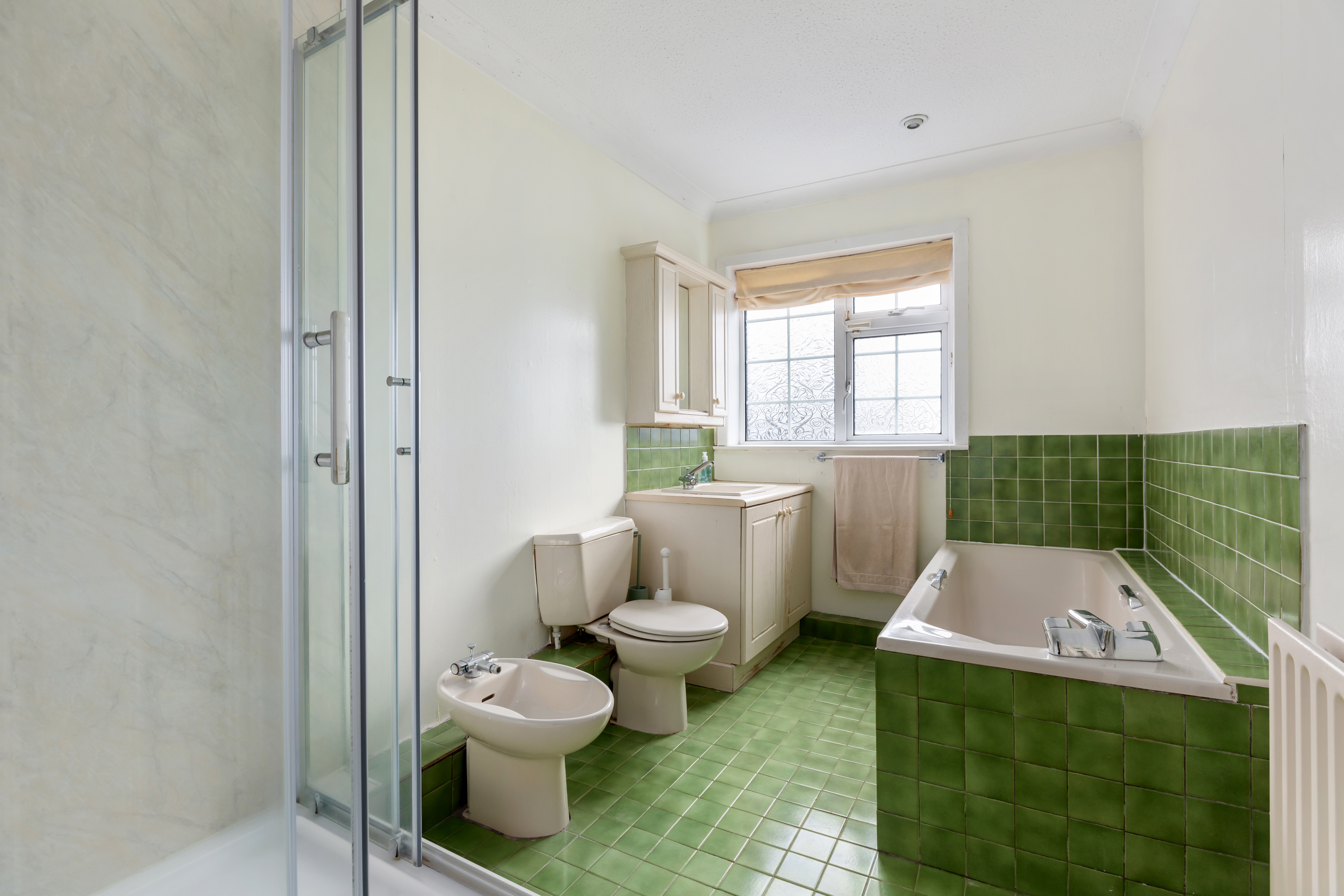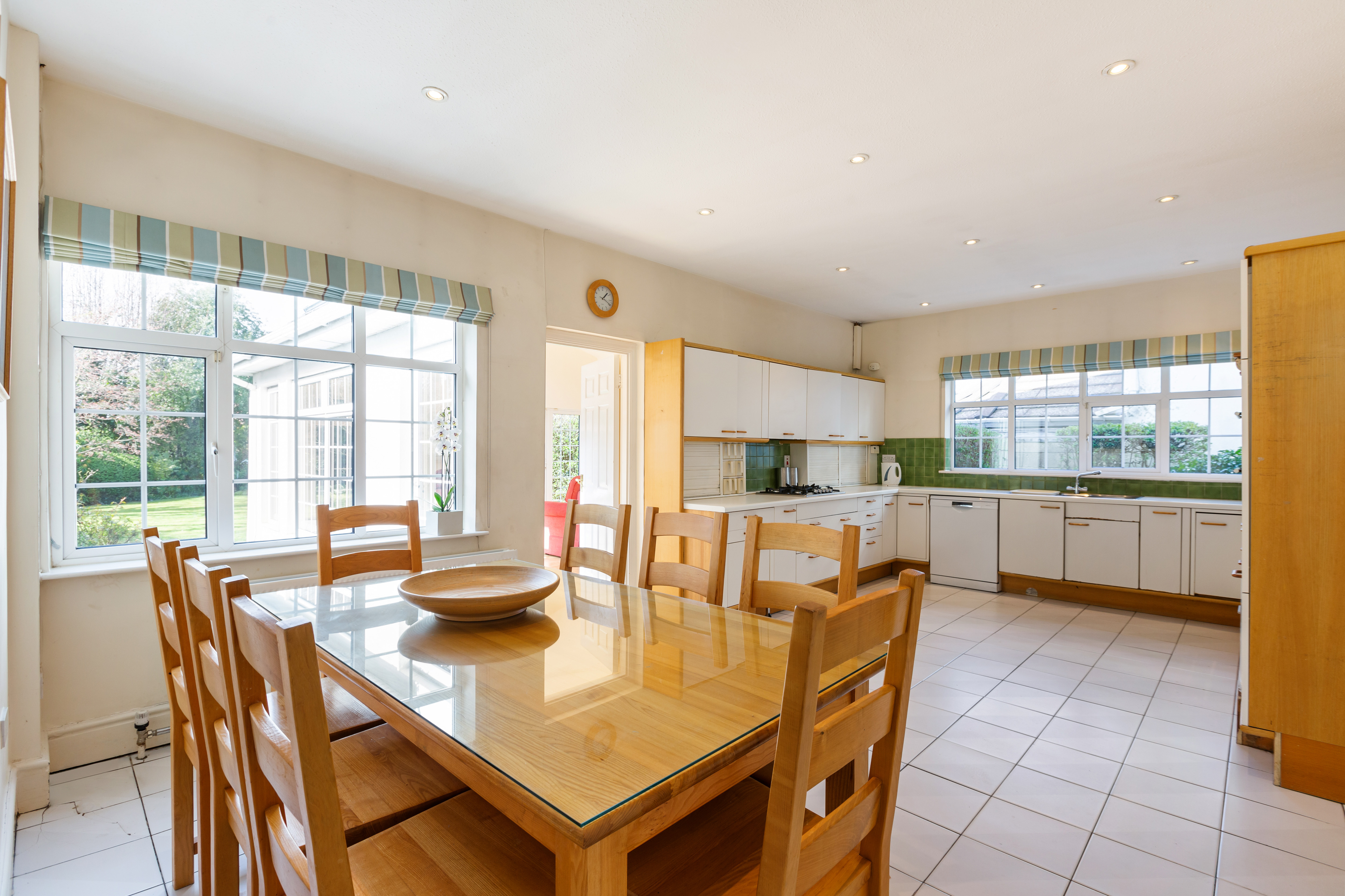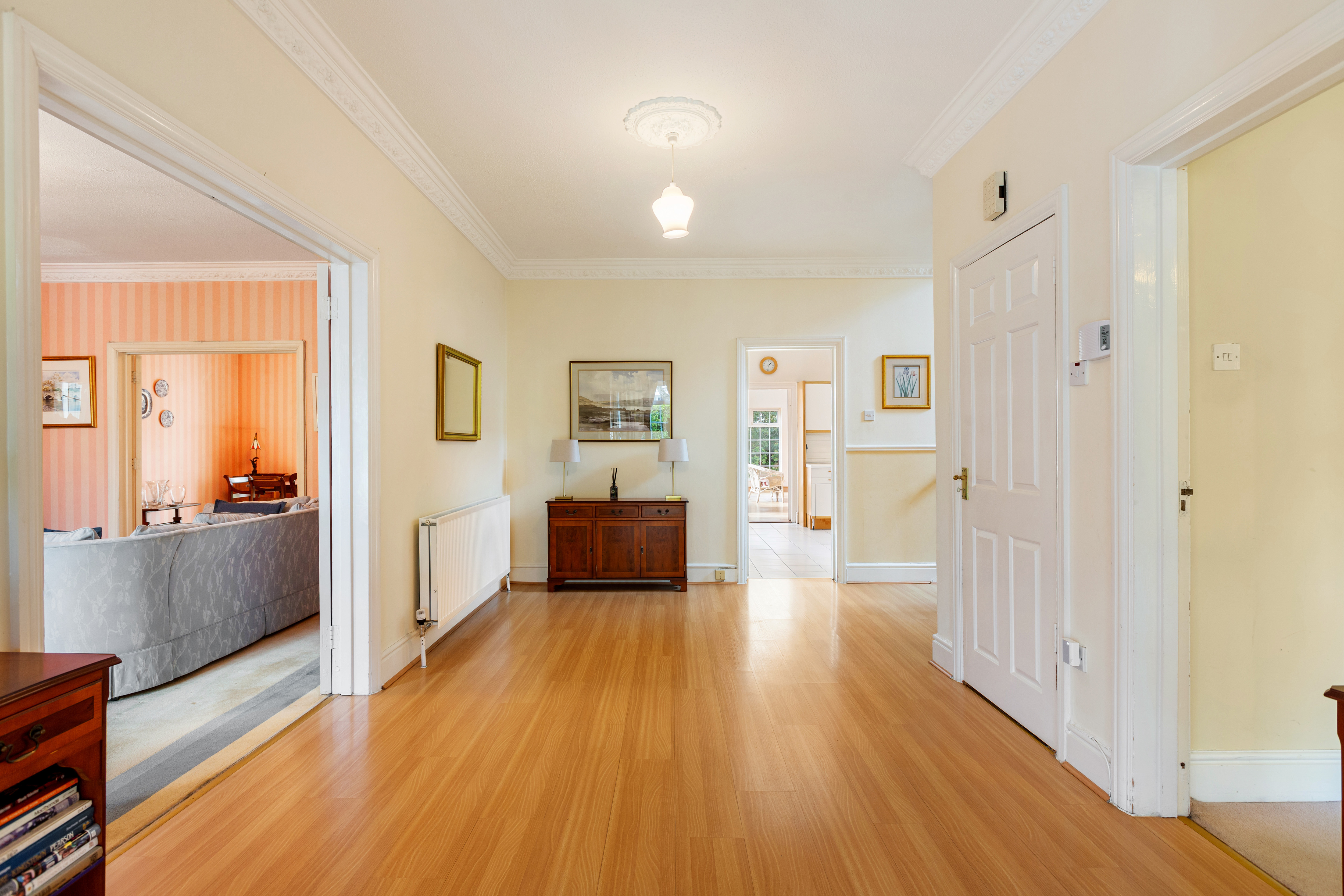 Upstairs, five well-appointed double bedrooms provide excellent family accommodation. The principal bedroom benefits from an en suite shower room, while a family bathroom serves the remaining bedrooms. From the spacious landing, a stairwell leads to a converted attic — ideal for storage — complemented by extensive under-eaves storage space.