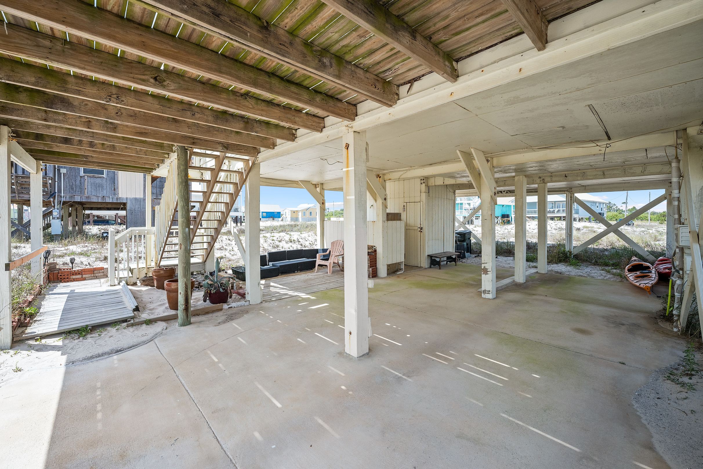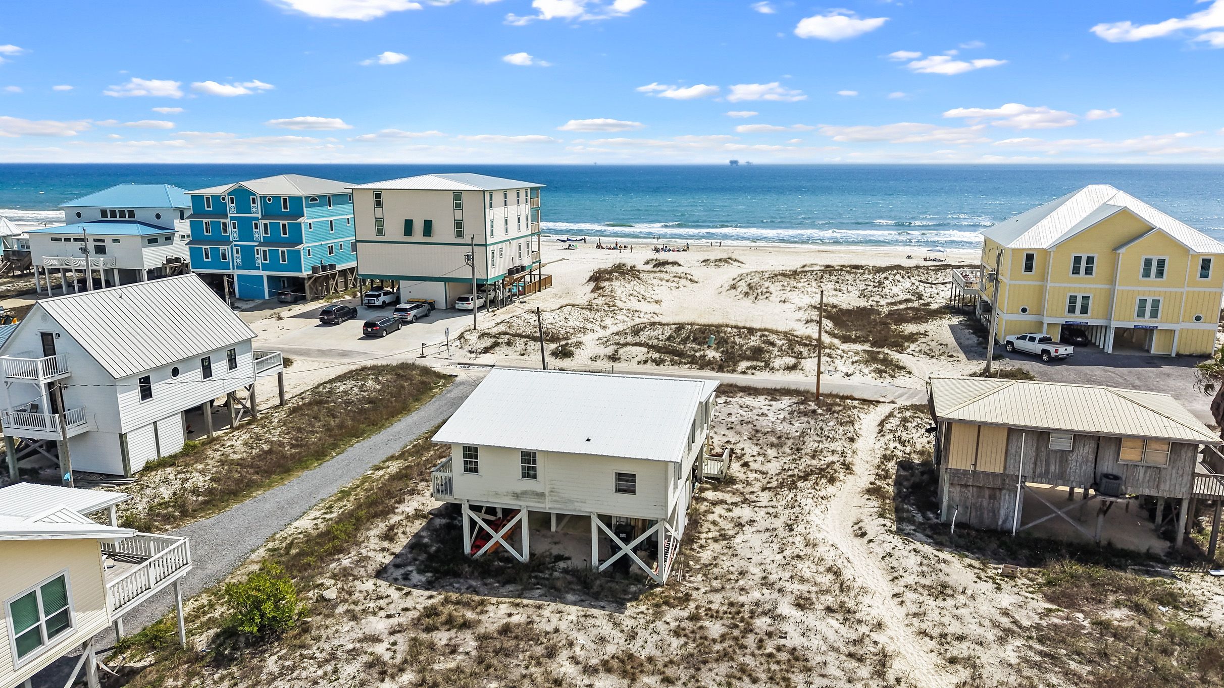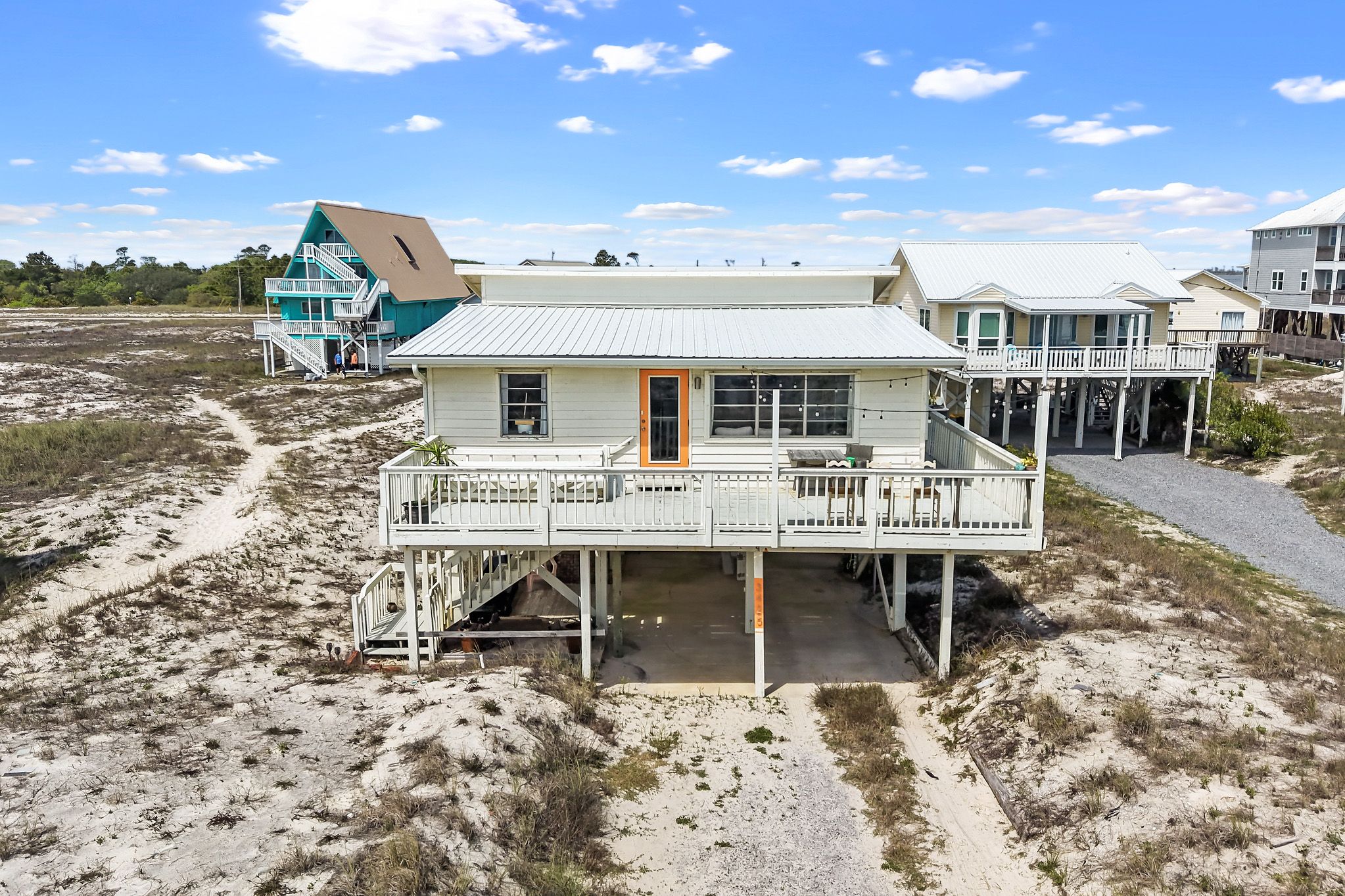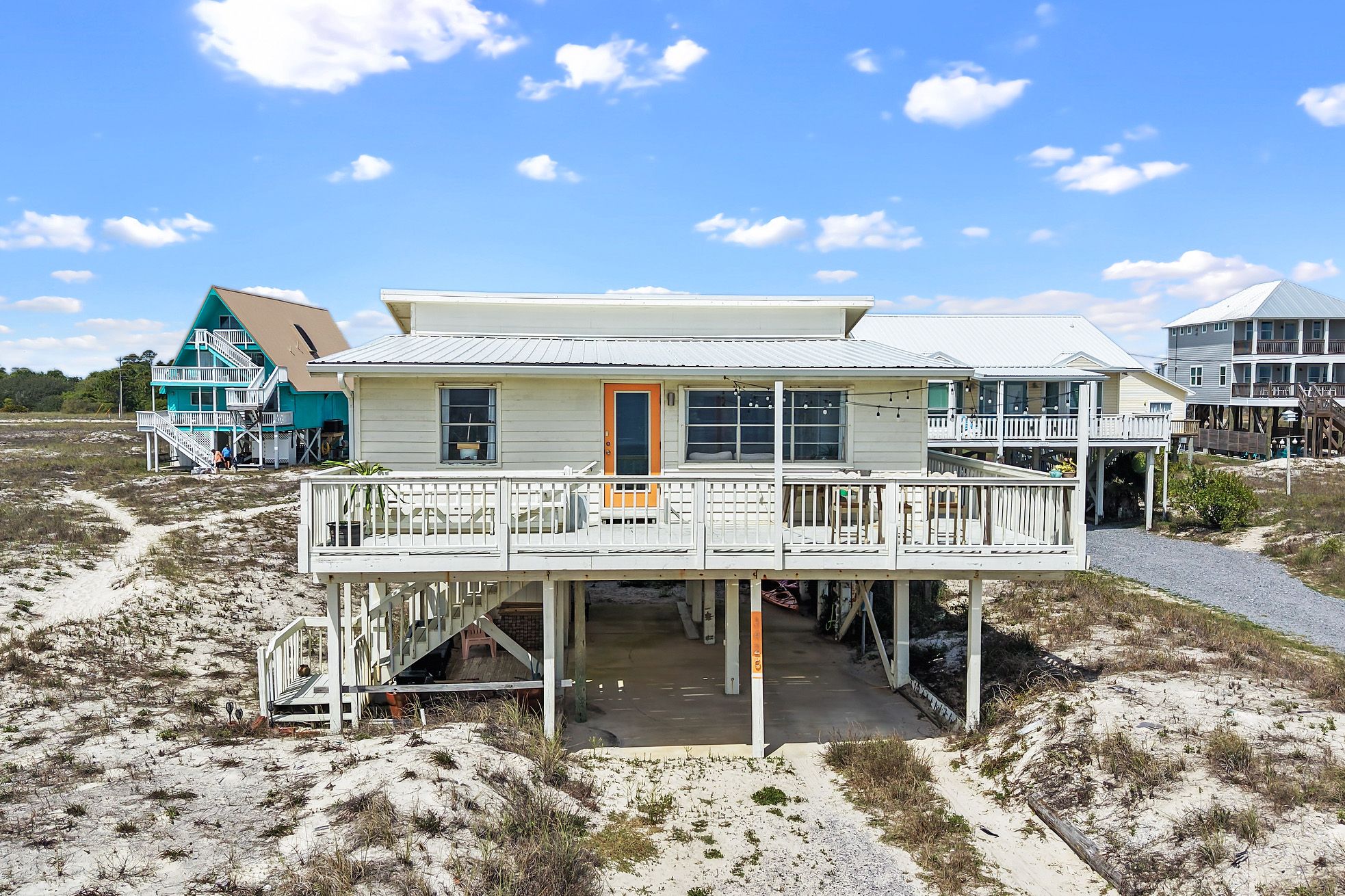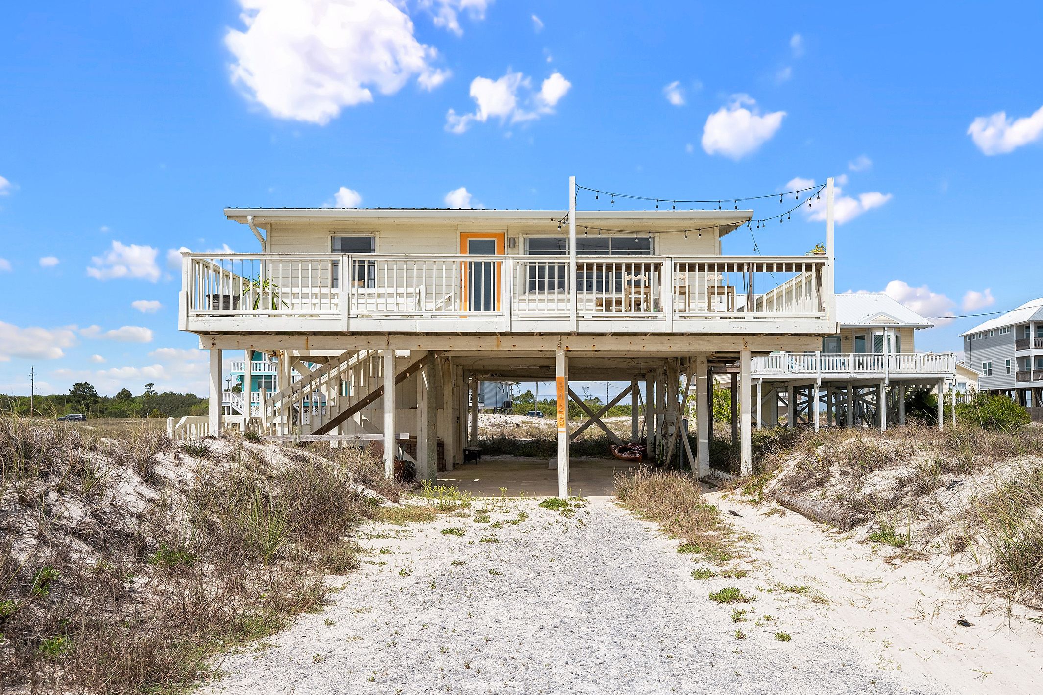 Located in the scenic coastal area of Fort Morgan, this charming raised beach retreat offers breathtaking views and convenient beach access. This updated 3 bedroom + bunk room, 2 bath home has been designed to maximize sleeping capacity, making it an ideal choice for gatherings and/or potential rental income. The spacious front deck offers an inviting atmosphere for relaxation, entertainment, and enjoying the coastal breeze. With panoramic views of the Gulf and occasional dolphin sightings just offshore, it provides the perfect setting for morning coffee, sunset gatherings, or simply enjoying the natural beauty of Fort Morgan. Some of the many recent upgrades include a new HVAC system installed in 2024, a new roof installed in 2021, and a fully renovated kitchen. These enhancements provide peace of mind and long-term value, ensuring that this home is ready for either move-in or rental occupancy. Unlike many other coastal properties, this home is not subject to Homeowners Association (HOA) fees, making it a rare opportunity to own a coastal property that offers both lifestyle enjoyment and income potential. The home is offered partially furnished, including all beds, simplifying the process of either enjoying or renting it immediately. Buyer to verify all information during due diligence.