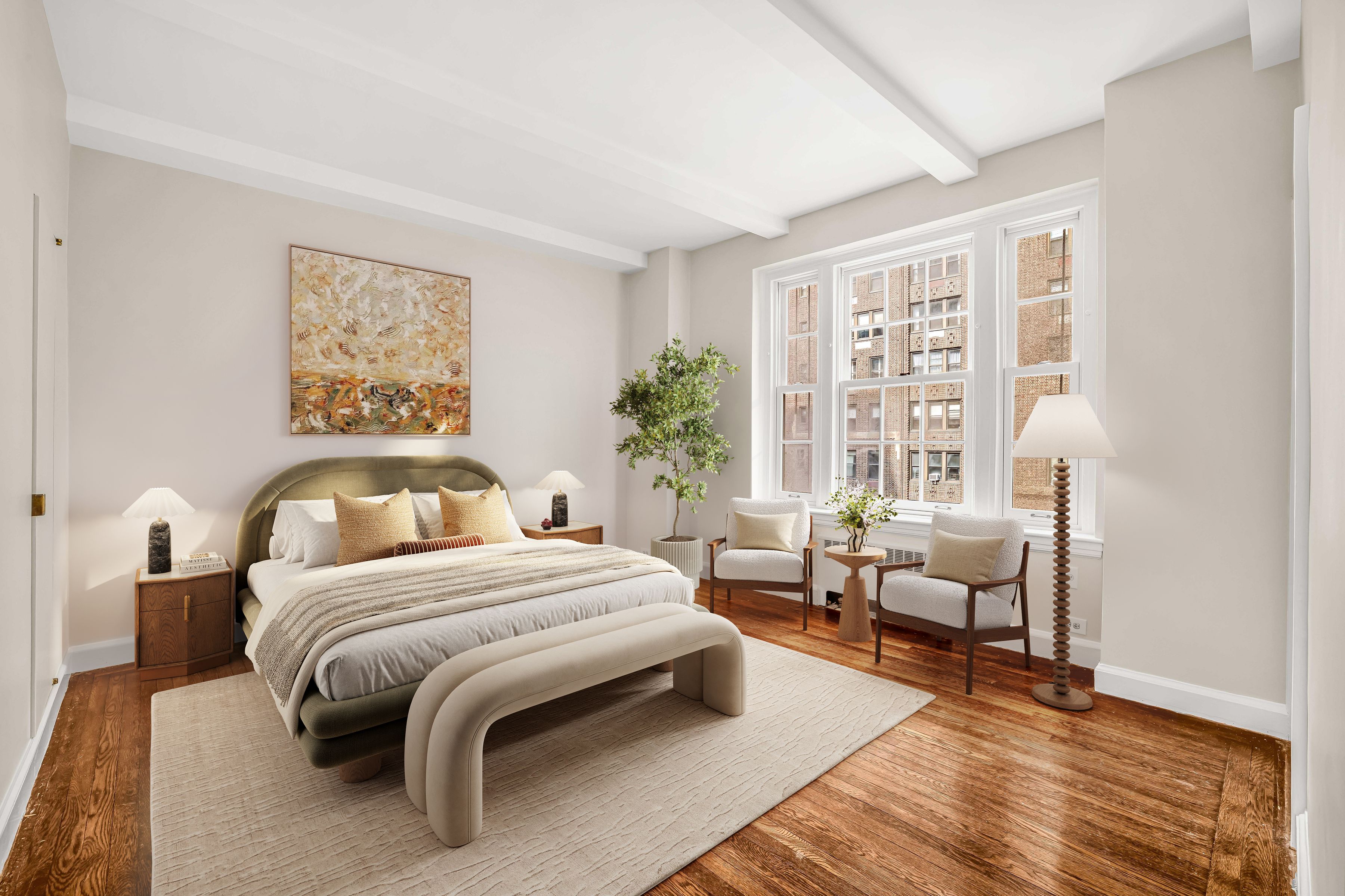 Welcome to 5B at 430 East 57th, offering incredible space and classic charm in this beautifully proportioned two-bedroom, two-bath home, set on one of Sutton Place’s most desirable streets. A gracious entry foyer opens into an expansive living room (approximately 22' x 18'), featuring high ceilings, a wood-burning fireplace, original oak strip floors, and three oversized windows overlooking a picturesque, tree-lined street. The space strikes a perfect balance between a peaceful retreat and effortless entertaining. Just off the living room is a windowed kitchen with ample storage. A private hallway leads to two gracious bedrooms, with an abundance of closets throughout. 430 East 57th Street is a distinguished prewar cooperative offering white-glove service, including a full-time doorman, elevator operators, and a live-in resident manager. Designed by the acclaimed architectural firm McKim, Mead & White, the building features a fitness center, bike room, landscaped garden, and private storage. Conveniently located near transportation, top-tier shopping and dining, and several charming parks, this home places you in the heart of Sutton Place—one of Manhattan’s most coveted residential enclaves. Subject to board approval, the building allows pets and in-unit washers/dryers, permits flexible purchasing arrangements (including guarantors, co-purchasing, parents buying for children, and corporate ownership), and allows pied-à-terre. Max Financing 70% of purchase price. 2% flip tax paid by seller. Some photos are virtually staged for illustrative purposes.