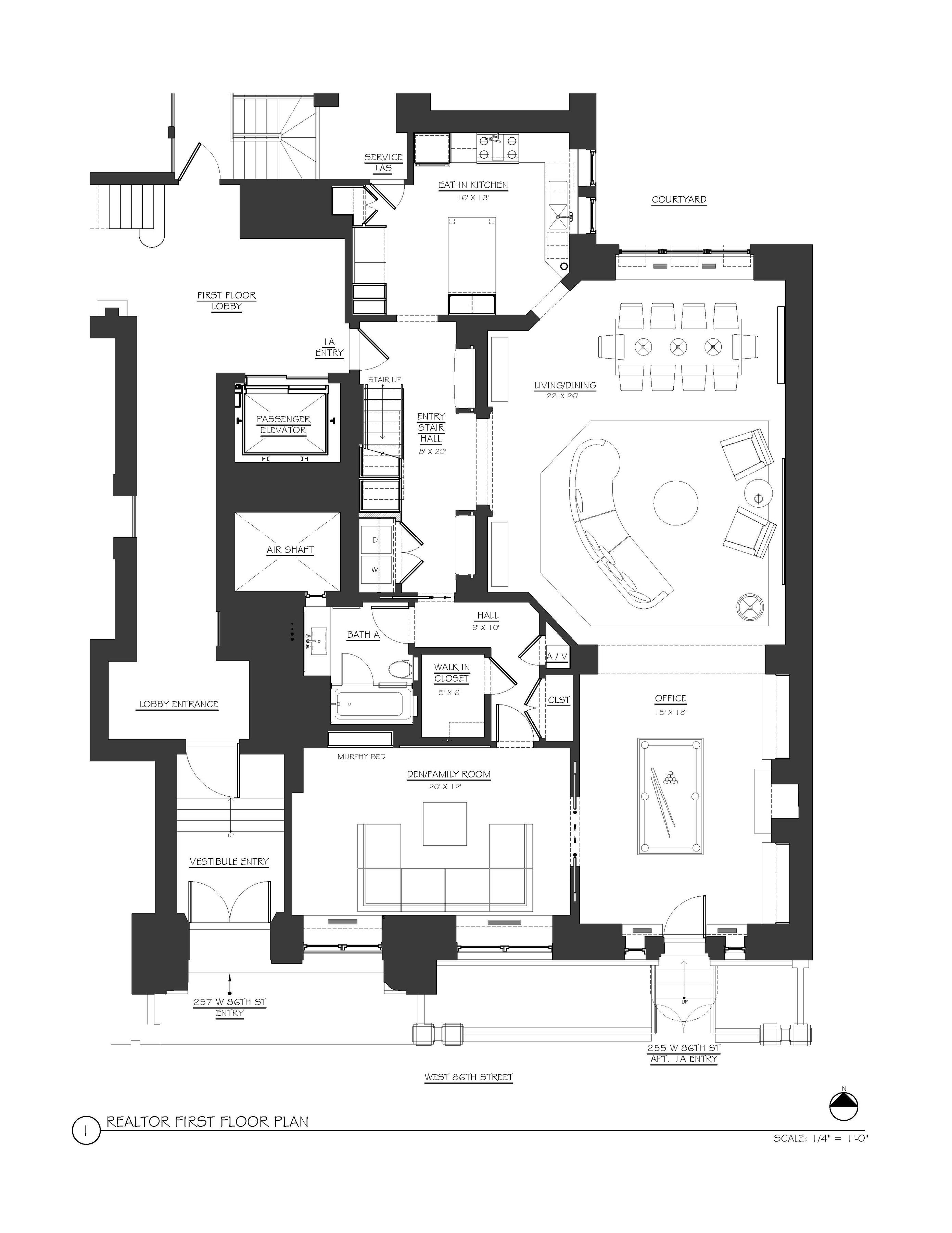 Architectural Granduer; From Legendary Ballet Studio to an Architect’s Upper West Side Family Home A Unique Offering of a Gut-Renovated, Three Bedroom Designer Duplex Experience peaceful, refined living in this impeccably designed and meticulously renovated three bedroom, three bath home at 257 West 86th Street. Approximately 2,800sf, this re-imagined duplex transcends the definition of "turn-key," fusing the highest level of architectural skill, sophisticated taste, the highest standards of craftsmanship, dramatic scale, and pre-war details that are original to the building, and maintained with integrity. The Residence: Apartment 1/2A was the former live/work Dance Studio belonging to ballet legend, Raoul Gelabert. The apartment was brought down to its shell and rebuilt by the architect and owner, with intention, detail, and love, spanning a multiple year project. The well-lit, double-height, 20-foot ceiling Great Room creates an immediate sense of drama and scale as you enter the apartment. The large, custom eat-in kitchen is a showpiece, featuring custom cabinetry, a generous peninsula table, premium integrated appliances by Wolff, Dacor, and Cove, and finally lots of counter top surface area designed to provide workspace for the culinary enthusiast, the frequent host, or for everyday living. The custom cabinetry is in high gloss lacquer, with metal frames that surround the doors and drawers throughout the kitchen; practical to protect these highly used components, avoiding chipping of the edges. Beyond the great room, an office gallery with custom cabinetry and a decorative fireplace does double duty as both a work space for two and a recreation space for many. Off of the office, a dedicated media/den has the versatility to also be a guest room (fourth bedroom) with a built-in murphy bed. The first floor is complete with three closets, one of which is a large walk-in closet, and a luxurious full bath with tiles from Ann Sacks, cabinetry cabinets, and heated floors. The flexible floor plan currently offers three bedrooms and two full baths on the second floor, all bedrooms basking in Southern light. And finally, the entry foyer is an experience in itself with custom natural oak cabinetry, the stair wall design by Fresco Decorative Arts, the upholstered bench and polygons in Ultrasuede from Kravit and the sculptural glass staircase by Prime Glass. Two unique and cleverly hidden closets pull out from under the stairs for coat, hat, and shoe storage. The practical luxury of this home prioritizes utility and functionality without sacrificing style, boasting an in-unit washer/dryer closet with shelving, and an abundance of closets and built-in storage, where each closet is outfitted with lighting, shelving and drawers for maximum utility and easy access and visibility. The residence has central A/C with multiple zones to accommodate everyone's temperature preference. Baths are equipped with hidden storage drawers that are outfitted with designated electrical outlets so your bathroom countertops can remain appliance free. All the windows have been replaced from the original. The Building & Lifestyle: Situated in a premier FULL-SERVICE cooperative, residents enjoy a 24-hour doorman, a live-in superintendent, a fitness center, and a landscaped roof deck. A well run co-op whose Local Law 11 was just completed. Positioned between Riverside and Central Parks, the location offers immediate access to the neighborhood’s most celebrated dining, cultural landmarks, and the many options for transportation. Pet-friendly and perfectly executed, this duplex represents a rare opportunity to secure a truly standout residence in the heart of the Upper West Side. Apartment Features: Approx 2,800SF High Ceilings Central A/C Washer/Dryer in unit Building Features: Full time Doorman Gym Storage Laundry Pet Friendly<