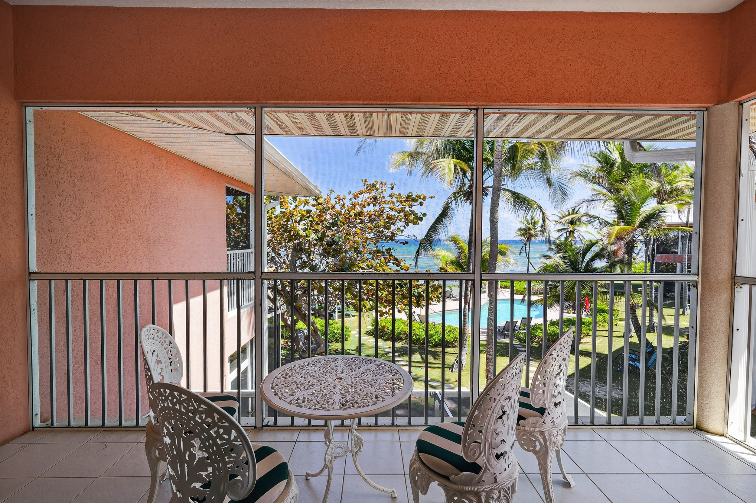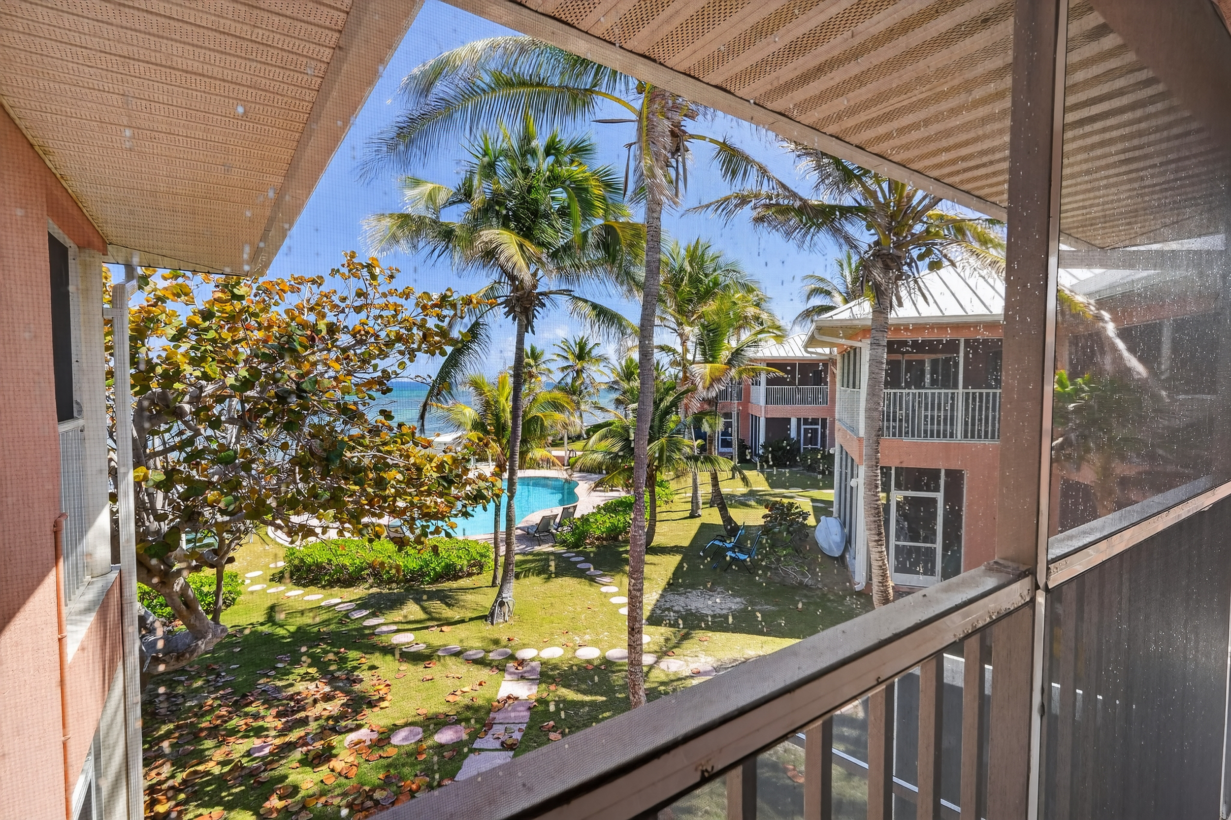 Unit 2 presents 1554 sq ft of living space with sparkling views of the clear Caribbean Sea. Upstairs, there are 2 bedrooms, 2 bathrooms, with a screened balcony off the main bedroom.