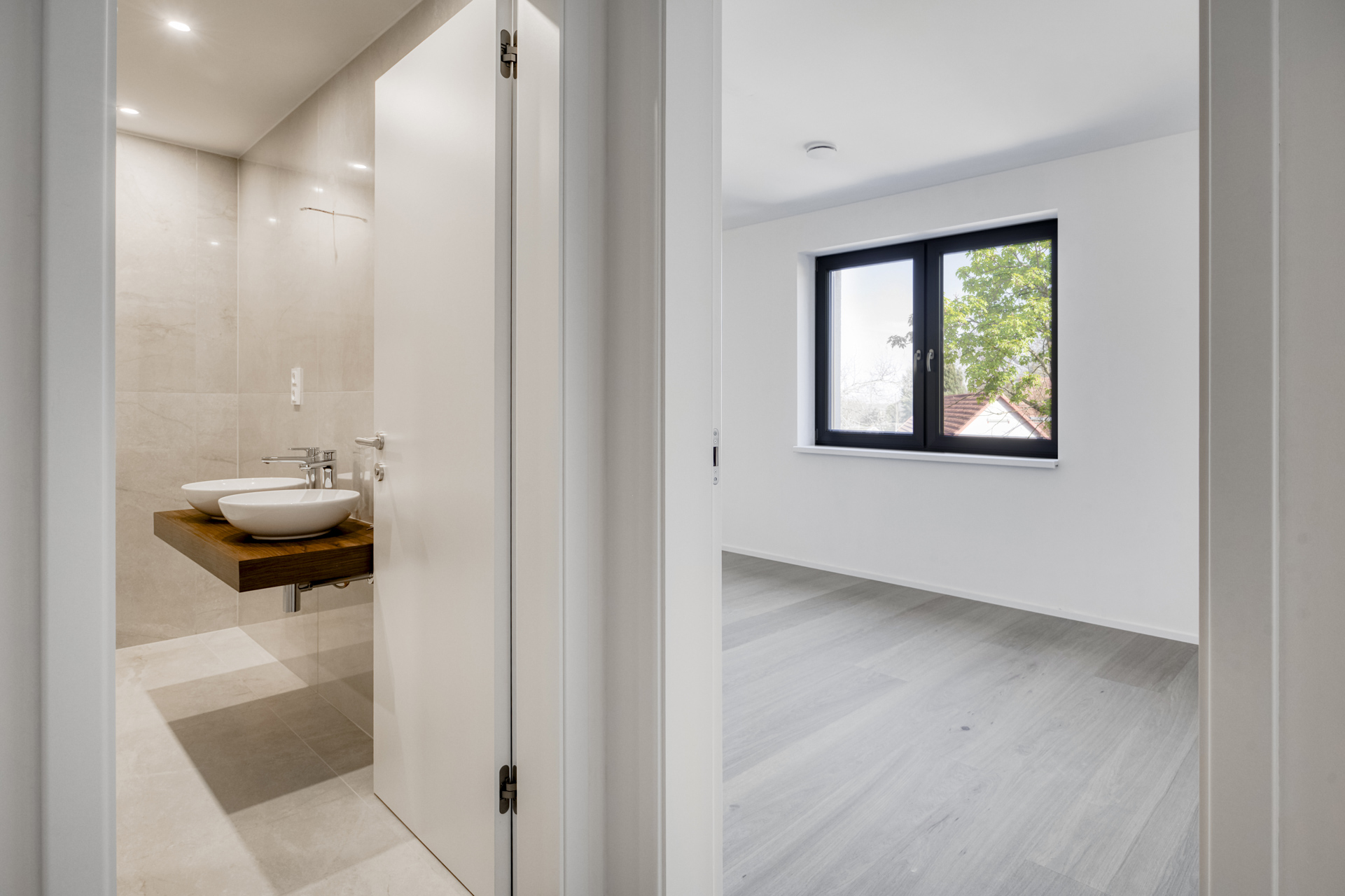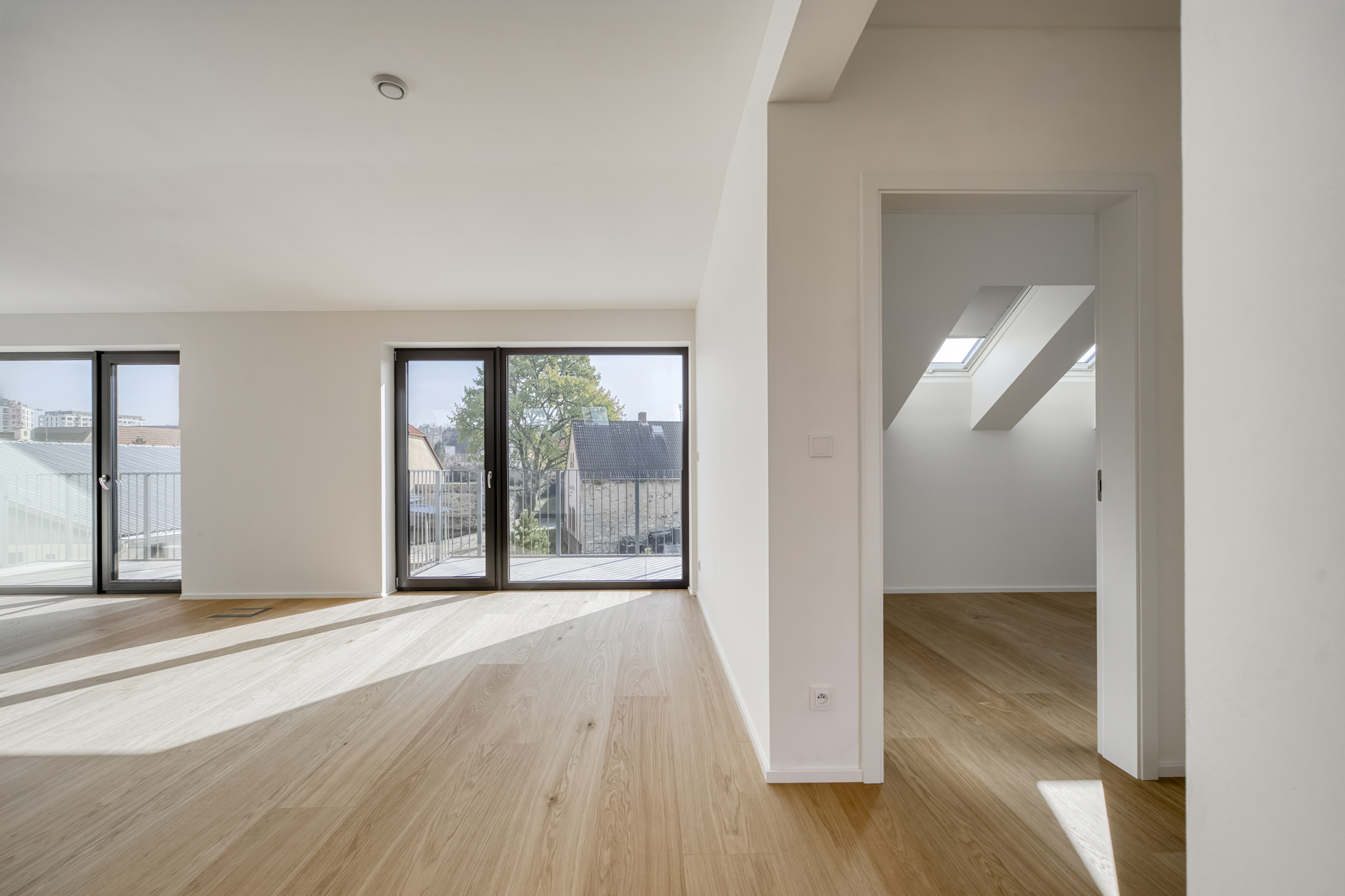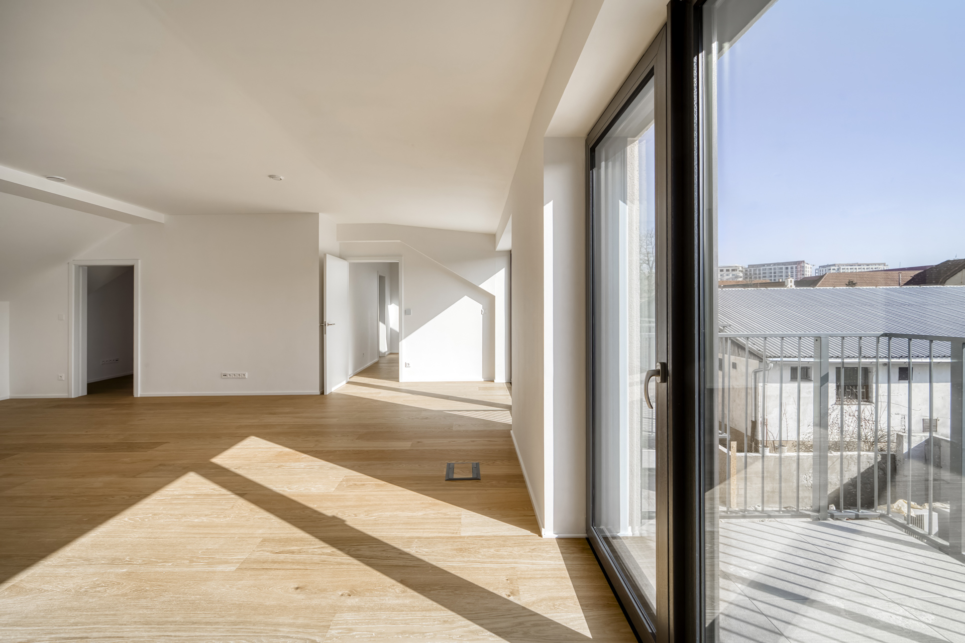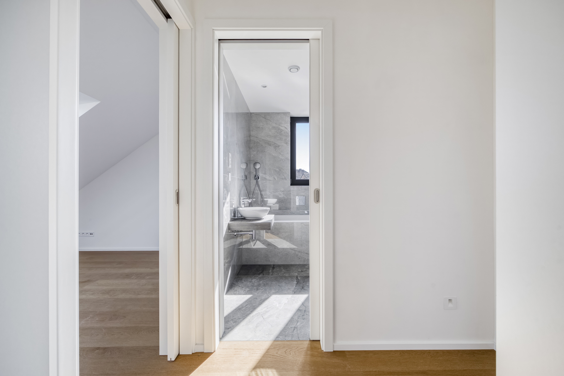 The interior is made to a high standard, including hybrid wooden floors, large-format tiles and sanitary ceramics from the Villeroy & Boch and Hansgrohe brands. Maximum comfort is ensured by the Loxone smart home system, underfloor heating and cooling connected to energy-saving heat pumps and an air recovery system that ensures a healthy indoor climate.