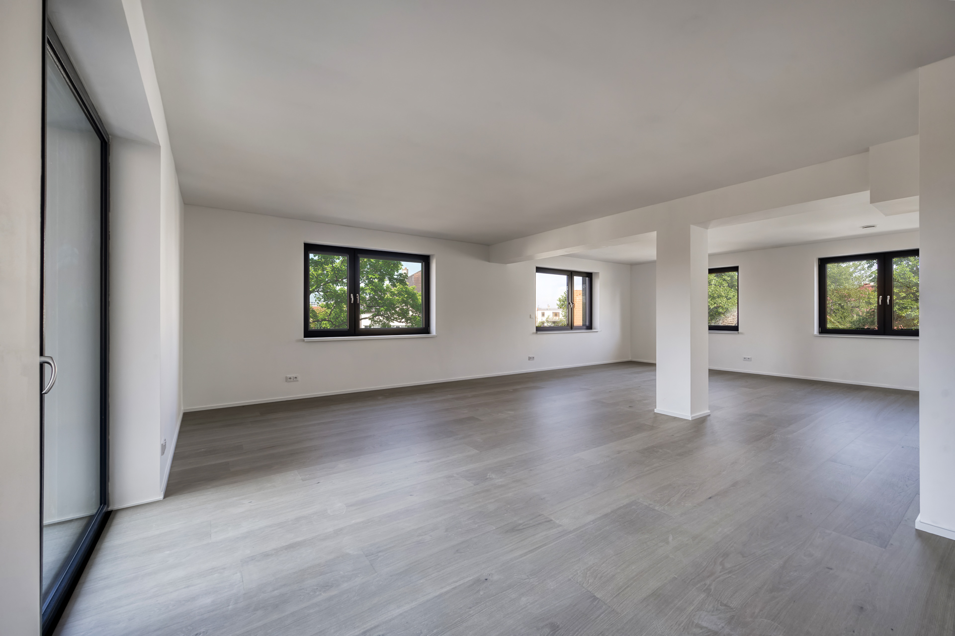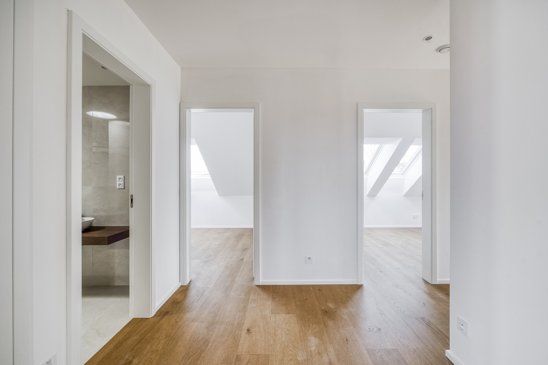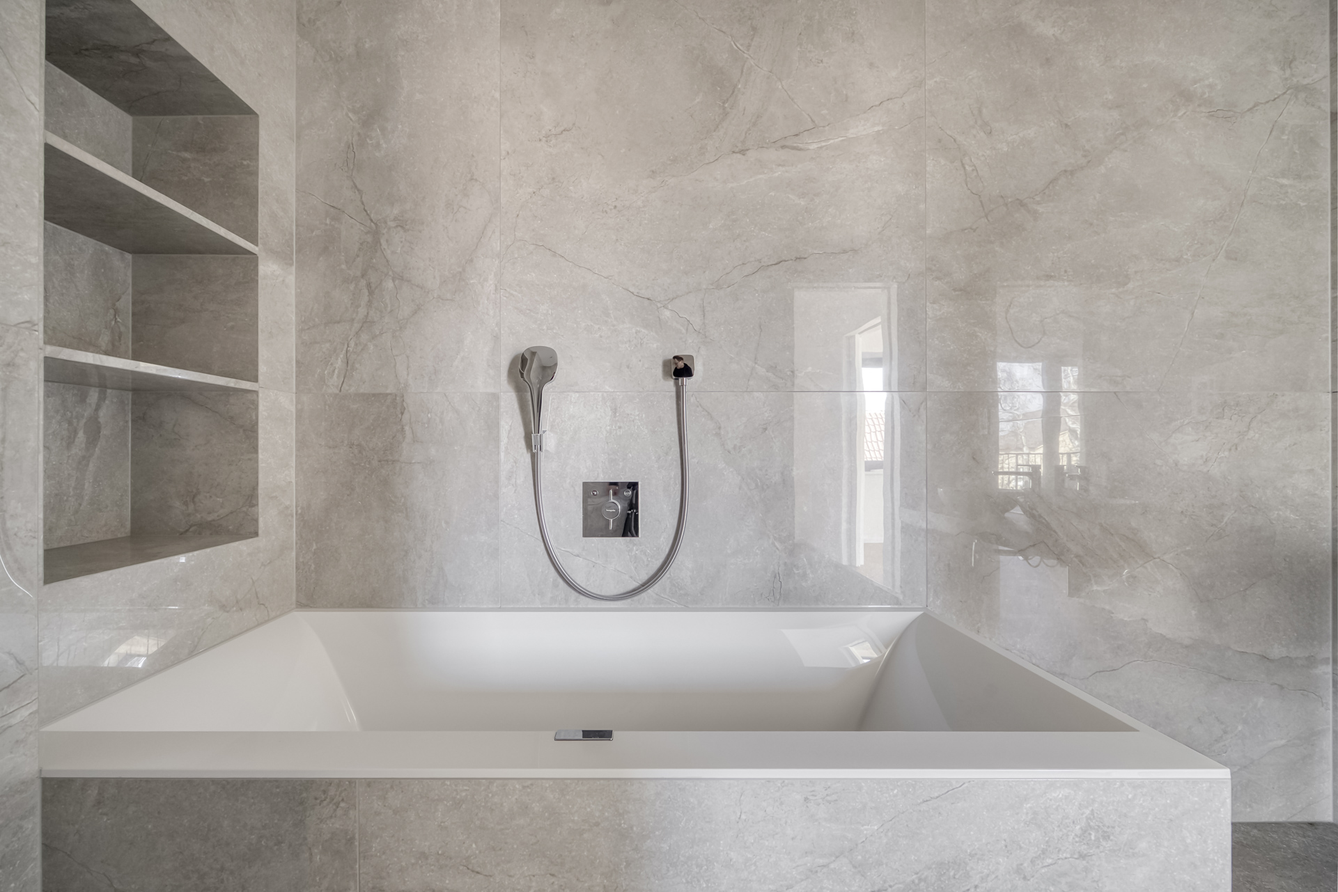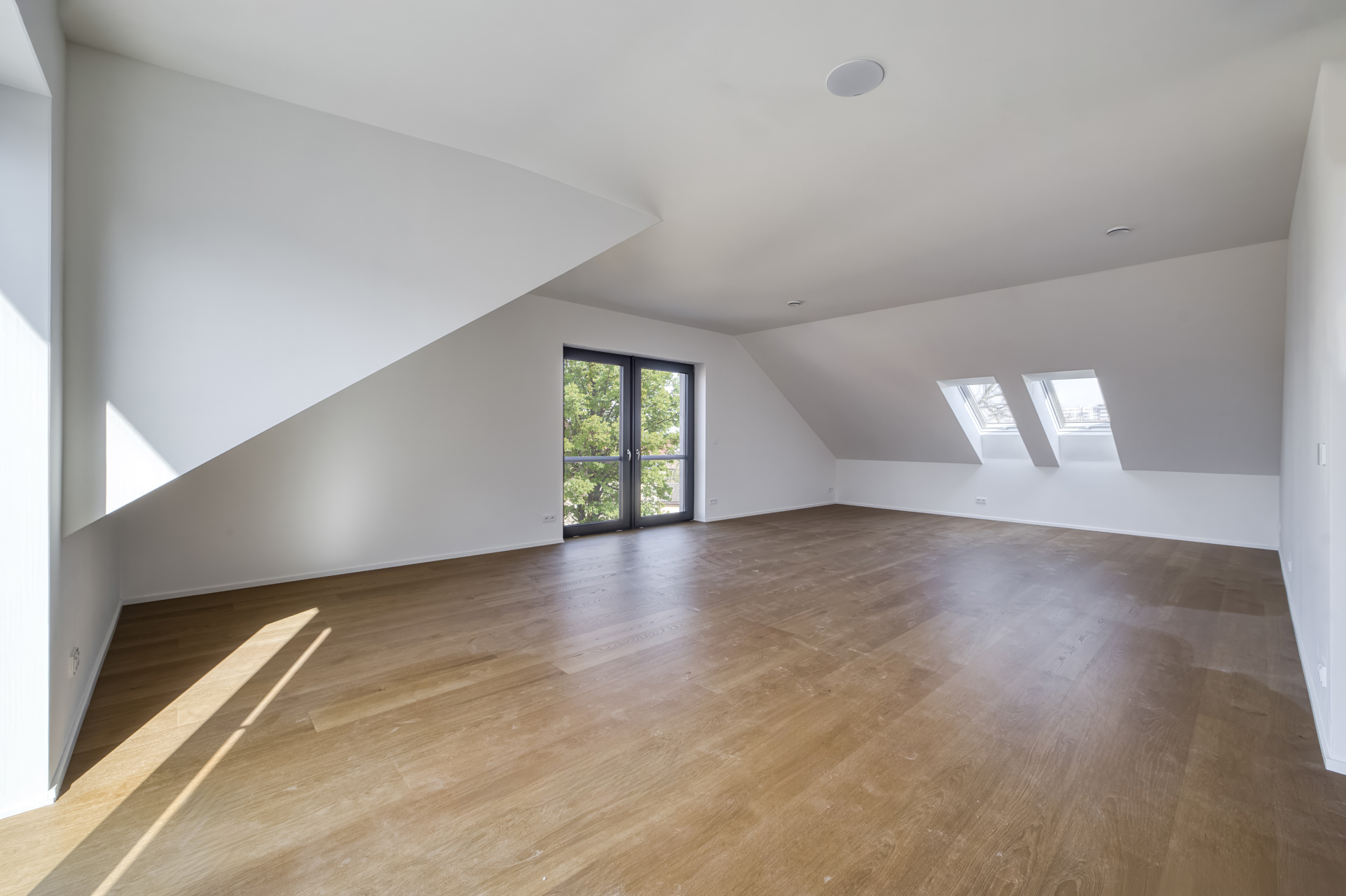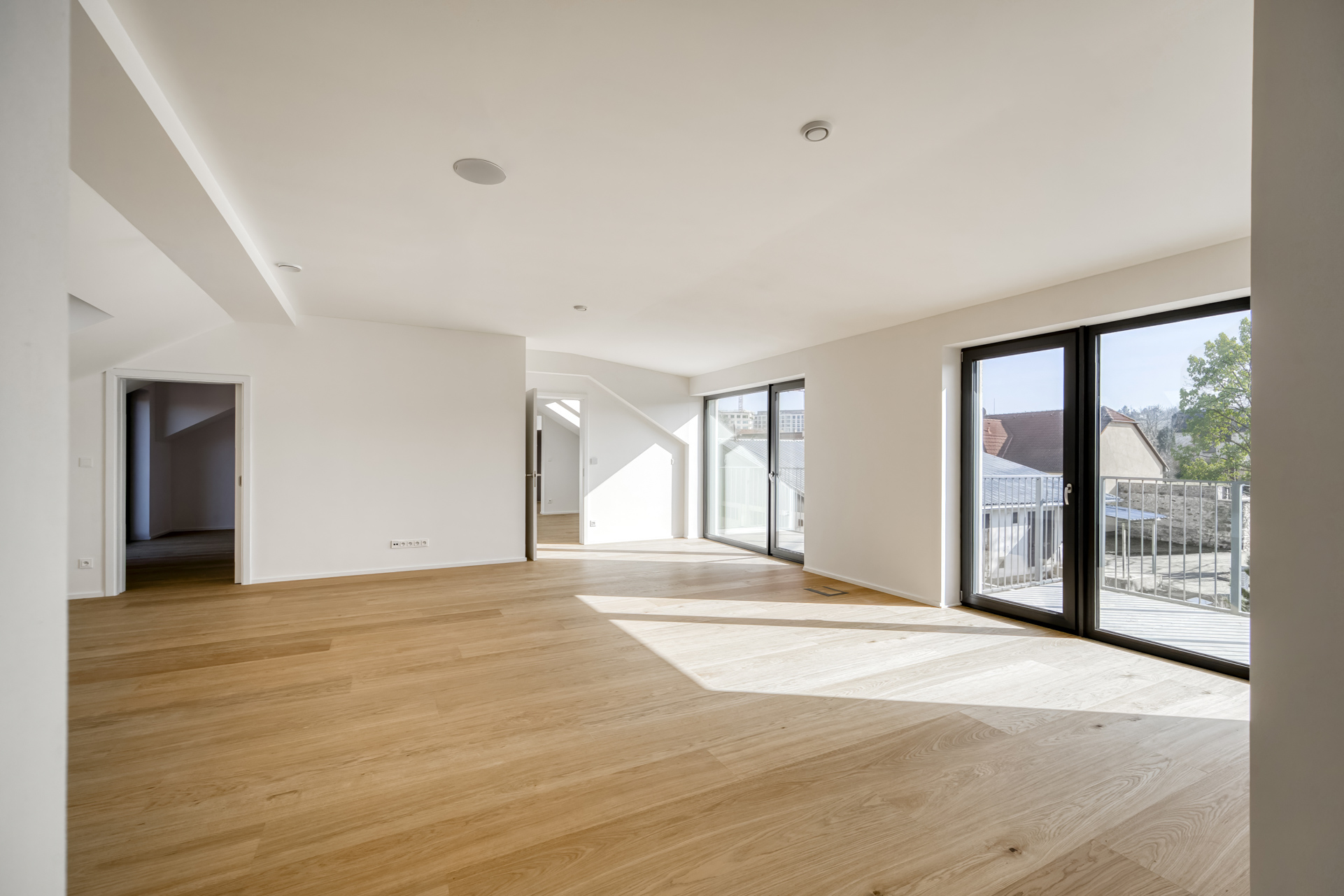 The interior is made to a high standard, including hybrid wooden floors, large-format tiles and sanitary ceramics from the Villeroy & Boch and Hansgrohe brands. Maximum comfort is ensured by the Loxone smart home system, underfloor heating and cooling connected to energy-saving heat pumps and an air recovery system that ensures a healthy indoor climate.