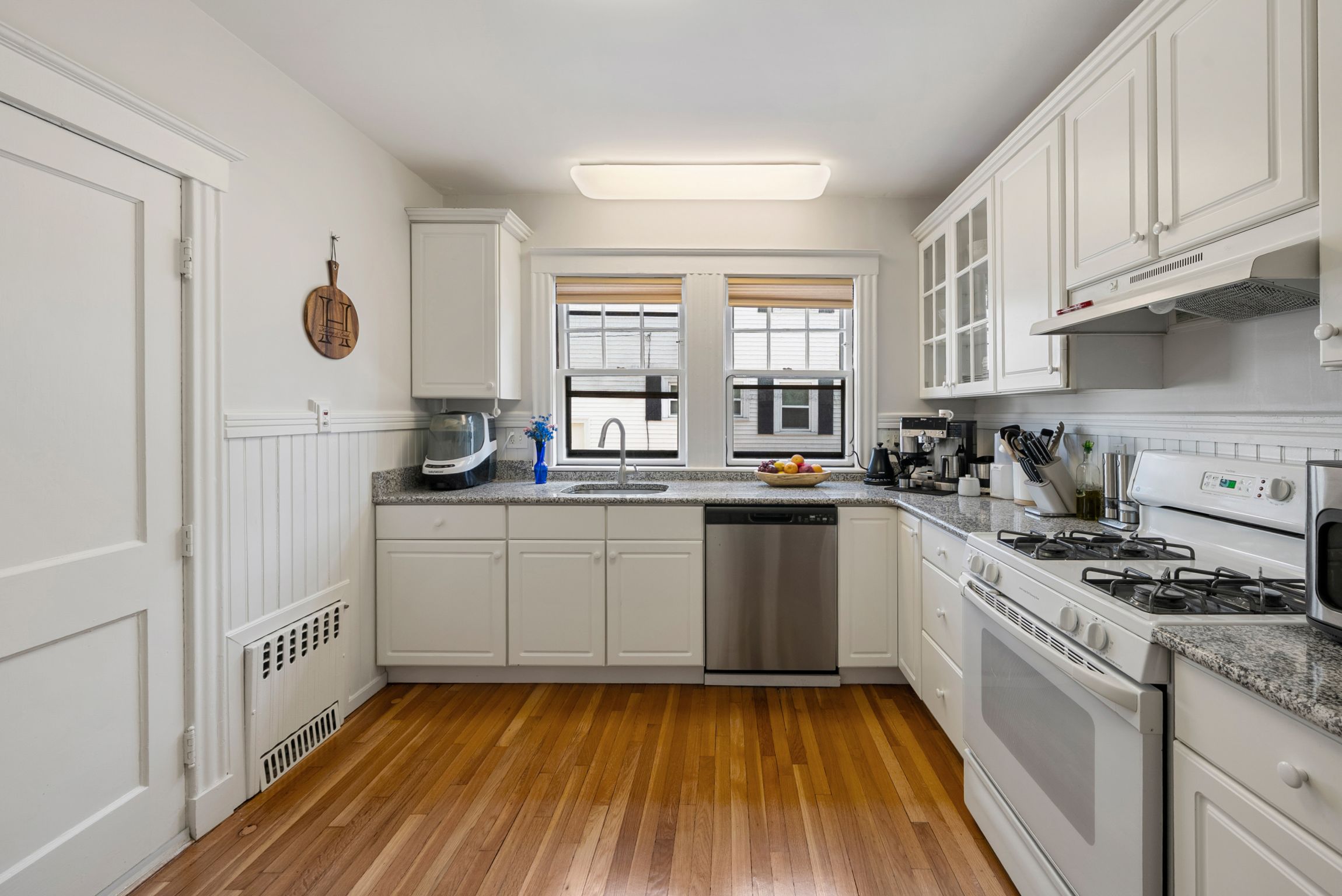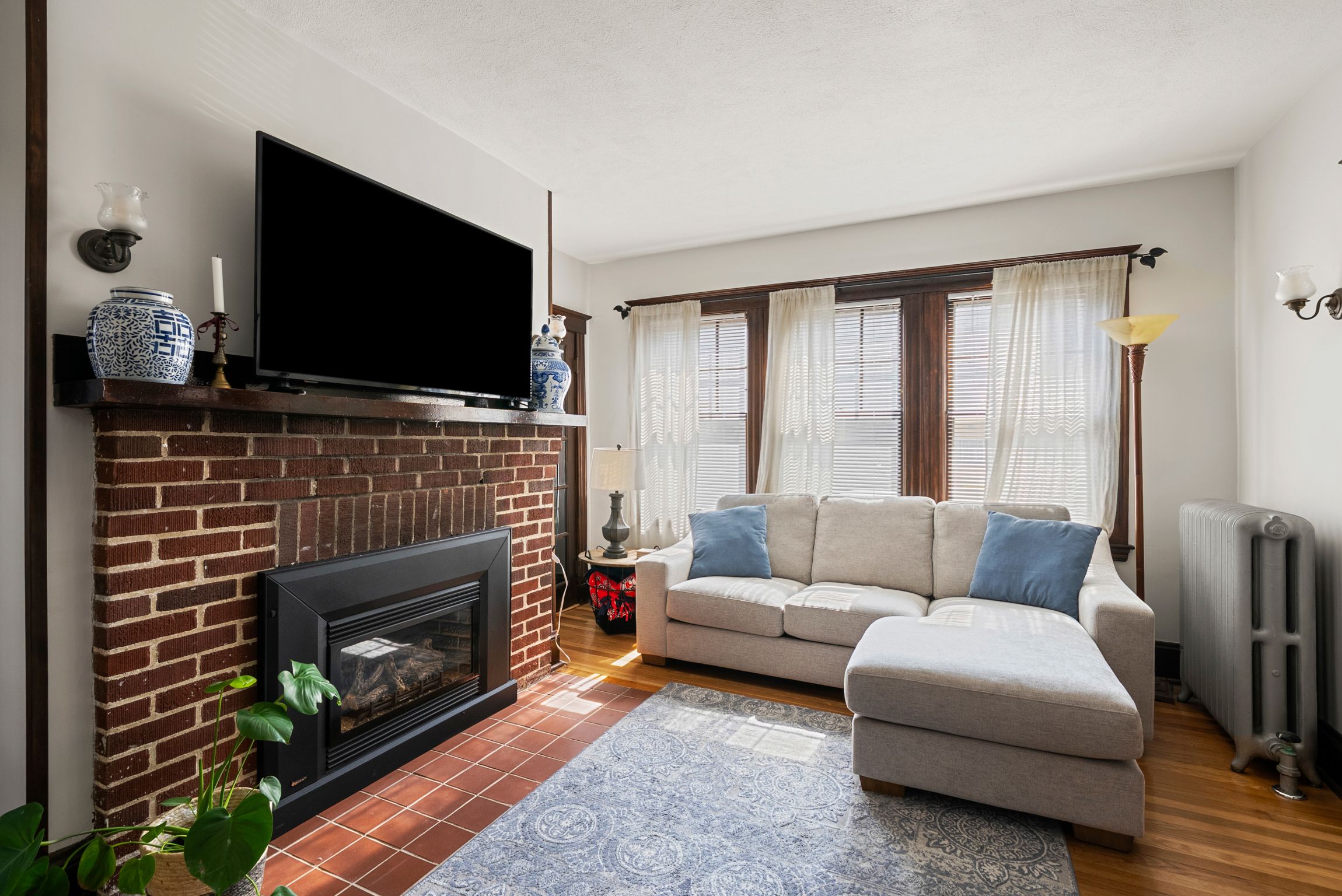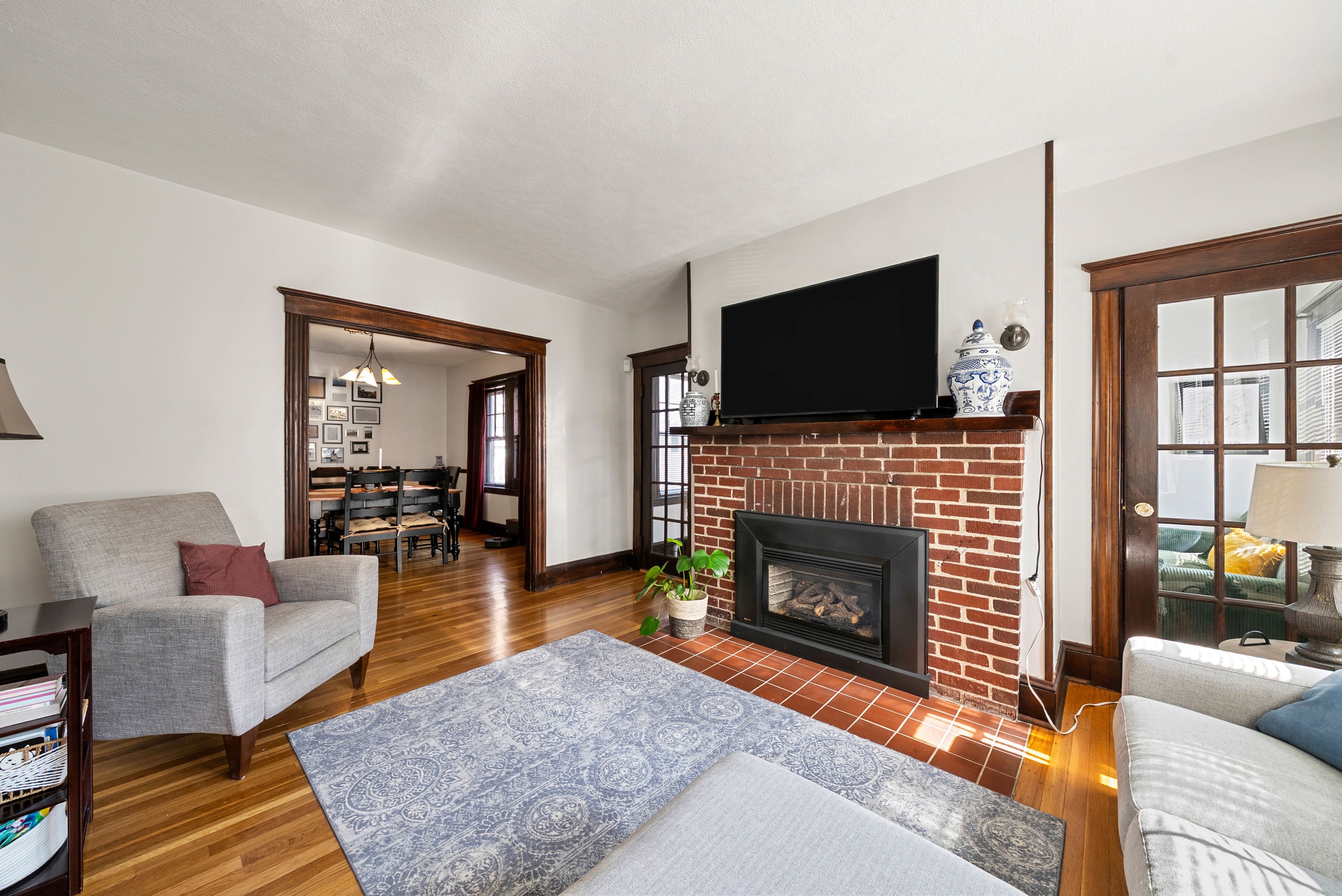 Located in the desirable Pondside neighborhood this charming first floor condominium is just moments to Jamaica Pond. Included with this two bedroom, one bathroom home is a shared backyard with a stone patio perfect for entertaining. A large foyer leads to the living room which features a gas fireplace, a wall of windows and lovely wood trim. Adjacent is a bright sun room doubling as a home office or library. The formal dining room showcases an original built-in china cabinet, chair rail trim and an array of windows filling the space with natural light. The sunny kitchen provides stainless steel dishwasher, gas stove, stone countertops, a separate pantry and access to a back porch. Beautiful wood flooring throughout adds warmth and character. Additional amenities: central A/C, a private storage and laundry area in the basement and garage parking. This prime location allows an easy commute to downtown or Longwood via the Jamaicaway, Orange Line T and Bus 39. Near Centre Street shops and restaurants.