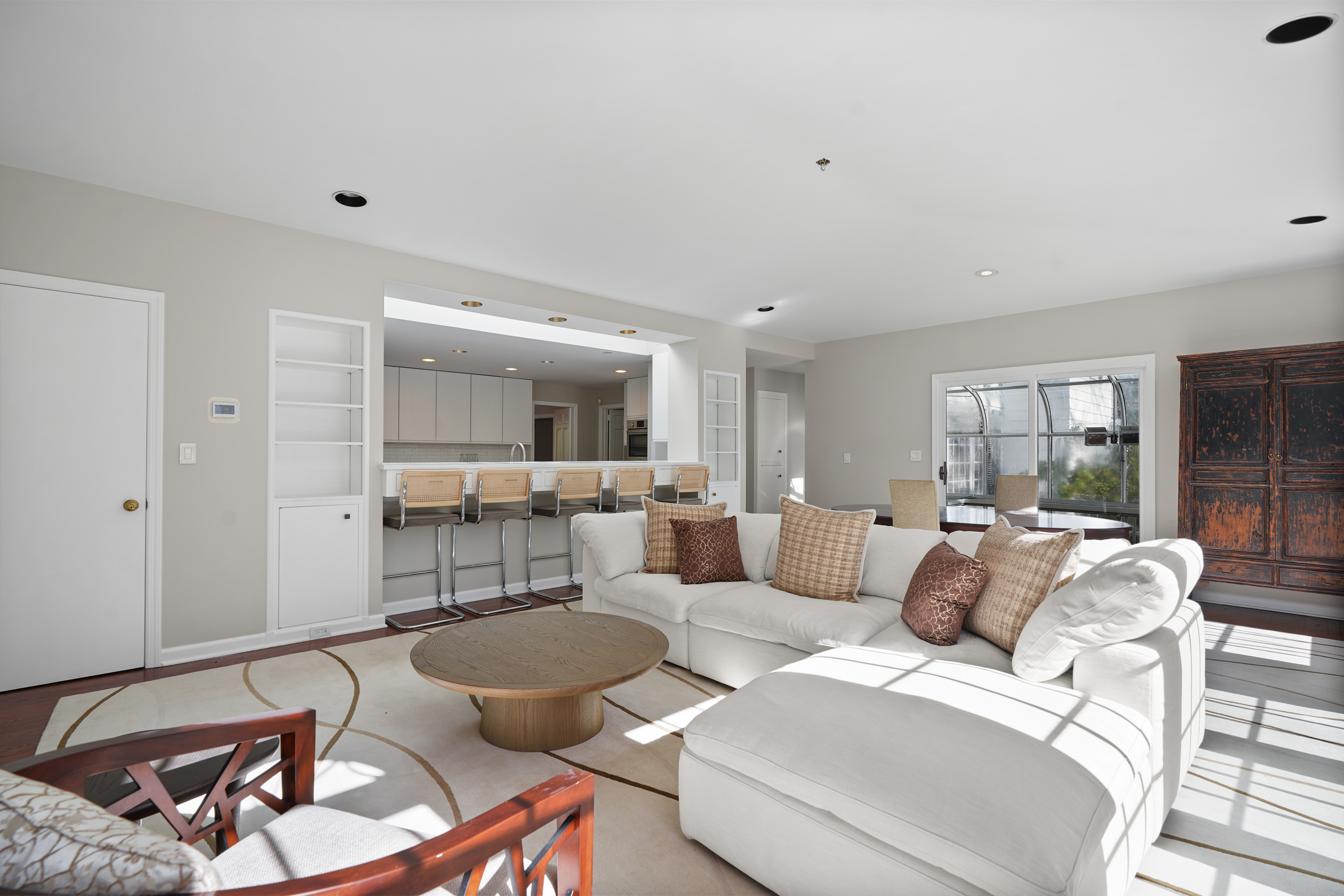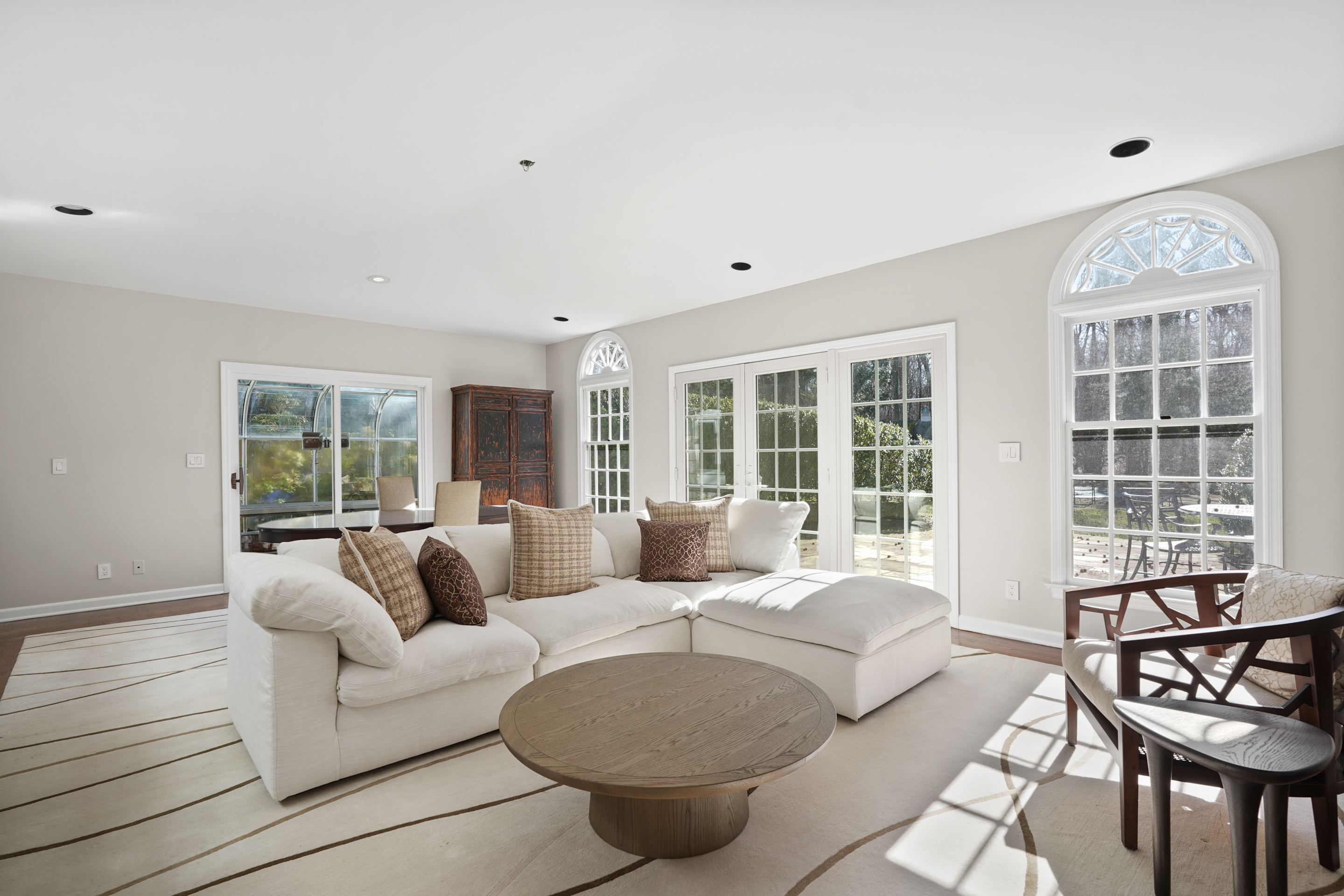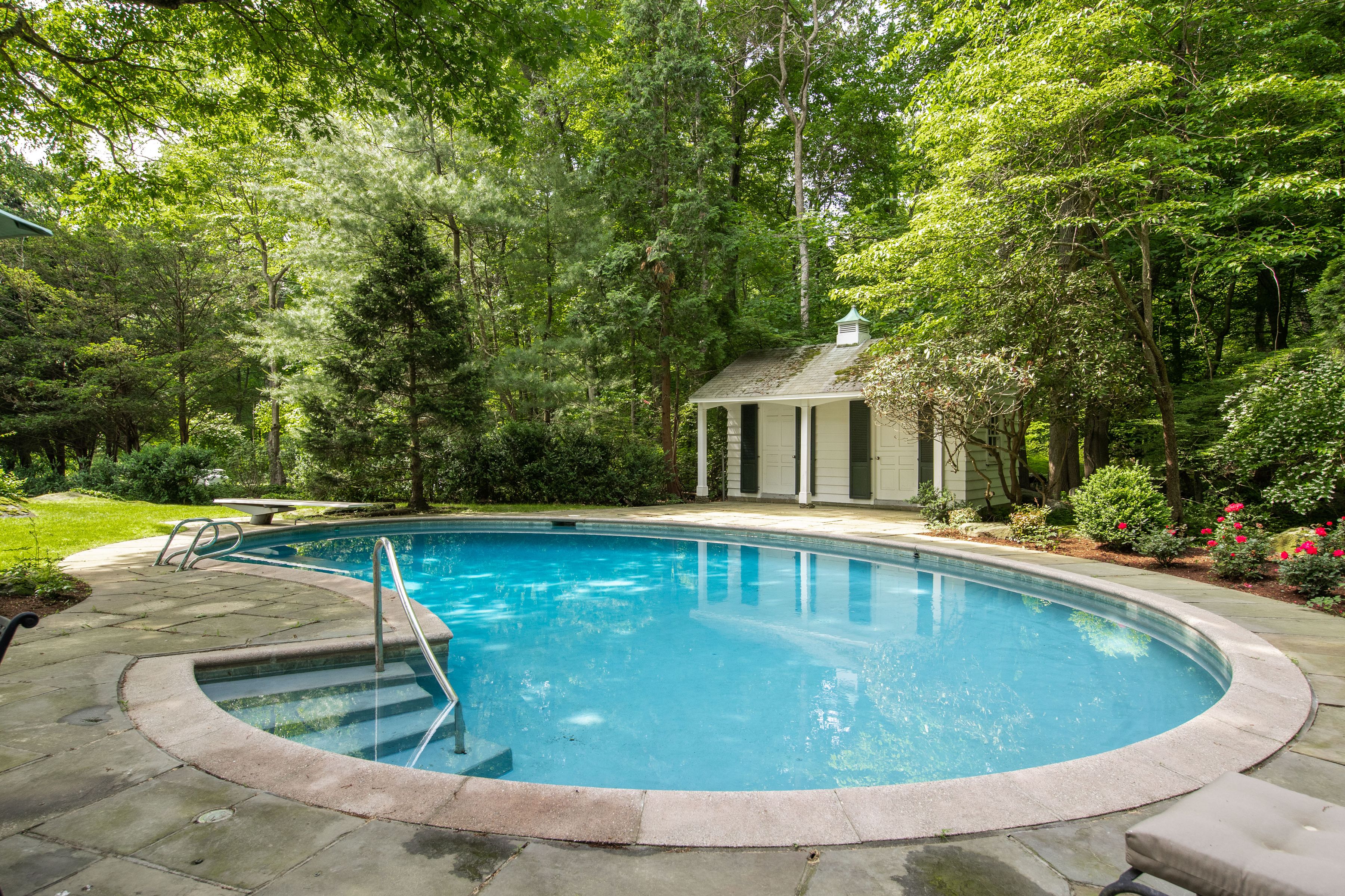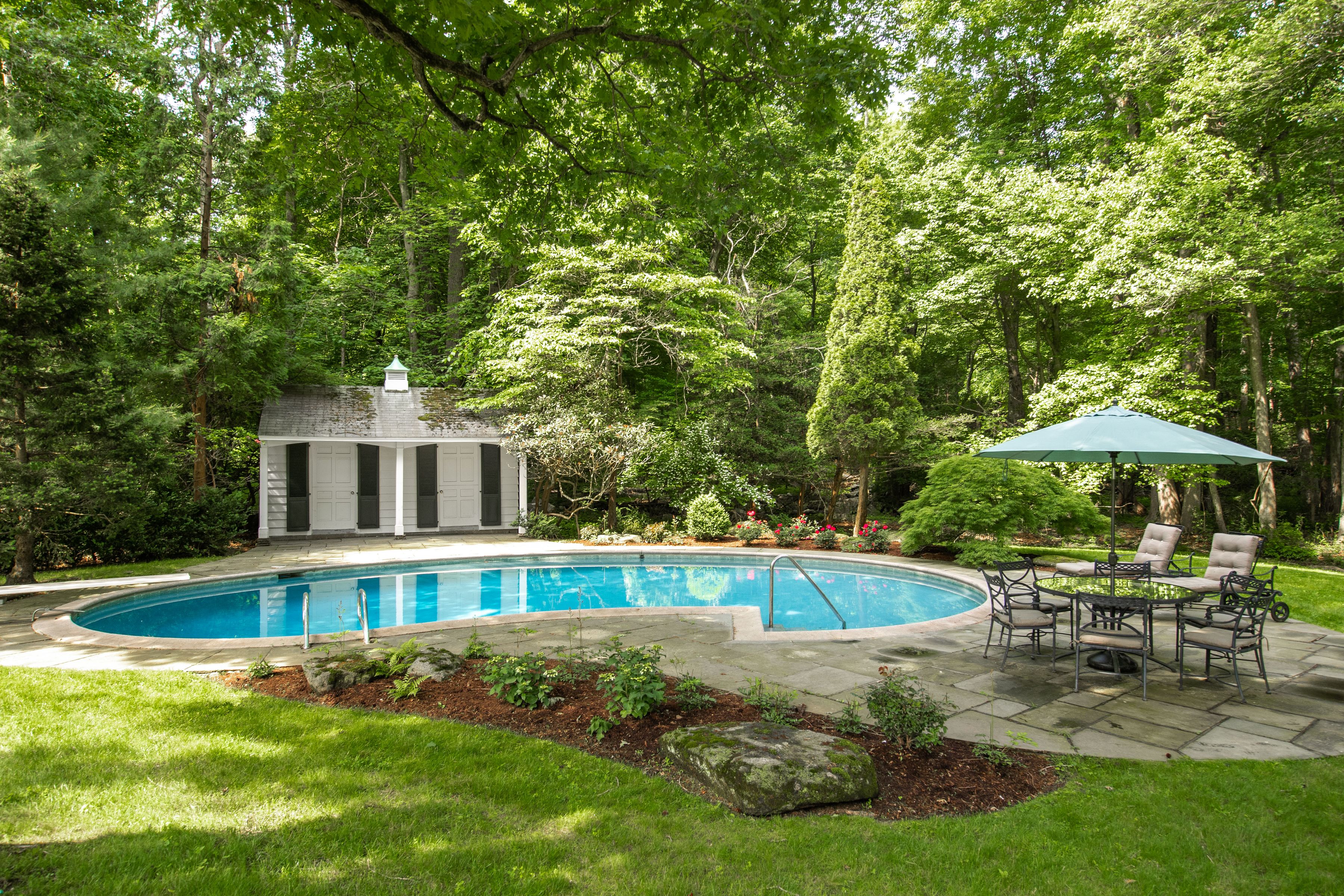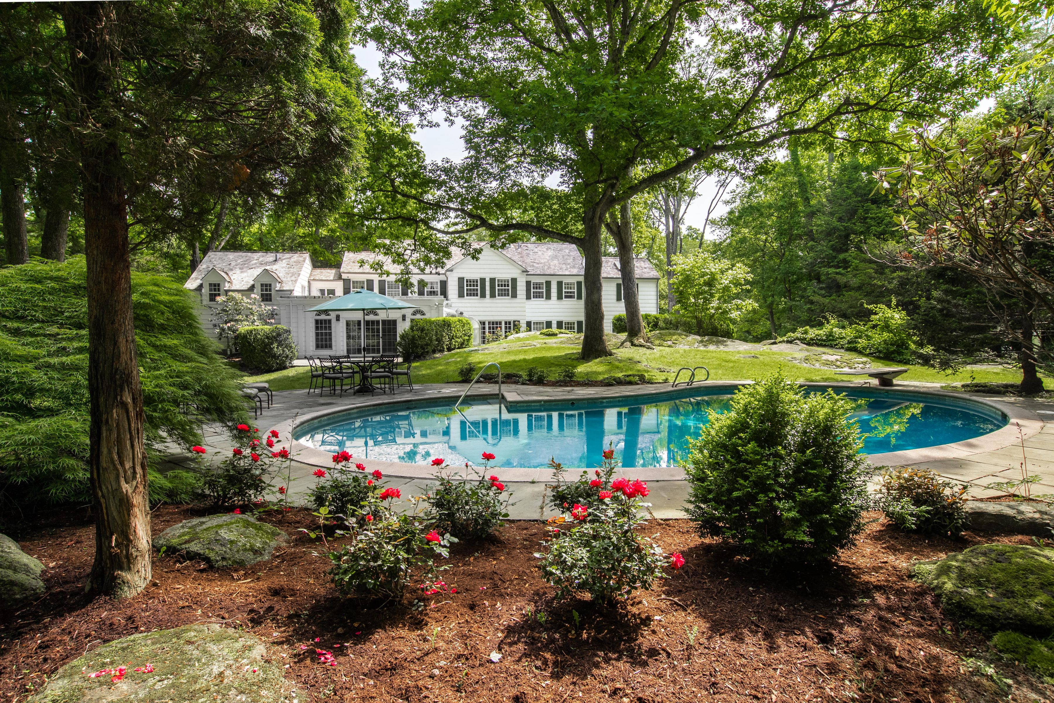 FURNISHED SHORT TERM RENTAL WITH POOL. This timeless brick Georgian offers privacy, proximity to town, and ease. The home features updated top-of-the-line stainless steel appliances and updated systems. Designed for both relaxed living and effortless entertaining, gracious formal living and dining rooms are complemented by an expansive open kitchen and family room with doors to the greenhouse, flagstone terrace and pool. Additional first-floor spaces include a sitting room, private office, and laundry. The sun-lit primary suite offers a generous spa-like bath and ample closet space. Five additional bedrooms and three full baths complete this level. Fully equipped and turnkey, this is an exceptional opportunity to enjoy turnkey Greenwich living.