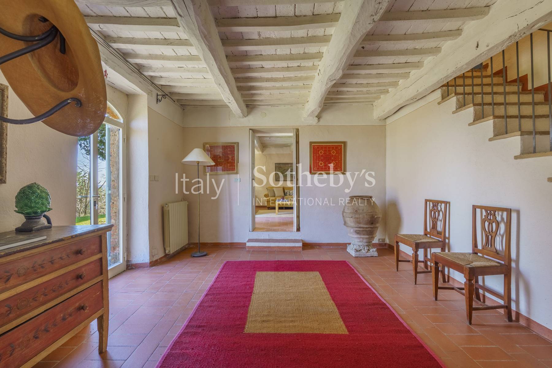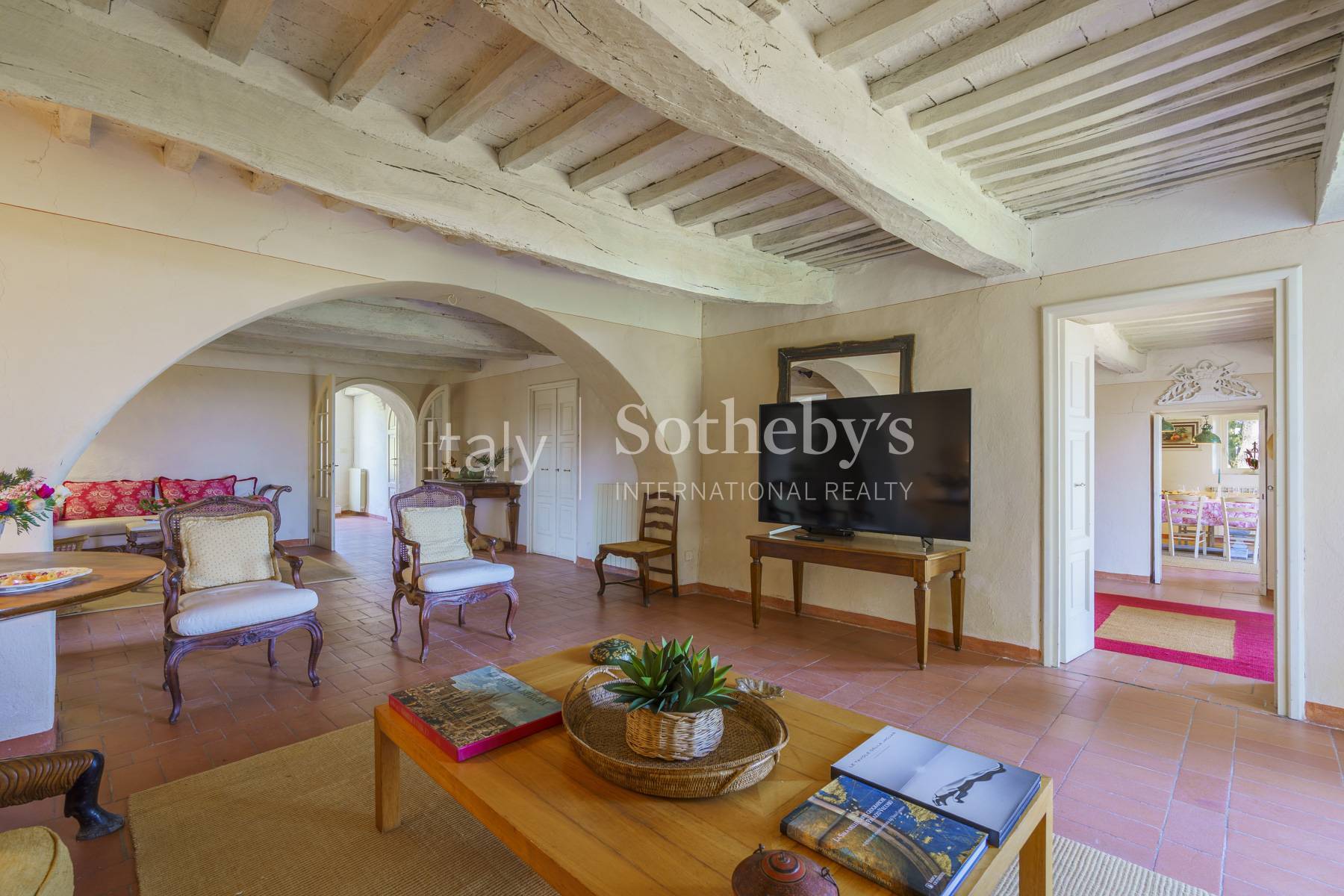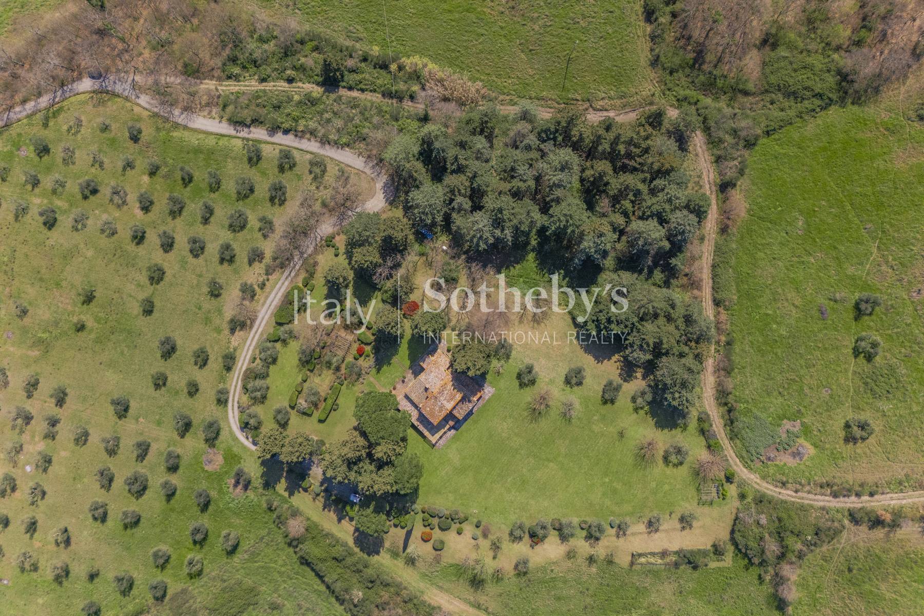 In the charming Piazze area, this magnificent 17th-century villa represents a rare expression of Tuscan elegance and charm. The property, available upon deed, spans approximately 500 square meters (370 square meters of floor space) and stands out for its spaciousness, light, and spaciousness. The interiors are divided into 18 rooms, including impressive reception rooms, refined living spaces, and a kitchen with a large pantry. The villa has four bedrooms and four bathrooms, with the possibility of creating two additional bedrooms, ensuring maximum flexibility and privacy. The property includes a dramatic entrance hall, dining room, reading room, cloakroom, attic, laundry room, woodshed, and an annex for tool storage, as well as a pergola for parking. The property is surrounded by a well-kept garden of approximately 1 hectare, designed by Vivai Margheriti, featuring lighting, an irrigation system, and a charming artificial lake for water supply. The property extends over approximately 15 hectares in total, including 194 olive trees, offering an authentic Tuscan countryside experience. The rooms, enhanced by large windows, enjoy extraordinary panoramic views and natural light that enhances every space, while the exterior offers an atmosphere of absolute tranquility and privacy. A dedicated helicopter landing area adds a further element of exclusivity to the property.