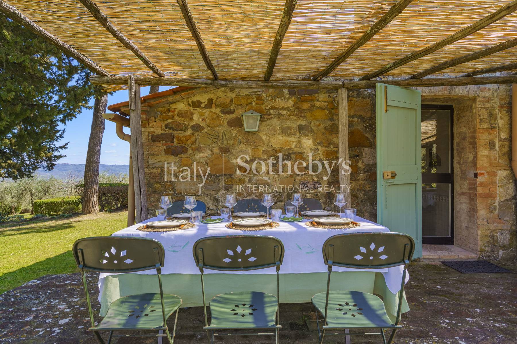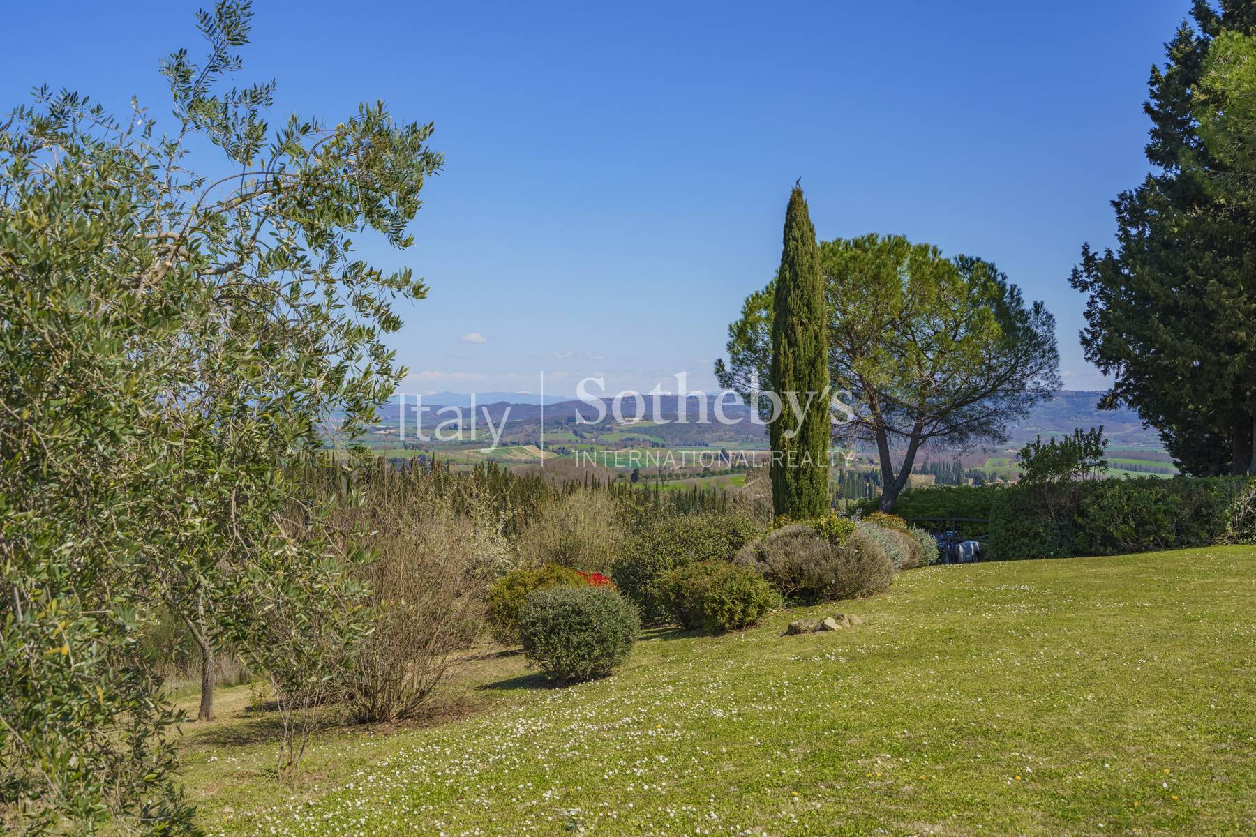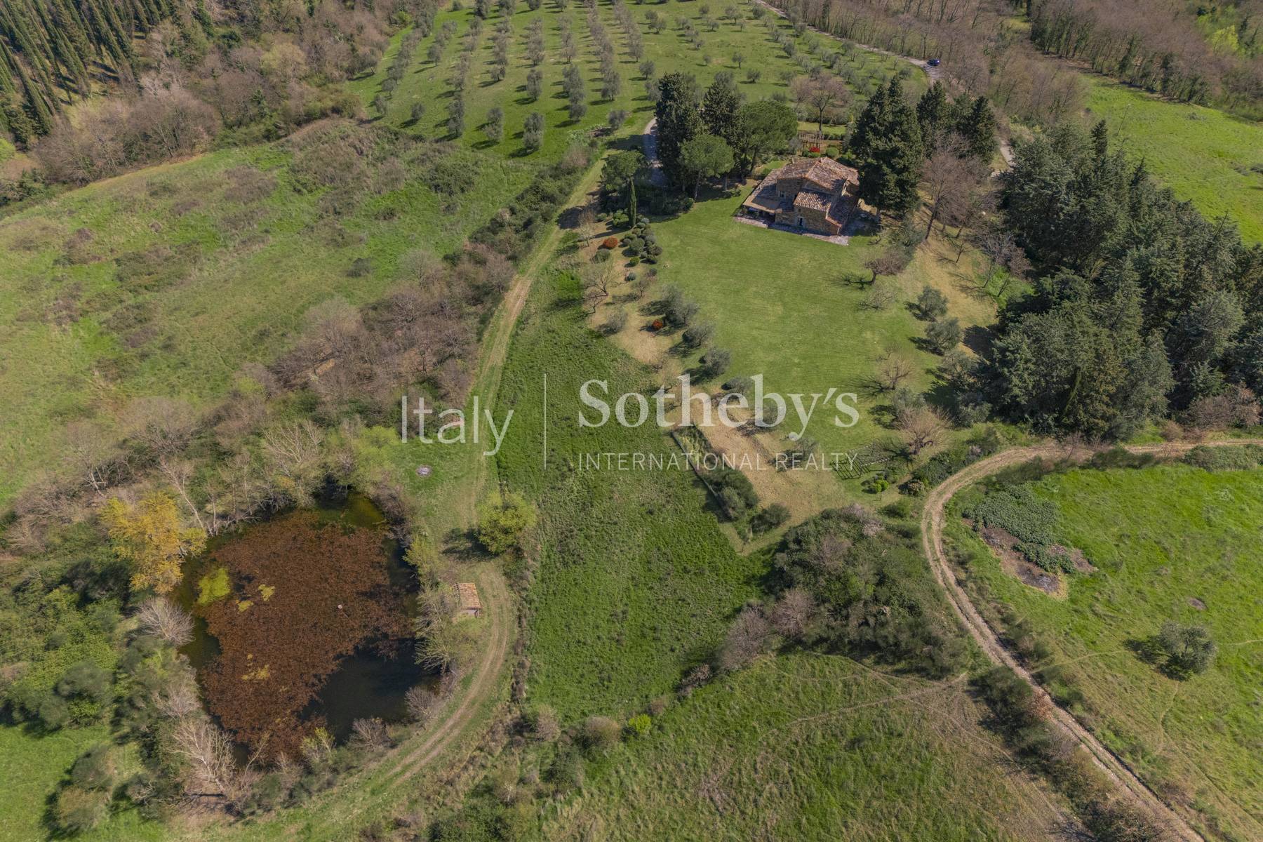 In the charming Piazze area, this magnificent 17th-century villa represents a rare expression of Tuscan elegance and charm. The property, available upon deed, spans approximately 500 square meters (370 square meters of floor space) and stands out for its spaciousness, light, and spaciousness. The interiors are divided into 18 rooms, including impressive reception rooms, refined living spaces, and a kitchen with a large pantry. The villa has four bedrooms and four bathrooms, with the possibility of creating two additional bedrooms, ensuring maximum flexibility and privacy. The property includes a dramatic entrance hall, dining room, reading room, cloakroom, attic, laundry room, woodshed, and an annex for tool storage, as well as a pergola for parking. The property is surrounded by a well-kept garden of approximately 1 hectare, designed by Vivai Margheriti, featuring lighting, an irrigation system, and a charming artificial lake for water supply. The property extends over approximately 15 hectares in total, including 194 olive trees, offering an authentic Tuscan countryside experience. The rooms, enhanced by large windows, enjoy extraordinary panoramic views and natural light that enhances every space, while the exterior offers an atmosphere of absolute tranquility and privacy. A dedicated helicopter landing area adds a further element of exclusivity to the property.