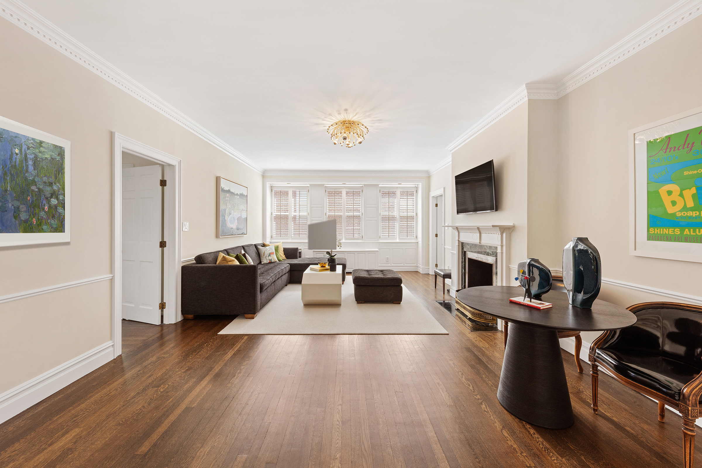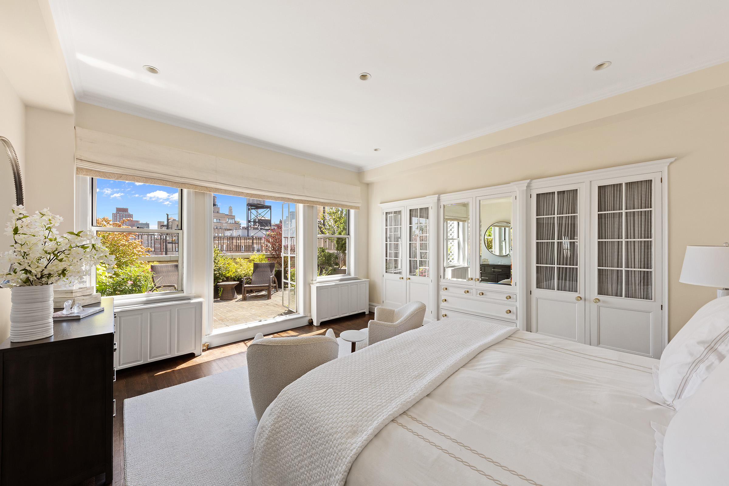 Enter this sun-drenched duplex penthouse via your private elevator. With ~4,200 square feet of interior space and a spectacular 2,200-square-foot wraparound terrace, this 4-5 bedroom co-op is a rare offering of light, outdoor space, and elevation on Fifth Avenue. Bathed in extraordinary natural light throughout the day, the residence benefits from east, south and north exposures that create an open, airy atmosphere. Open city views provide a dynamic and ever-changing backdrop. The living and dining rooms capture both the light and openness. Anchored by a gas fireplace, the living room flows seamlessly into a bright dining room—creating a comfortable and inviting setting for both daily living and entertaining. The Poggenpohl eat-in kitchen is thoughtfully designed for both function and ease, with generous space for casual dining, effortless connection to the main living areas and direct access to the terrace. A full bathroom is conveniently located nearby. The primary suite offers a peaceful retreat, also with direct access to the terrace and open city views. Three additional bright bedrooms are situated on the lower level, along with a media room that enhances the home’s flexibility. A separate fifth bedroom with en suite bath provides ideal space for guests, staff, or a private office. The wraparound terrace is a defining feature—an expansive, beautifully planted outdoor space that functions as a true garden in the sky. With multiple exposures and wide-open city views, it offers opportunities for outdoor dining, entertaining, and quiet retreat above the city. Additional highlights include two fireplaces, central air conditioning on the upper level with through-the-wall air conditioning below, and a windowed private adjacent laundry room. Two storage rooms transfer with the sale. 1158 Fifth Avenue is a distinguished white-glove cooperative offering 24-hour doormen, a live-in resident manager, fitness center, bicycle storage, private storage and central laundry. Pet friendly. 2.5% flip tax by buyer. 40% financing permitted. Penthouse residences on Fifth Avenue with this level of light, outdoor space, and scale are exceptionally rare.