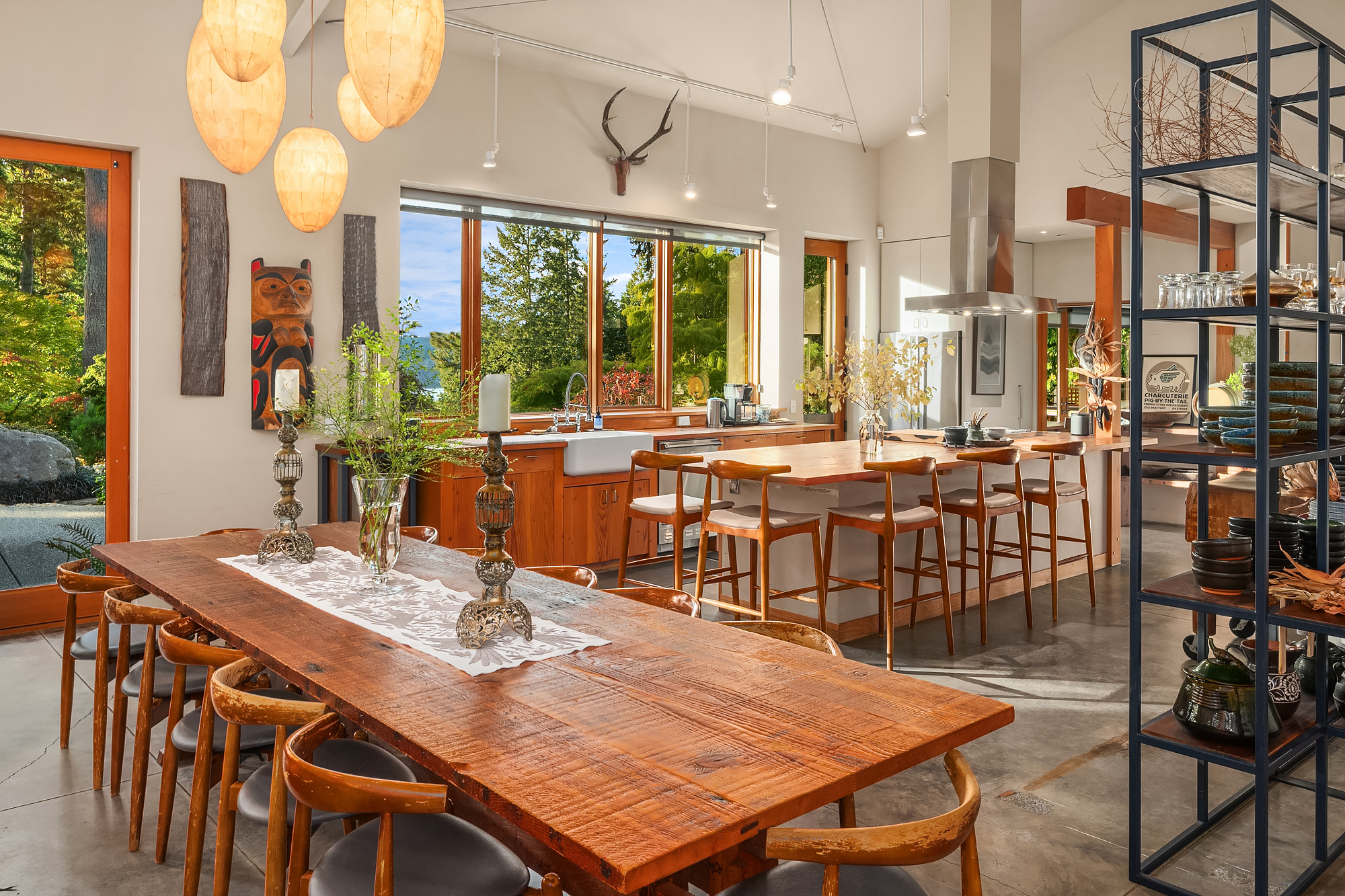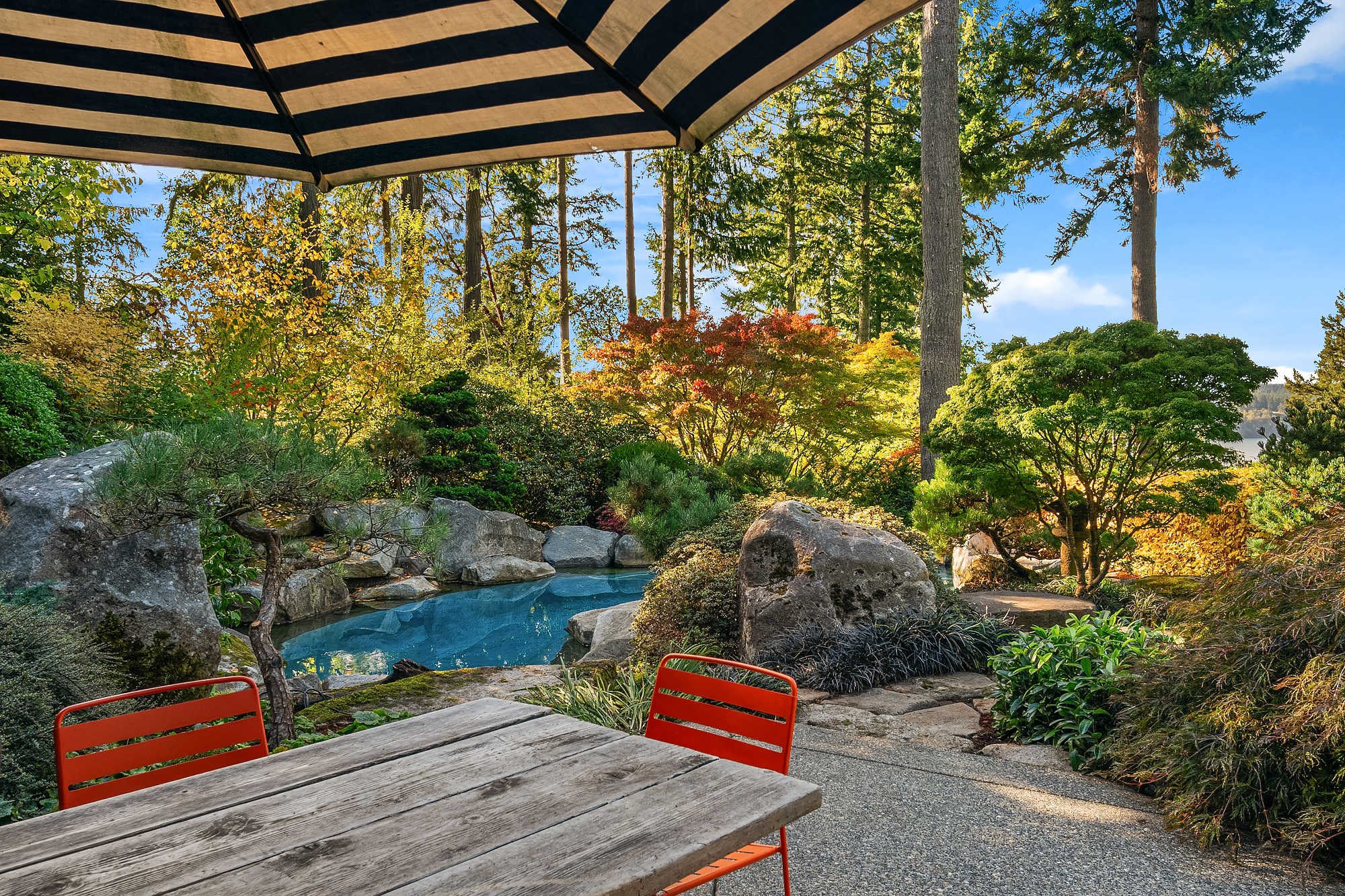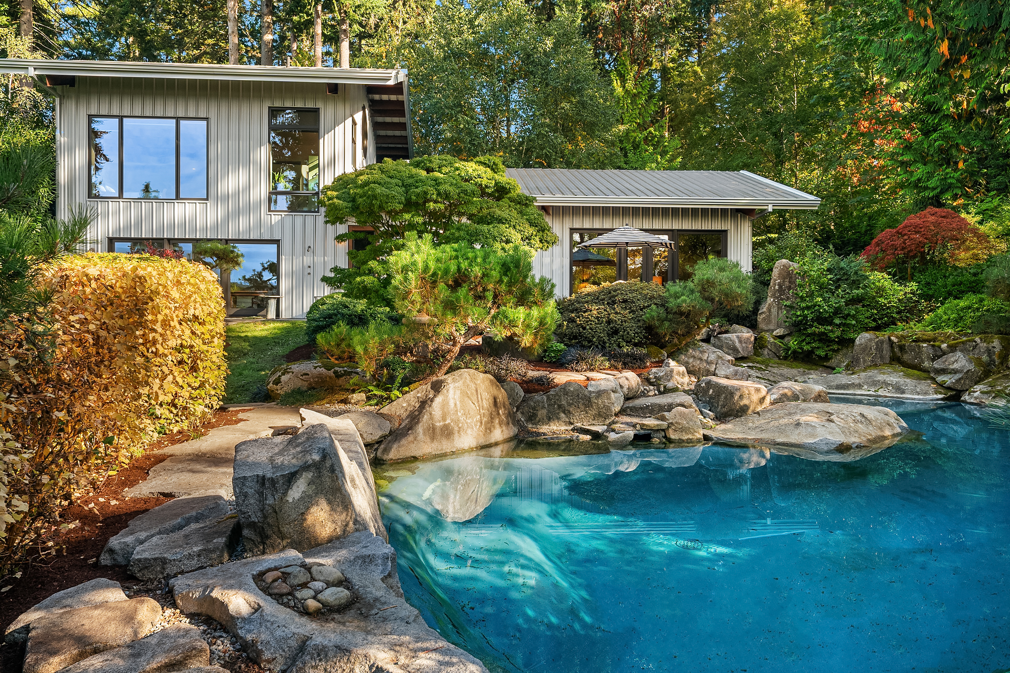 A rare Vashon Island view estate with sweeping Sound views and a stunning panorama of the snow-capped Olympic Mountains. Set on 2 private, fully fenced acres, this Northwest contemporary offers exceptional privacy, curated landscaping, and a seamless connection to the outdoors. The grounds were expertly designed by renowned landscape designer Terry Welch and feature lush lawns, mature Japanese maples, sculpted evergreens, and beautifully layered gardens that create a serene, destination-worthy setting. At the center of the outdoor experience is a dramatic black rock-surrounded saltwater pool, also designed by Terry Welch, with expansive terraces ideal for outdoor dining, entertaining, and quiet evenings under the stars. Inside, vaulted ceilings, generous windows, and exceptional natural light frame the water and mountain views throughout the home. Warm, refined finish materials, including cedar, concrete, and handmade hardwoods, bring together modern craftsmanship and timeless Northwest design. The chef's kitchen was created for serious cooking and inspired gathering, owned by a James Beard Award-winning chef, and opens to the home's main living spaces for easy everyday living and entertaining. A 4-bedroom septic adds flexibility. First time on the market, this is an exceptionally private Vashon Island home with Olympic Mountain and Sound views, designer gardens, and a resort-like pool experience.