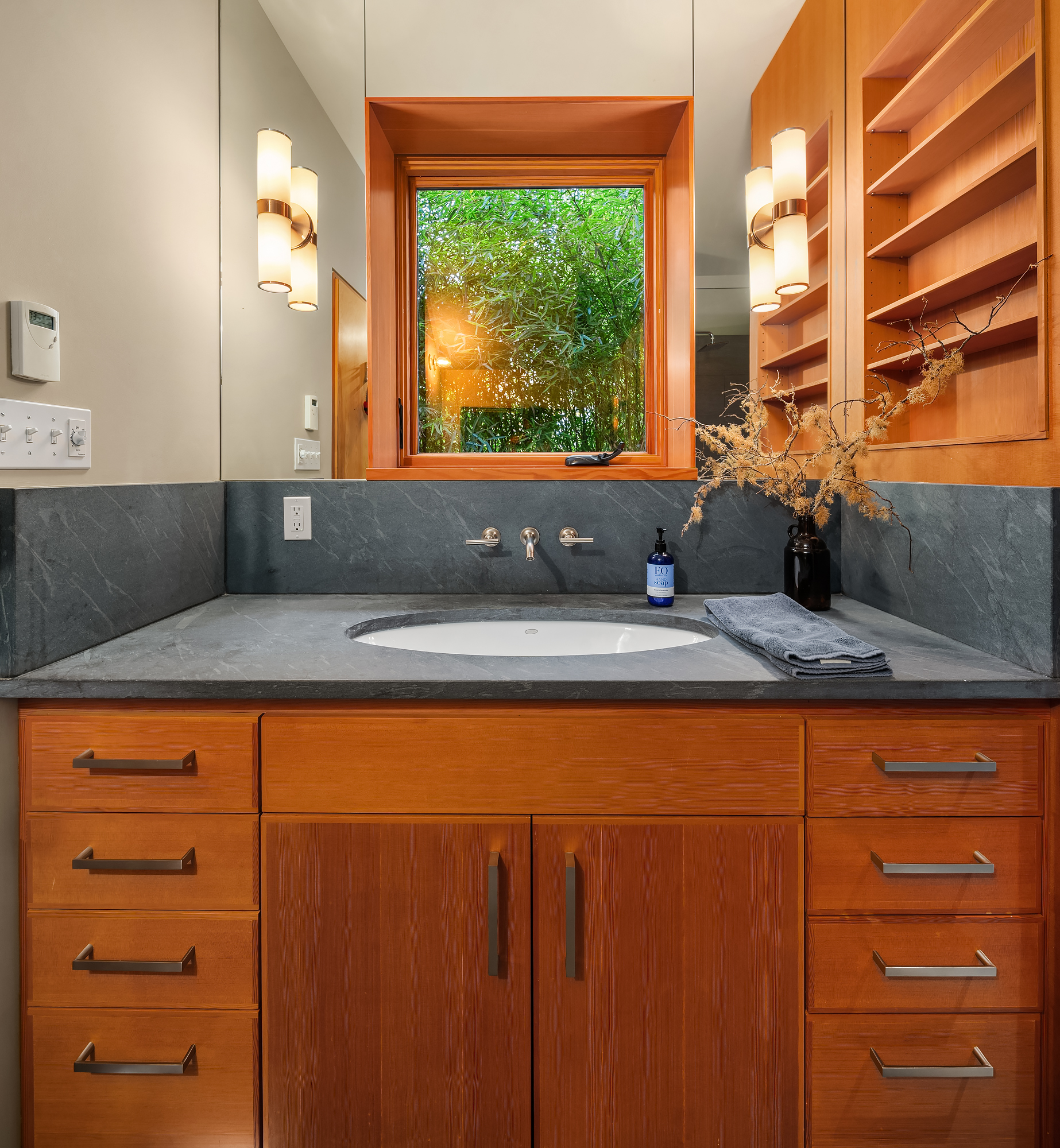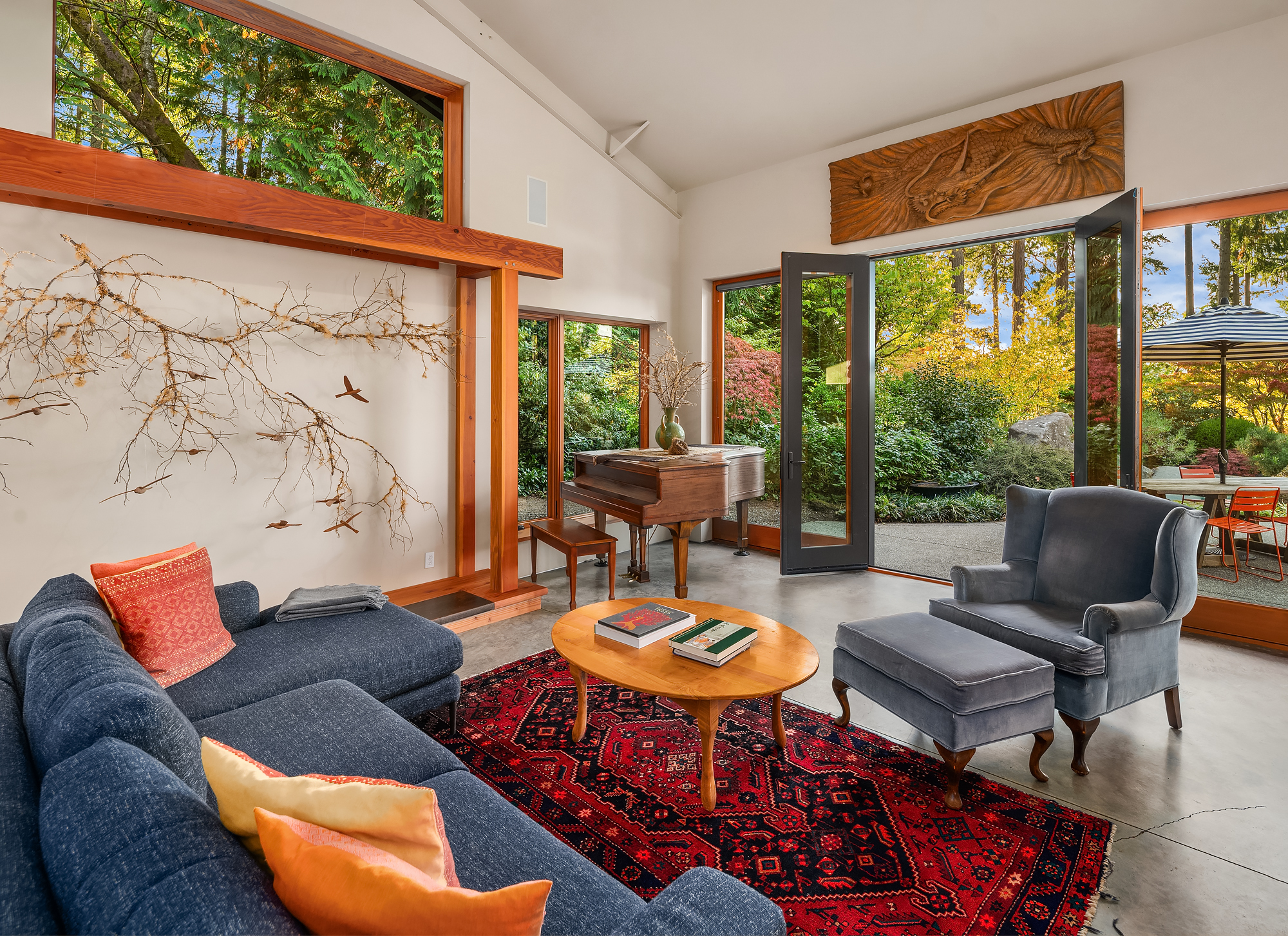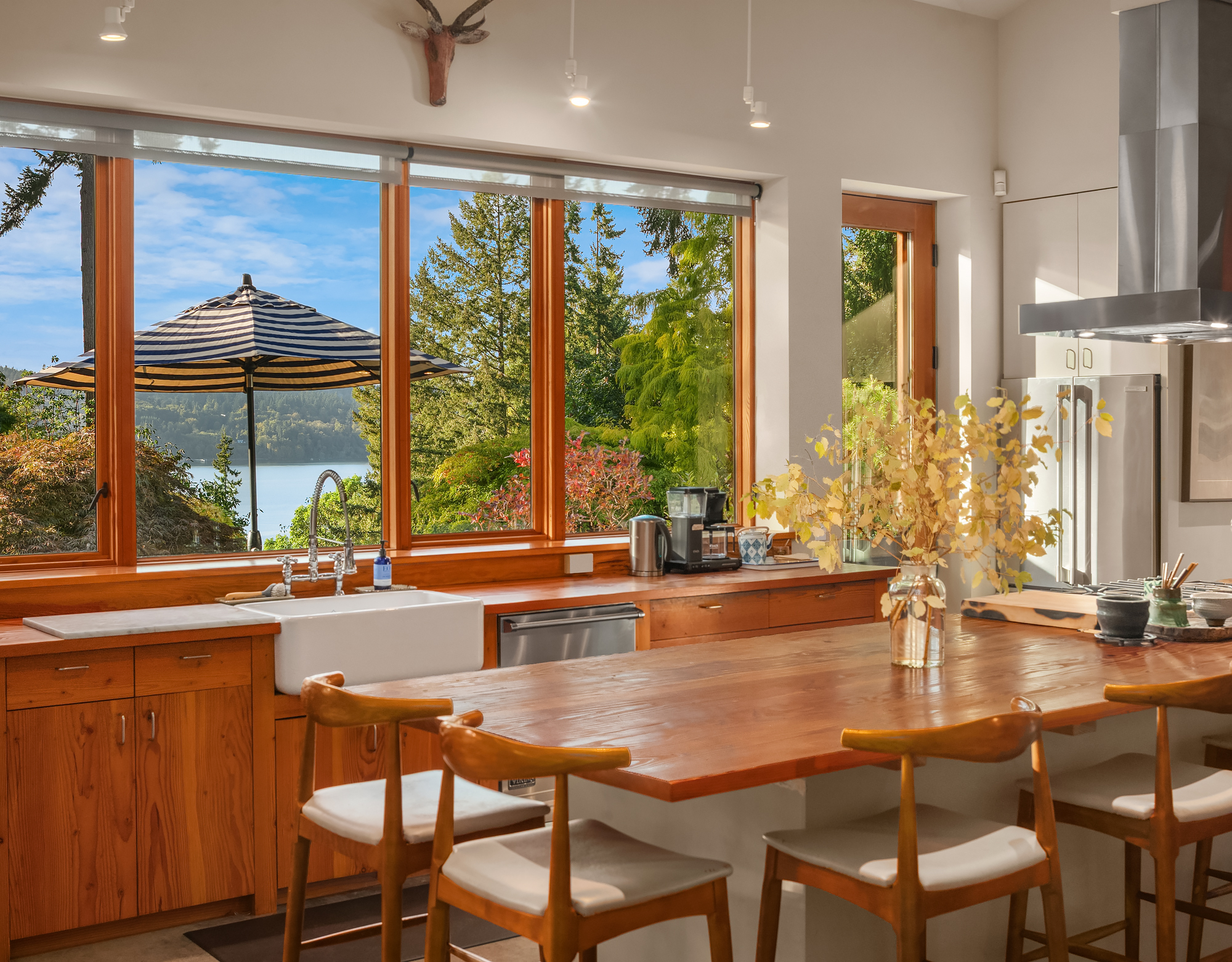 A rare Vashon Island view estate with sweeping Sound views and a stunning panorama of the snow-capped Olympic Mountains. Set on 2 private, fully fenced acres, this Northwest contemporary offers exceptional privacy, curated landscaping, and a seamless connection to the outdoors. The grounds were expertly designed by renowned landscape designer Terry Welch and feature lush lawns, mature Japanese maples, sculpted evergreens, and beautifully layered gardens that create a serene, destination-worthy setting. At the center of the outdoor experience is a dramatic black rock-surrounded saltwater pool, also designed by Terry Welch, with expansive terraces ideal for outdoor dining, entertaining, and quiet evenings under the stars. Inside, vaulted ceilings, generous windows, and exceptional natural light frame the water and mountain views throughout the home. Warm, refined finish materials, including cedar, concrete, and handmade hardwoods, bring together modern craftsmanship and timeless Northwest design. The chef's kitchen was created for serious cooking and inspired gathering, owned by a James Beard Award-winning chef, and opens to the home's main living spaces for easy everyday living and entertaining. A 4-bedroom septic adds flexibility. First time on the market, this is an exceptionally private Vashon Island home with Olympic Mountain and Sound views, designer gardens, and a resort-like pool experience.