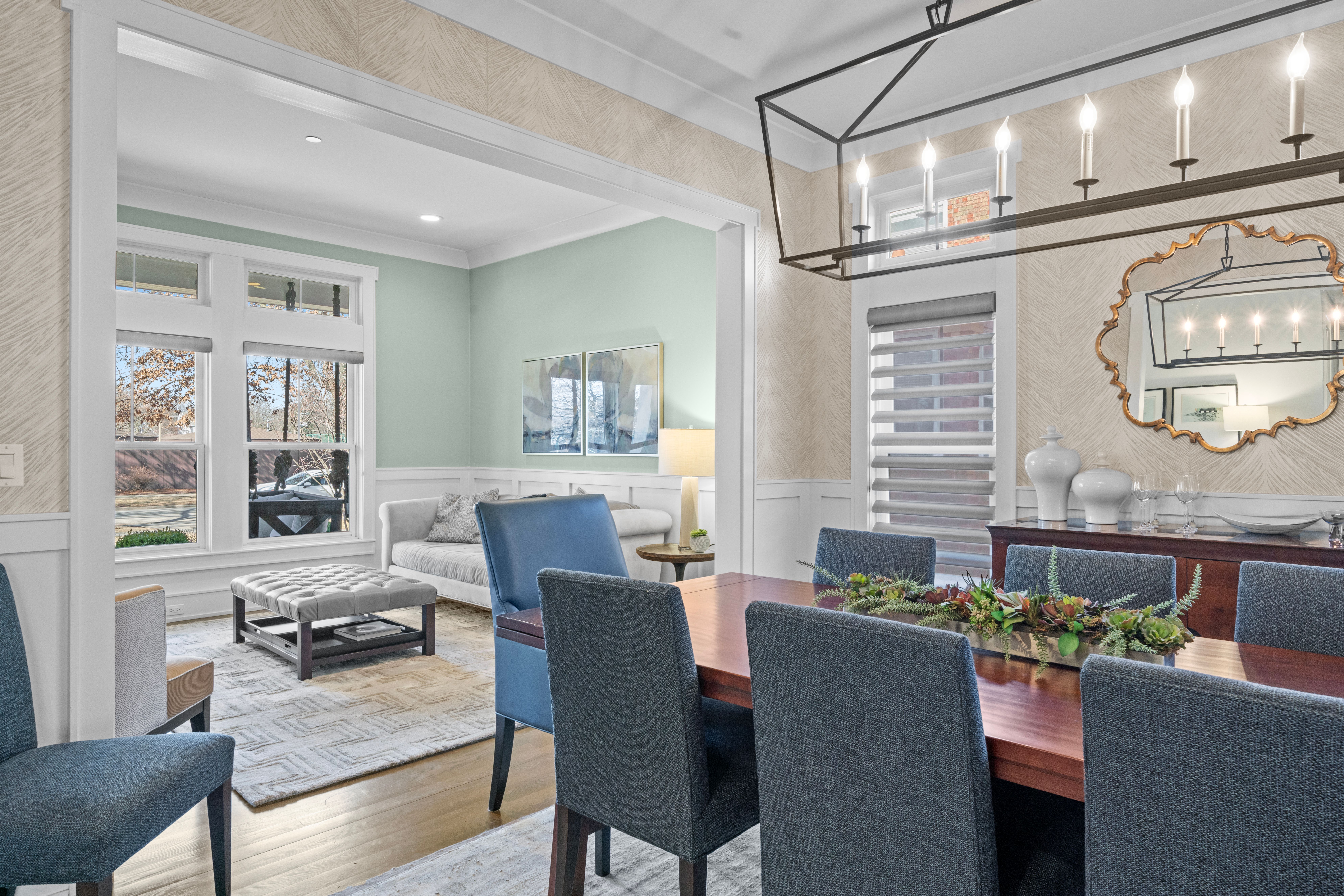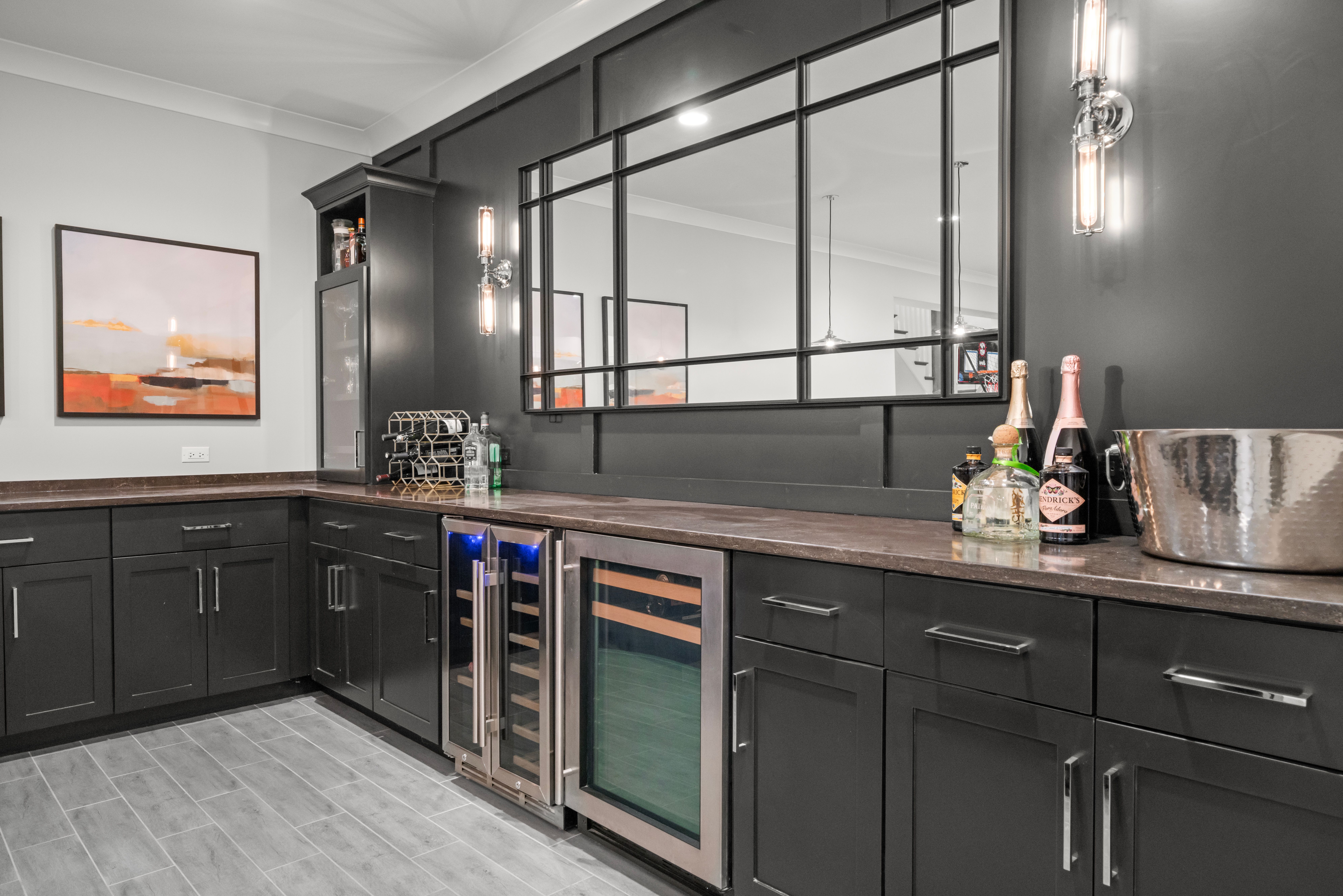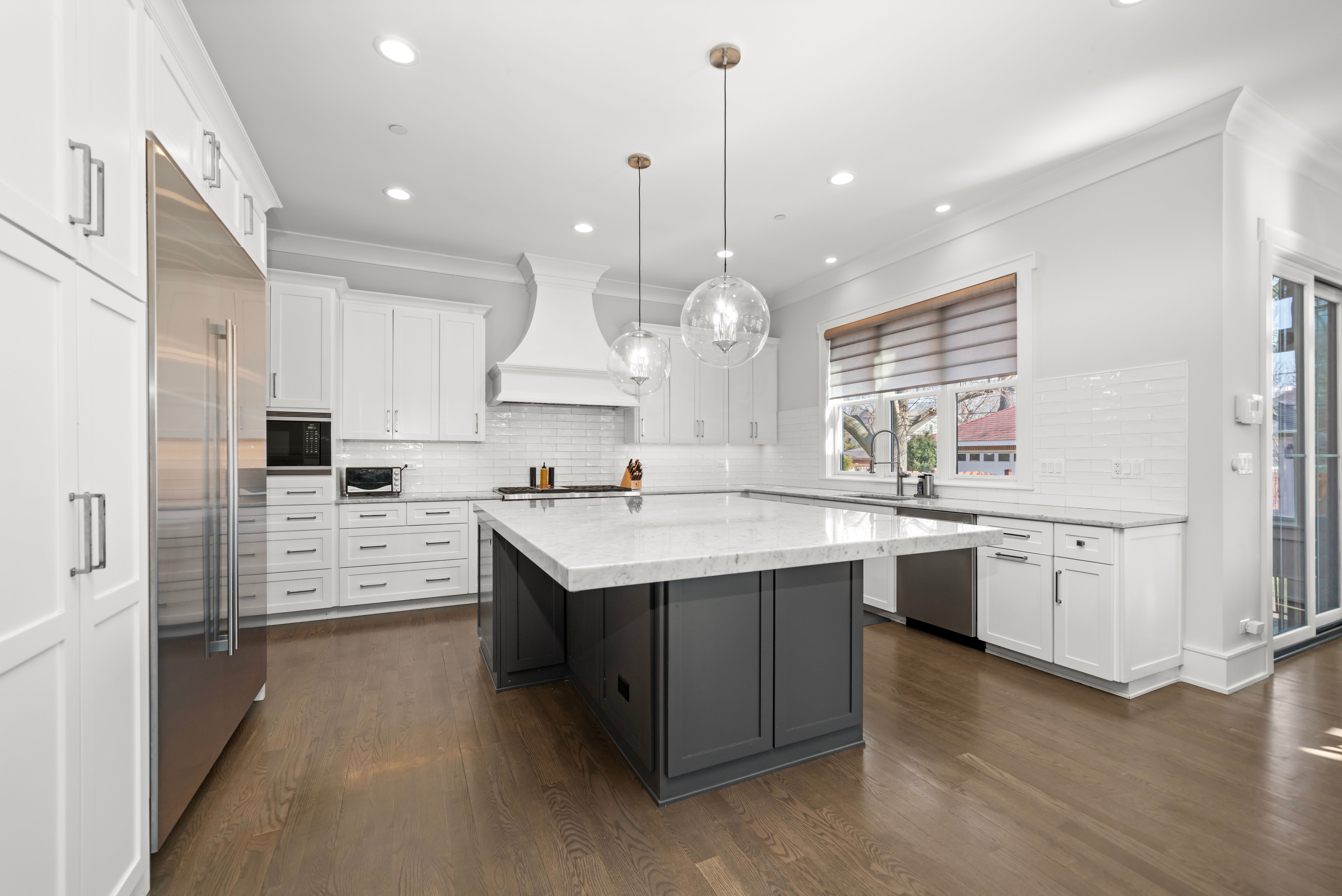 Exceptional Modern Farmhouse in the heart of River Forest offering 6 bedrooms, 5.1 baths, and approximately 6,500 square feet of finished living space on an oversized quarter-acre-plus lot. Built just nine years ago, this home features an outstanding floor plan, refined finishes, and hardwood floors throughout. The main level showcases 10-foot ceilings, a private office with custom built-ins, inviting living room, spacious dining room, and a seamless open layout. The chef's kitchen is centered around a massive Carrera marble island, with Butler's pantry and walk-in pantry, and opens to a sun-filled breakfast area and comfortable family room. A functional mudroom and powder room complete the first floor. The second level offers 4 bedrooms, all with custom walk-in closets. The primary suite features double walk-in closets and a spa-like bath with a custom multi-spray shower and marble finishes throughout. The second bedroom is en suite, while bedrooms three and four share a Jack-and-Jill bath. The third floor provides a flexible guest suite or private retreat with a bedroom, sitting area, and full bath. The finished lower level includes a large recreation room, custom bar, walk-in wine cellar, theater room, exercise room, and 6th bedroom with full bath, along with a second fireplace and built-ins. Additional features include Hunter Douglas window treatments, fresh exterior paint (2025), custom landscaping and lighting, and a full irrigation system. The attached garage is equipped with a Husky steel storage system, SnapLock flooring, CrownWall PVC panels, and 240V EV charging. Ideally located near the River Forest Tennis Club, Roosevelt Middle School, River Forest Public Library, and Centennial Park.