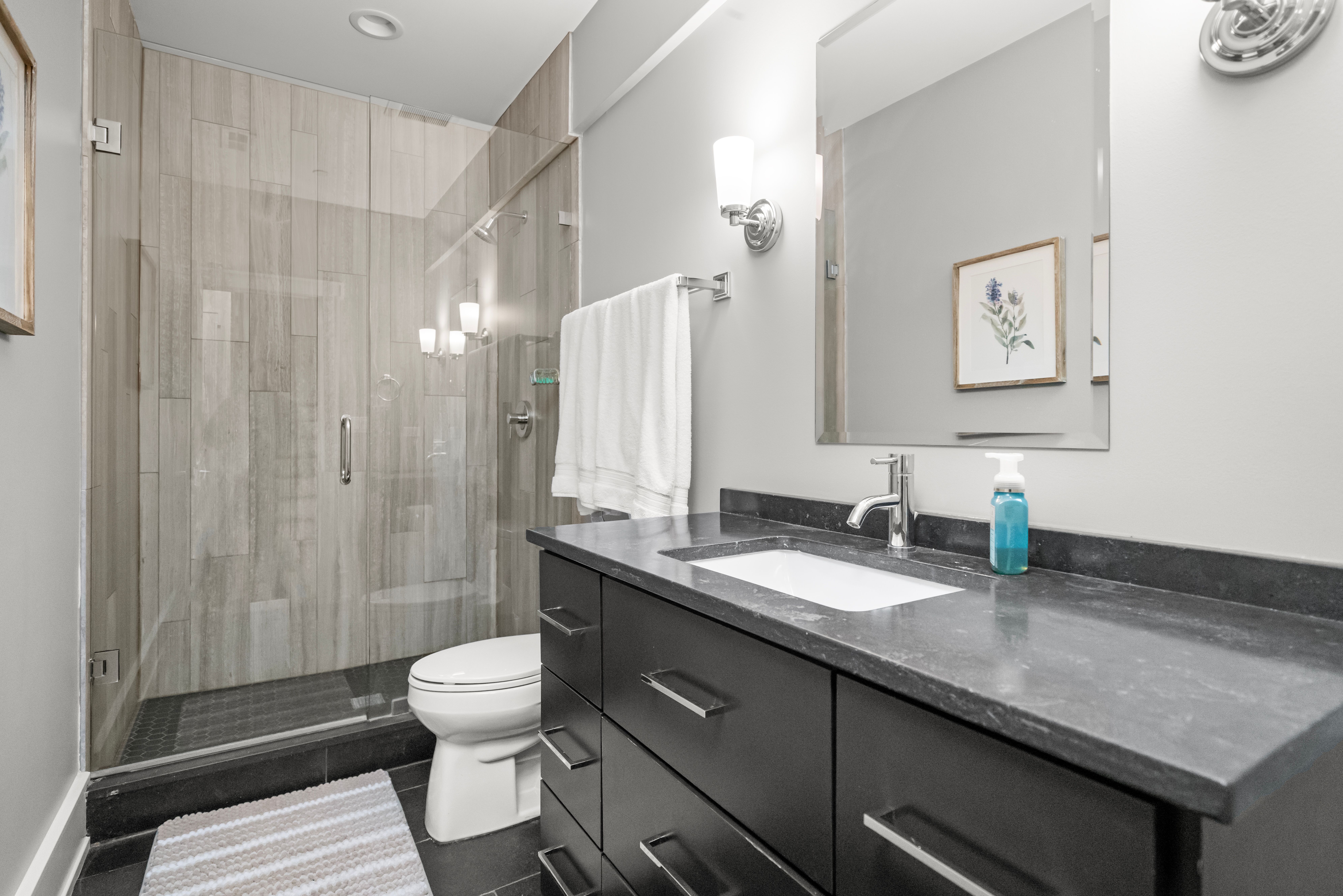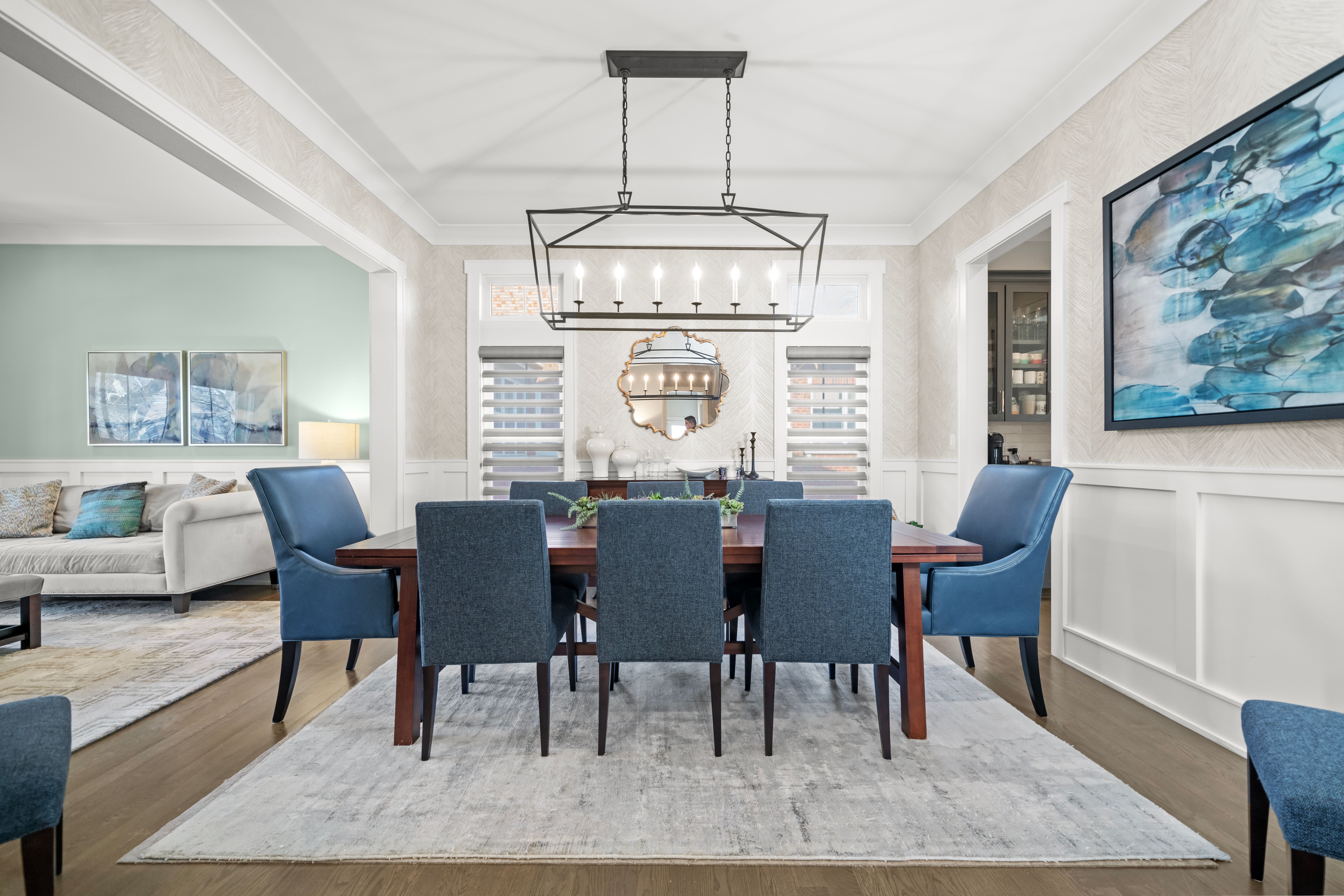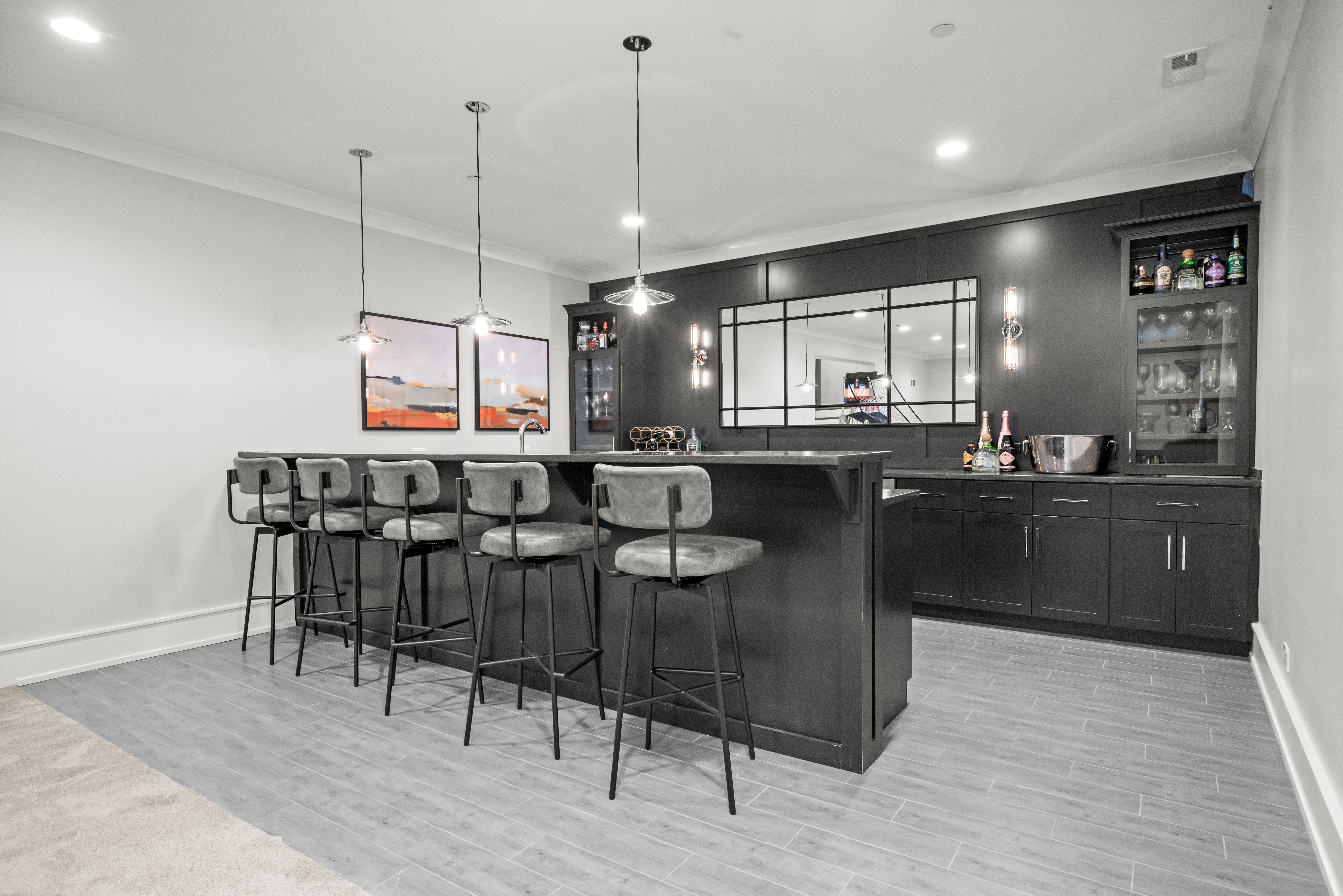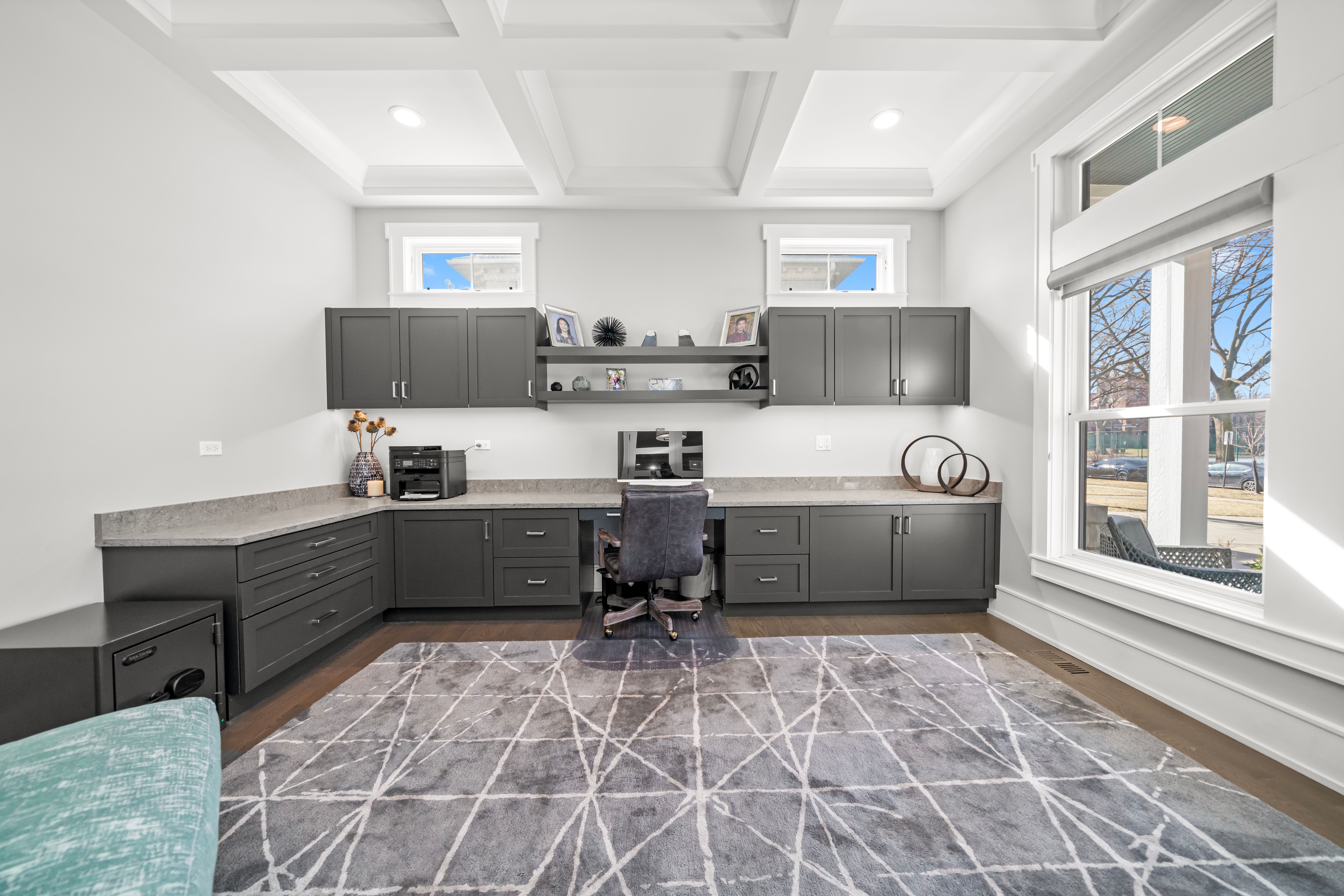 Exceptional Modern Farmhouse in the heart of River Forest offering 6 bedrooms, 5.1 baths, and approximately 6,500 square feet of finished living space on an oversized quarter-acre-plus lot. Built just nine years ago, this home features an outstanding floor plan, refined finishes, and hardwood floors throughout. The main level showcases 10-foot ceilings, a private office with custom built-ins, inviting living room, spacious dining room, and a seamless open layout. The chef's kitchen is centered around a massive Carrera marble island, with Butler's pantry and walk-in pantry, and opens to a sun-filled breakfast area and comfortable family room. A functional mudroom and powder room complete the first floor. The second level offers 4 bedrooms, all with custom walk-in closets. The primary suite features double walk-in closets and a spa-like bath with a custom multi-spray shower and marble finishes throughout. The second bedroom is en suite, while bedrooms three and four share a Jack-and-Jill bath. The third floor provides a flexible guest suite or private retreat with a bedroom, sitting area, and full bath. The finished lower level includes a large recreation room, custom bar, walk-in wine cellar, theater room, exercise room, and 6th bedroom with full bath, along with a second fireplace and built-ins. Additional features include Hunter Douglas window treatments, fresh exterior paint (2025), custom landscaping and lighting, and a full irrigation system. The attached garage is equipped with a Husky steel storage system, SnapLock flooring, CrownWall PVC panels, and 240V EV charging. Ideally located near the River Forest Tennis Club, Roosevelt Middle School, River Forest Public Library, and Centennial Park.
