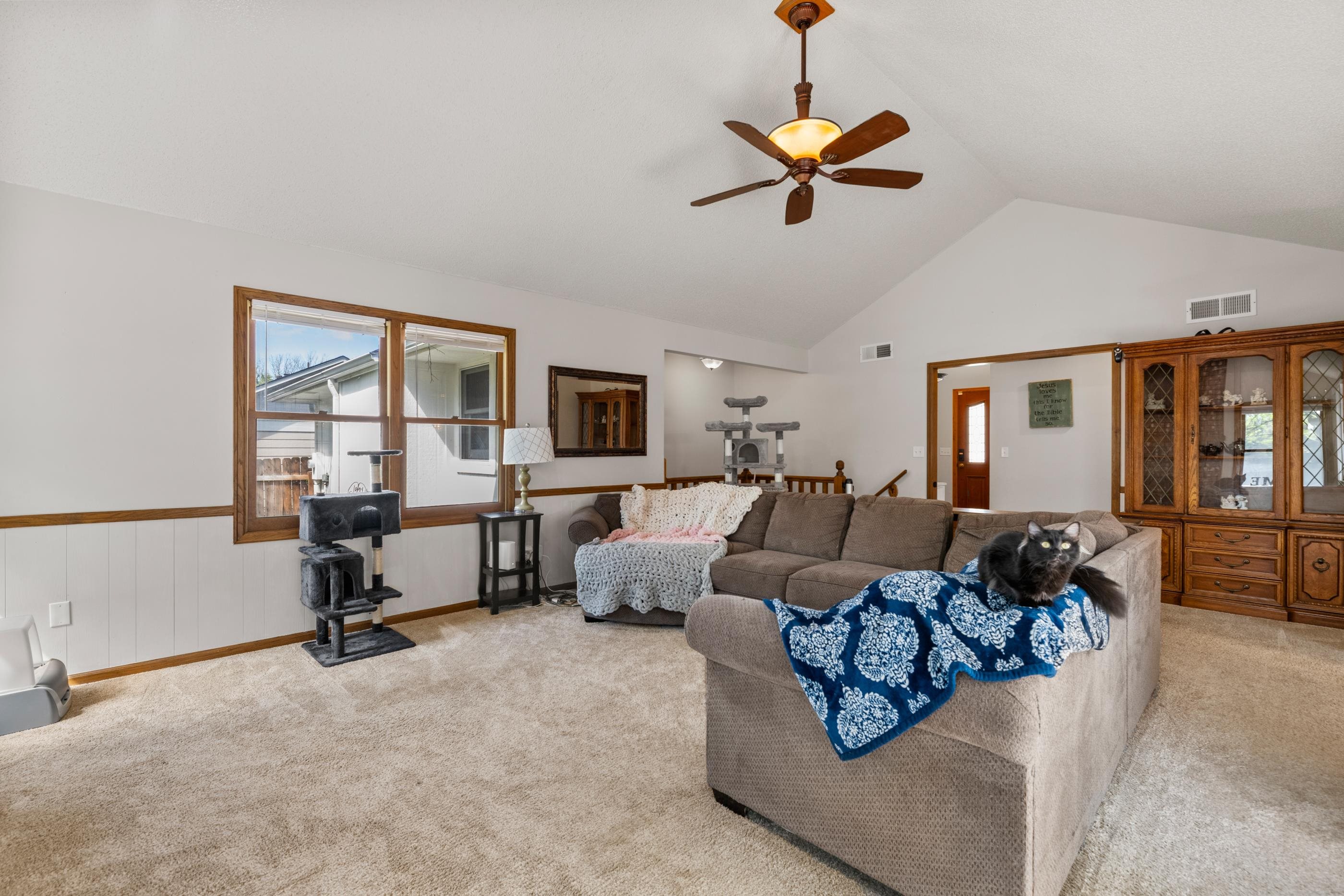 In the heart of Derby you'll find a ranch ready to make your own! At over 3,000 square feet of living area, featuring four bedrooms and three bathrooms, there will be plenty of space to meet you and your family's needs. The kitchen contains stainless steel appliances and the oven features bread proofing and air frying. There are two living rooms, one on each level, perfect for relaxing or entertaining guests. The downstairs recreation room has an abundance of space to enjoy a variety of activities. An office with built in bookshelves can also be found downstairs for a quiet work environment. Warm up during those cold days with, not one, but fireplaces. Step outside and you'll enjoy a patio and a yard big enough for gardening, yard games, and much more! As an added bonus, during the holiday season you'll find yourself surrounded by neighbors lighting up their homes for a festive feeling that will be sure to brighten your mood!