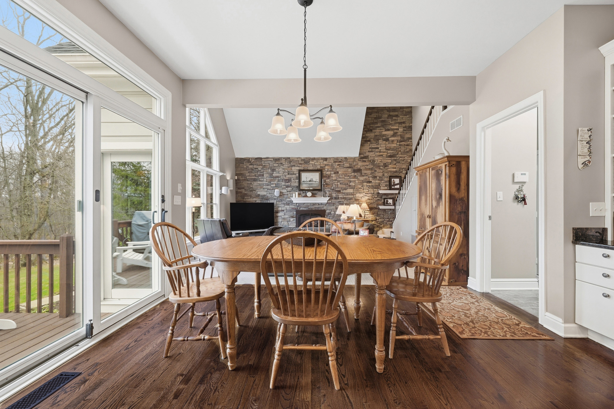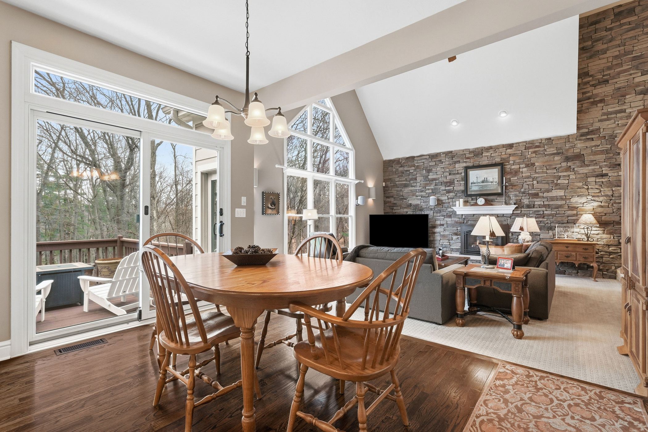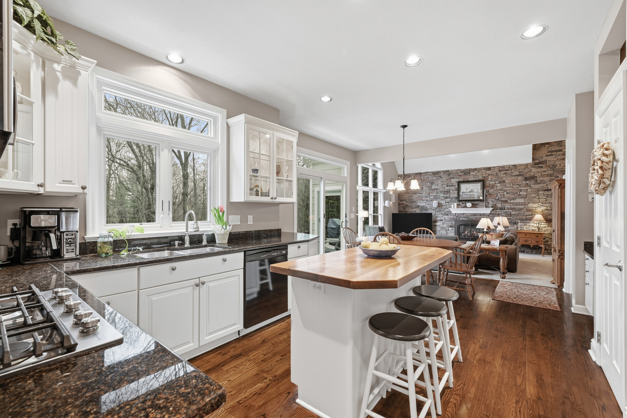 There are neighborhoods, and then there is Oakhaven.Tucked into the quiet streets of Pine Township in Wexford, this 92-home community has earned a reputation as one of the most coveted addresses in the Pine-Richland School District. Not just for its location, but for the way people actually live here. Neighbors walk over to each other's houses for dinner. A beloved Halloween parade winds through the neighborhood to the park, led by the Wexford Fire Truck. Adults gather for the 12 Toasts, a beloved progressive happy hour that winds through the neighborhood each December. This is a place where people put down roots and stay.This home sits beautifully within that community, and it was built to stand apart from it.Constructed by JJ Herbert and Sons, one of only a few homes they built in Oakhaven, the attention to detail is evident from the moment you arrive. A striking stacked stone wall grounds the family room with an earthy, one-of-a-kind character. Walls of Anderson e-glass windows, replaced and updated with stunning clarity and exceptional energy efficiency, frame a continuous wooded backdrop from nearly every room. You don't see another house on either side. Just trees, birds, the occasional turkey or deer wandering through.From the screened-in porch, that connection to nature becomes a way of life. From April through October, this is where coffee is poured in the morning, where meals are shared, where evenings slow down. When the weather turns, fireplaces on every level take over, bringing the same sense of warmth and coziness that makes this home feel like a true sanctuary. Sunsets from the front porch close out the day in the best possible way.The home is as functional as it is beautiful. The fully finished basement offers living space and serious storage, including a room originally designed as a photography darkroom, already plumbed for water and a natural candidate for a kitchenette. A whole-house vacuum system makes everyday living effortless. A whole-house humidifier keeps the air comfortable all winter long.And when you do want to venture out, everything is within easy reach. Walk to Oxford Athletic Club and Giant Eagle Market District. Stroll to The Oven for pizza and live entertainment or Cafe Conmigo for a quiet cup of coffee. Hike North Park in every season. Reach downtown Pittsburgh quickly via I-79.This is the home Oakhaven buyers wait for.