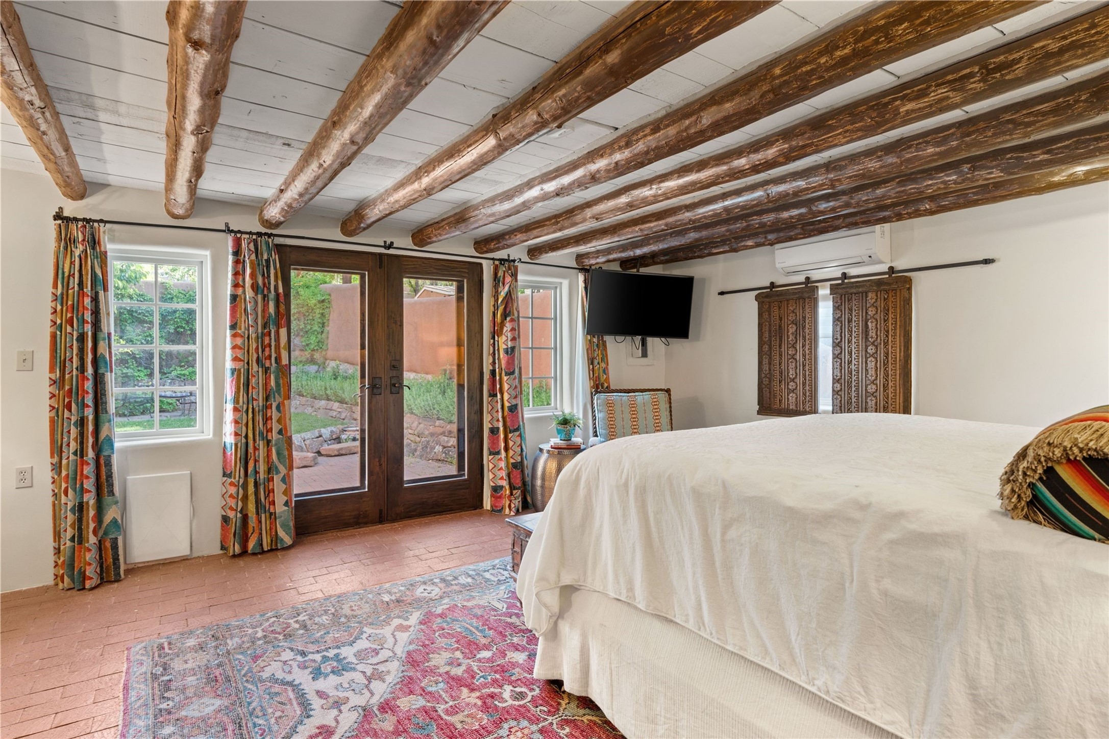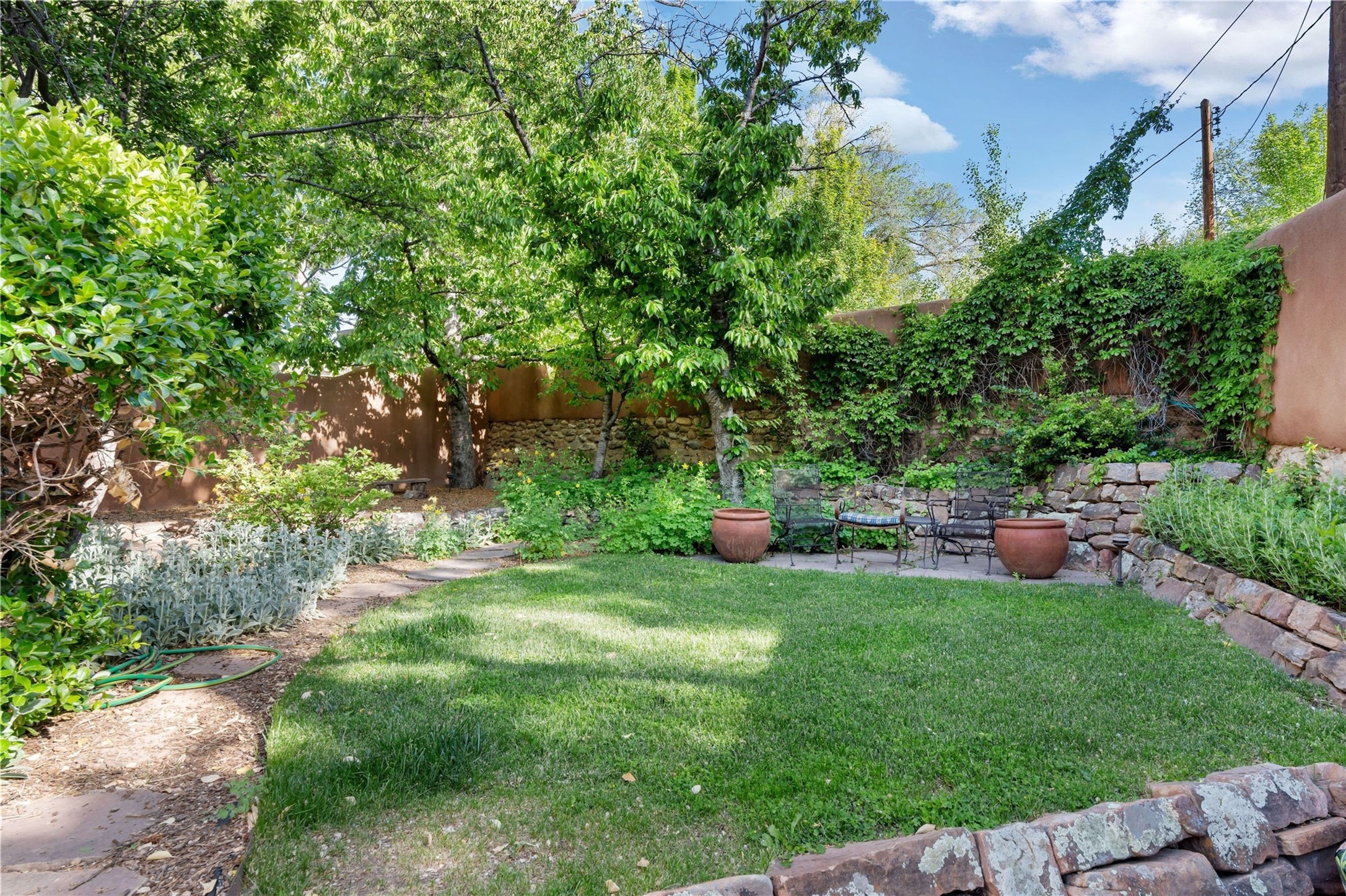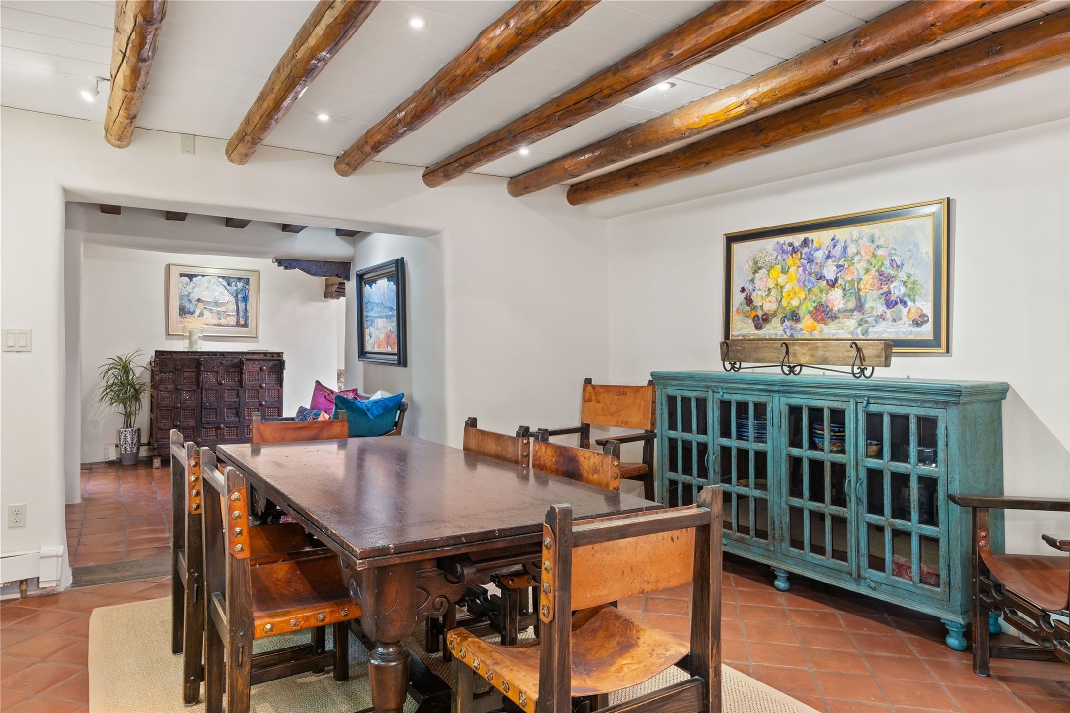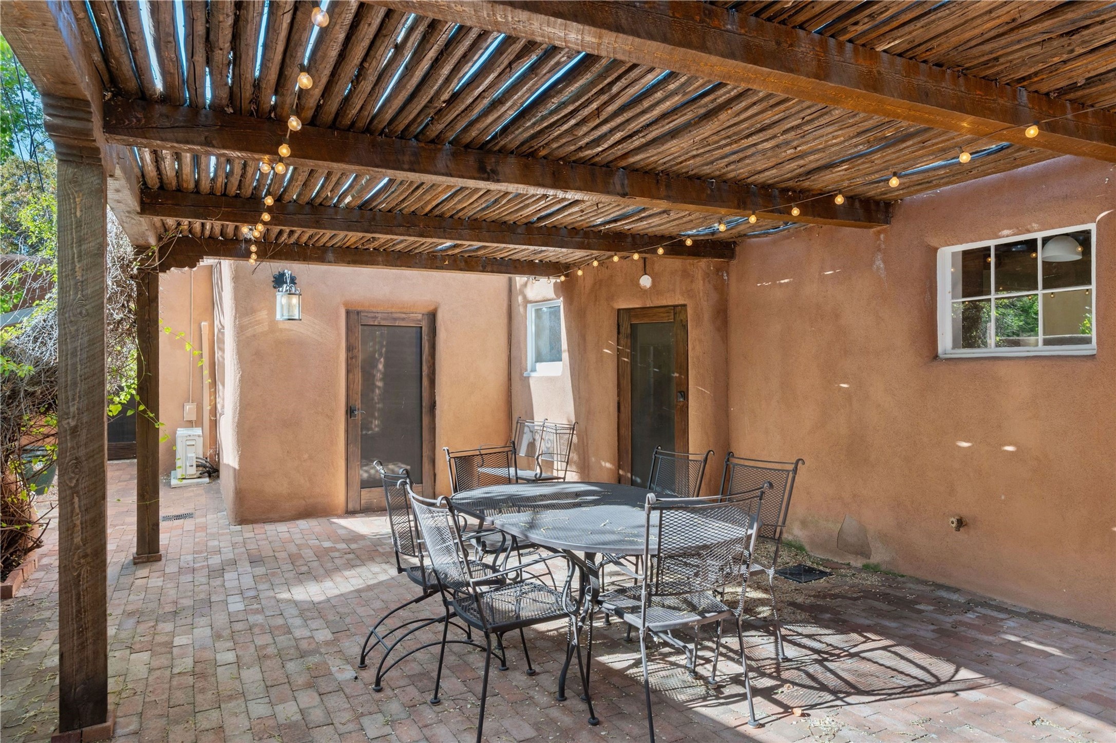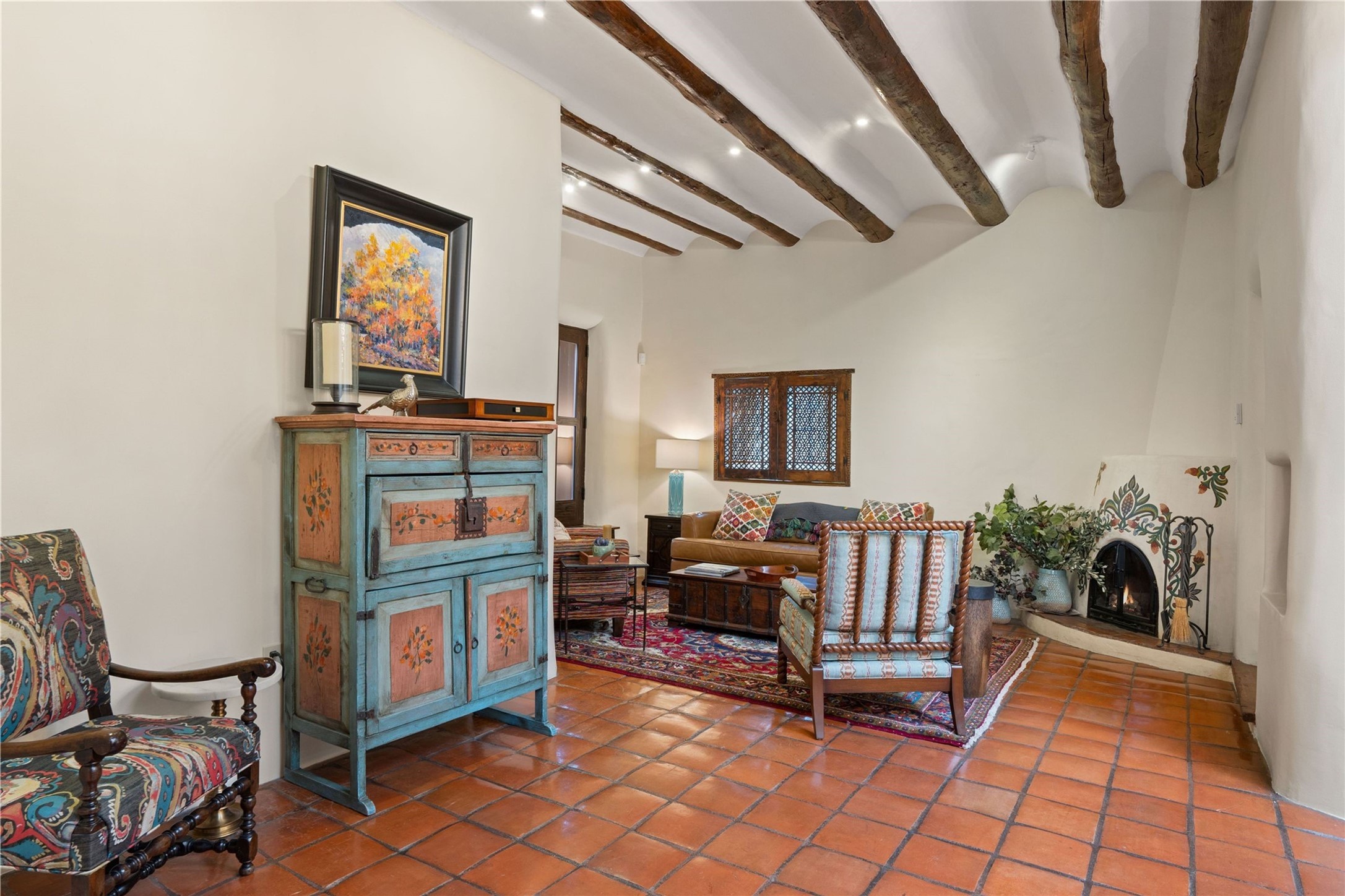 Incomparable home within the famed Gerald Cassidy Compound melds quintessential Santa Fe style with modern luxury. Tucked on a private ‘placita’ off of a prime stretch of Canyon Road between the Tea House and Patrick Smith Park, this 4-bed, 4-bath property boasts a 2-car garage, 4 walled courtyards, and private pedestrian access to Acequia Madre. Thick adobe walls, vigas, hand-carved beams and corbels, four kivas, and other Santa Fe-style details can be found throughout. The home features a gourmet kitchen with a Viking oven and wine cooler, custom exterior lighting and screen doors, and radiant floor heating. Every upgrade was carefully chosen to match the historic integrity of the home. Four walled courtyards with mature landscaping can be accessed off of different sides of the house by flagstone and brick pathways - a true gardener’s dream! The attached guest house with its own entrance allows for hosting while also maintaining privacy. In addition to 2 off-street parking spaces, a 2 car heated garage was added in 2014. A rare amenity on Canyon Road, the intricately designed garage contains vigas, windows, and two wooden doors with wrought-iron details. The structure could easily be used as a studio or additional living space. The historical significance of the Cassidy compound is unmatched. Gerald Cassidy was the first notable artist to move onto Canyon Road in the 1920s, and his art can be found in museums around the country, including the Smithsonian. His wife Ina Sizer Cassidy was a folklorist, preservationist, part of the Writer’s Project under FDR’s New Deal program, and a founding member of the Old Santa Fe Association. Private location, yet only minutes from the Plaza and at the doorstep of every gallery and restaurant on Canyon Road.