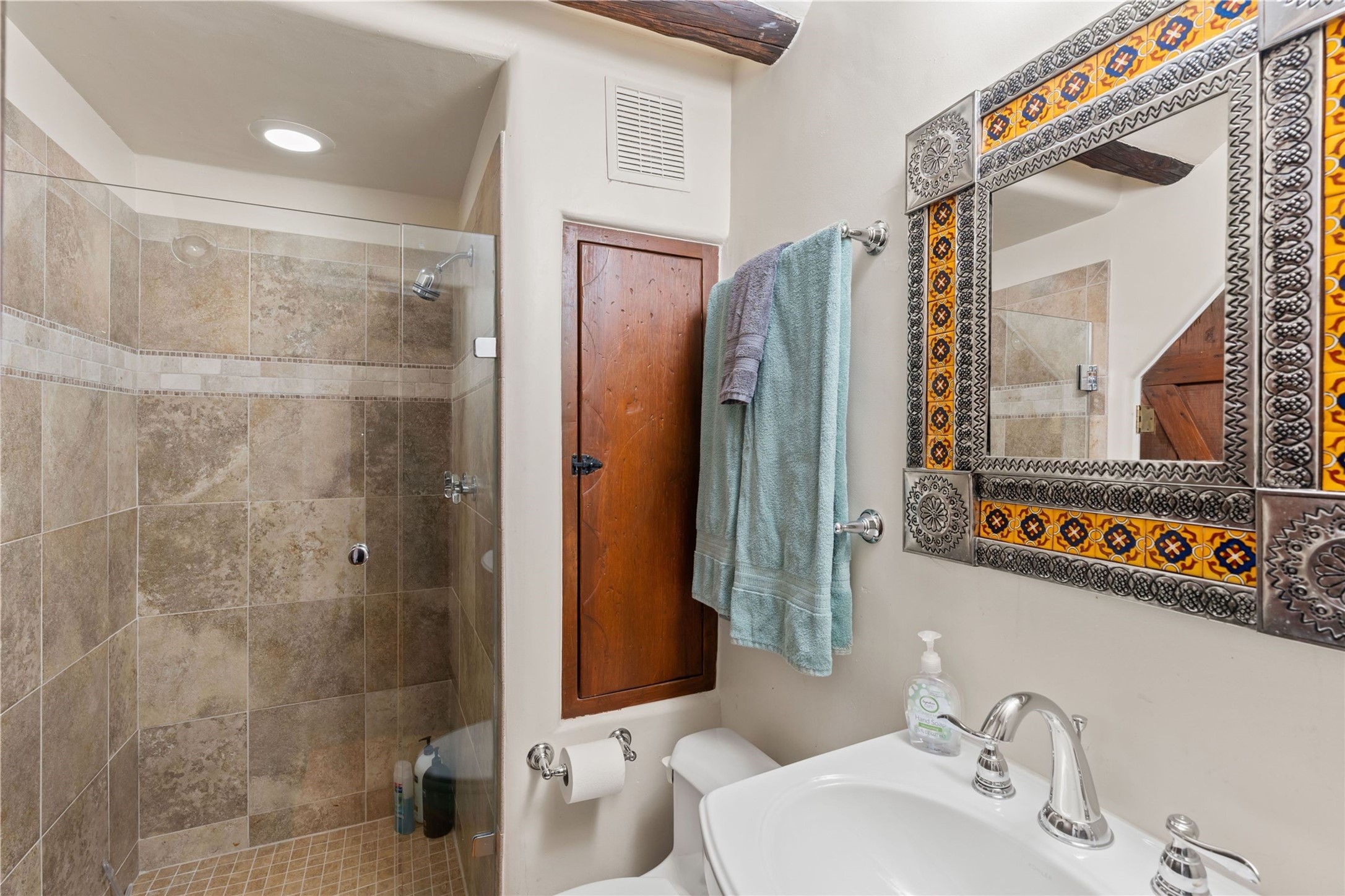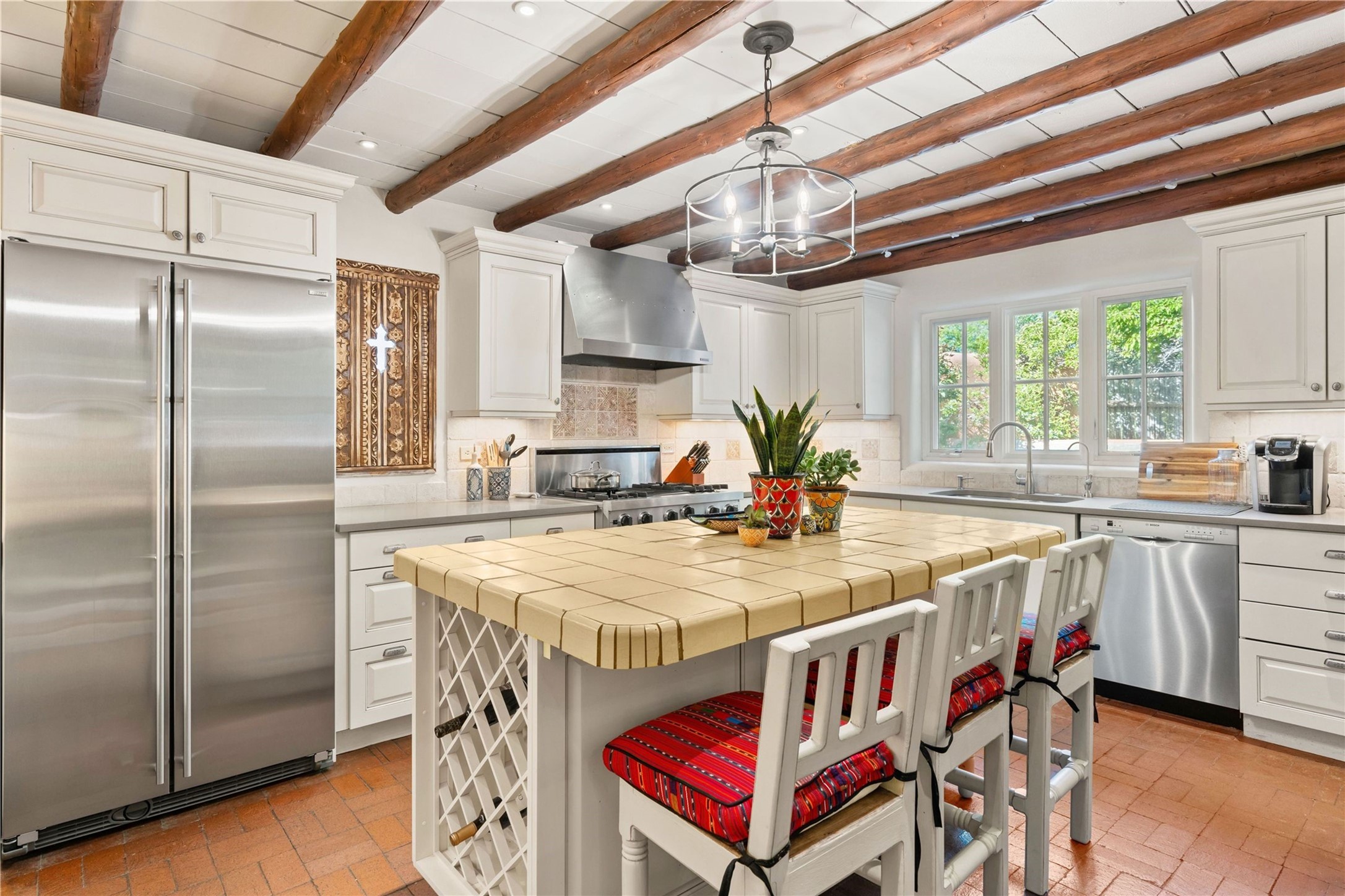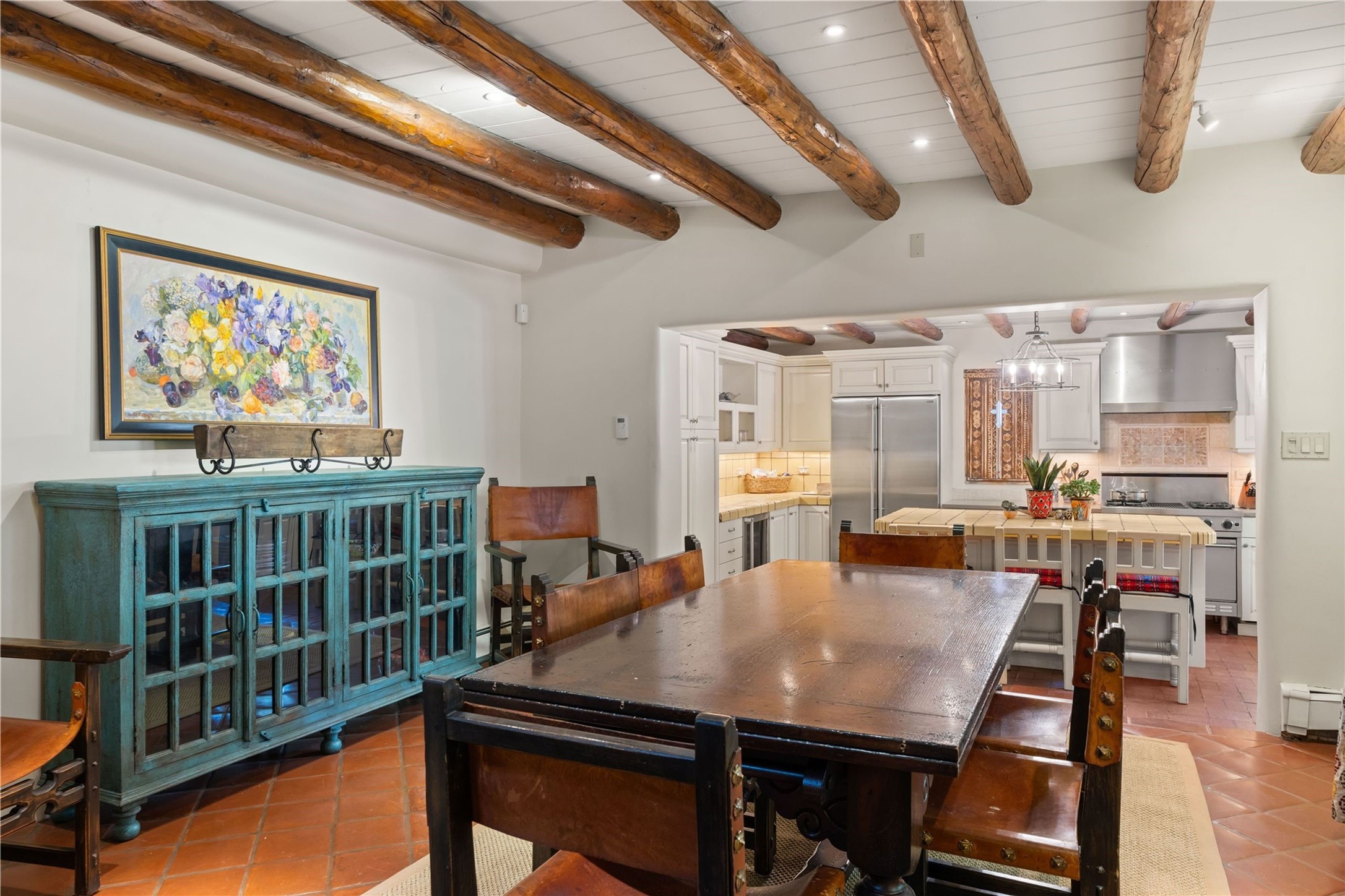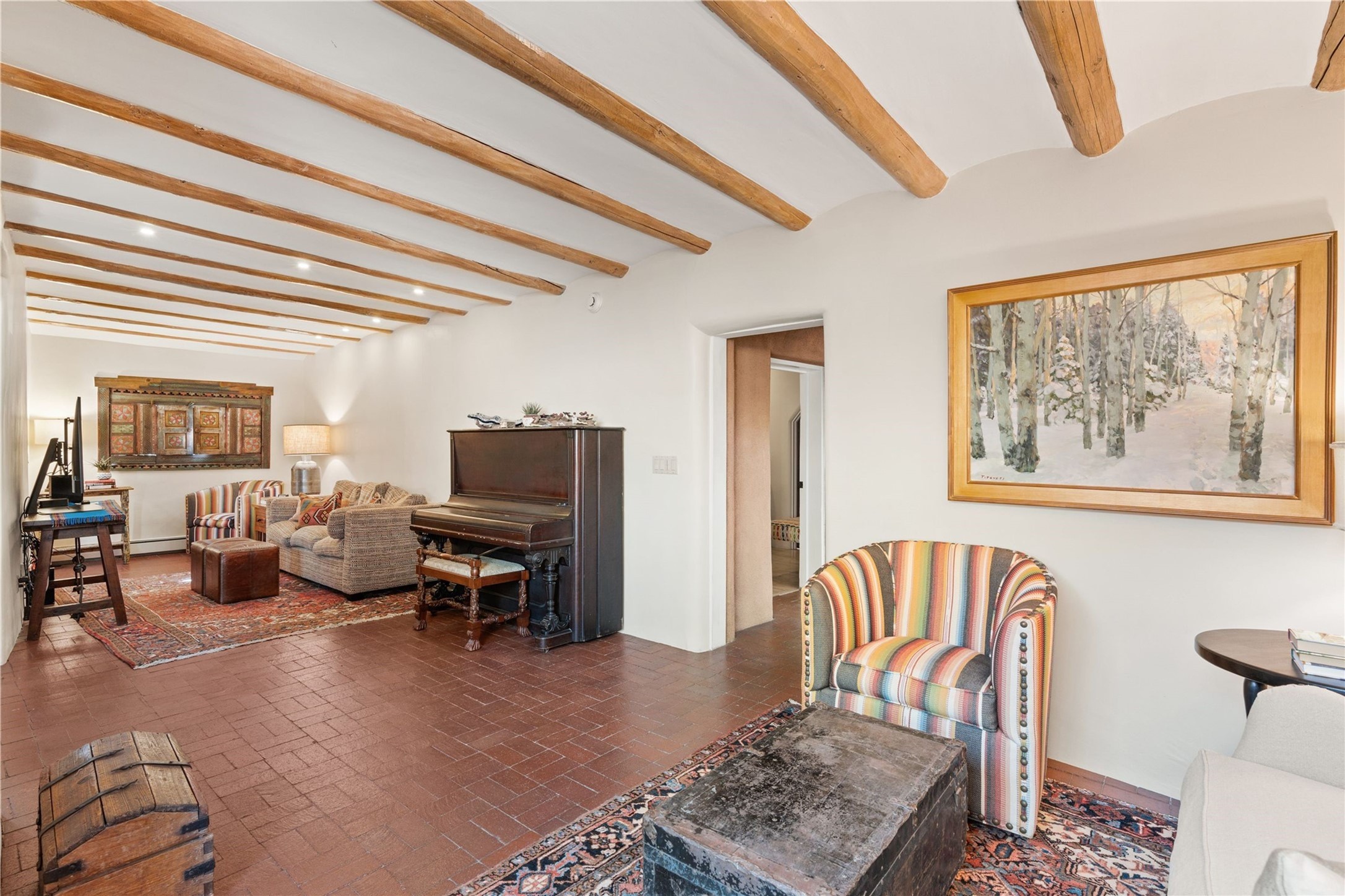 Incomparable home within the famed Gerald Cassidy Compound melds quintessential Santa Fe style with modern luxury. Tucked on a private ‘placita’ off of a prime stretch of Canyon Road between the Tea House and Patrick Smith Park, this 4-bed, 4-bath property boasts a 2-car garage, 4 walled courtyards, and private pedestrian access to Acequia Madre. Thick adobe walls, vigas, hand-carved beams and corbels, four kivas, and other Santa Fe-style details can be found throughout. The home features a gourmet kitchen with a Viking oven and wine cooler, custom exterior lighting and screen doors, and radiant floor heating. Every upgrade was carefully chosen to match the historic integrity of the home. Four walled courtyards with mature landscaping can be accessed off of different sides of the house by flagstone and brick pathways - a true gardener’s dream! The attached guest house with its own entrance allows for hosting while also maintaining privacy. In addition to 2 off-street parking spaces, a 2 car heated garage was added in 2014. A rare amenity on Canyon Road, the intricately designed garage contains vigas, windows, and two wooden doors with wrought-iron details. The structure could easily be used as a studio or additional living space. The historical significance of the Cassidy compound is unmatched. Gerald Cassidy was the first notable artist to move onto Canyon Road in the 1920s, and his art can be found in museums around the country, including the Smithsonian. His wife Ina Sizer Cassidy was a folklorist, preservationist, part of the Writer’s Project under FDR’s New Deal program, and a founding member of the Old Santa Fe Association. Private location, yet only minutes from the Plaza and at the doorstep of every gallery and restaurant on Canyon Road.