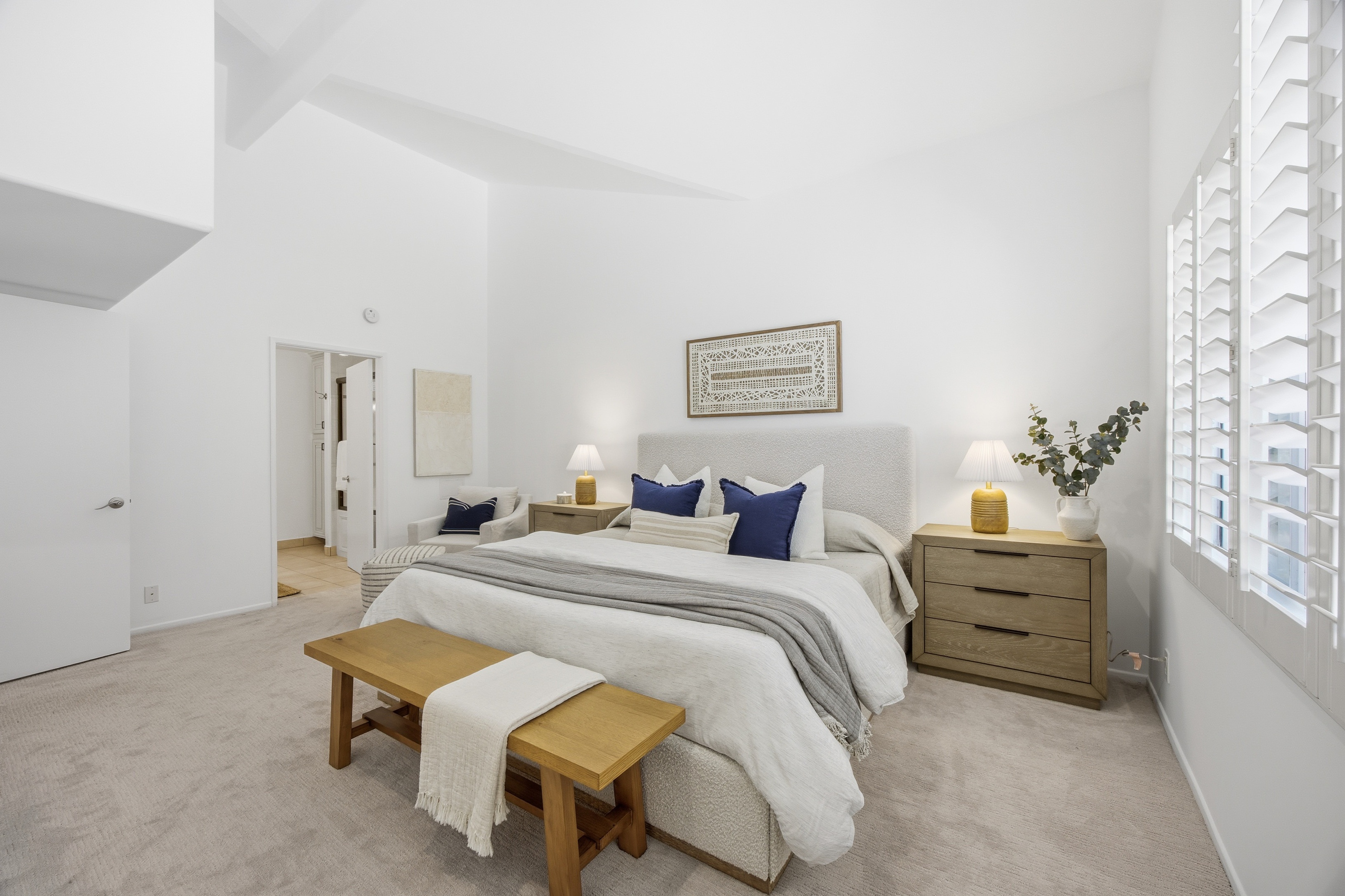 Located in Pacific Terrace, a luxury resort style gated community. Awesome location, at the Redondo Beach/Torrance border just a mile from the sand! This beautiful single-level condo offers 3 bedrooms and 2 full bathrooms in a desirable 3rd-floor end unit tucked quietly in the back of the complex, away from Torrance Blvd. Featuring 18-foot architecturally distinctive cathedral ceilings, this light-filled home combines style and comfort with hickory flooring, a beautiful kitchen with granite countertops and stainless-steel appliances, remodeled bathrooms, and the convenience of an in-unit washer and dryer. The primary suite is separate of the secondary bedrooms and enjoys privacy and seclusion. The west-facing balcony looks out to jacaranda trees known for their seasonal canopy of lavender blossoms. This attractive Mediterranean-style complex is gated, secured and features side-by-side subterranean parking (2 spaces), a private storage closet foreach unit, elevators, central courtyard, pool (under renovation), 2 workout rooms, meeting room; basic cable & internet included in HOA fees and earthquake insurance too. Close to Anza Elementary, Bishop Montgomery High School (private) is next door, a mile to Little Company of Mary hospital. Alta Vista, Hopkins Wilderness, and Paradise parks are nearby. Convenient to Del Amo mall, Kings Harbor, and central Redondo Beach.