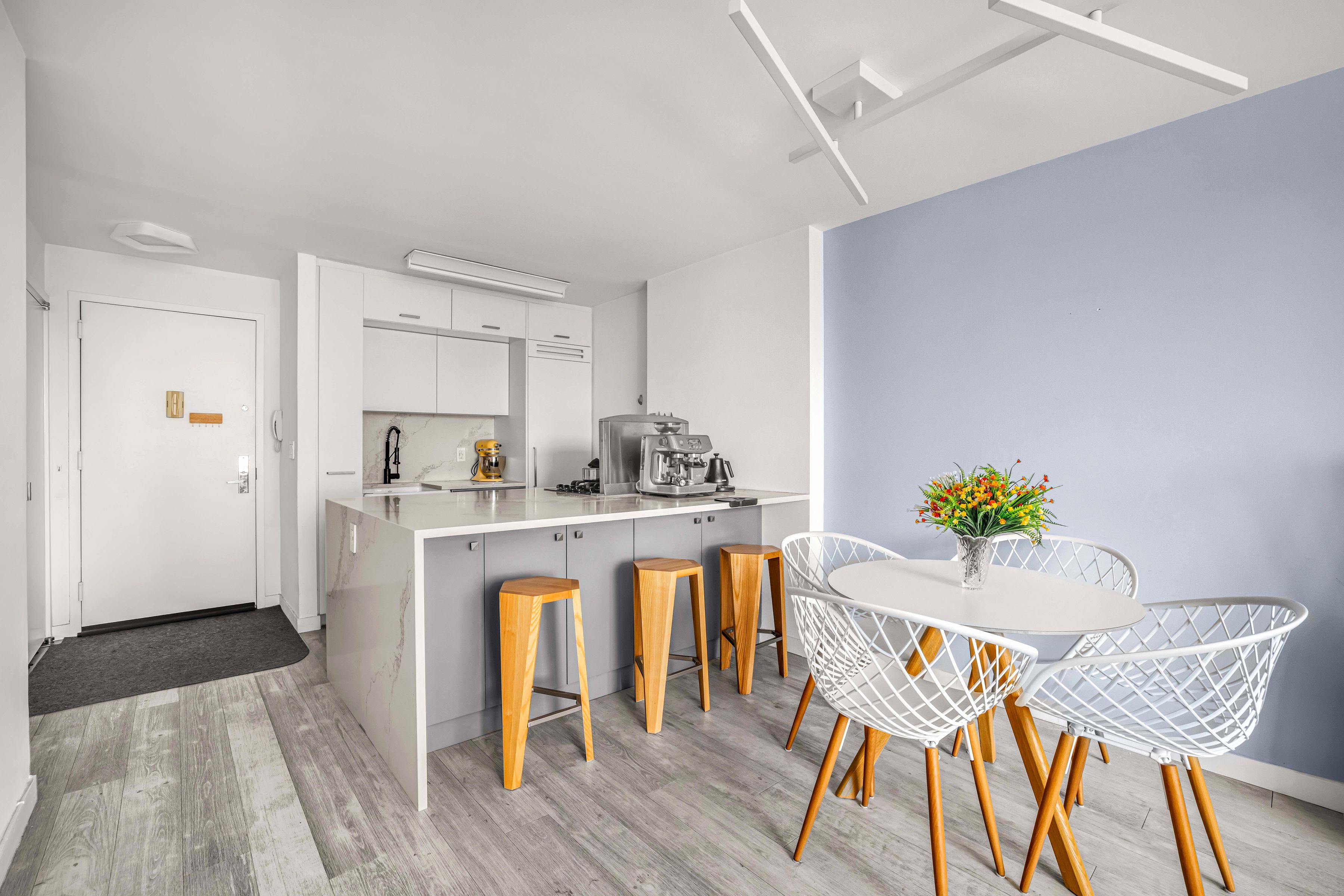 Newly renovated 695+/- sqft one‑bedroom condominium with bright southern exposure overlooking Rector Park. Measuring approximately 12' × 18', the living area offers a comfortable layout and features a newly installed wide kitchen island that enhances both functionality and flow. An open, fully renovated kitchen includes top‑of‑the‑line appliances and sleek white cabinetry. At approximately 11' × 17', the spacious bedroom receives excellent natural light and accommodates a king‑size bed along with a work‑from‑home space. Storage is abundant, with three large closets throughout the home. A renovated bathroom with walk in shower and new wood floors through complete the renovation. Monthly common charges $814.75 include water, heat, and cooking gas, ground rent $271.47, civic fee $51.30. Real Estate Tax PILOT $986.34. The Battery Park City master land lease runs through 2119. 225 Rector Place is a full‑service condominium with 24‑hour concierge. Amenities include a fitness center, a 40‑foot indoor swimming pool, a children’s playroom, a residents’ lounge, a furnished rooftop sun deck with grilling stations, a rentable cabana, and an on‑site laundry room. Also known as Rector Square, this 24‑story luxury condominium was originally built in 1985 and fully redeveloped and converted to condominium use in 2008. Its quiet cul‑de‑sac location sits adjacent to Rector Park and moments from the Hudson River Esplanade, Brookfield Place, and the Westfield World Trade Center Oculus. Nearby transportation options include the 1, R, 4/5, E, A/C, and PATH trains, along with the World Financial Center ferry terminal. NOTE: If you are working with a broker, please have your broker accompany you to the showing. Brokers, kindly register your buyer in advance.