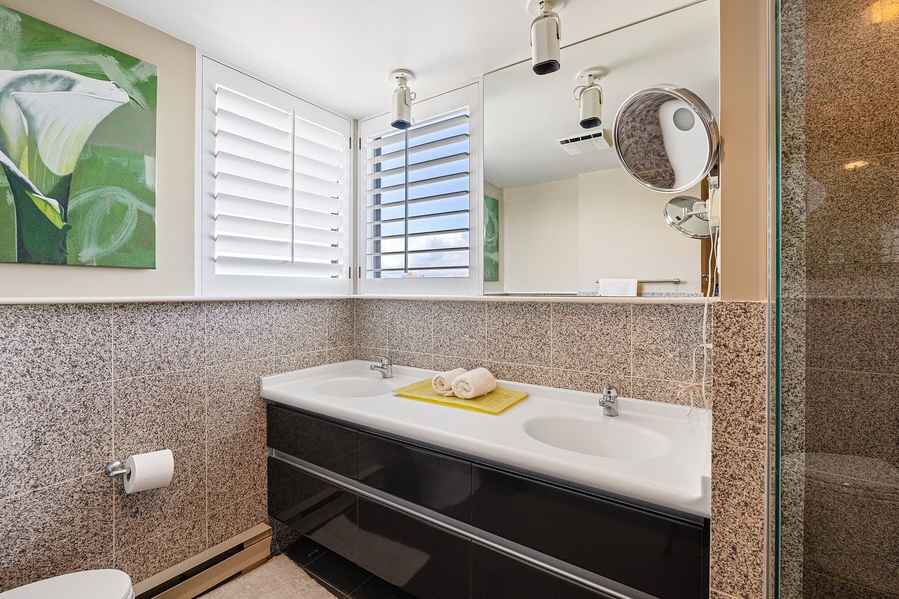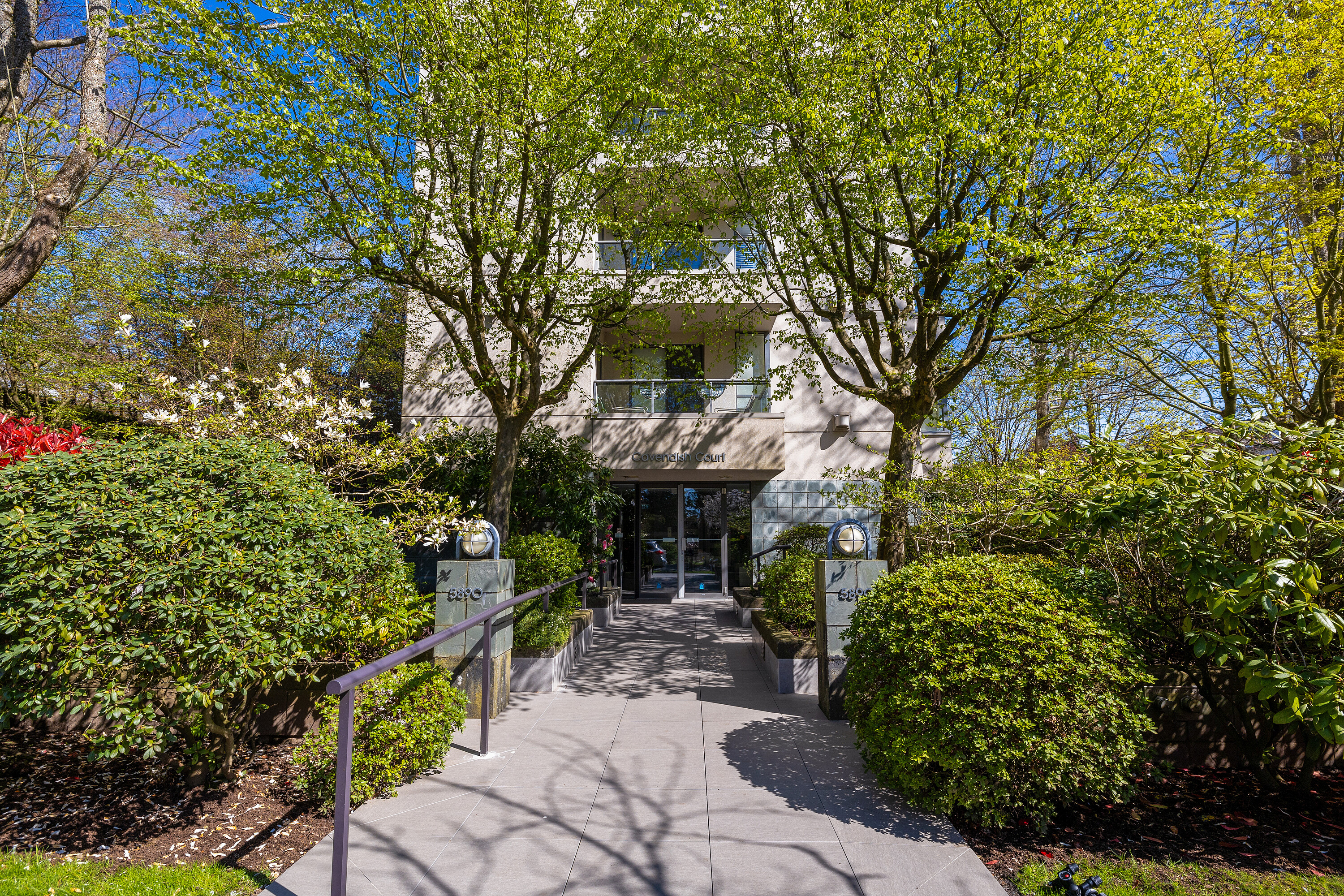 Exceptional views, Prime location, and plenty of Natural light. This is the penthouse you have been searching for in Kerrisdale! Welcome to Cavendish Court a boutique building steps to restaurants, shops, and all your daily essentials. This penthouse unit features 2 floor living with fantastic open views from every angle. A functional floor plan with the primary bedroom on the main floor and another spacious bedroom and open den/bedroom on the upper level offering privacy. The abundant outdoor areas are great spaces to entertain or have your very own garden in the sky. As a bonus, the home comes with 2 parking stalls and 9.5 by 7.5 storage room on the main lobby! Showings by private appointment only.