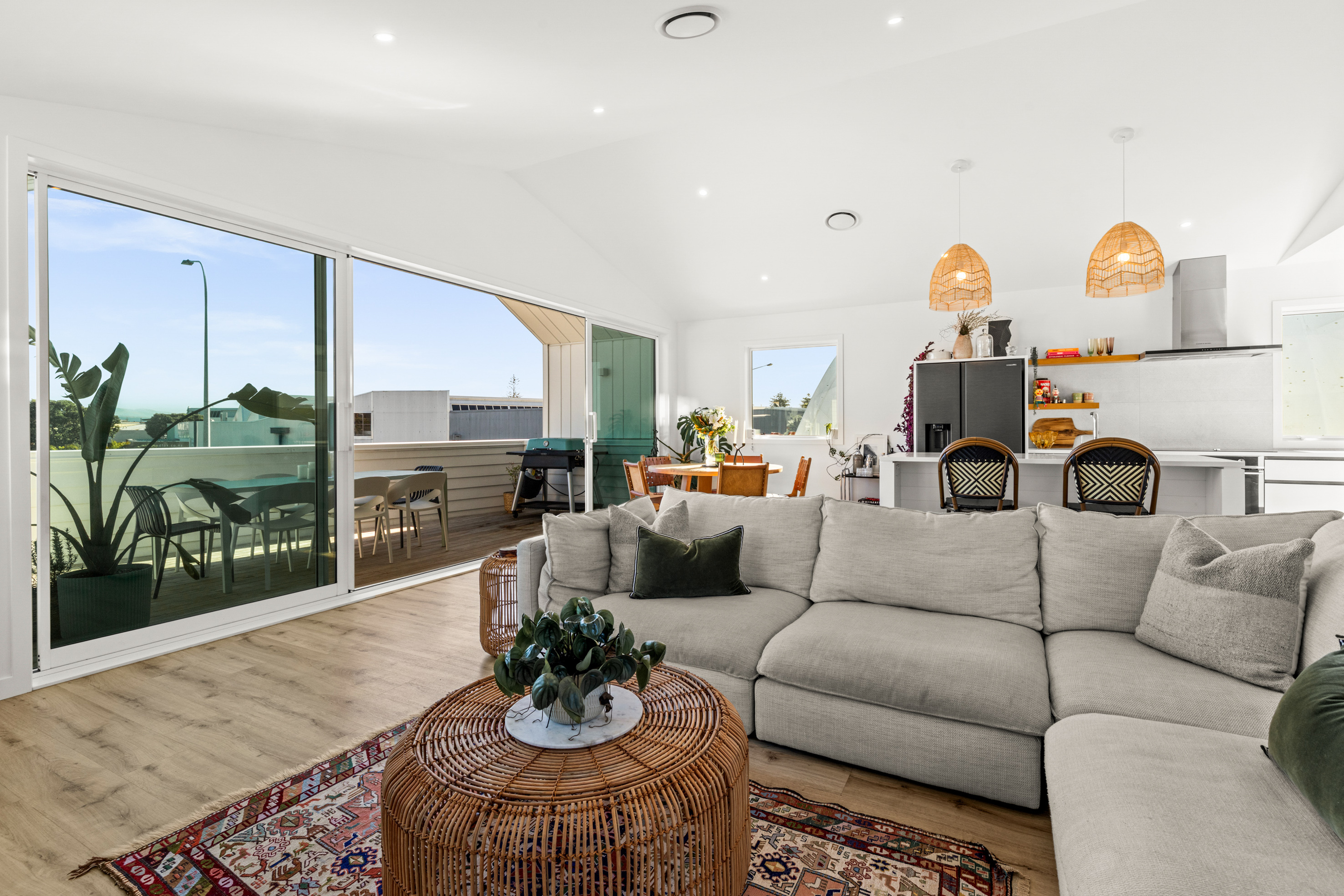 Positioned in the vibrant heart of Ahuriri village, this architectural townhouse delivers a rare combination of lifestyle, design, and flexibility, just moments from the waterfront, cafés, restaurants, and coastal walkways. Completed in 2023, this home offers the ease of modern, low-maintenance living in one of Napier’s most sought-after coastal settings.Designed by renowned architect Simon Clarkson, the home showcases striking contemporary design with a focus on views, space, and adaptability. Cleverly configured across two levels, offering flexible living options to suit a range of lifestyles, including the potential for income. The ground floor can be separated from the main residence, featuring two bedrooms, a bathroom, and a kitchenette, with its own access - ideal for Airbnb, guests, or extended family living.Upstairs, the home opens to an impressive light-filled living environment, where cathedral ceilings enhance the sense of scale and architectural presence. At its centre, the kitchen forms a true hub of the home, high-spec and beautifully appointed with quality appliances. The large walk-in pantry doubles as a well-considered prep kitchen - complete with its own additional sink and space for everyday appliances. A generous island bench anchors the space, ideal for casual meals or entertaining.Thoughtfully positioned glazing perfectly frames the views, drawing in natural light while capturing the outlook across the inner harbour. The north/east-facing kitchen enjoys the morning sun, while the dining and lounge flow seamlessly to a generous north/west-facing deck, an ideal space to relax or entertain as the sun sets over the western hills.The primary suite is also positioned on this level, complete with a walk-in wardrobe, elegant tiled en-suite, and its own private balcony. A separate study provides an ideal work-from-home space and could easily function as an additional single bedroom if required, complemented by a guest WC for added convenience. Ducted air conditioning throughout ensures year-round comfort, no matter the season.The ground floor’s versatility is a standout feature, offering two spacious bedrooms and a beautifully appointed bathroom, along with the kitchenette that enables true separation when desired. Whether used for additional income, accommodating guests, or multi-generational living, this layout adapts with ease.Practicality is equally well considered, with a large single garage, ample dedicated storage, and off-street parking. A freehold title, with no body corporate or residents' fees, adds further appeal. A home with these offerings is an increasingly rare find in such a premium location. This is a home that delivers on every level, architectural design, lifestyle convenience, and flexible living - all set within the vibrant coastal community of Ahuriri.TENDER: Closes 5:00 p.m. Monday 4 May 2026 NZSIR Napier Office (unless sold prior)