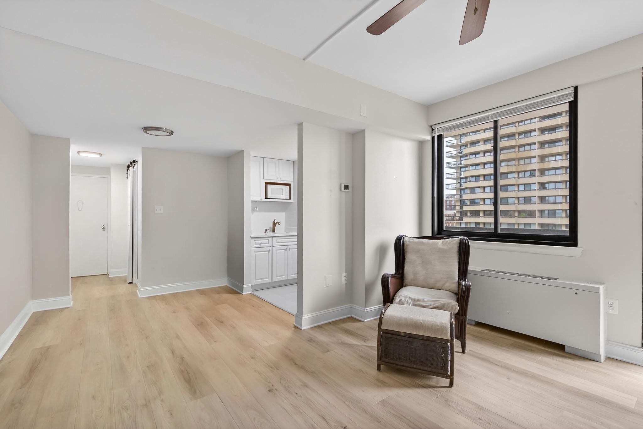 Open Saturday and Sunday, 11am-1pm! Experience refined city living in this bright, move-in ready sixth floor studio at Port Royal in the heart of Old Town Alexandria. The open layout has abundant natural light, new LVP flooring, and a flexible living space that seamlessly blends comfort and functionality. The thoughtfully updated kitchen features quartz countertops, a sleek backsplash, gas cooking, tile flooring, and under-cabinet lighting. A private balcony extends the living area outdoors, and offers water, park and city views. The bathroom offers a new vanity, tile flooring, and excellent storage. A dedicated parking space conveys—an exceptional convenience in this highly sought-after location near the waterfront.The Port Royal Condominium provides a rooftop terrace with sweeping views of the Potomac River and Old Town, along with secure entry and on-site management. It is moments from several cafes, parks, boutiques, and multiple grocery options, with easy access to the Braddock Road Metro, DC, and Reagan National Airport.