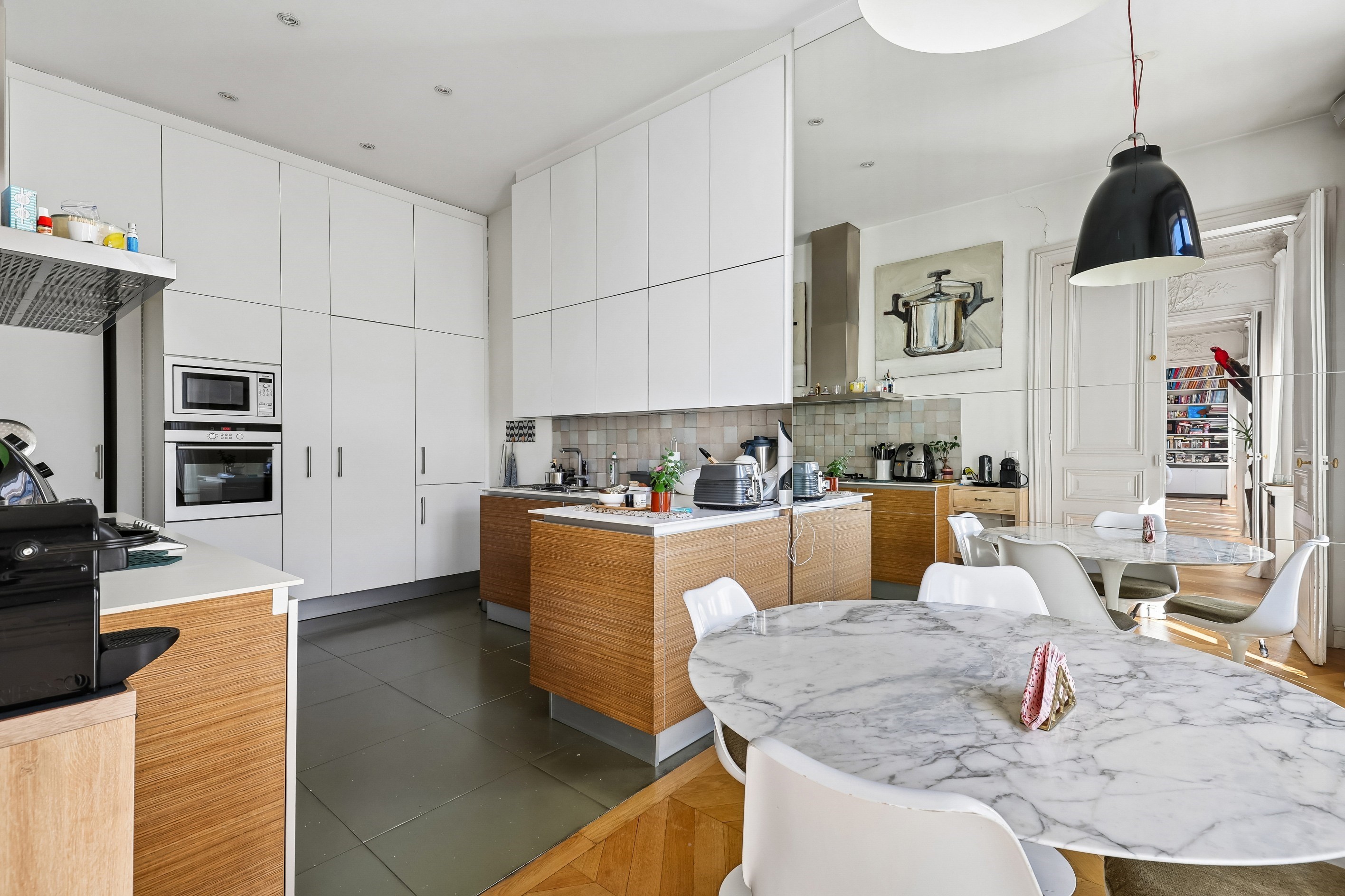 On the border of the 9th and 10th arrondissements, discover a 182-square-meter gem nestled in the heart of a charming building. Located on the second floor of a secure, upscale building with an elevator, the apartment is the only one on the landing. As soon as you step into the entryway, the sense of space is striking thanks to the impressive 3.40-meter-high ceilings. The renovation, executed with great finesse, has enhanced the classic Parisian architectural style while infusing it with a touch of understated modernity. The reception room, bathed in light thanks to its west-facing orientation, flows into a formal dining room, creating a generously sized living space. This luxury property has been designed to meet the demands of high-end family living: Kitchen Area: A high-end eat-in kitchen, a true functional and aesthetic living space, equipped with a wine cellar for your most prized vintages. Bedroom Area: Three spacious suites, each equipped with a custom walk-in closet and a private bathroom. Amenities: A separate laundry room, a guest restroom, and multiple built-in storage solutions. The neighborhood is just a short walk from the gardens of Square Montholon. This quiet, residential setting contrasts with the bustling food shops and designer boutiques in the immediate vicinity. To round out this rare find on the market, the apartment offers major logistical advantages: two cellars and a parking spot.