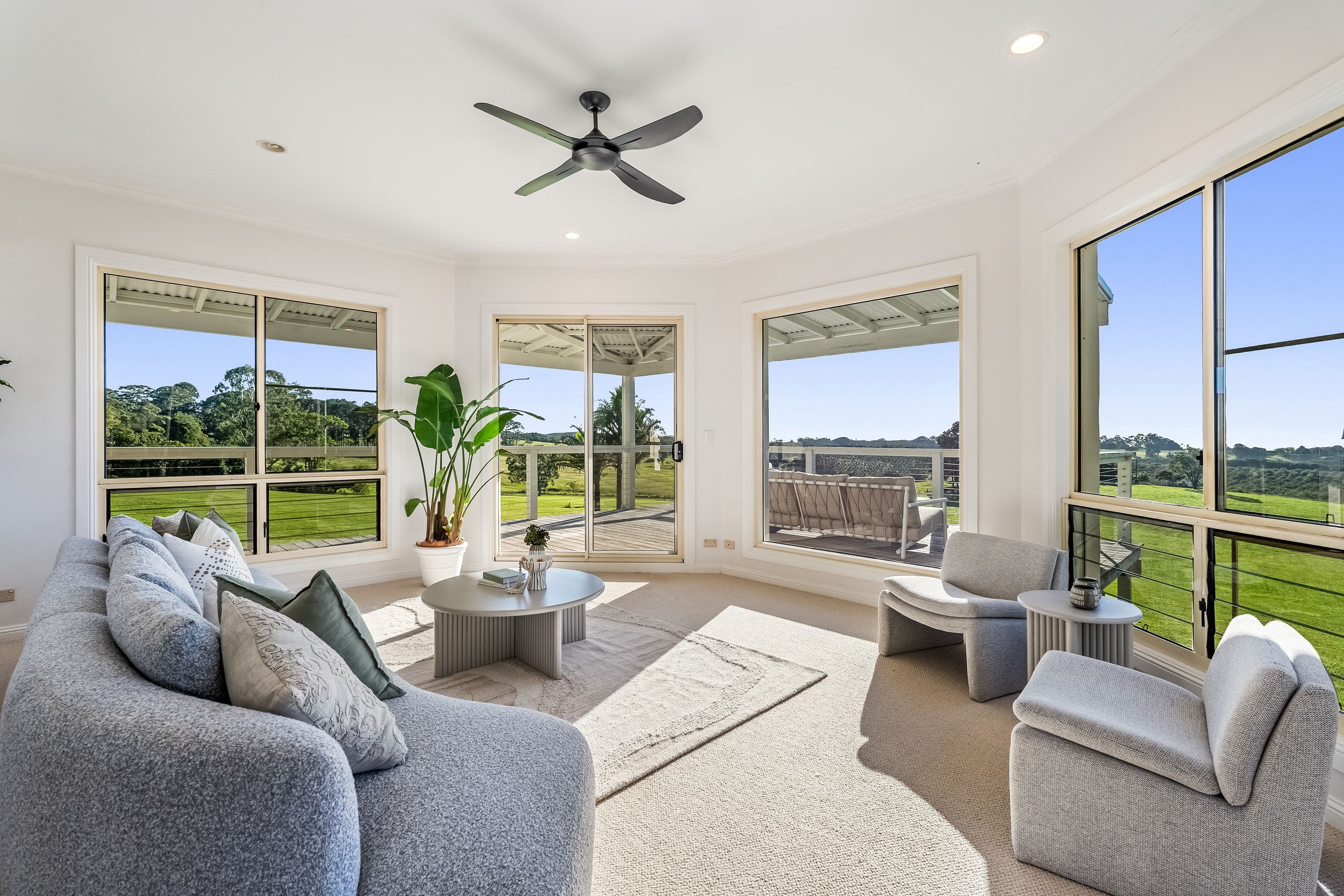 Perfectly positioned to capture breathtaking sunrise vistas across the rolling green pastures of the Northern Rivers, 330 Fernleigh Road presents a rare opportunity to secure a private 23-acre hinterland sanctuary of exceptional space, beauty and tranquillity. Set amid manicured, golf-course style lawns, mature palms and lush subtropical surrounds, this elevated acreage offers a peaceful retreat just moments from the vibrant villages of Bangalow and Lennox Head's iconic beaches - delivering a seamless balance of rural serenity and coastal convenience.