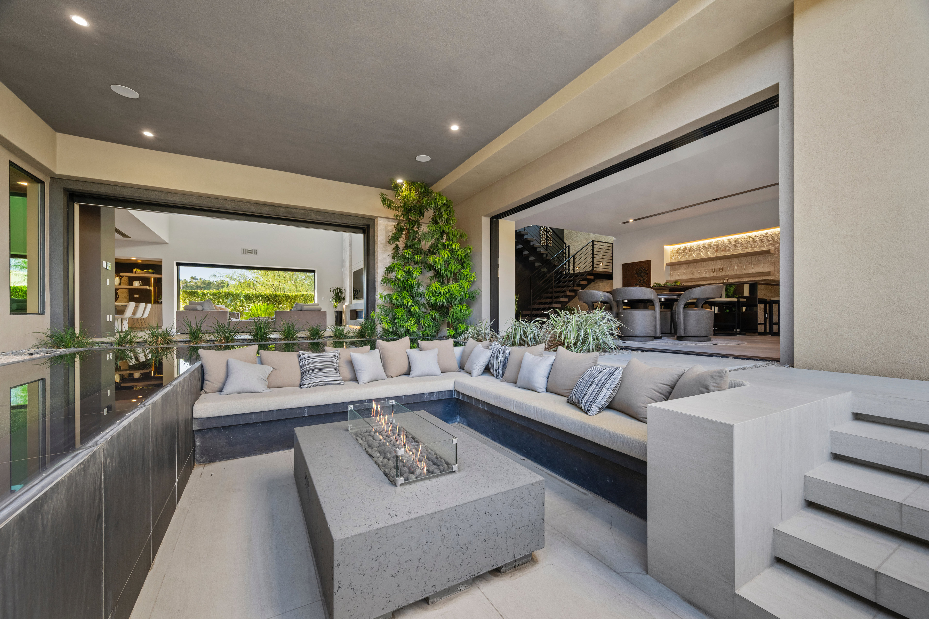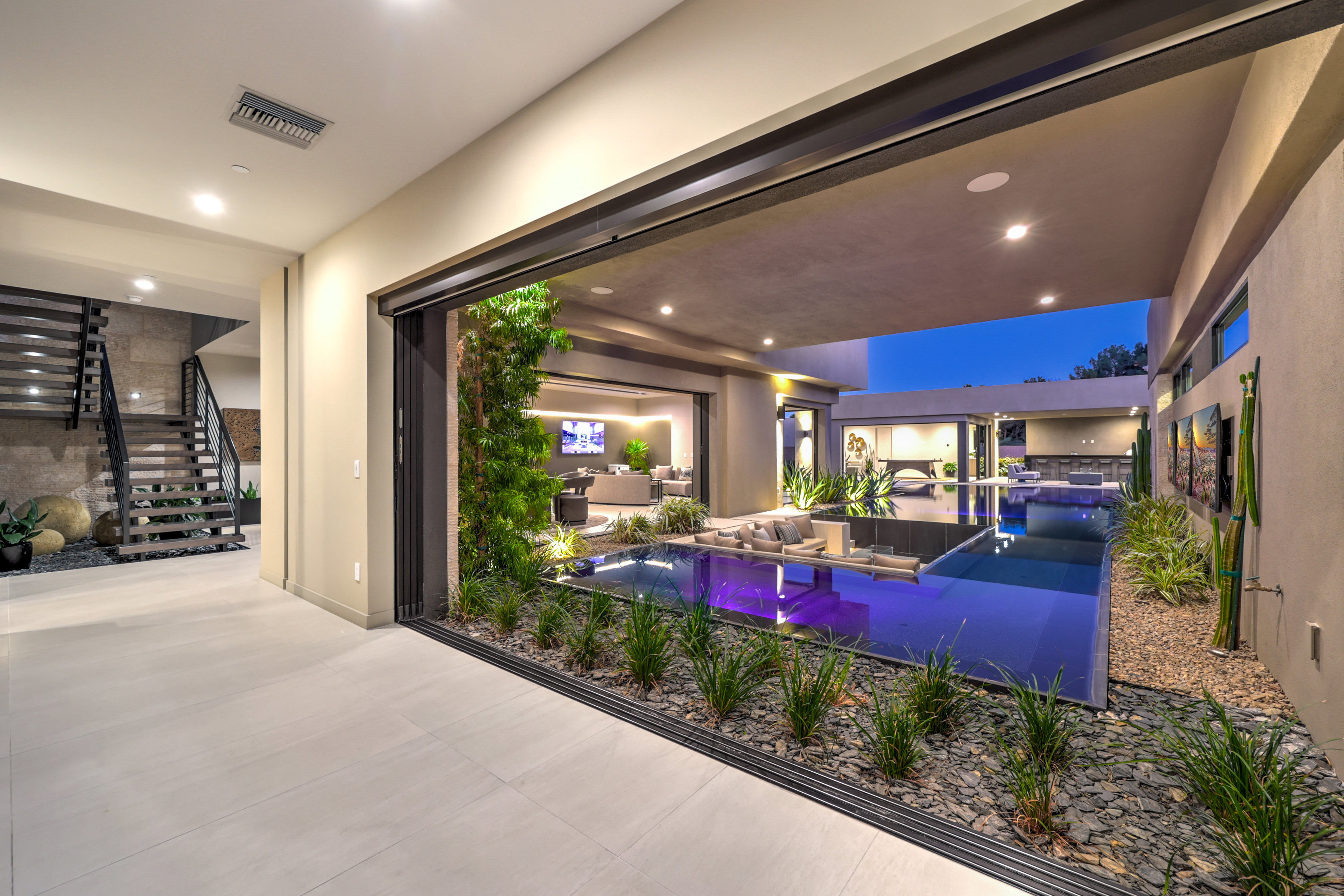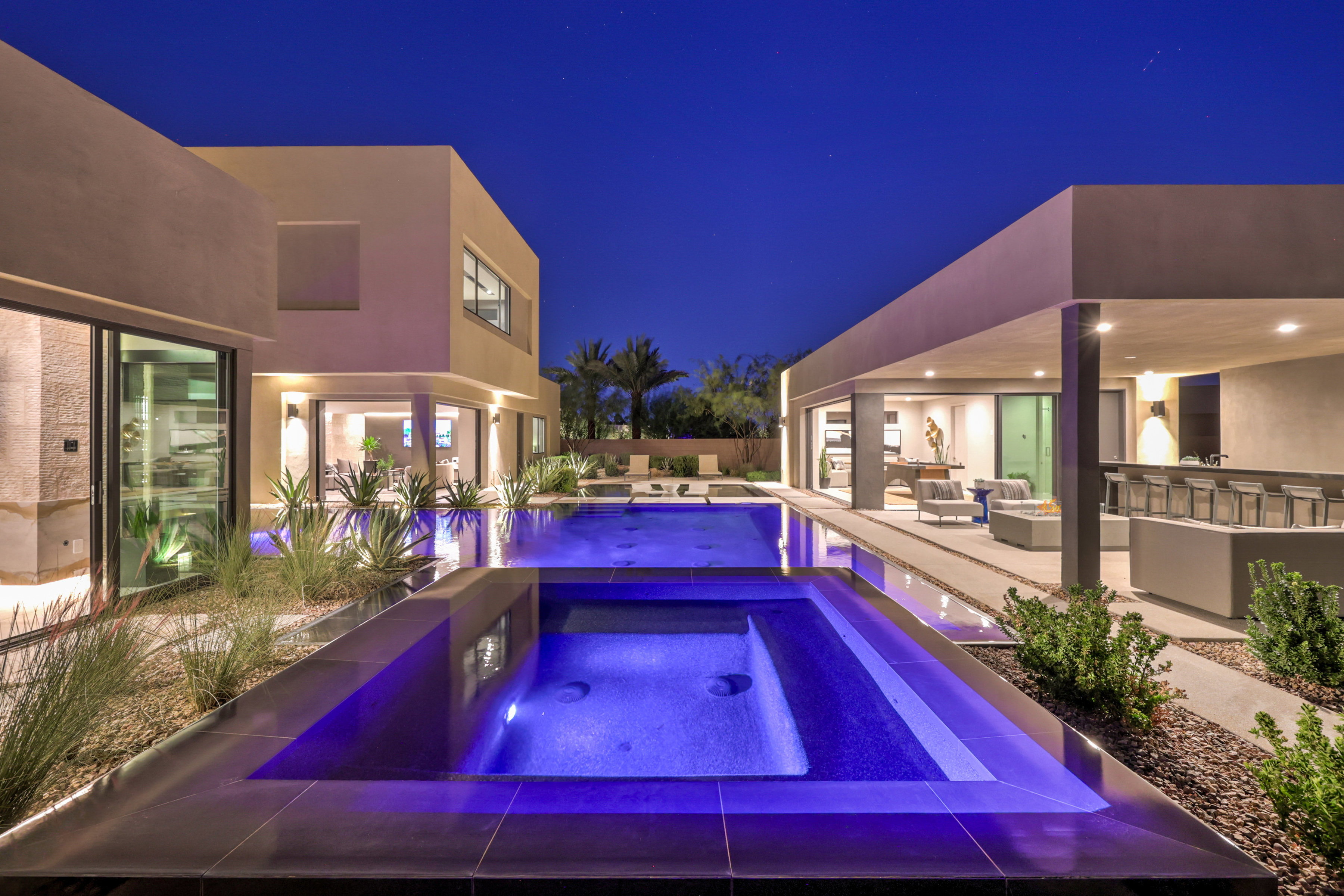 Welcome to 7070 Nomi Court, located in Oasi at Tomiyasu, an intimate 24-home guard-gated community designed for privacy, peace, and connection. This 6,500+ sqft architectural retreat embodies light, energy, and intention—crafted to flow effortlessly with its surroundings. Fully furnished by world-renowned designers, every space radiates warmth and balance. Walls of glass disappear completely, creating seamless harmony between indoor serenity and the resort-style outdoor oasis. The home automation system curates ambiance with a touch—lighting, sound, and climate all attuned to your mood. The primary suite opens to the spa, featuring a private outdoor shower for moments of renewal beneath the desert sky. A luxurious casita adds flexibility for guests or creative space. Outside, a half-acre sanctuary awaits—pool, spa, fire features, and outdoor kitchen surrounded by tranquil desert landscaping. Every element of this home was designed with intention—to restore, recharge, and inspire.