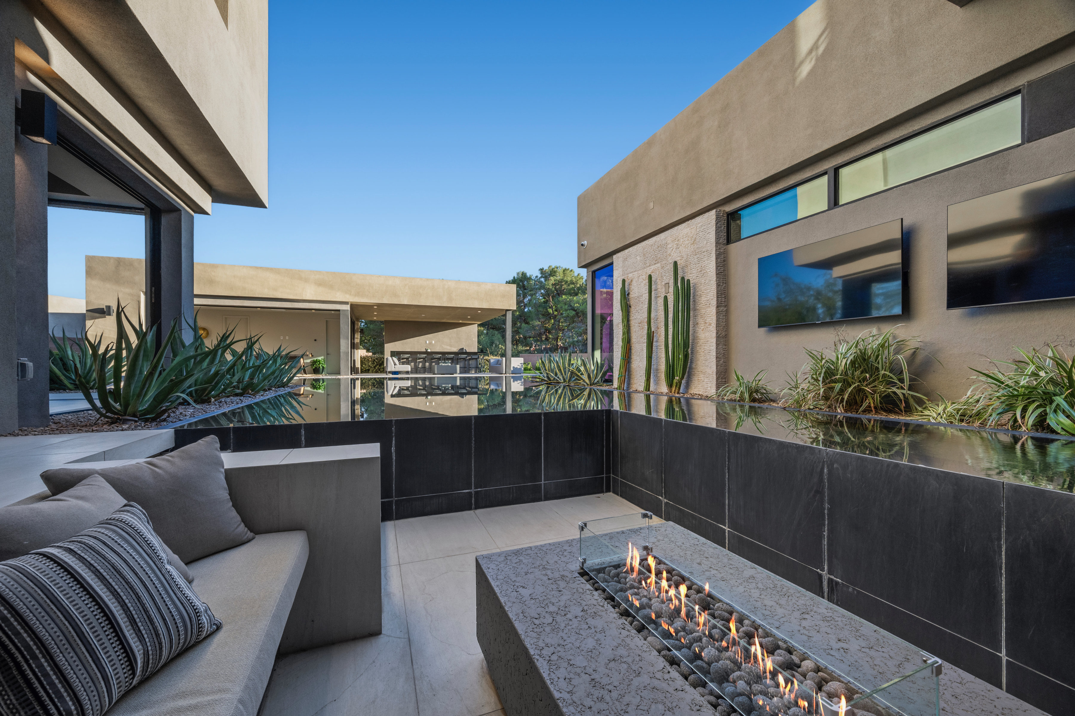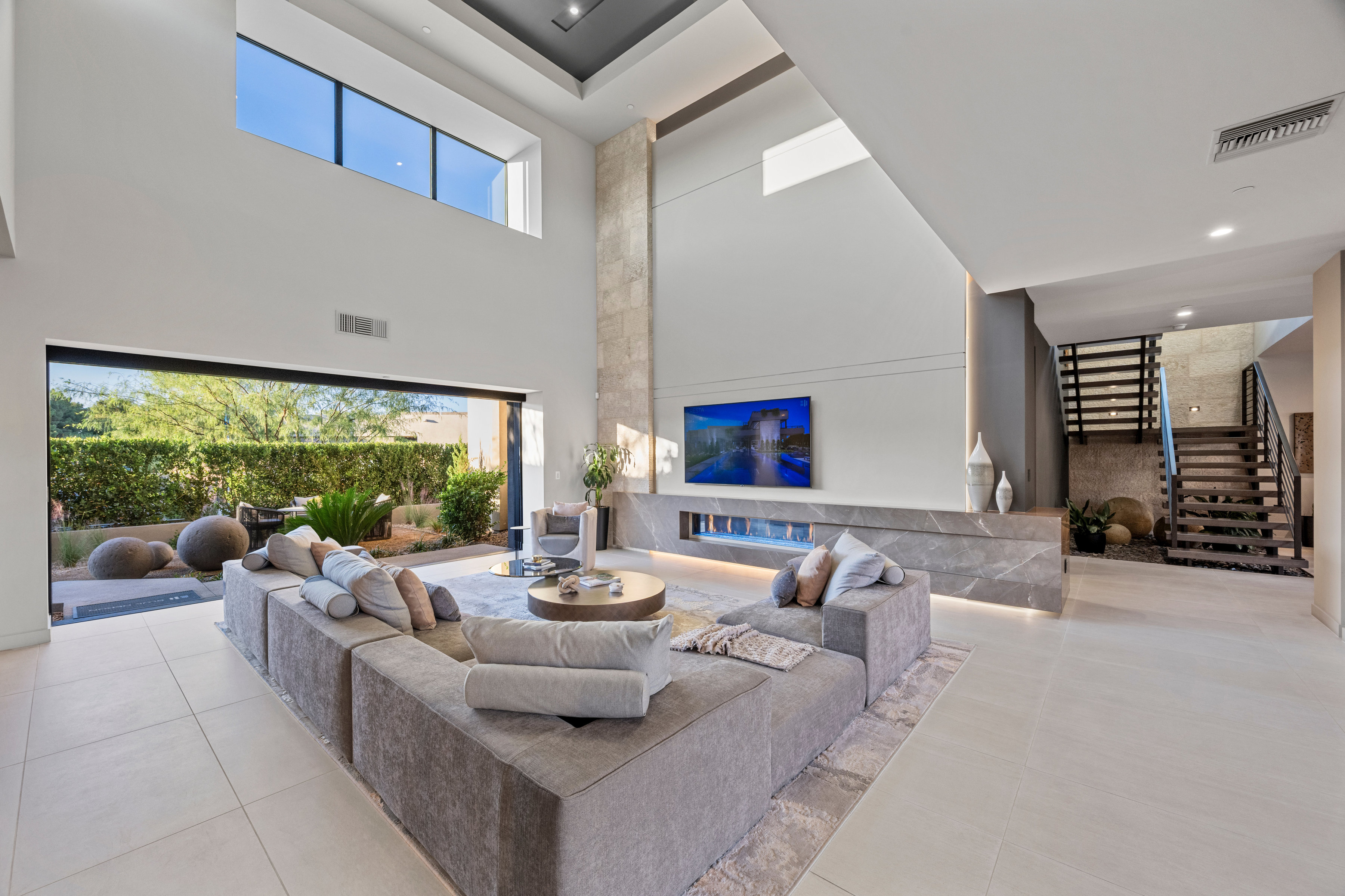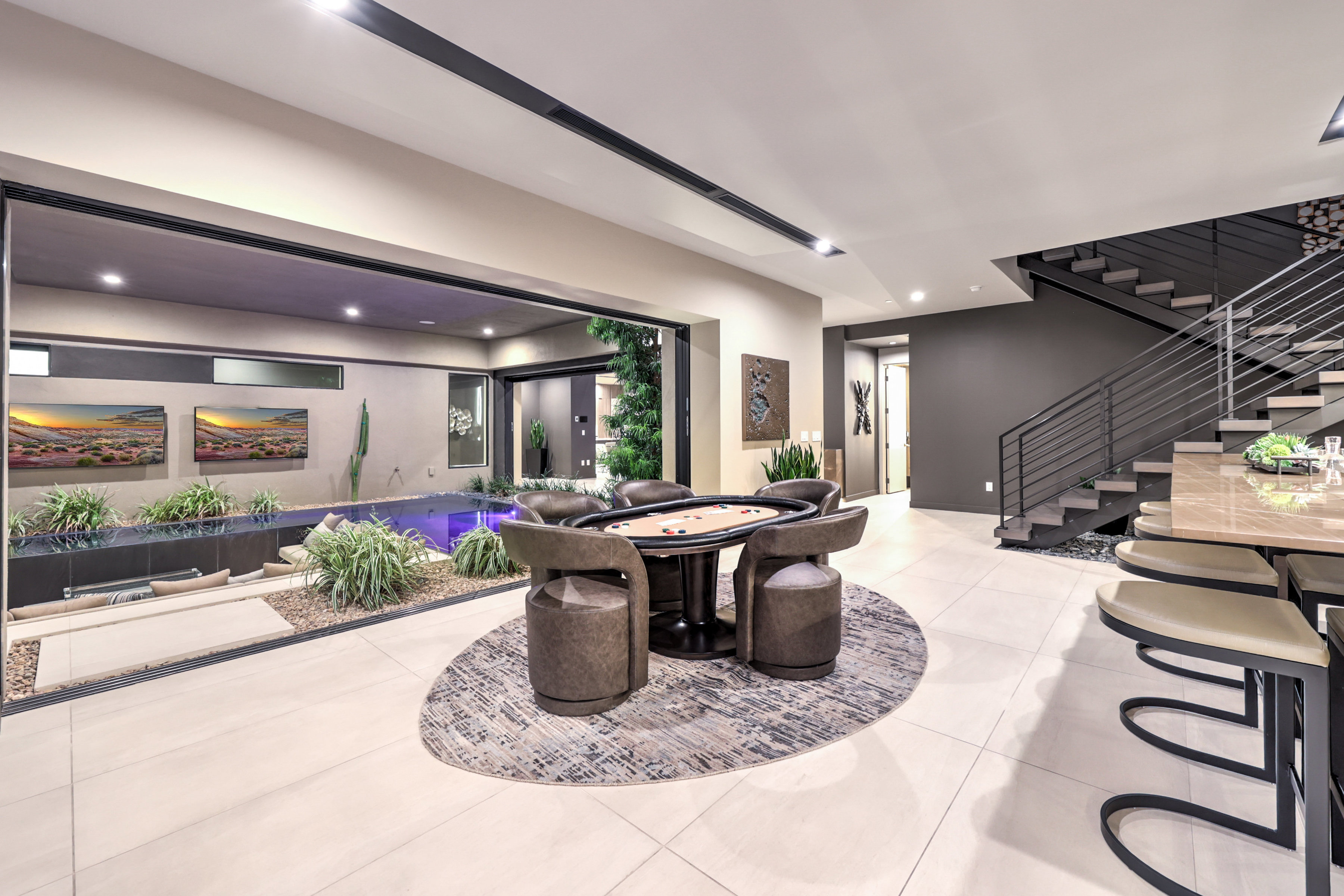 Welcome to 7070 Nomi Court, located in Oasi at Tomiyasu, an intimate 24-home guard-gated community designed for privacy, peace, and connection. This 6,500+ sqft architectural retreat embodies light, energy, and intention—crafted to flow effortlessly with its surroundings. Fully furnished by world-renowned designers, every space radiates warmth and balance. Walls of glass disappear completely, creating seamless harmony between indoor serenity and the resort-style outdoor oasis. The home automation system curates ambiance with a touch—lighting, sound, and climate all attuned to your mood. The primary suite opens to the spa, featuring a private outdoor shower for moments of renewal beneath the desert sky. A luxurious casita adds flexibility for guests or creative space. Outside, a half-acre sanctuary awaits—pool, spa, fire features, and outdoor kitchen surrounded by tranquil desert landscaping. Every element of this home was designed with intention—to restore, recharge, and inspire.