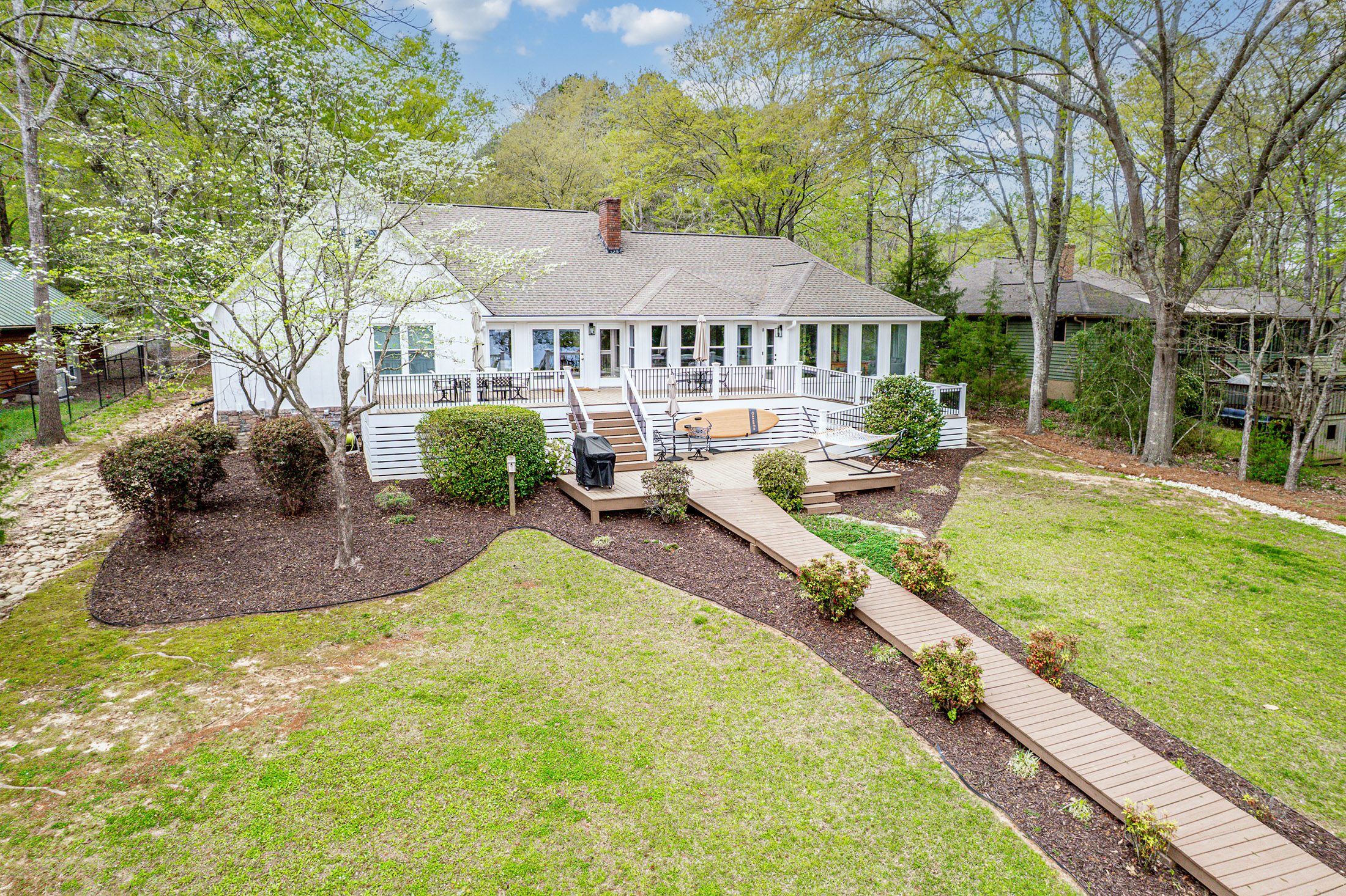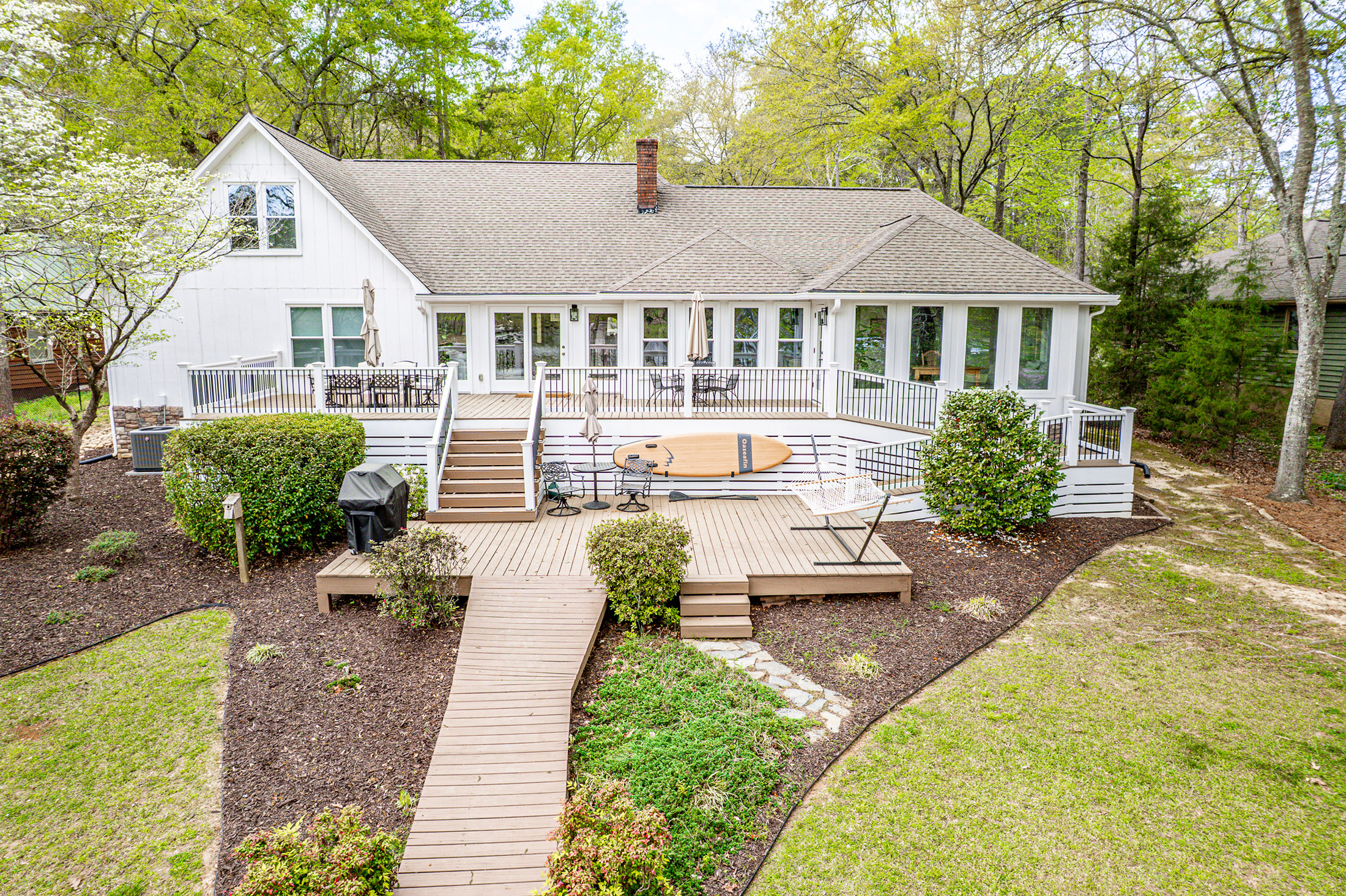Short Term Rental Opportunity: Newly refreshed, beautifully maintained, and ideally positioned on a stunning 196-foot lakefront lot, this exceptional property offers the perfect blend of comfort, privacy, and convenience. Nestled in a quiet cove with a Max dock and just two minutes from the new Publix and Harmony Crossing shopping district, this home delivers the ultimate Lake Oconee lifestyle. Enjoy peaceful mid-cove living with great water views from your private dock, while being tucked away in a serene, established neighborhood. The lot features manicured landscaping, a beautiful stone fire pit, a short Georgia Power boundary, and an easy walk to the dock. Inside, the home is thoughtfully designed and layout with expansive windows that capture lake views from every room across the back of the home. The living room features a vaulted natural wood ceiling and a striking stone wall with a freestanding stove-perfect for cozy fall evenings. Upstairs you will find an expansive room with plenty of space to create a bunk room or recreational room or cozy den. A spacious deck extends the living space outdoors, ideal for entertaining or relaxing lakeside. The main level offers two private primary suites on opposite ends of the home, providing comfort and privacy for family or guests. All three full bathrooms have been updated with stone and tile showers and granite countertops. The home features low-maintenance tile flooring and hardwoods through out, along with tray and vaulted ceilings for added architectural detail. Additional features include a two-car carport with generous storage that could easily be enclosed if desired. For investors, primary or second-home buyers, this property offers excellent flexibility-located in Putnam County, it has a proven history as both a Short-Term rental and long-term rental, presenting an opportunity to offset ownership costs while enjoying your own lake retreat. This is a rare opportunity to own a move-in ready, well-maintained lakefront home with premium frontage, a max dock, and unbeatable proximity to Lake Oconee's most desirable amenities.