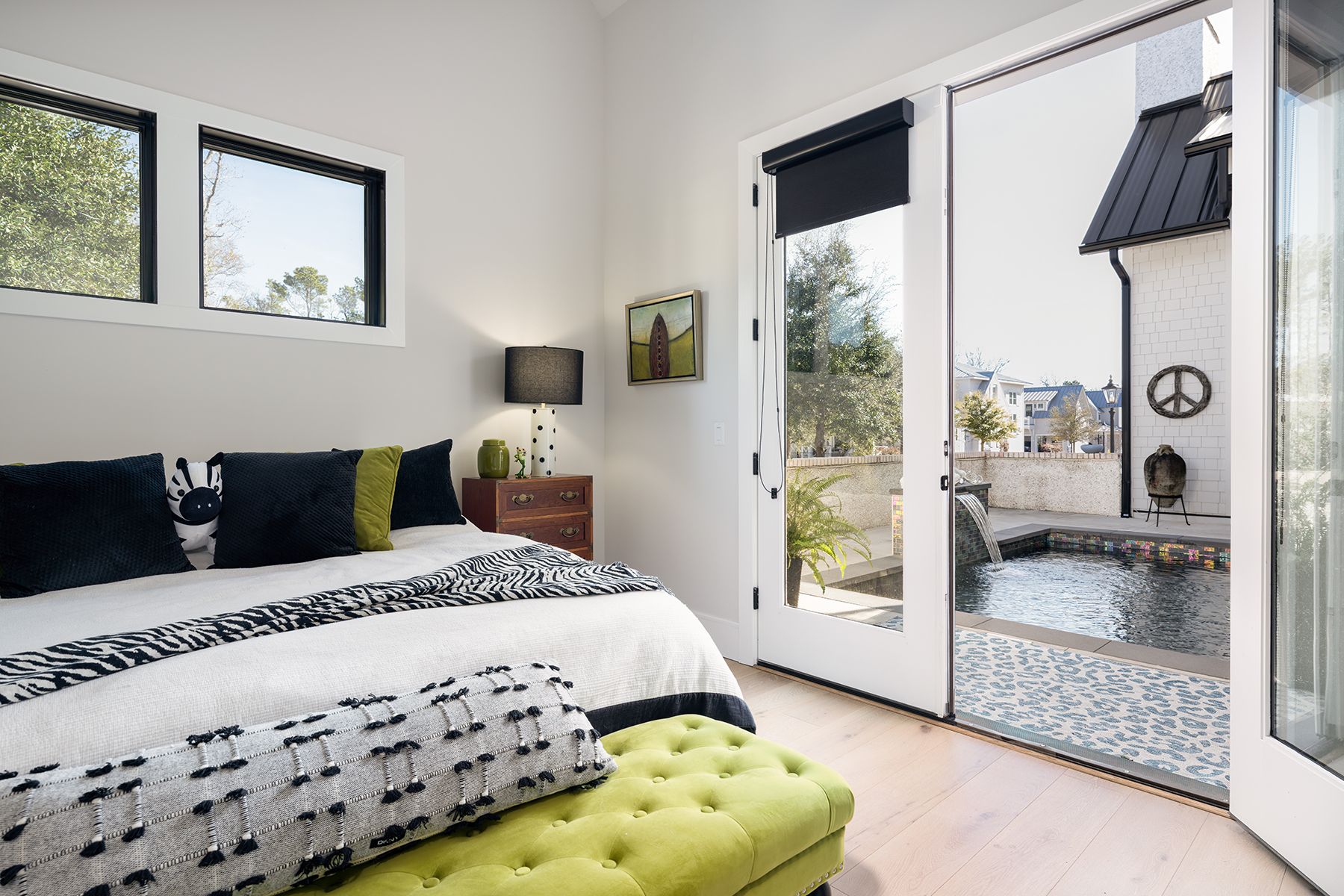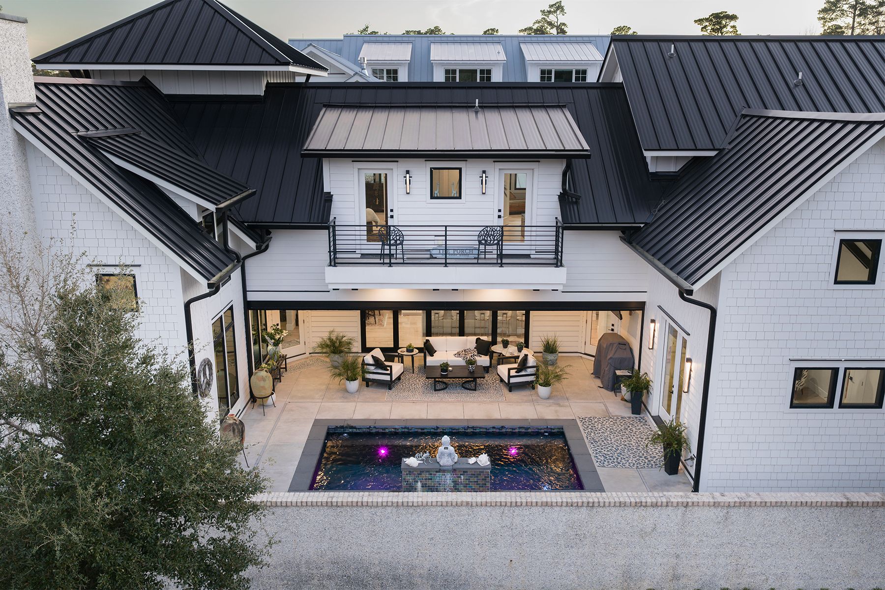 A private courtyard pool creates a true centerpiece beautifully integrated with the home's living spaces. A Phantom Screen system allows for seamless flexibility, inviting open-air breezes when desired or screened comfort for year-round enjoyment.