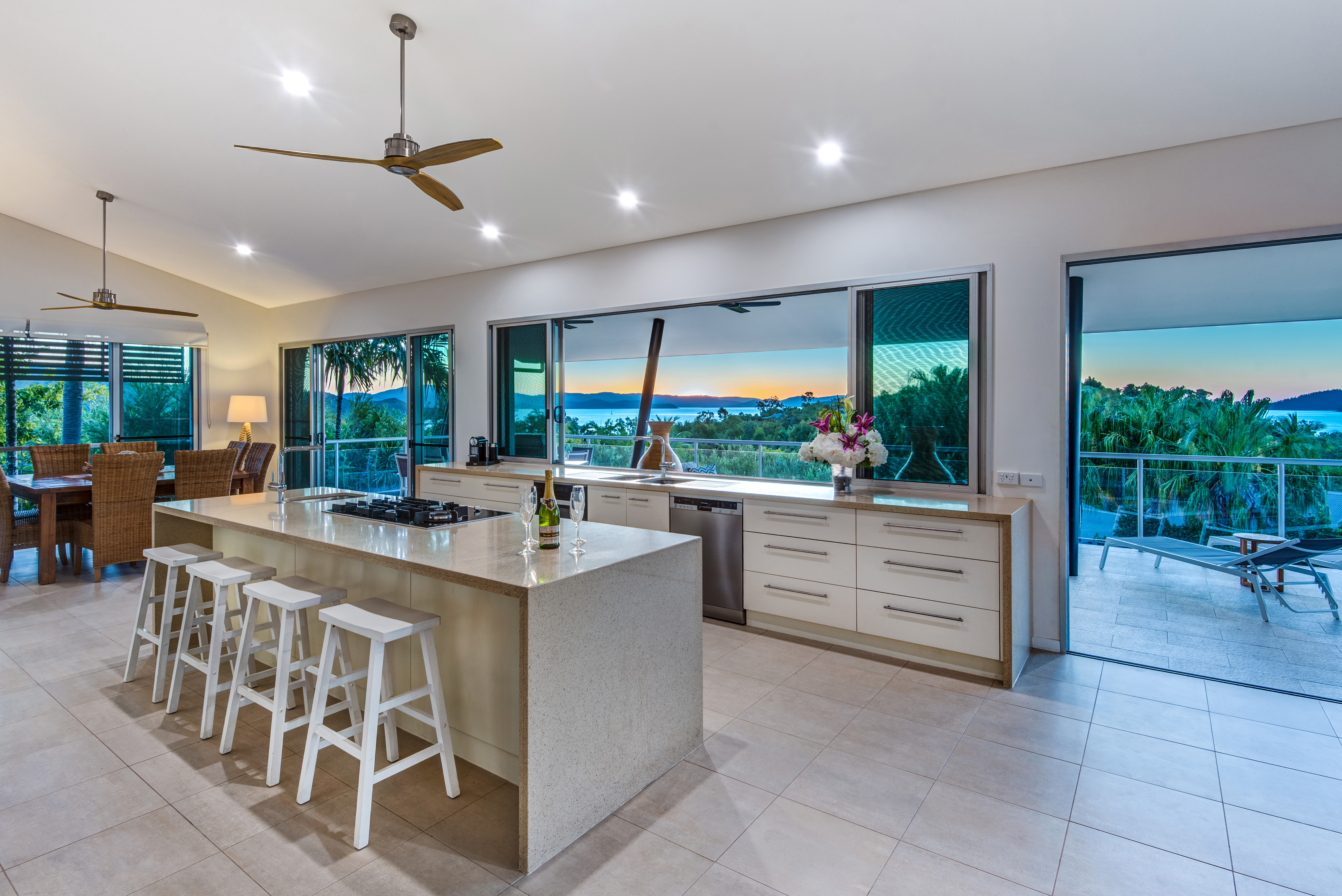 Enter straight in from your own buggy port to a large open plan living, kitchen and lounge area with large concertina doors that open up making the balcony and living space one large entertaining area. With tiled floor, granite bench tops, two pack cabinetry and extensive windows and glass doors makes for a bright and breezy sanctuary. The views from this level opens up towards Whitsunday Island and the passage with scenic views that postcards are made from.