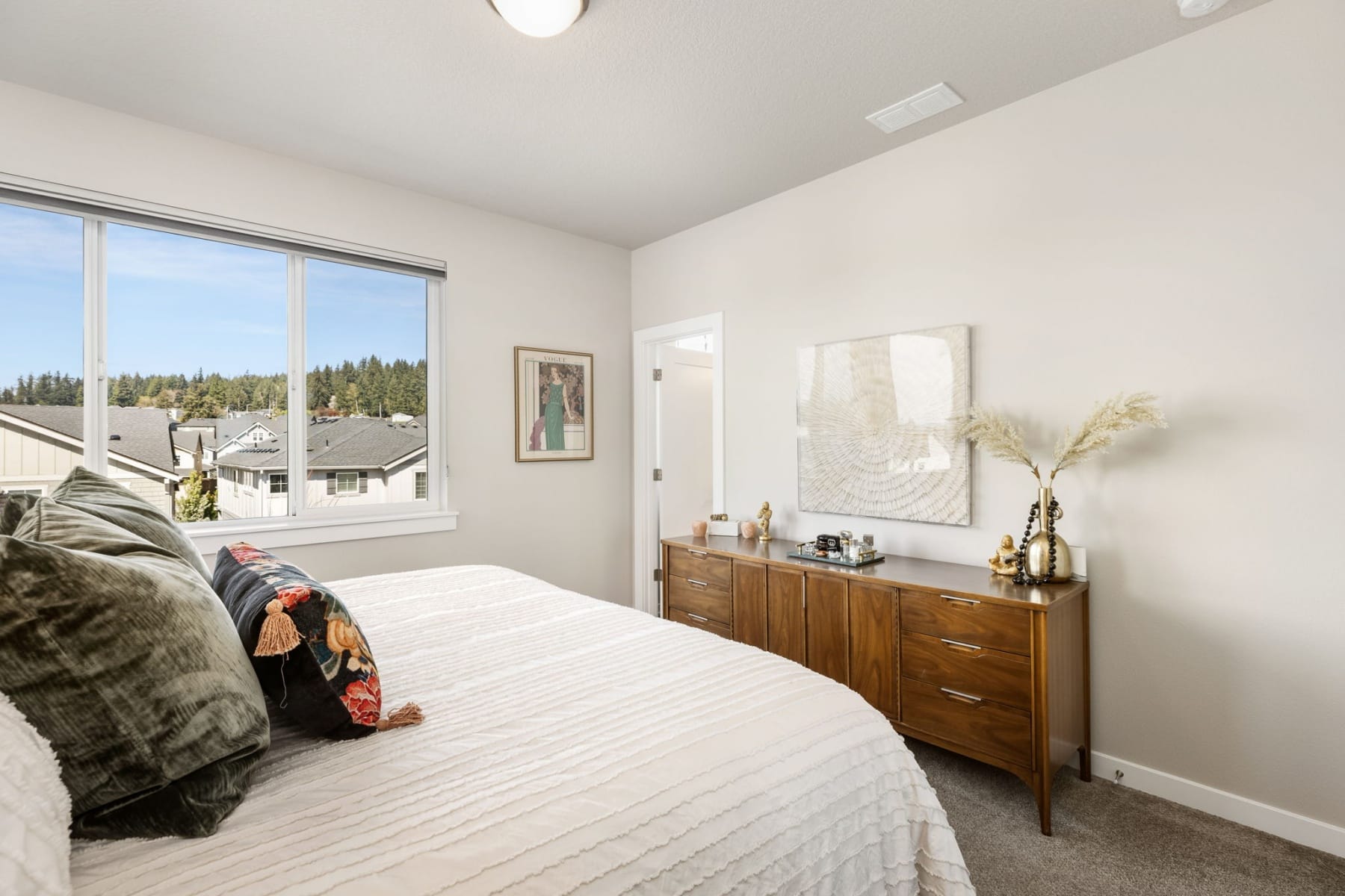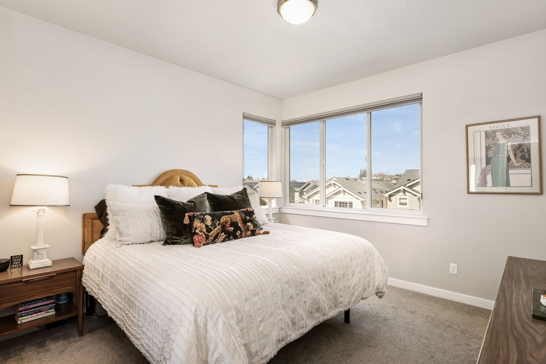 Tucked away on a quiet dead end street in the highly sought after South Cooper Mountain neighborhood, this exceptional end-unit home by Everett Custom Homes offers a rare opportunity to experience the best of Northwest living where peaceful surroundings, natural beauty and everyday convenience come together.Surrounded by rolling hills, neighborhood parks and miles of scenic trails, this home is just minutes from Cooper Mountain Nature Park, as well as shopping, dining and gathering spots at Progress Ridge, Murray Hill, and Washington Square creating the perfect balance between nature and convenience.Inside, the light filled 2,055 sq ft layout features expansive windows and an open concept main level designed for connection. The spacious kitchen includes a large island, quartz surfaces, stainless steel appliances and soft close cabinetry, along with a convenient main level half bath. Upstairs offers a primary suite with walk-in closet and ensuite bath, additional bedrooms, and laundry. The lower level den provides flexible space for a home office, guest room, or optional fourth bedroom.Designed with comfort and efficiency in mind, the home features a high efficiency zoned and ducted heat pump for heating and cooling, a programmable thermostat, and a 50 gallon heat pump water heater. Additional energy conscious upgrades include R23 insulation in exterior walls, dual pane vinyl windows with Low E glass, low VOC paint and 100% LED lighting throughout.Step outside onto a generous Trex deck, ideal for year round enjoyment. The home offers added light and privacy, along with an attached two car garage, an EV plug-in, and modern functionality throughout.Located by top rated schools and major employers, this home offers not just a place to live, but a lifestyle rooted in the natural beauty and ease of the Pacific Northwest.