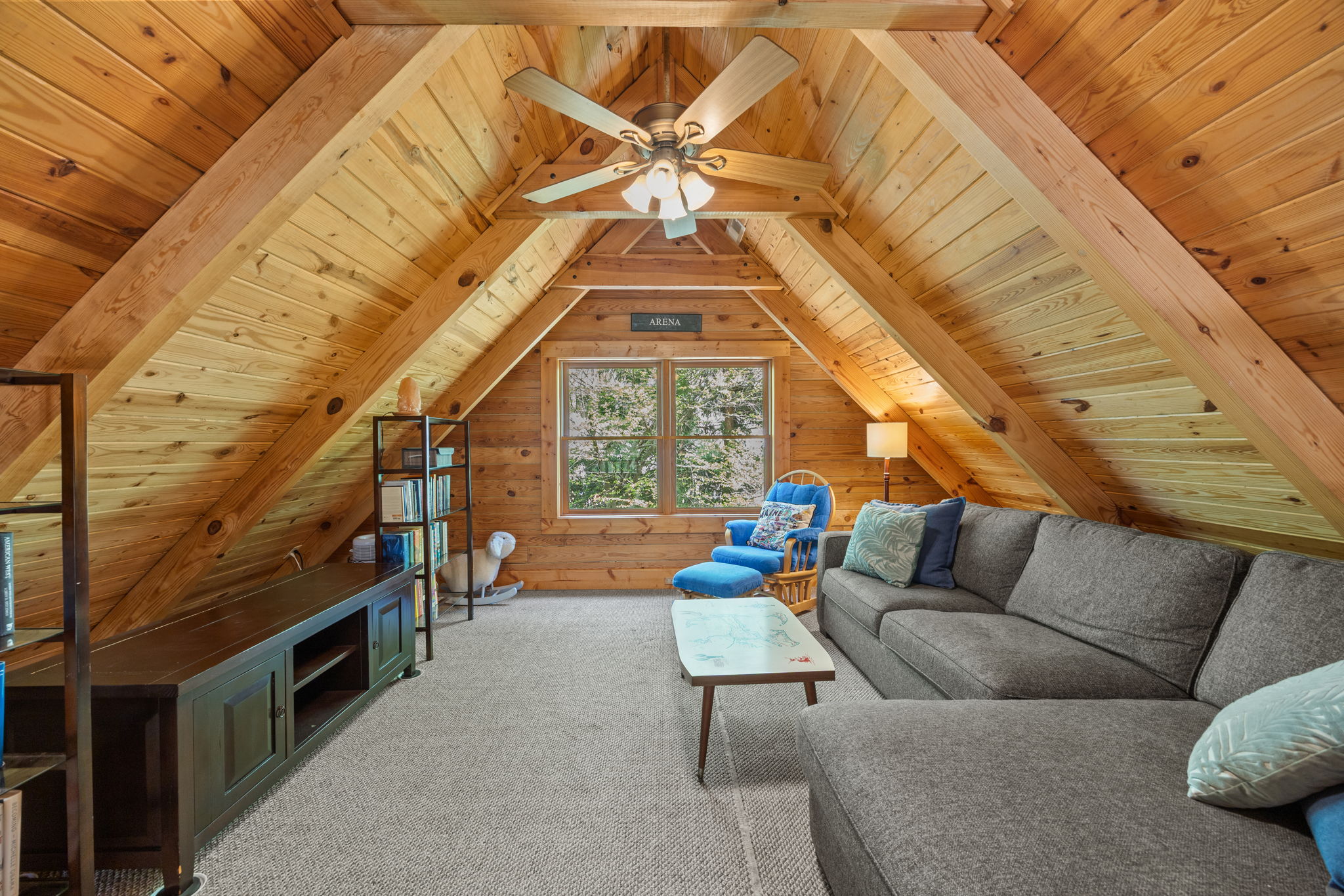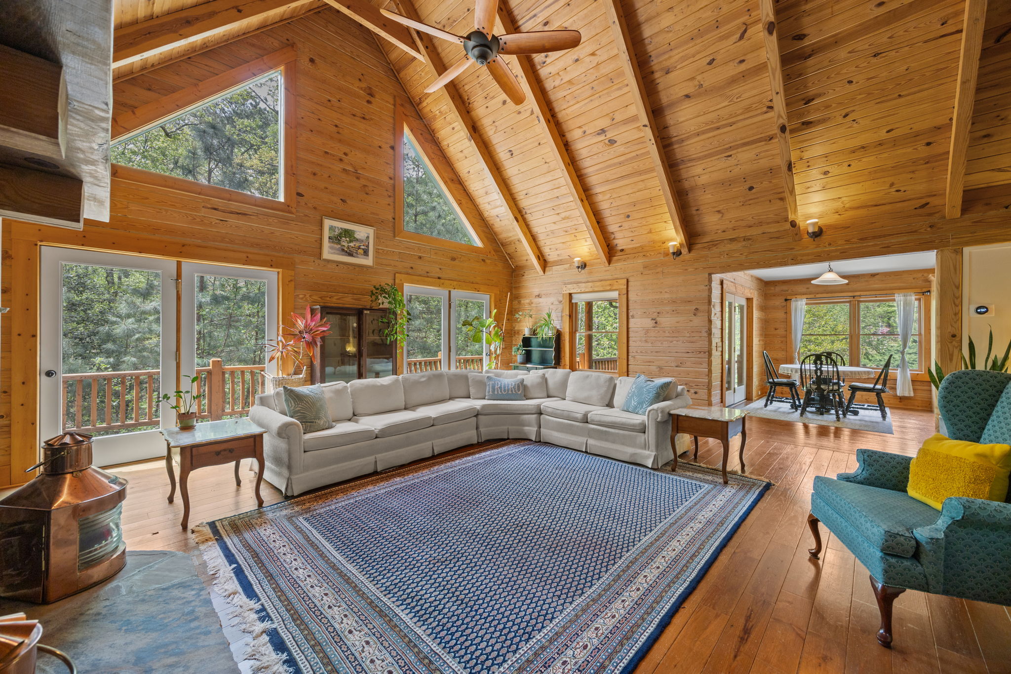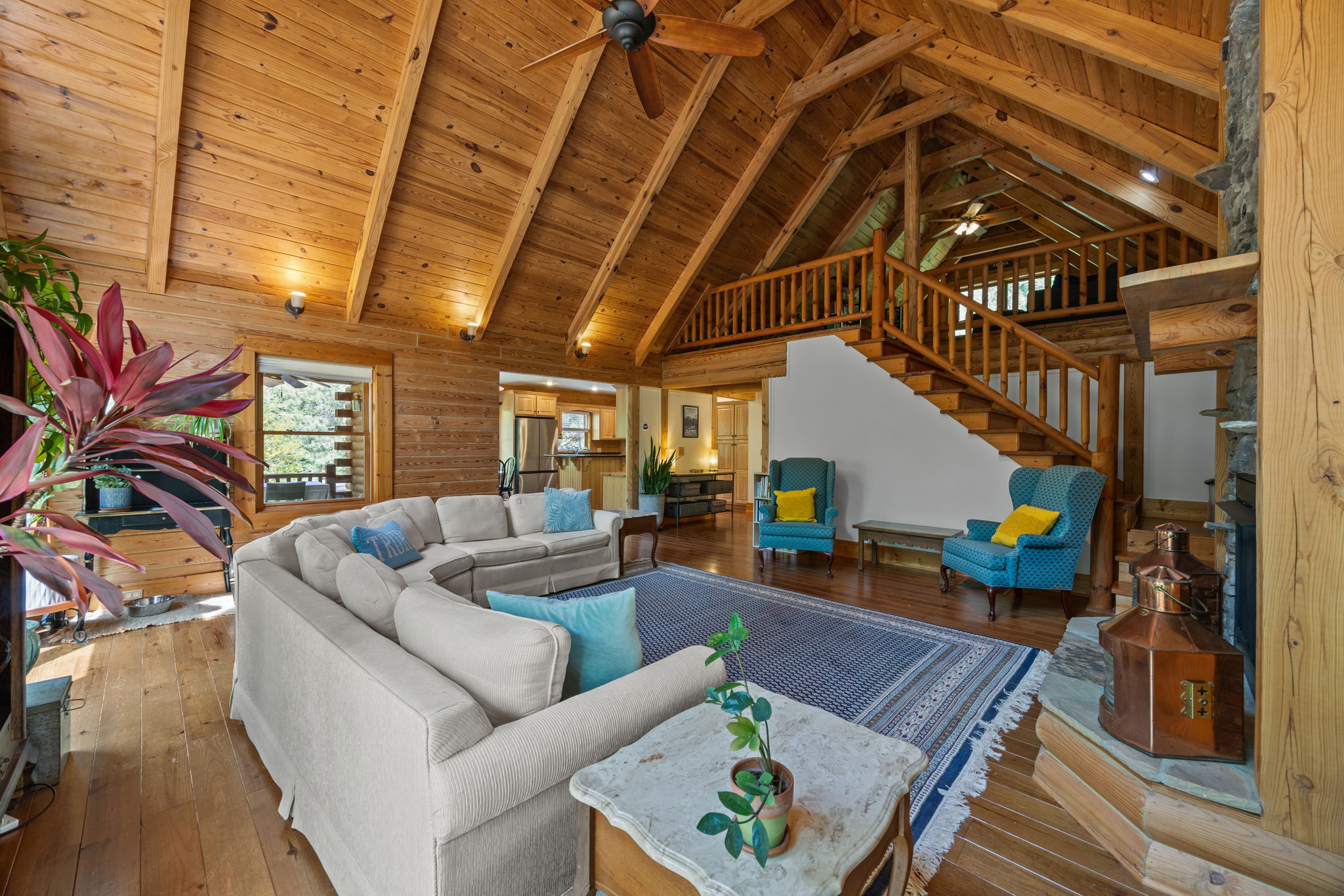 Tucked into a wonderful Durham neighborhood, this log home offers a rare blend of warmth, character, and everyday convenience. Natural light fills the home, highlighting the great room with soaring ceilings and comfortable bedrooms. A loft overlooking the main living area provides flexibility for a TV room, playroom, or home office. The lower level features a versatile music studio that could serve as a soundproof office, meditation room, or cozy hangout. A dedicated storage room and separate workshop add functionality, while the wraparound deck offers the perfect setting to relax or entertain outdoors. Surrounded by nature views and set in a desirable location, the home feels like a peaceful retreat while still being close to everything Durham has to offer, including a brand new Publix grocery store.