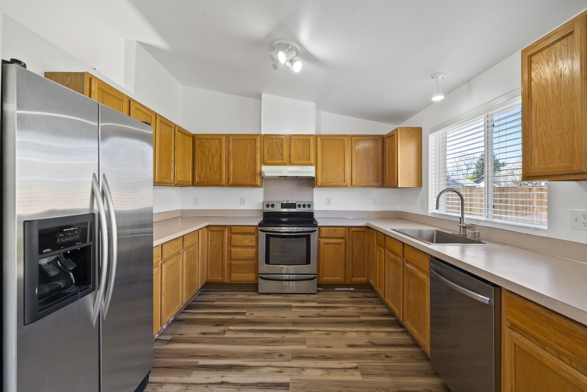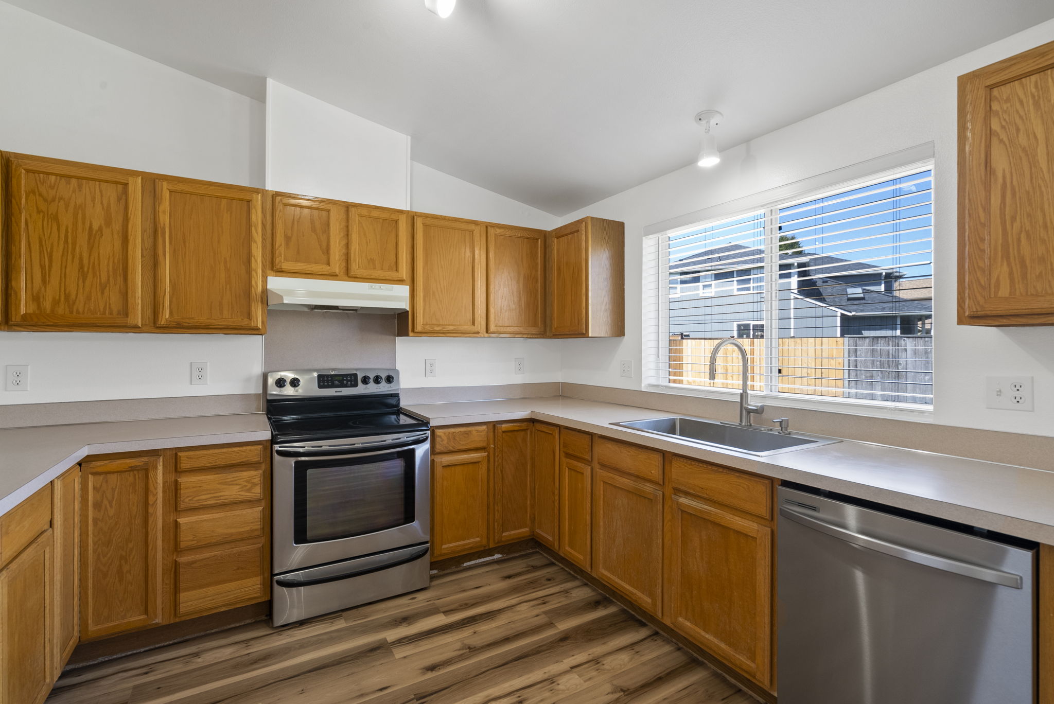 Discover this gem in Lacey! This 3-bedroom, 2-bathroom, no-step entry rambler features a light-filled open concept with vaulted ceilings and skylights. Enjoy stylish new luxury vinyl plank flooring, stainless steel appliances, and the comfort of central AC. Large primary suite with walk-in closet. The prime location is just minutes from shopping, restaurants, and local golf courses. Move-in ready and low maintenance - this is the one you've been waiting for!