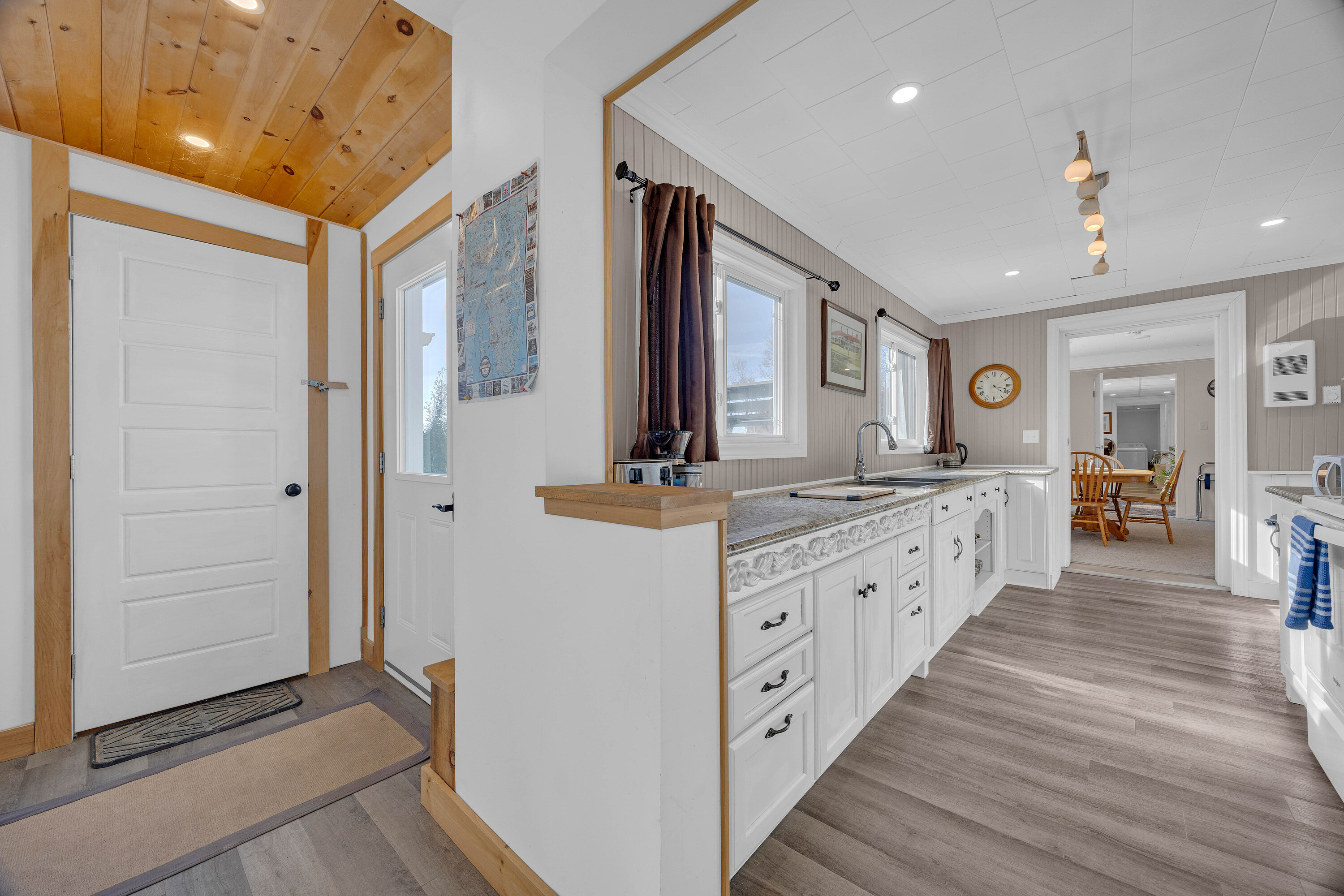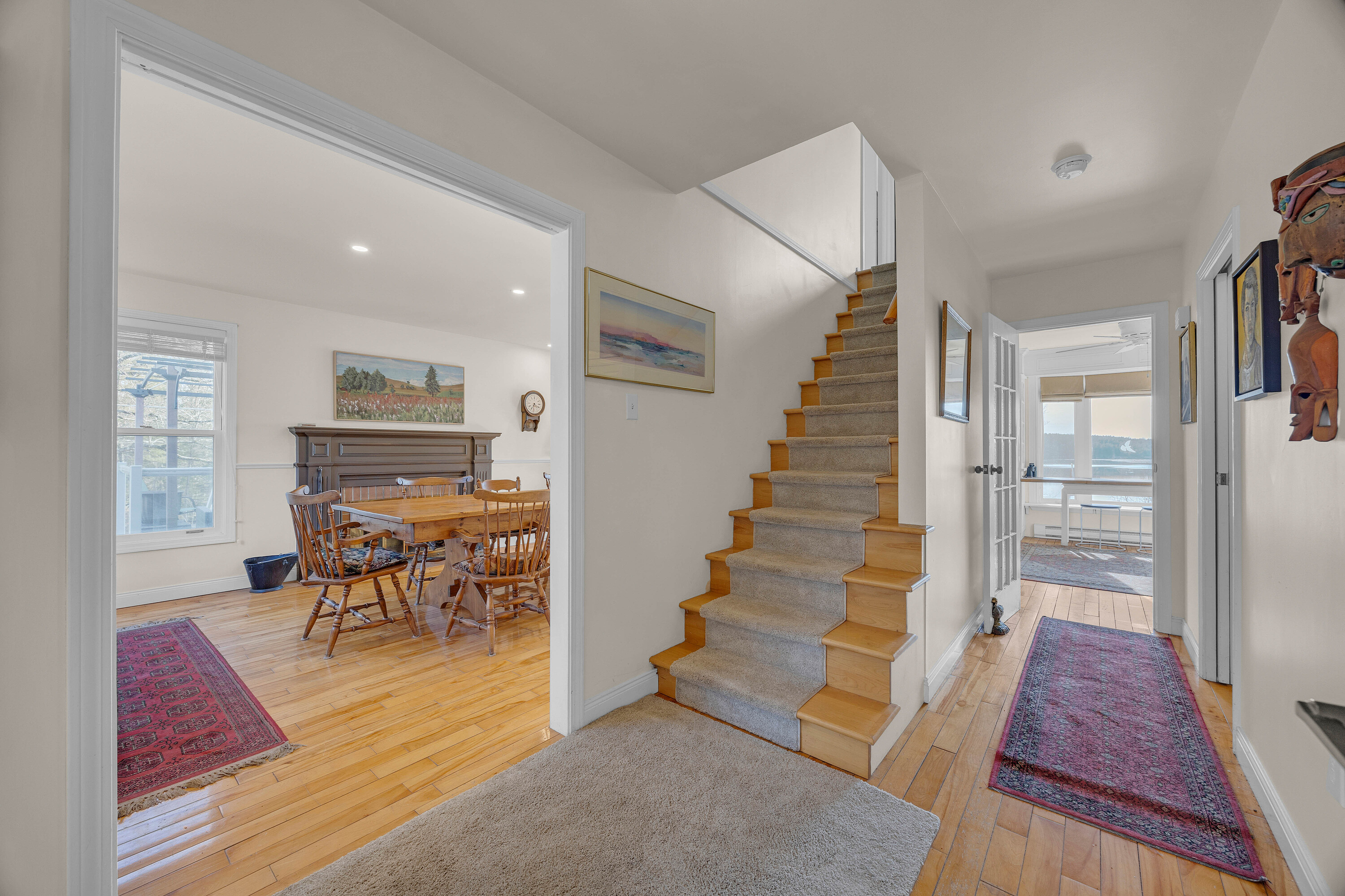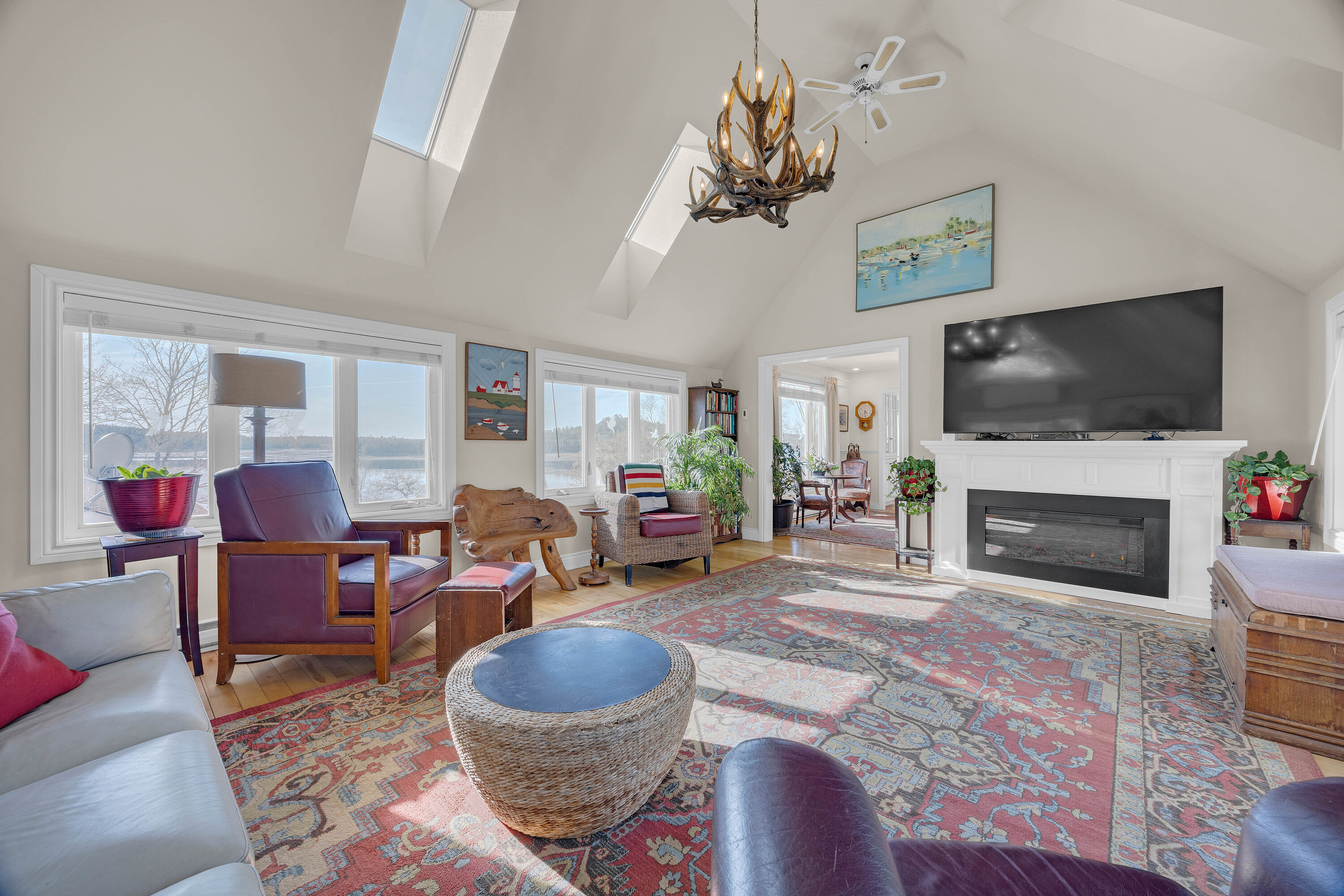 Set on 256 feet of beautiful waterfront in Oak Bay, ideally located between St. Andrews and St. Stephen, this Cape Cod-style home offers over 3,779 sqft. of exceptional coastal living. Accessed by a private road, the property is currently operated as a successful Airbnb, generating an impressive income stream and offering outstanding investment potential. The grounds feature lush lawns, fruit trees, and fenced yard space for pets, along with direct beach access, perfect for kayaking, seaside walks, and enjoying breathtaking sunsets. Expansive decks and a gazebo create ideal outdoor living spaces. Inside, the home is designed for both comfort and entertaining, with a spacious dining room with wood fireplace, a vaulted living room with skylights, and large windows showcasing stunning water views throughout. The main residence offers three bedrooms, 2.5 baths, a den/office, and ample storage. The walk-out lower level includes an additional one bedroom + den, one bathroom Airbnb suite with amazing storage options. A standout feature is the separate two-bedroom residence on a slab foundation with propane fireplace (built in 2022), connected by a 17-foot enclosed passageway, perfect for multi-gen living or added rental income. Two Generac home generators (one for each structure) provide peace of mind all year long. With a total of six bedrooms and 4 and a half bathrooms, this versatile property is ideal as a private coastal retreat, income-generating investment, or multigenerational family home.