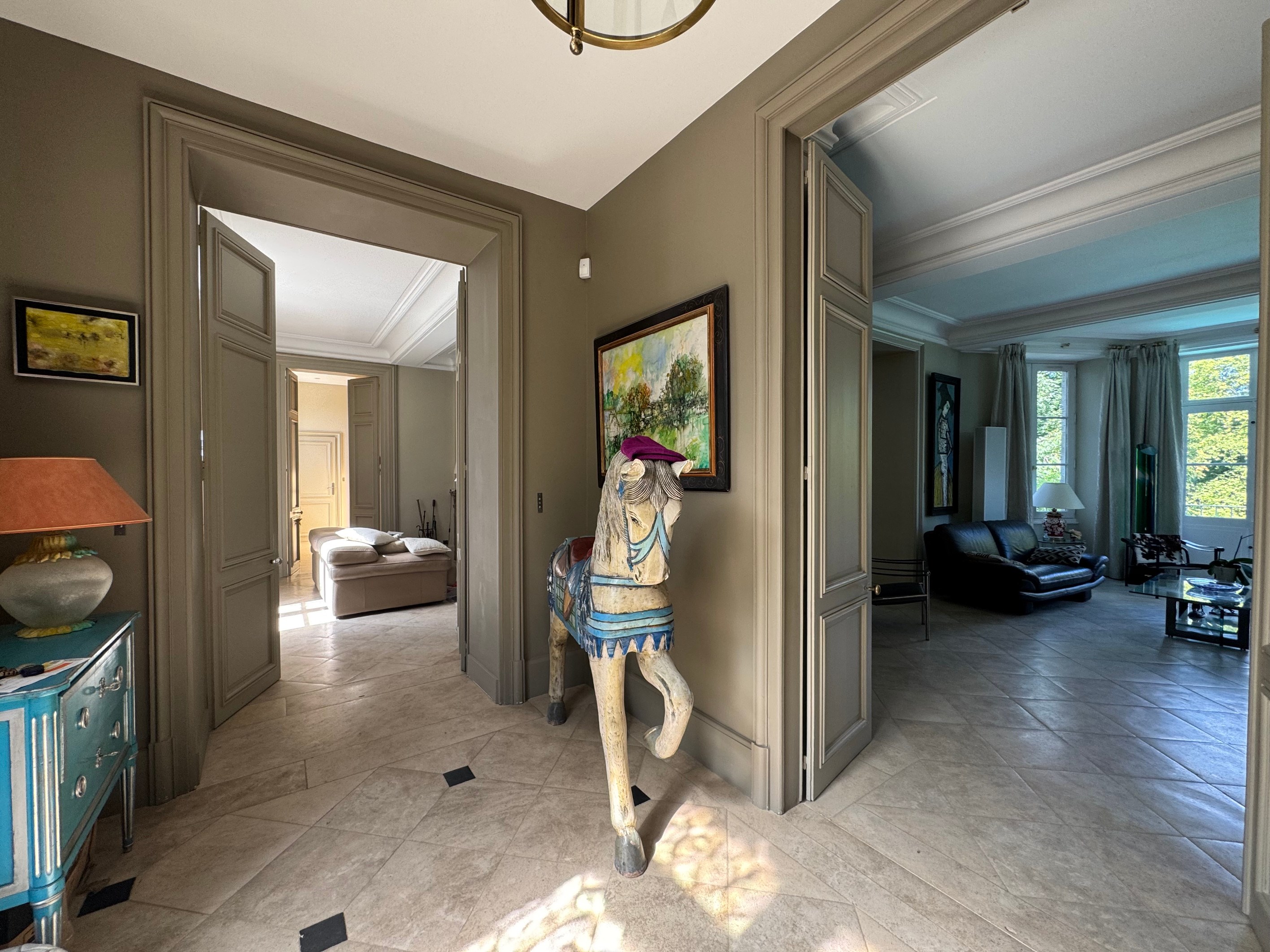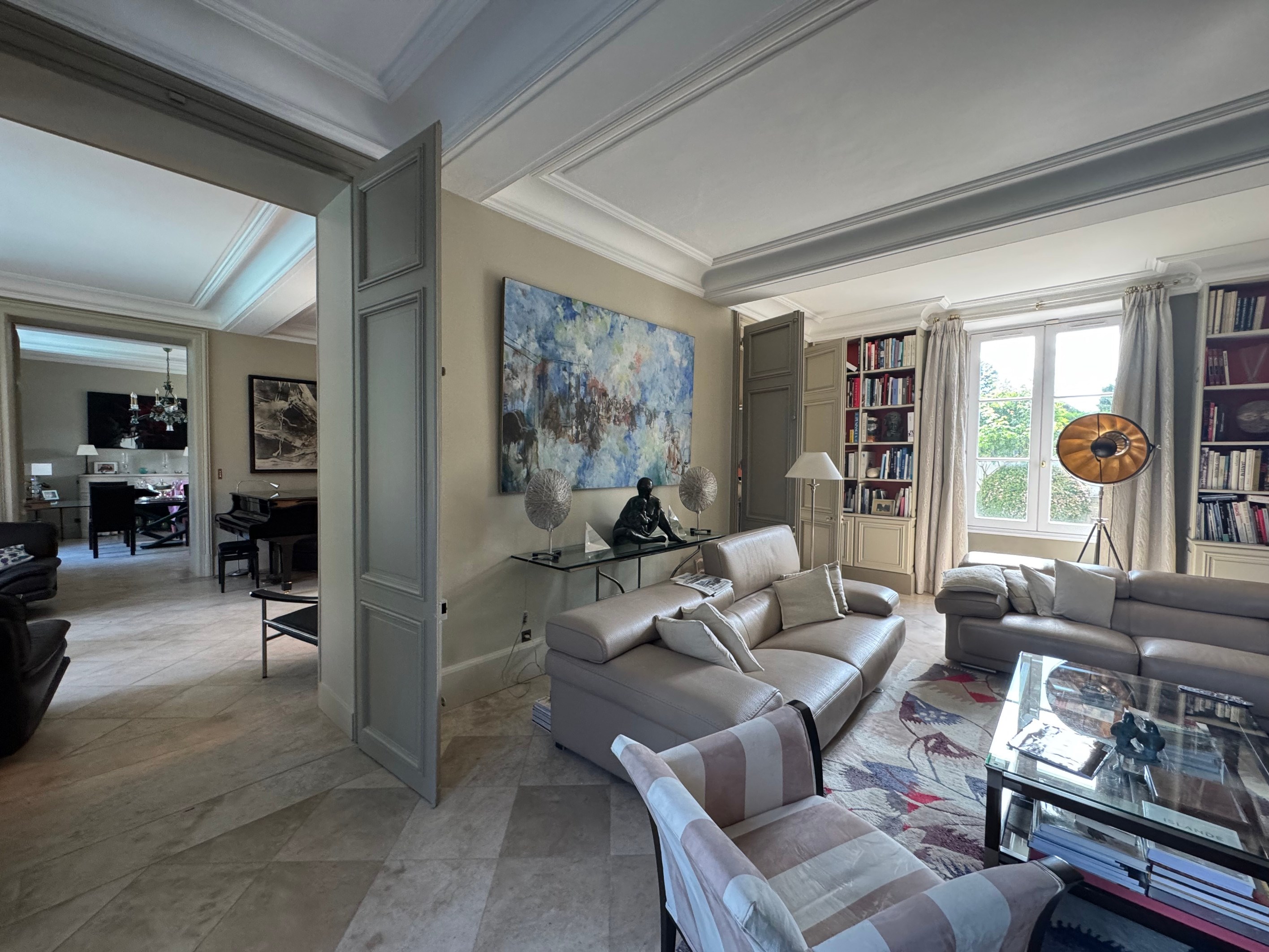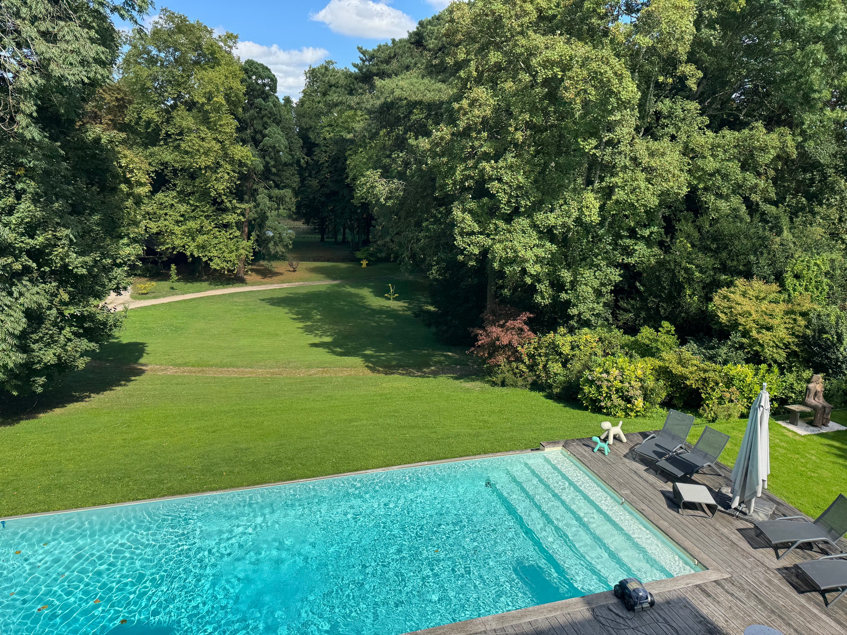 19th-Century Mansion on the Banks of the Loiret An elegant stone residence offering remarkable volumes, abundant natural light, lofty ceilings, and high-end features. Ground floor: a vast 120 m² reception area including two living rooms, a study, a dining room, and a large kitchen opening onto the terrace. First floor: master suite with terrace, marble bathroom, and dressing room, plus two additional bedrooms and a shower room. Top floor: spacious landing (potential extra bedroom), and two bedrooms, one with en-suite bathroom. Outdoors: landscaped park with century-old trees sloping down to the banks of the Loiret River, infinity pool with panoramic views, multiple terraces, and a private boat garage. Outbuildings: charming guest cottage to renovate, additional annexes, and a vaulted wine cellar. A truly unique property combining historic character, modern comfort, and an idyllic riverside setting.