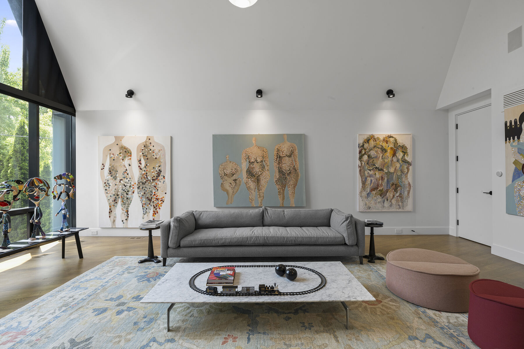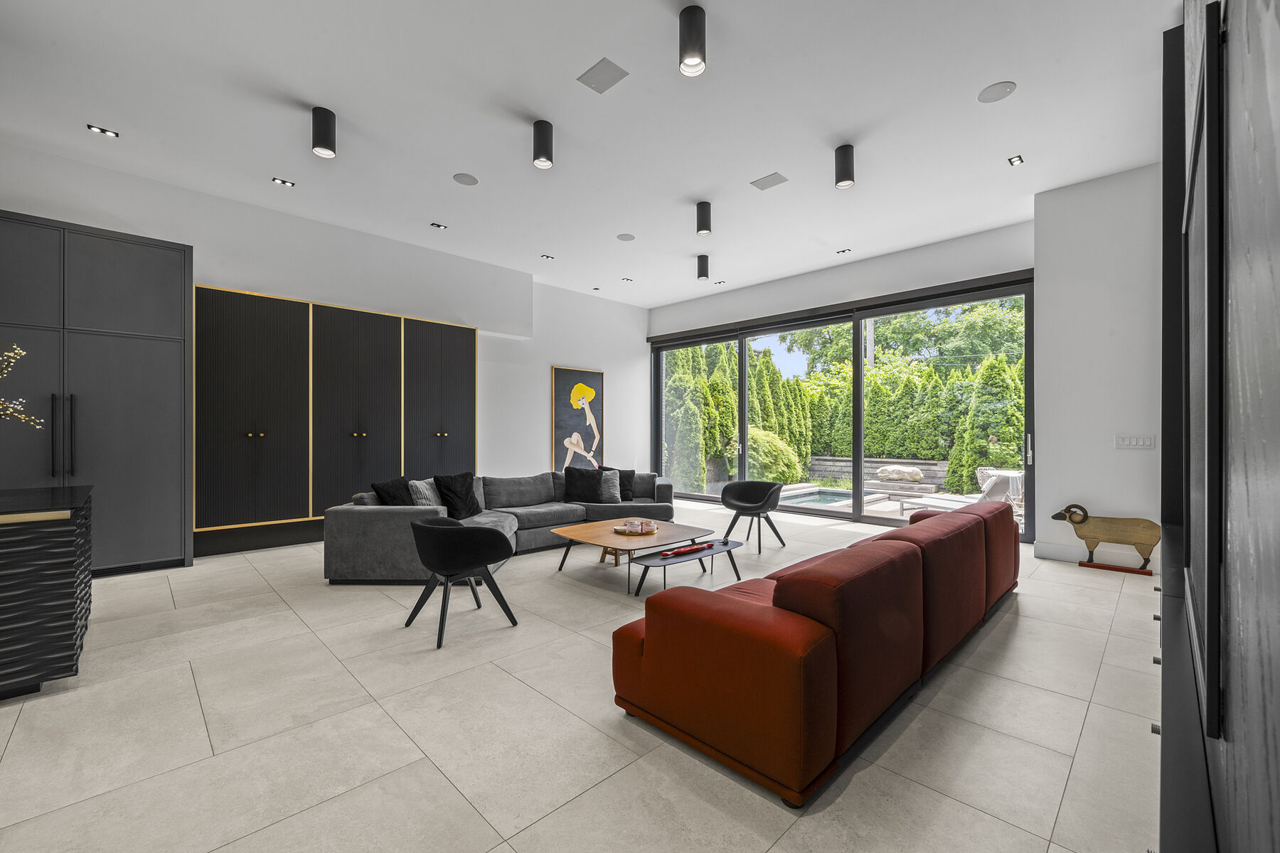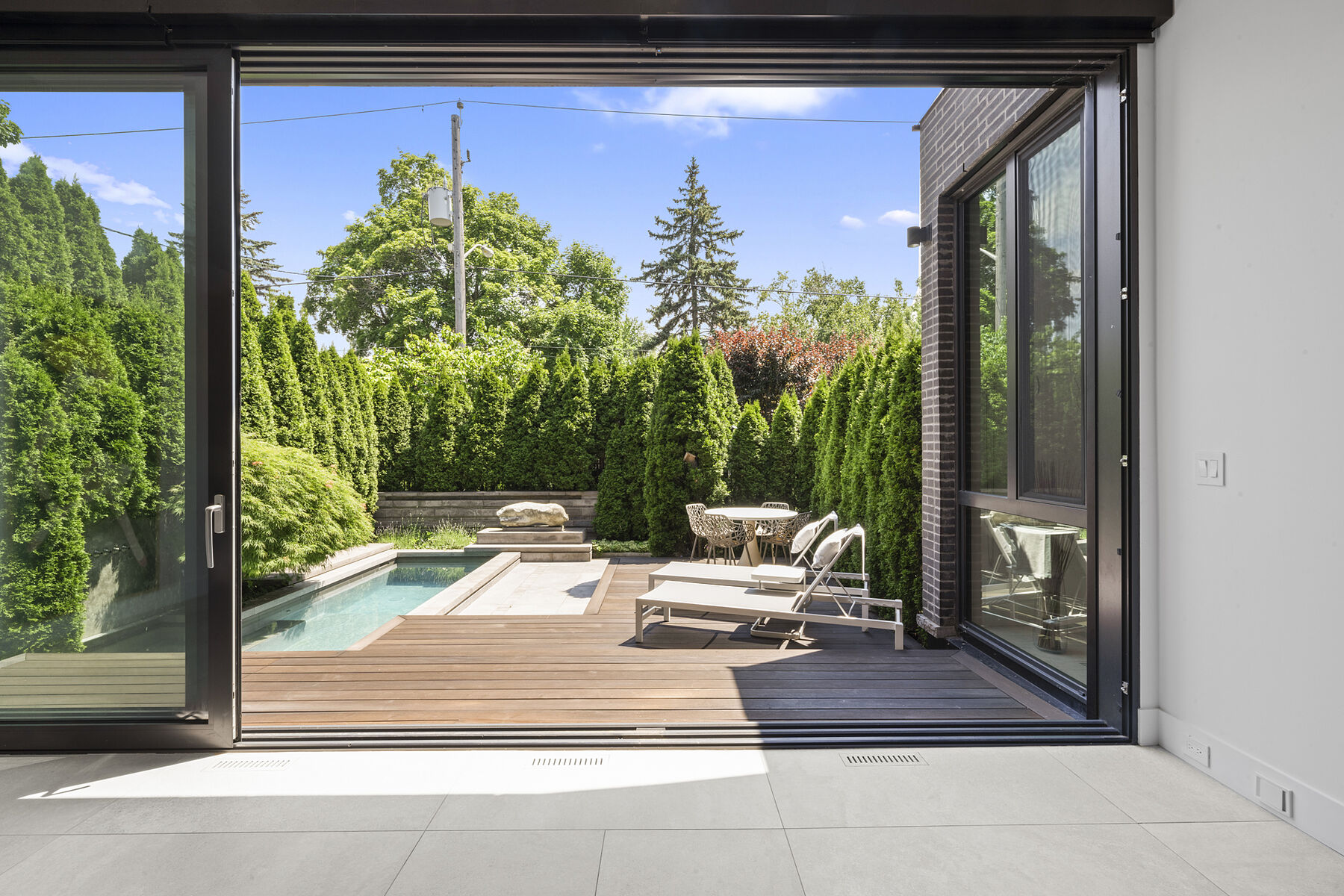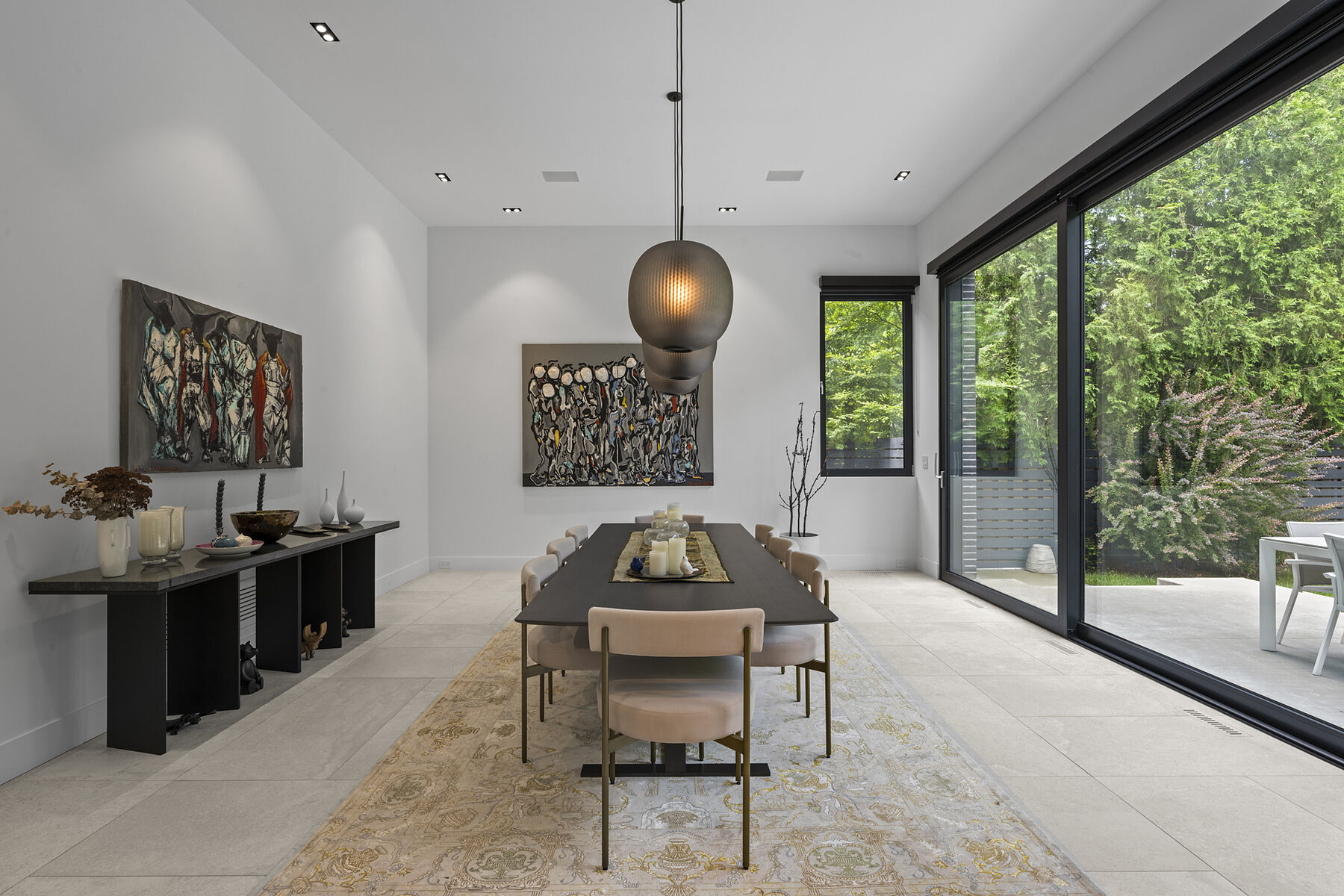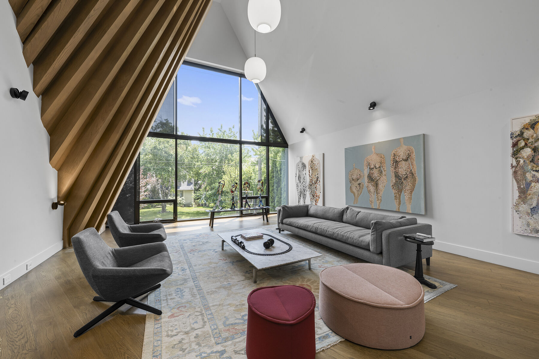 A spectacular once-in-a-lifetime architectural home, ideally located on a quiet block in Lawrence Park. Offering 7,500 square feet of exceptional living space, this sprawling modern residence showcases rare creativity and unique design. Soaring ceilings and floor-to-ceiling glass create a beautiful and inviting living experience. The free-flowing main floor is an entertainer's dream, incorporating every contemporary convenience. A dramatic roofline extends from the exterior into the living room, creating a striking architectural focal point. The expansive second level features generous bedrooms and a luxurious primary retreat complete with an ensuite and dressing room. The large lower level offers an oversized recreation room, a second laundry room, and additional guest bedrooms, providing exceptional flexibility for family and visitors. An incredibly rare private front garden with a pool enhances the outdoor living experience. The extra-wide lot includes a double private driveway and garage, along with an elevator servicing all levels for added convenience. Located at 108 Stratford Crescent, the home is just a short drive from the downtown core, close to some of the city's best public green spaces, and surrounded by top-ranking public and private schools, as well as the Granite Club.