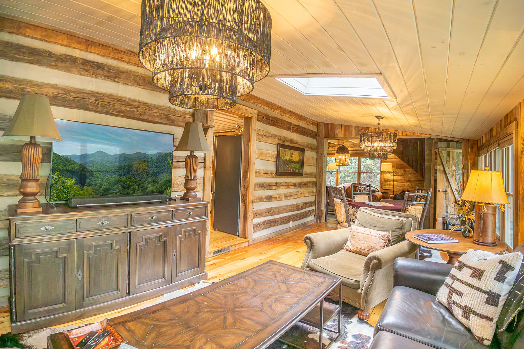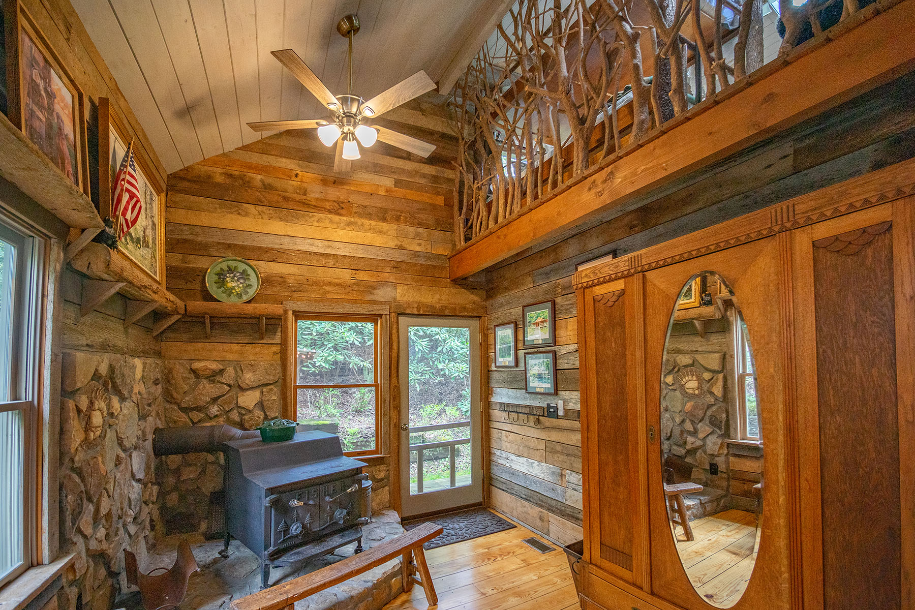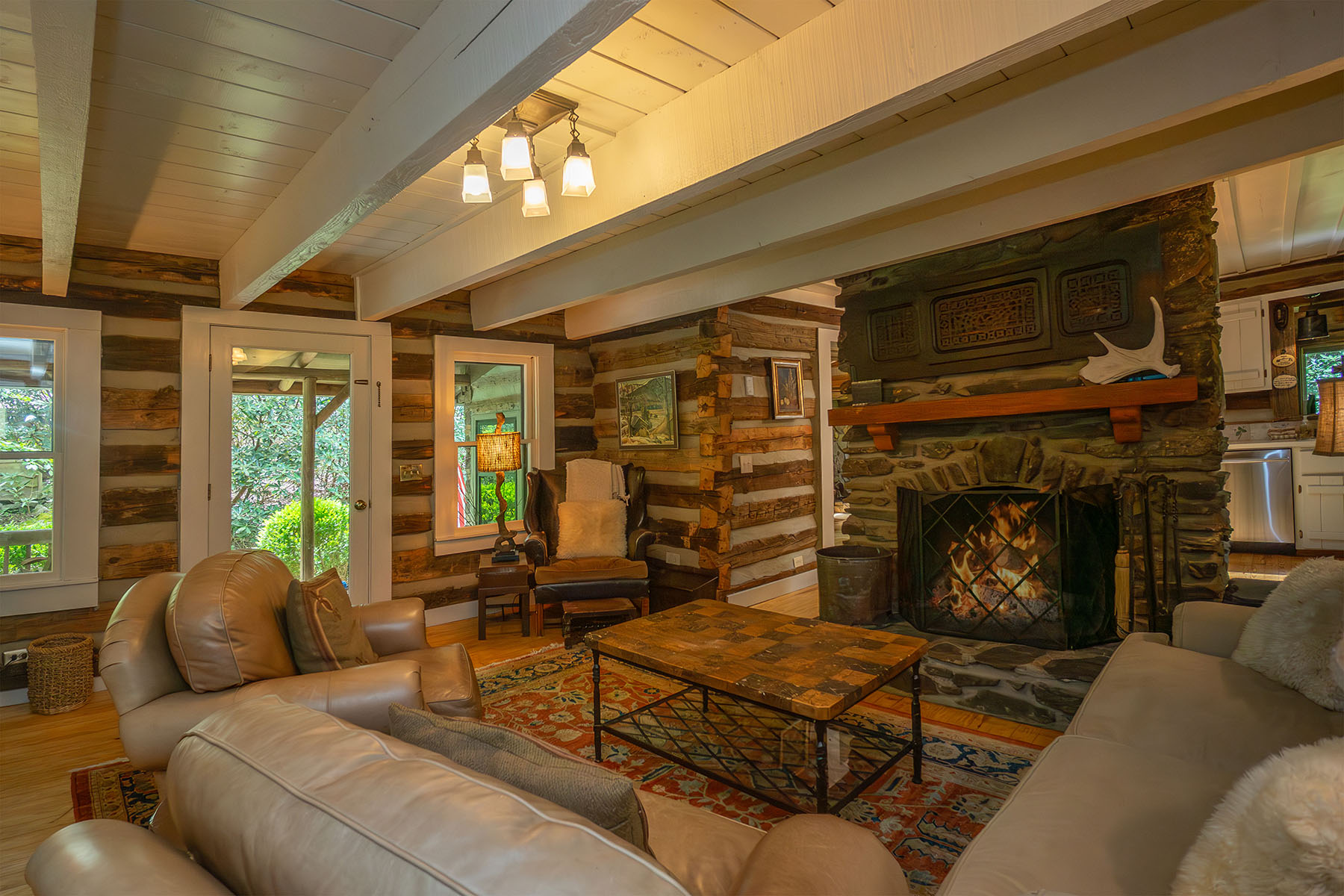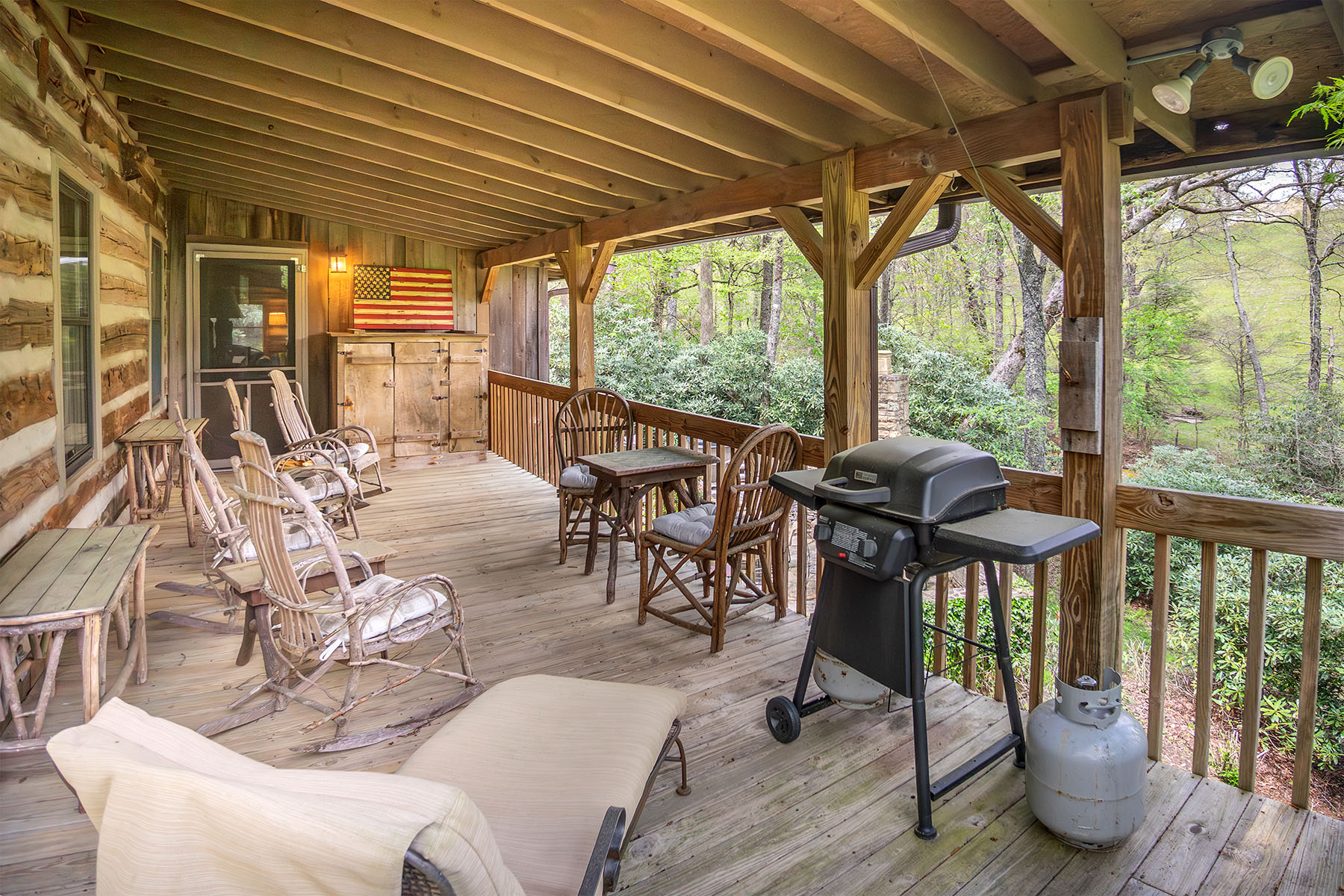 Go back in time at Stone's Throw Cabin, an exceptionally charming log home constructed with antique logs, old barn wood and native stone, and designed for families. Children of all ages will delight in exploring the almost three-acre property with meandering stream, as well as racing along the trails, hiding in the rhododendron and building forts among the trees. This is a kid's paradise. Outside, adults can find serenity by the stone fireplace on the patio or relaxing in the hot tub. Three cozy sitting rooms provide quiet places for reading or just quiet contemplation. The dining room will seat a large family and the kitchen and pantry are adjoining. A pretty bedroom and two full baths are also on the main level. Up one staircase are two bedrooms and a large full bath. Up a second staircase is the bunkroom. On lowest level, the den functions as a bedroom and has its own bath. The home will sleep 16 comfortably. The cabin feels as if it has been here for generations with additions made as the family expanded. However, modern conveniences such as central HVAC and an updated kitchen with a gas range also make this a home of current times. The ambiance is further enhanced by the owner's wonderfully eclectic selection of antiques and rustic pieces, which all convey with the purchase. Within 15 minutes to Blowing Rock and Boone, the property is even closer to Blue Ridge Parkway. The above-grade heated living area is 2,729 square feet. However, the reality is the heated, fully finished living area is actually 3,408 square feet and overall living area is 3,720 square feet, counting the laundry and game areas. Additionally, there is over 800 square feet of patio and deck for an alfresco time in the mountain air.