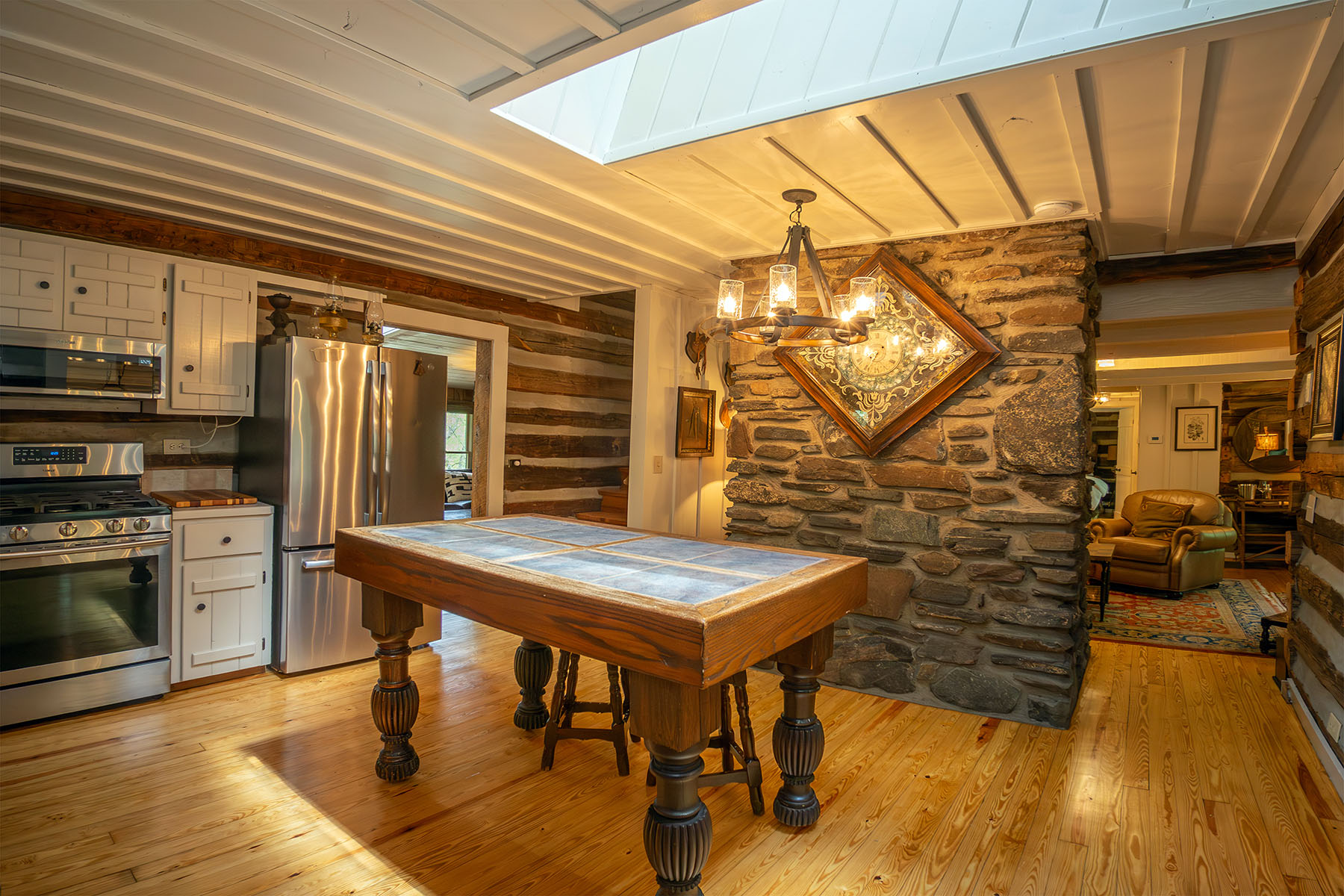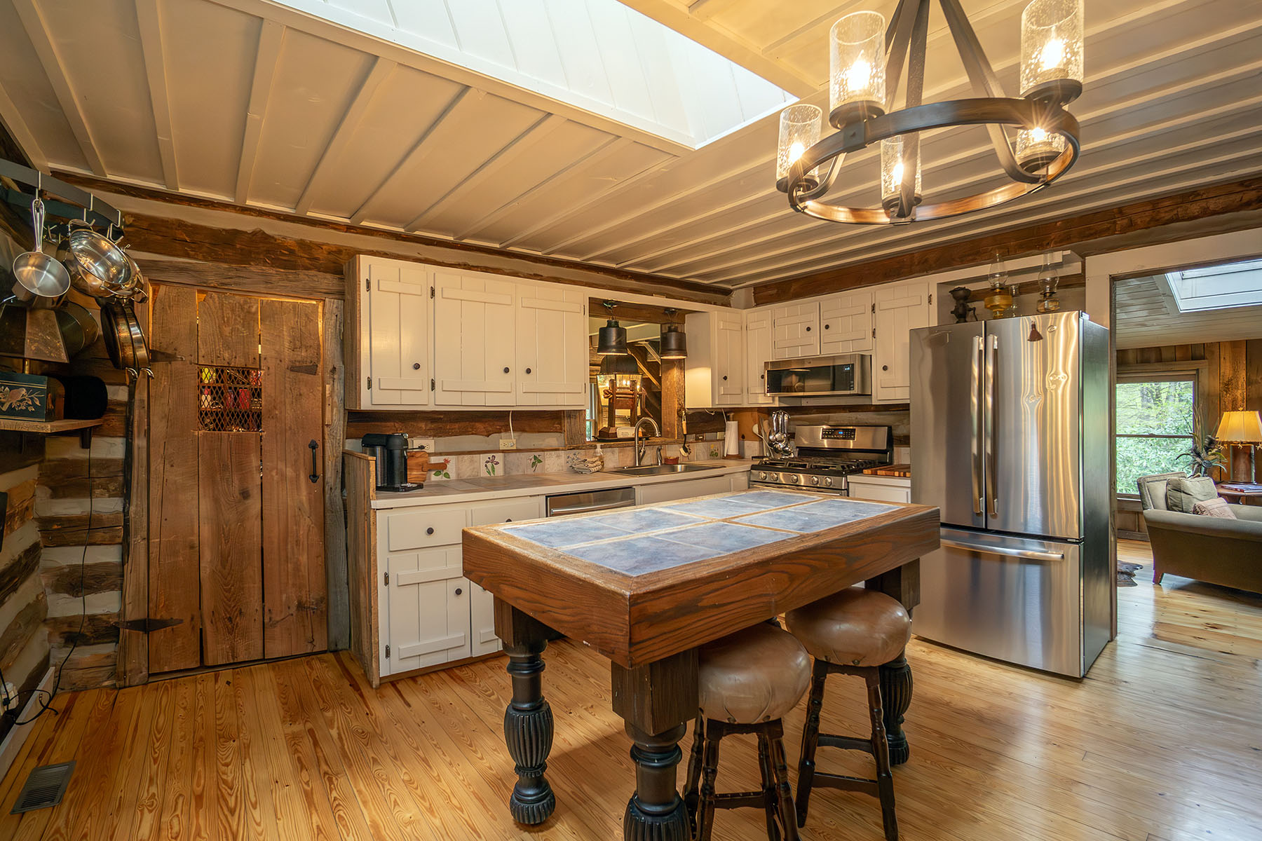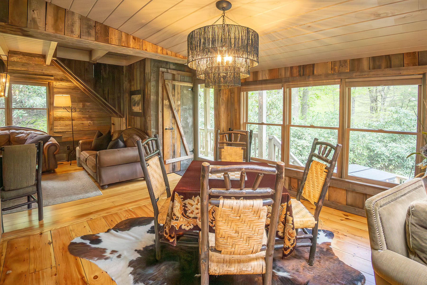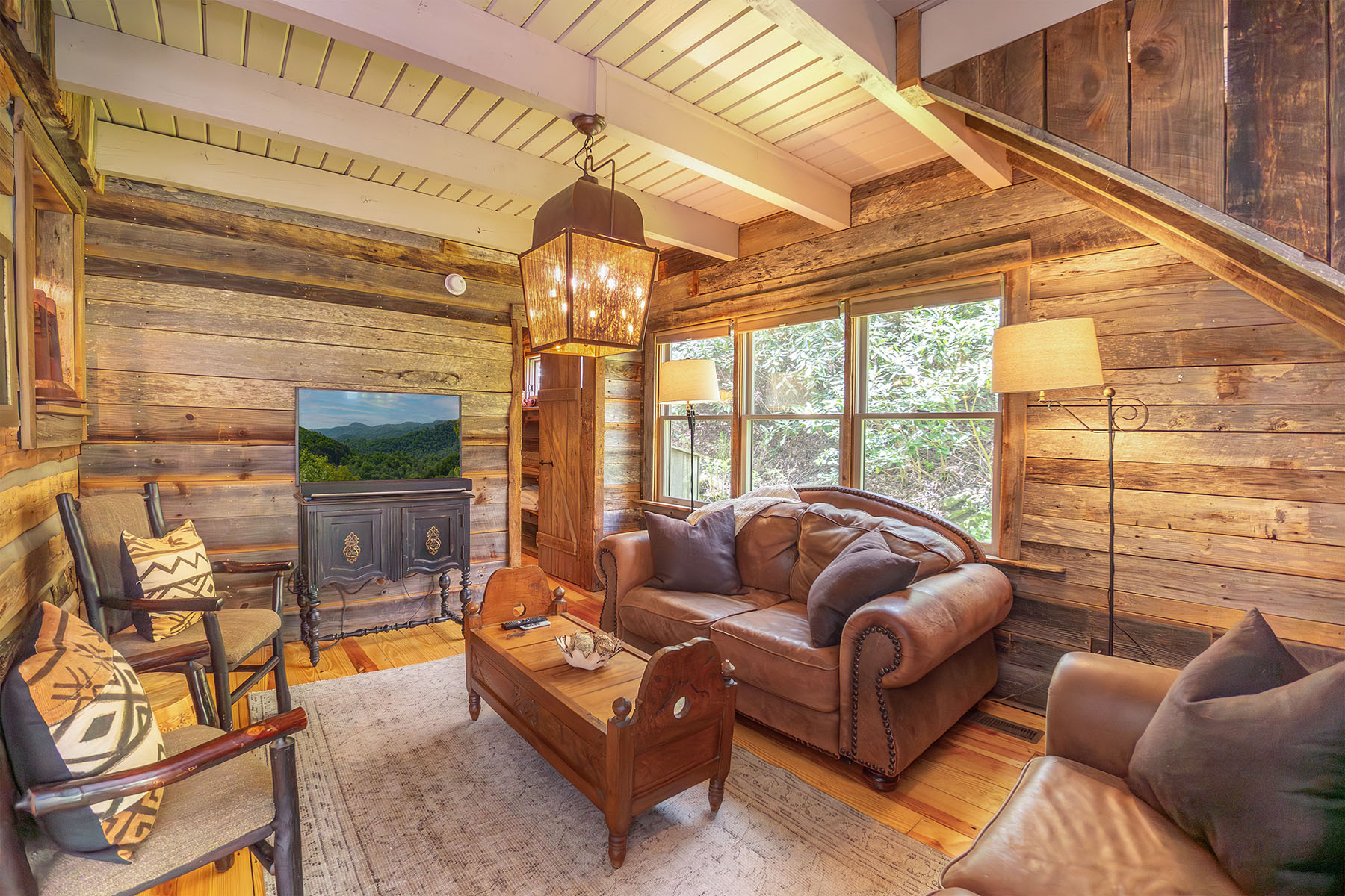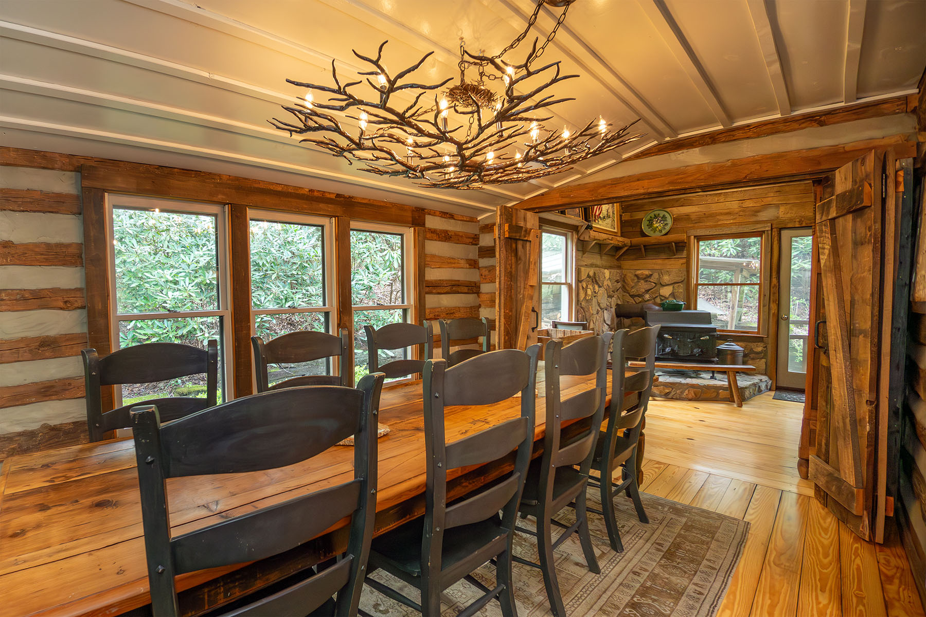 Go back in time at Stone's Throw Cabin, an exceptionally charming log home constructed with antique logs, old barn wood and native stone, and designed for families. Children of all ages will delight in exploring the almost three-acre property with meandering stream, as well as racing along the trails, hiding in the rhododendron and building forts among the trees. This is a kid's paradise. Outside, adults can find serenity by the stone fireplace on the patio or relaxing in the hot tub. Three cozy sitting rooms provide quiet places for reading or just quiet contemplation. The dining room will seat a large family and the kitchen and pantry are adjoining. A pretty bedroom and two full baths are also on the main level. Up one staircase are two bedrooms and a large full bath. Up a second staircase is the bunkroom. On lowest level, the den functions as a bedroom and has its own bath. The home will sleep 16 comfortably. The cabin feels as if it has been here for generations with additions made as the family expanded. However, modern conveniences such as central HVAC and an updated kitchen with a gas range also make this a home of current times. The ambiance is further enhanced by the owner's wonderfully eclectic selection of antiques and rustic pieces, which all convey with the purchase. Within 15 minutes to Blowing Rock and Boone, the property is even closer to Blue Ridge Parkway. The above-grade heated living area is 2,729 square feet. However, the reality is the heated, fully finished living area is actually 3,408 square feet and overall living area is 3,720 square feet, counting the laundry and game areas. Additionally, there is over 800 square feet of patio and deck for an alfresco time in the mountain air.