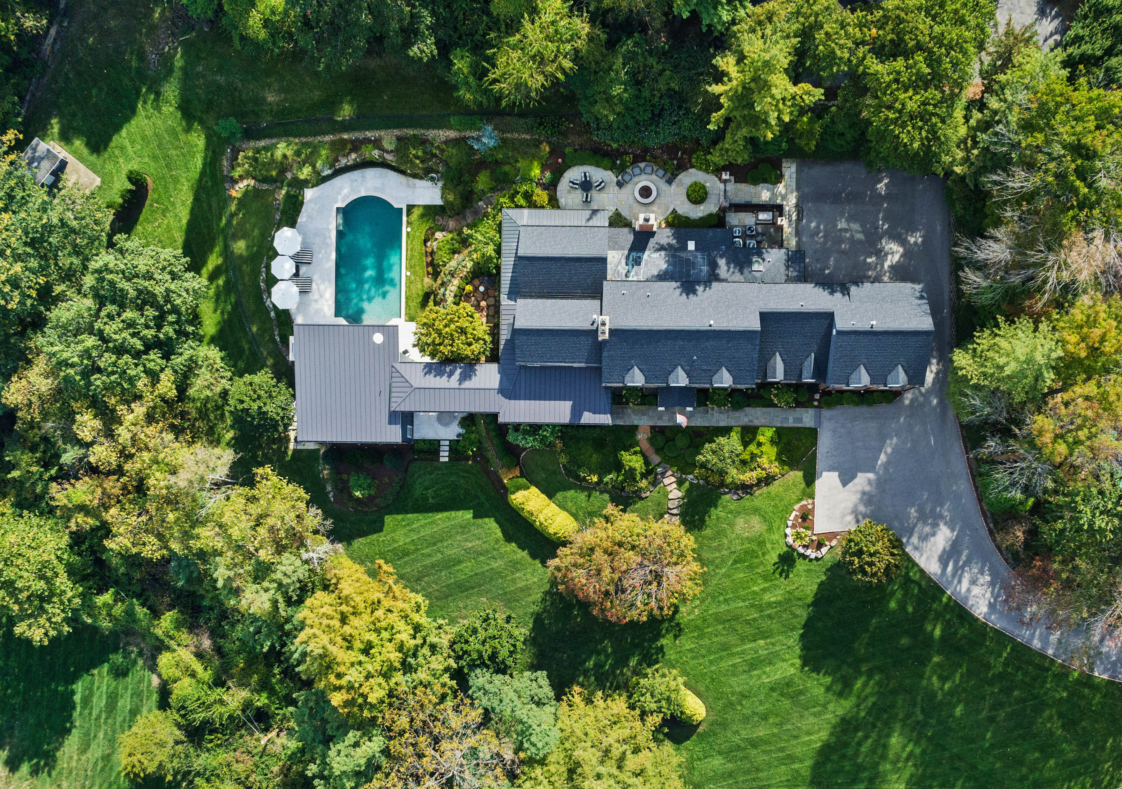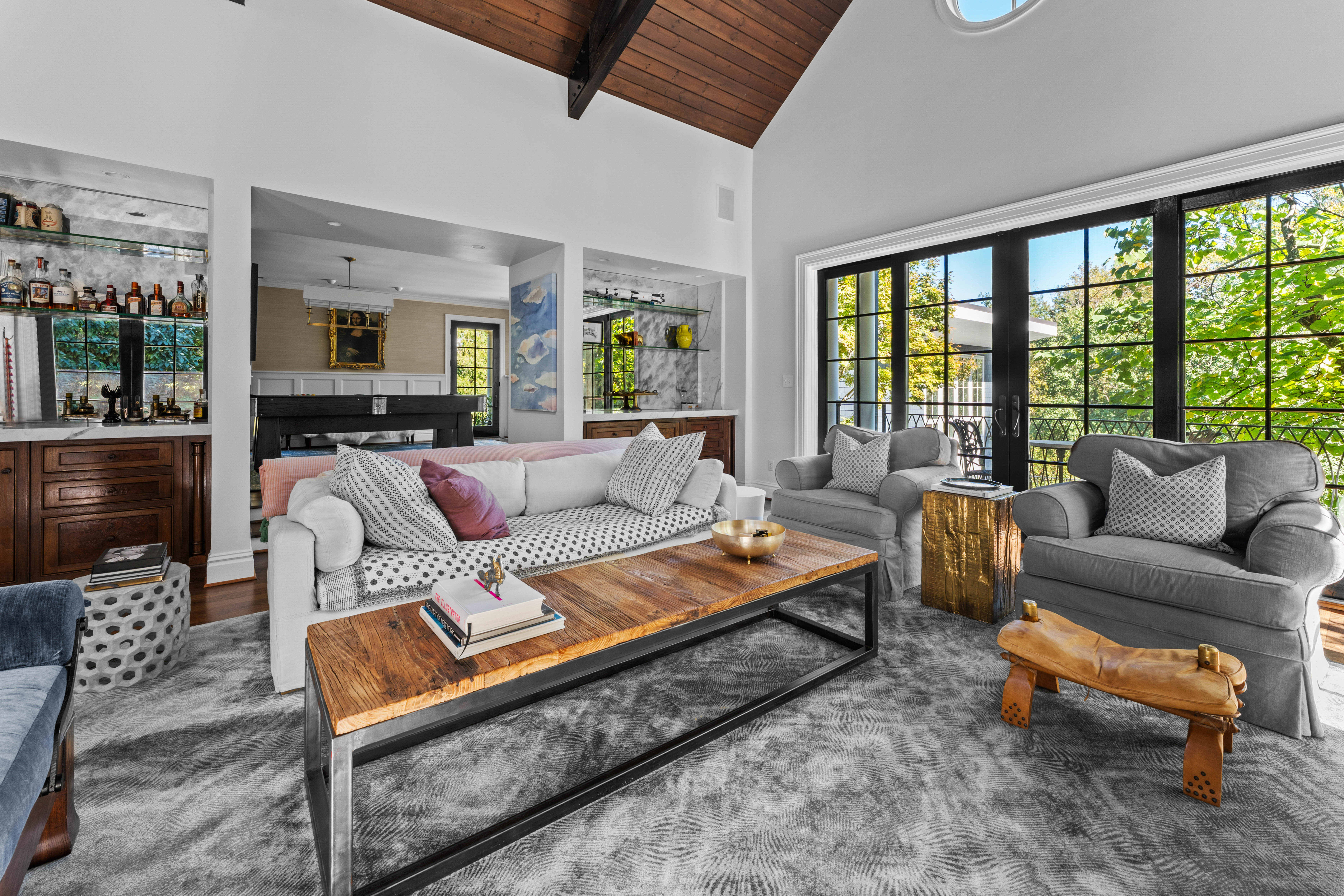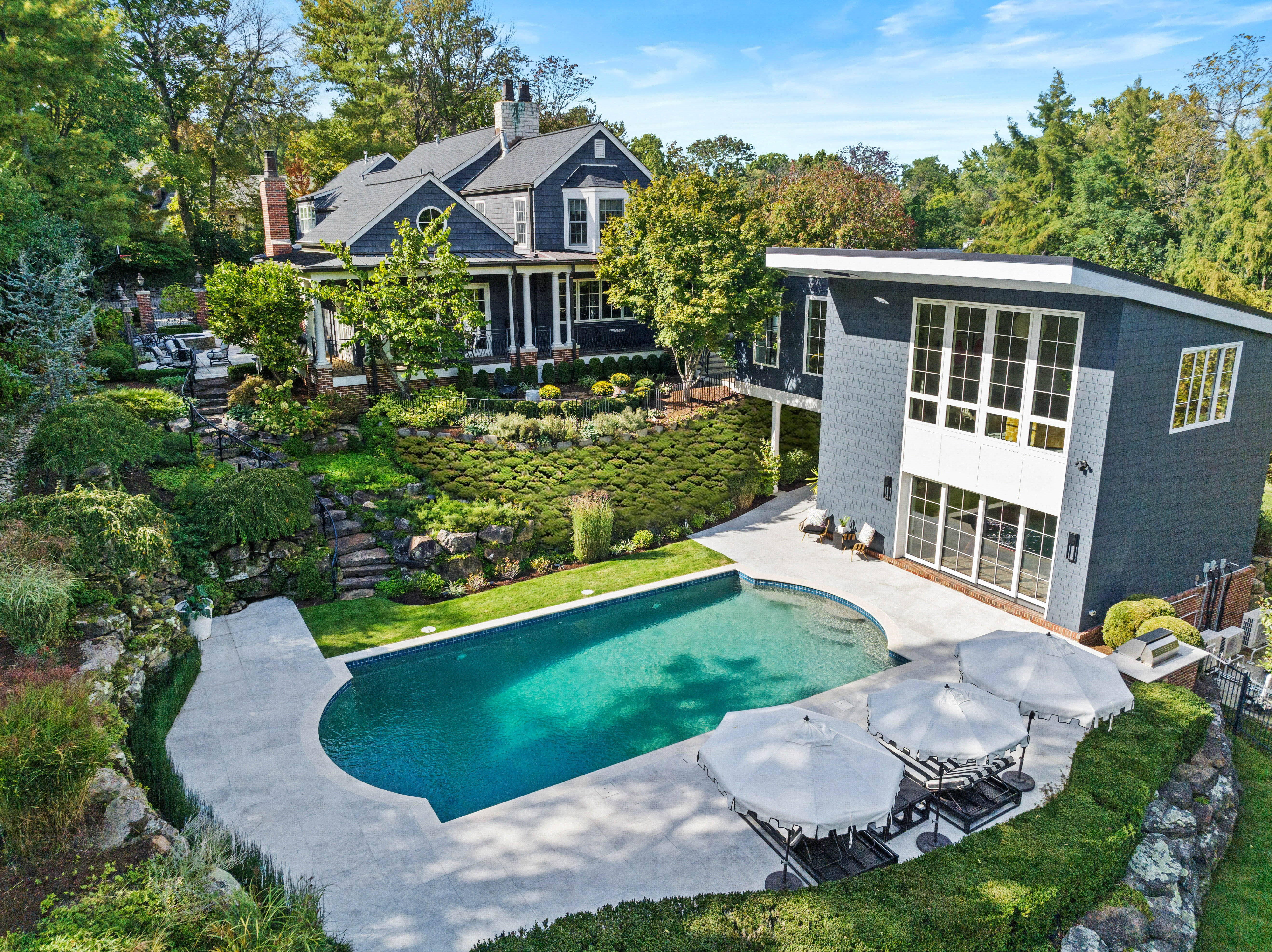 Set on 1.6 private acres along one of Ladue’s most coveted lanes, this stunning 4-bedroom, 5.5-bath, 7,373-square-foot estate, perched atop a hill, offers refined, effortless living. With magazine-worthy interiors featured on three design covers, the home has been thoughtfully renovated and meticulously maintained, blending timeless design with everyday comfort. A bluestone walkway leads to the inviting entry, where light-filled rooms, walnut floors, natural stone, and four fireplaces strike a balance between sophistication and ease. The chef’s kitchen opens seamlessly to both casual and formal dining areas and features heated floors, custom cabinetry, a butler’s pantry, and top-of-the-line SubZero and Wolf appliances. The main level also includes a generous laundry room with two sets of washers and dryers, a billiard room, and an expansive great room with a wet bar and additional dishwasher — ideal for effortless entertaining. Upstairs, a handsome study and luxurious primary suite offer a quiet retreat, complete with a fireplace, bay window, and a spa-like bath with a freestanding tub and oversized shower. Three additional bedrooms include two private en-suite retreats. Outdoor living is equally compelling. A wrap-around mahogany veranda with custom wrought-iron railings offers multiple seating areas overlooking manicured grounds, while the rear patio features a gas firepit, built-in Viking grill, and lush landscaping. At the center of the home’s California-inspired outdoor space is a resort-style saltwater pool, framed by limestone and complemented by a second Viking grill and outdoor dining area. The two-story pool house — seamlessly connected to the main home — includes a living room, custom kitchen, full bath, custom infrared sauna, and flexible recreation space, making it ideal for year-round entertaining. A rare blend of beauty, comfort, and setting, this home captures Ladue living at its finest.