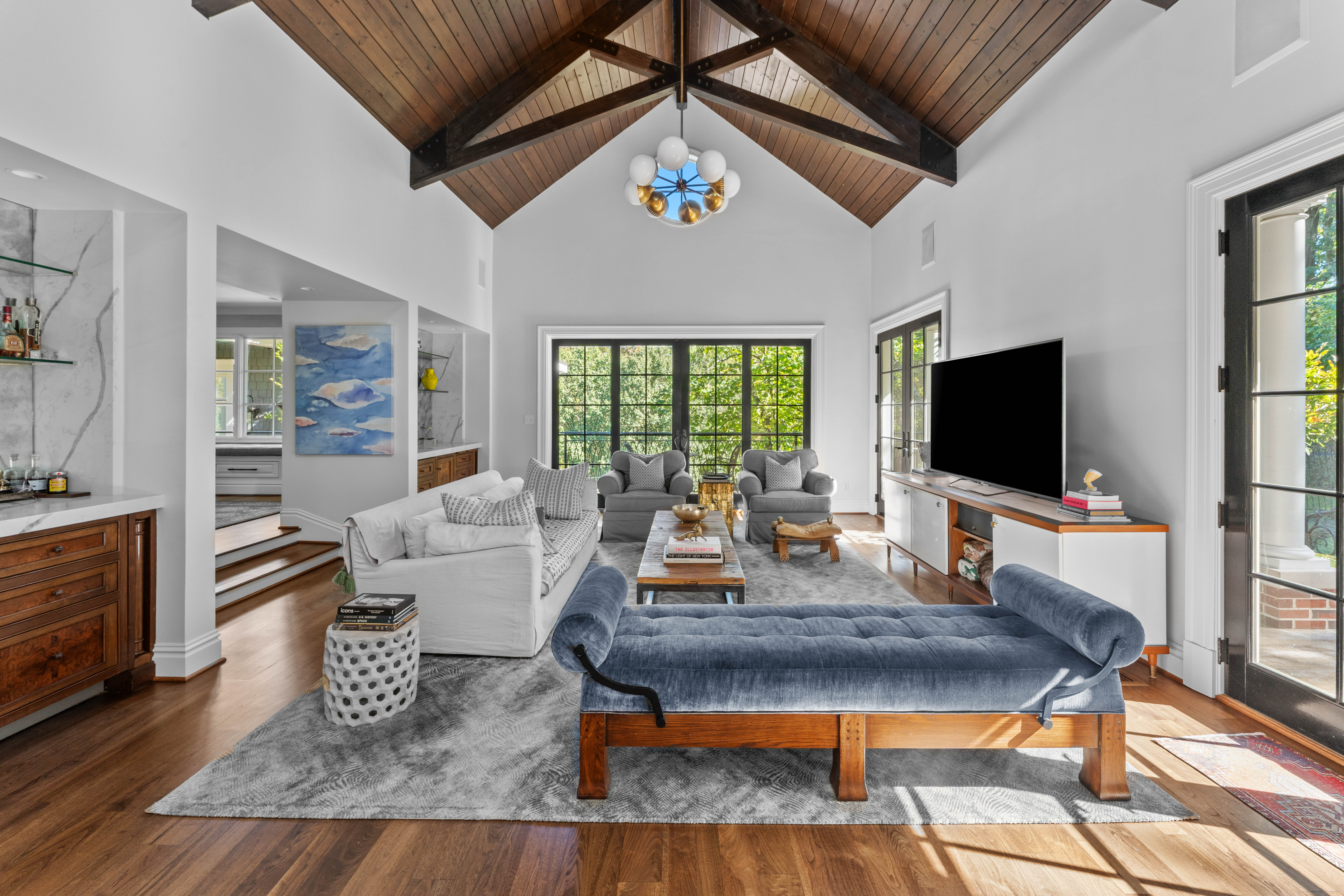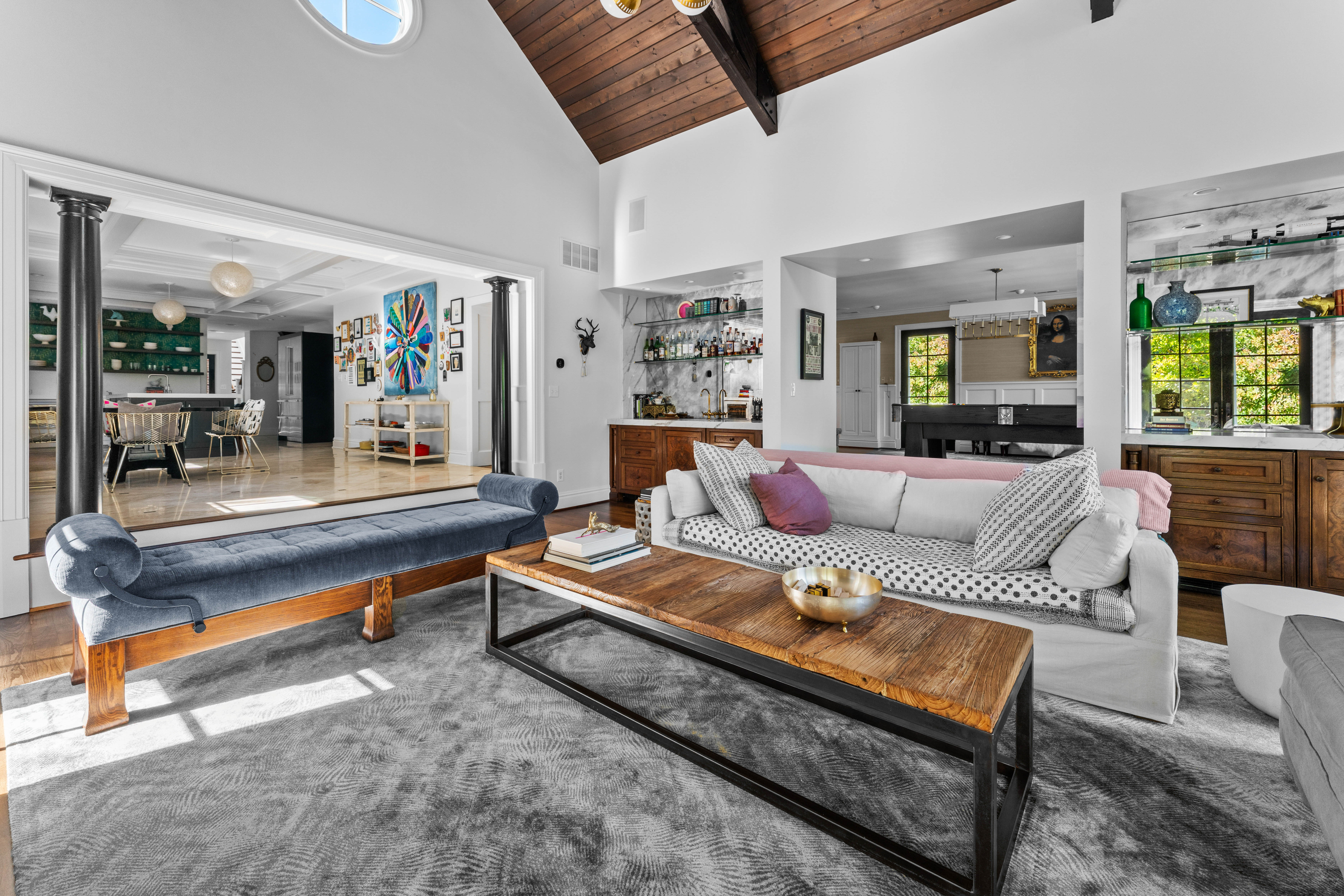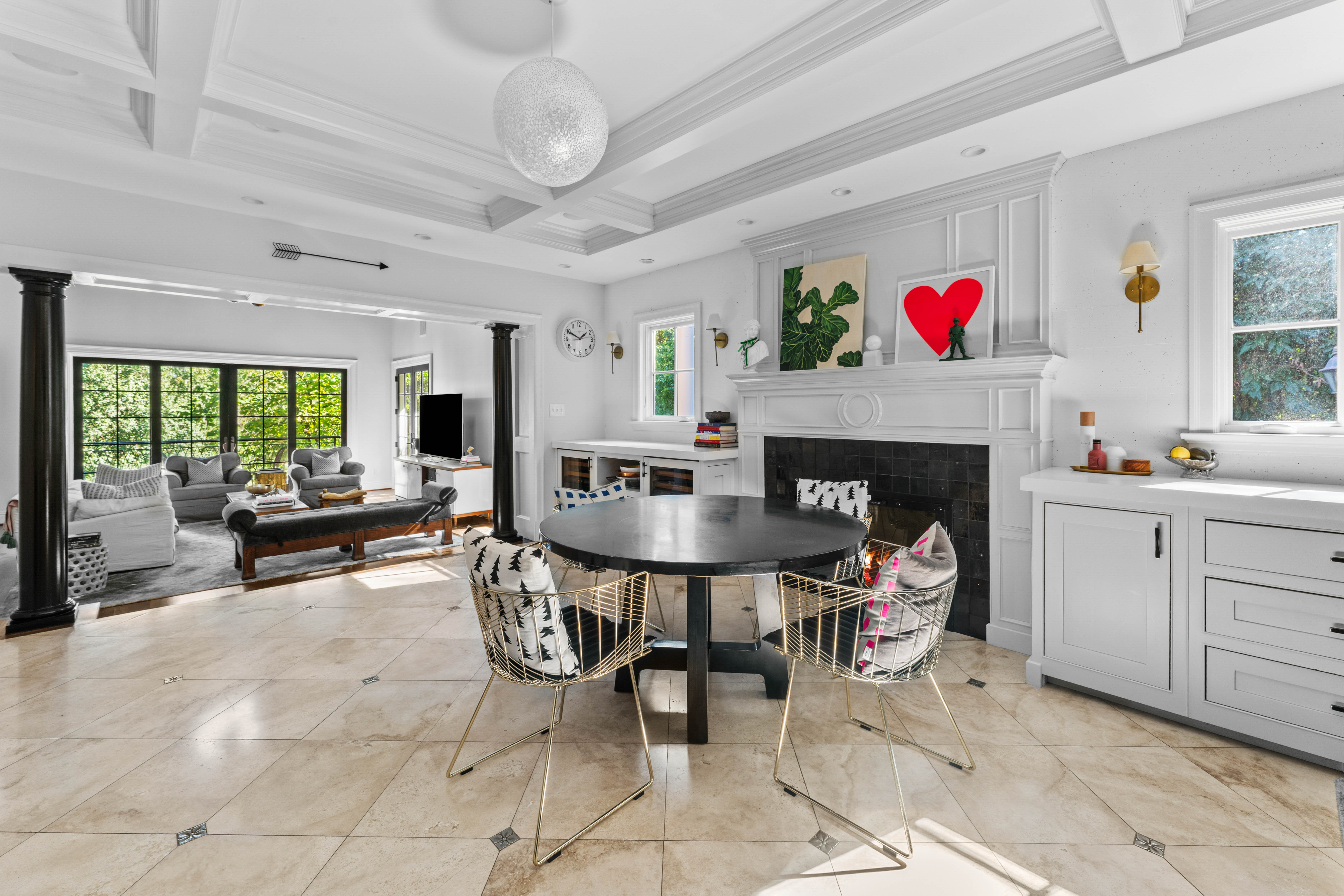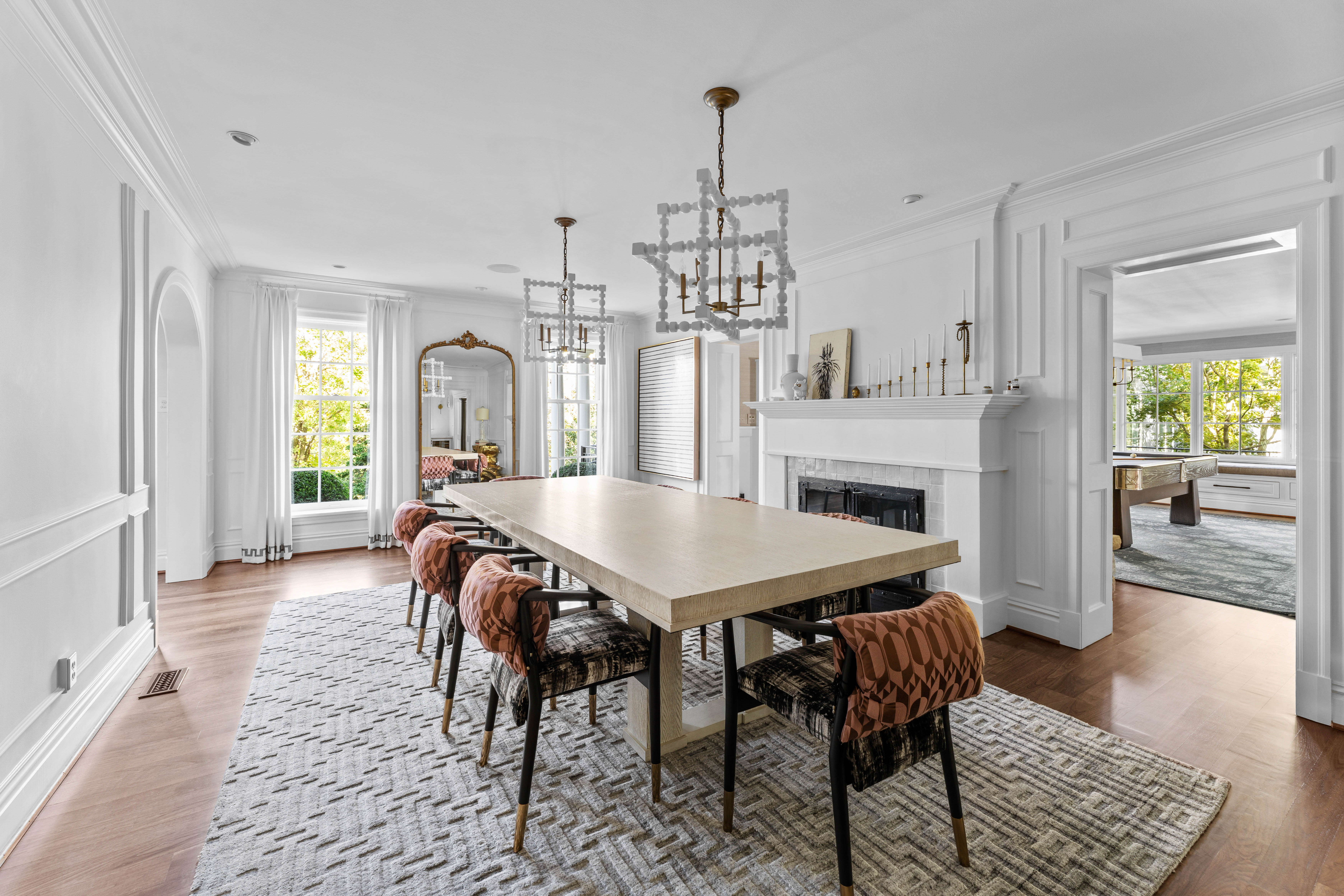 Set on 1.6 private acres along one of Ladue’s most coveted lanes, this stunning 4-bedroom, 5.5-bath, 7,373-square-foot estate, perched atop a hill, offers refined, effortless living. With magazine-worthy interiors featured on three design covers, the home has been thoughtfully renovated and meticulously maintained, blending timeless design with everyday comfort. A bluestone walkway leads to the inviting entry, where light-filled rooms, walnut floors, natural stone, and four fireplaces strike a balance between sophistication and ease. The chef’s kitchen opens seamlessly to both casual and formal dining areas and features heated floors, custom cabinetry, a butler’s pantry, and top-of-the-line SubZero and Wolf appliances. The main level also includes a generous laundry room with two sets of washers and dryers, a billiard room, and an expansive great room with a wet bar and additional dishwasher — ideal for effortless entertaining. Upstairs, a handsome study and luxurious primary suite offer a quiet retreat, complete with a fireplace, bay window, and a spa-like bath with a freestanding tub and oversized shower. Three additional bedrooms include two private en-suite retreats. Outdoor living is equally compelling. A wrap-around mahogany veranda with custom wrought-iron railings offers multiple seating areas overlooking manicured grounds, while the rear patio features a gas firepit, built-in Viking grill, and lush landscaping. At the center of the home’s California-inspired outdoor space is a resort-style saltwater pool, framed by limestone and complemented by a second Viking grill and outdoor dining area. The two-story pool house — seamlessly connected to the main home — includes a living room, custom kitchen, full bath, custom infrared sauna, and flexible recreation space, making it ideal for year-round entertaining. A rare blend of beauty, comfort, and setting, this home captures Ladue living at its finest.
