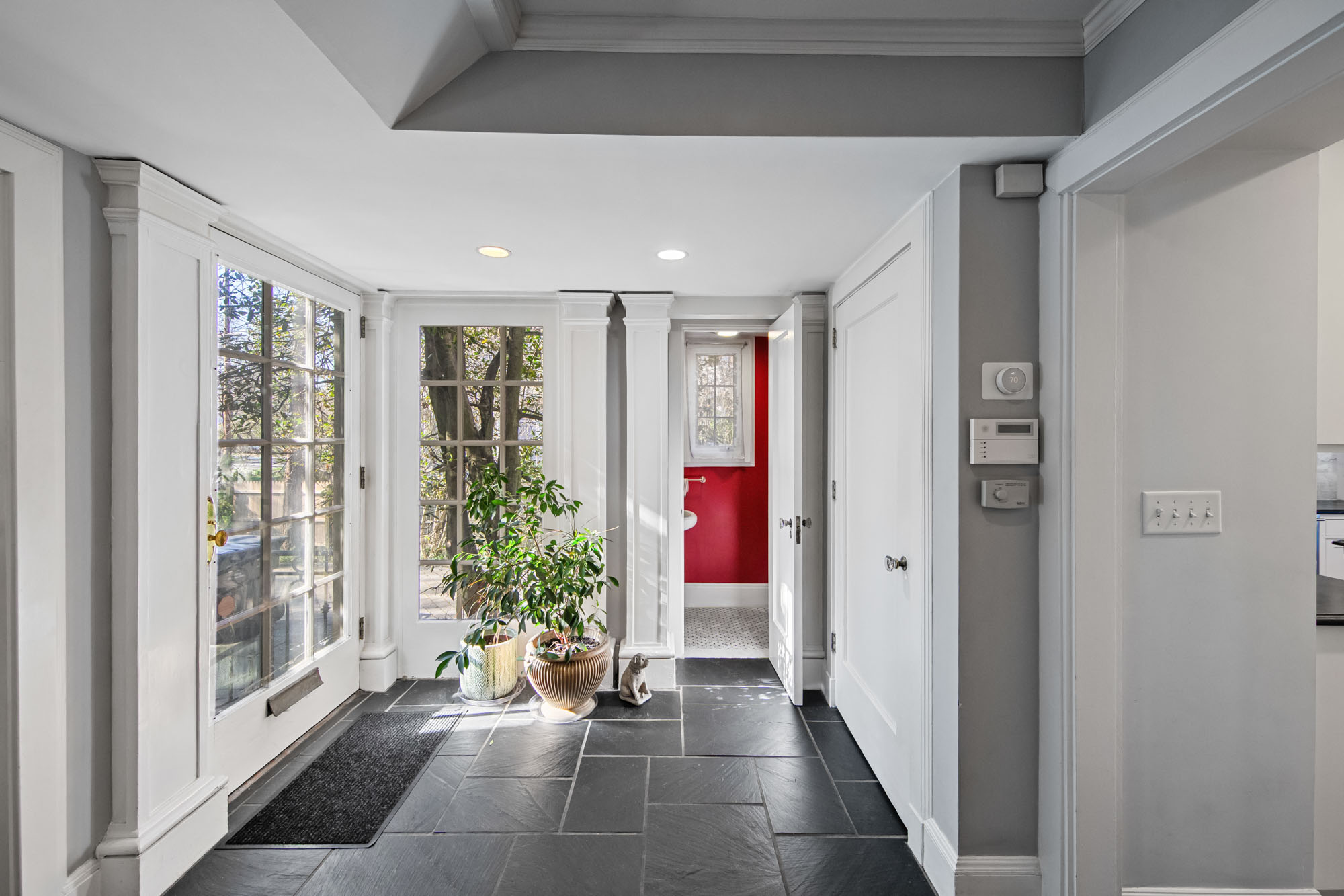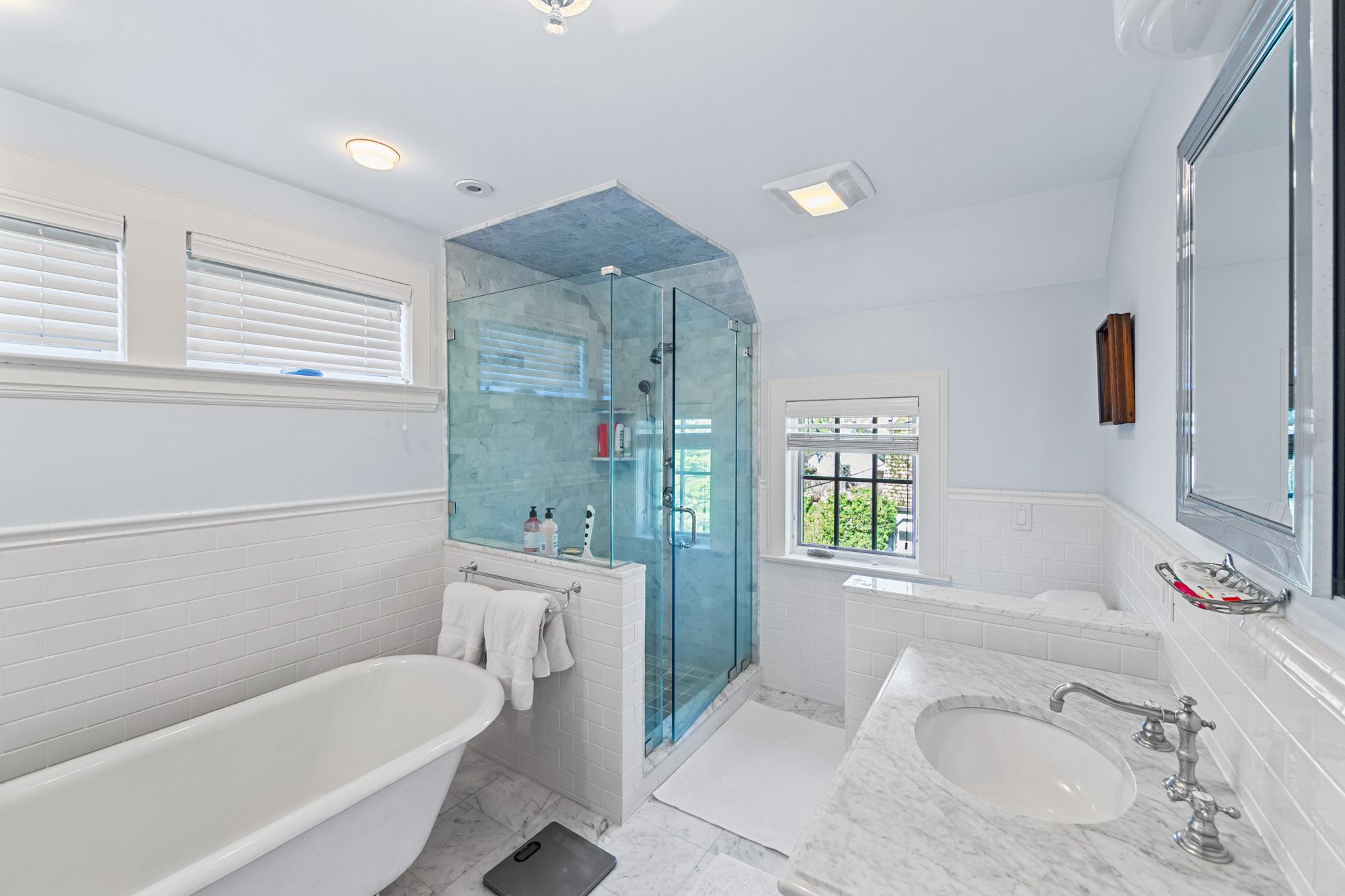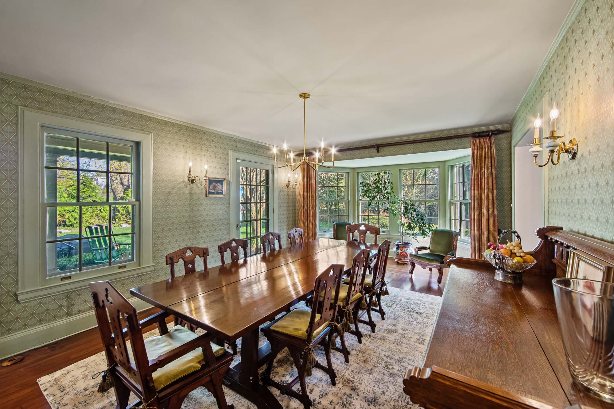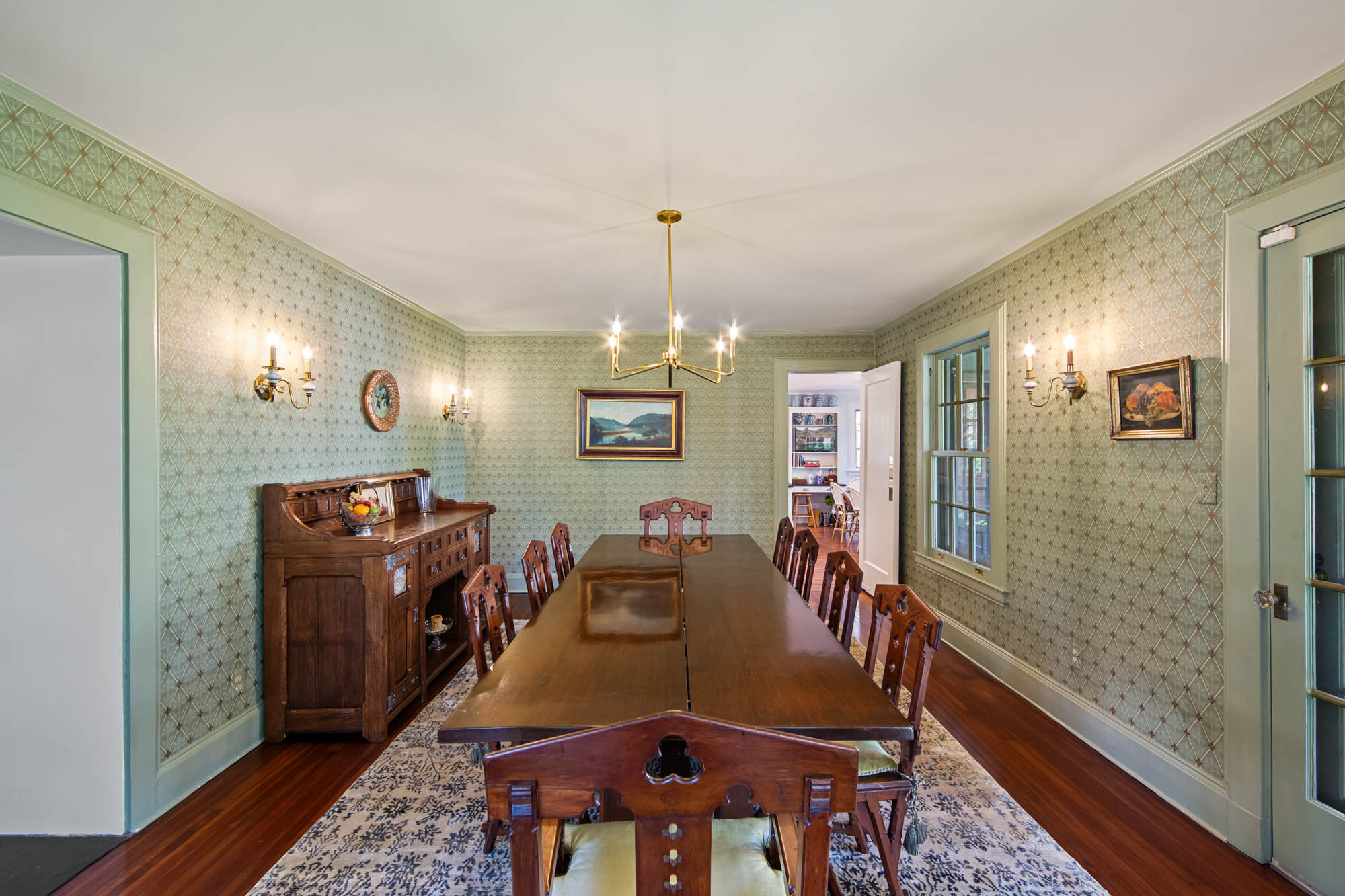 Charming Arts & Crafts–inspired Center Hall Colonial featuring 5 bedrooms and 3.5 baths on beautifully landscaped property with a large fenced backyard. The first floor offers a gracious foyer, formal dining room, living room with working fireplace, and a sunlit, fully renovated kitchen with top-of-the-line appliances—perfect for entertaining. The second floor includes a primary suite with a full bath and two large walk-in closets, an additional bedroom and a full bath, plus an office and laundry. The third floor features three bedrooms, a full bath, and ample storage. Built-ins on the first and third floors add character throughout. Enjoy lovely front and rear porches, a Belgian block driveway, and a detached two-car garage with an artist studio above. Conveniently located near shops, restaurants, transportation, and houses of worship in Englewood, New Jersey.