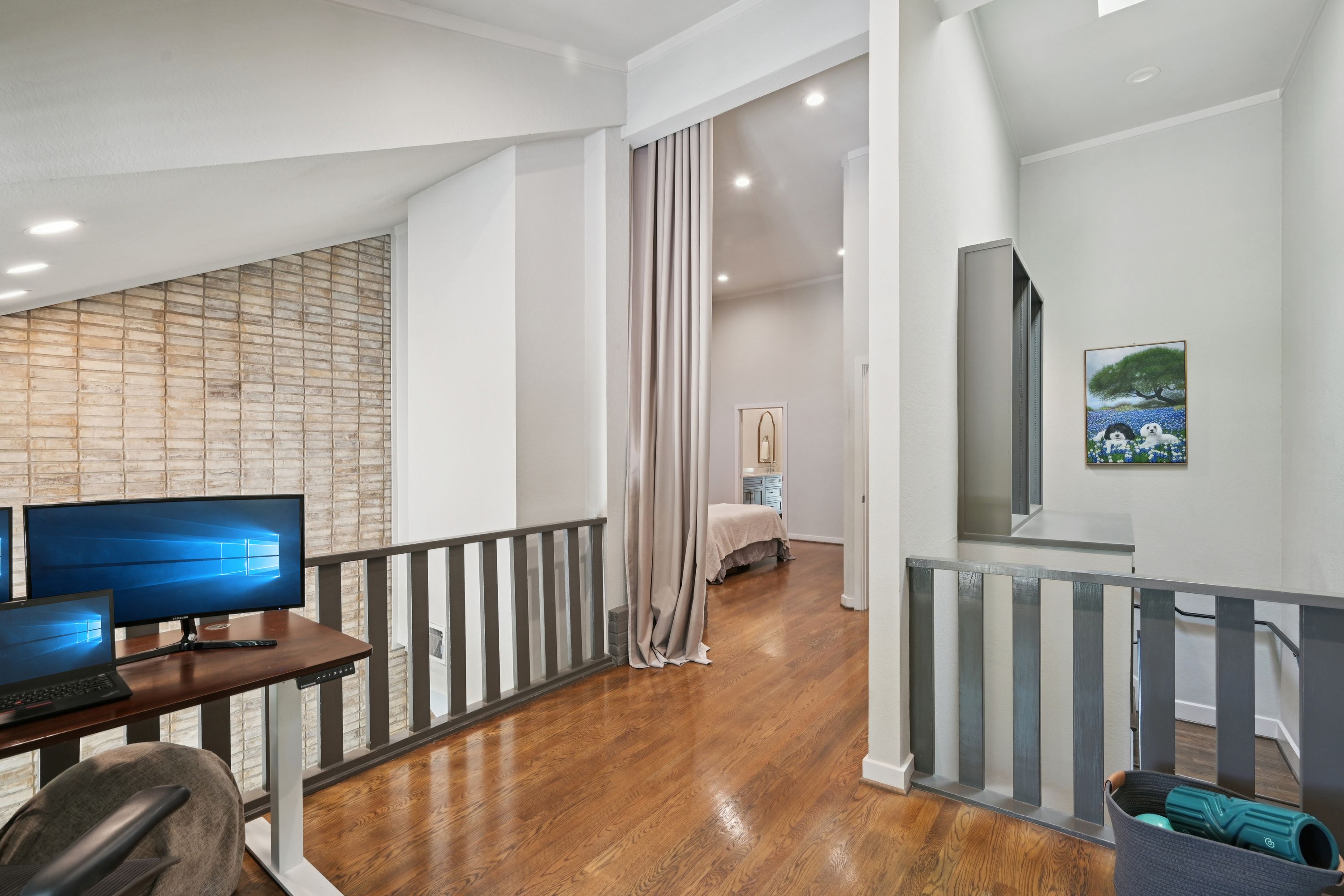 Looking to live a SoHiP lifestyle? Check out 3801 Gilbert Avenue Unit A with 2 bedrooms, 2 and a half baths with the largest private outdoor patio in the complex. Almost 2000 square feet of interior living space with multiple living and dining areas allow you to work from home, workout at home, entertain inside or outside then stroll to the best local hot spots, restaurants and shops around Turtle Creek, Oak Lawn and Highland Park. Updated with modern amenities while retaining some of the original charm from the brick wall to the terracotta floor tiles to the hardwoods and open loft space. This is not a white box property. With only 2 floors, the open, 2-story family room with a wall of windows floods first floor living areas with natural light through the towering Magnolia and Oak trees surrounding this end unit. Add-in the nearby azalea bushes and you have an instant green space with major treehouse or fortress vibes. Dine al fresco in the private side yard’s social space with cement pavers prepped for a large dining table along with other seating or gardening areas.The built-in wet bar doubles as a coffee & tea bar with built in water machine, enclosed by antique doors and is located across from the den or reading room adjacent to the double sided fireplace.The upstairs primary suite has a bonus room that could work as an office, reading area, workout room, art space and more with access to the outdoor balcony. The updated bath has a separate deep soaking tub with skylight overhead as well as 2 walk-in closets.Rare to have 3 reserved parking spaces along with additional guest parking in the building’s gated garage.With only .3 of a mile to get on the Katy Trail, you can, walk, run or bike down to Victory Park or up to Knox Street and beyond…Make this landscaped & tree-filled property yours today!