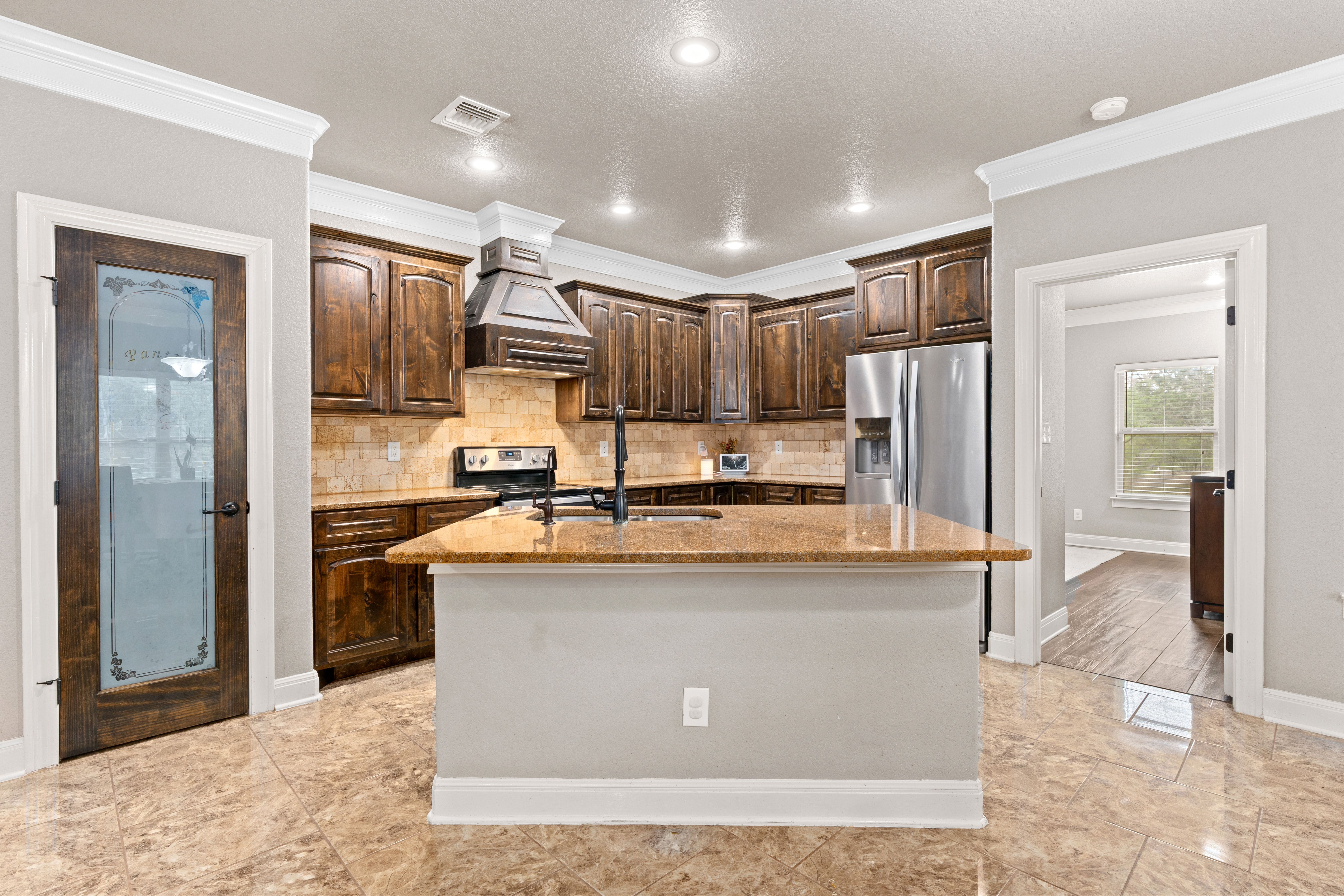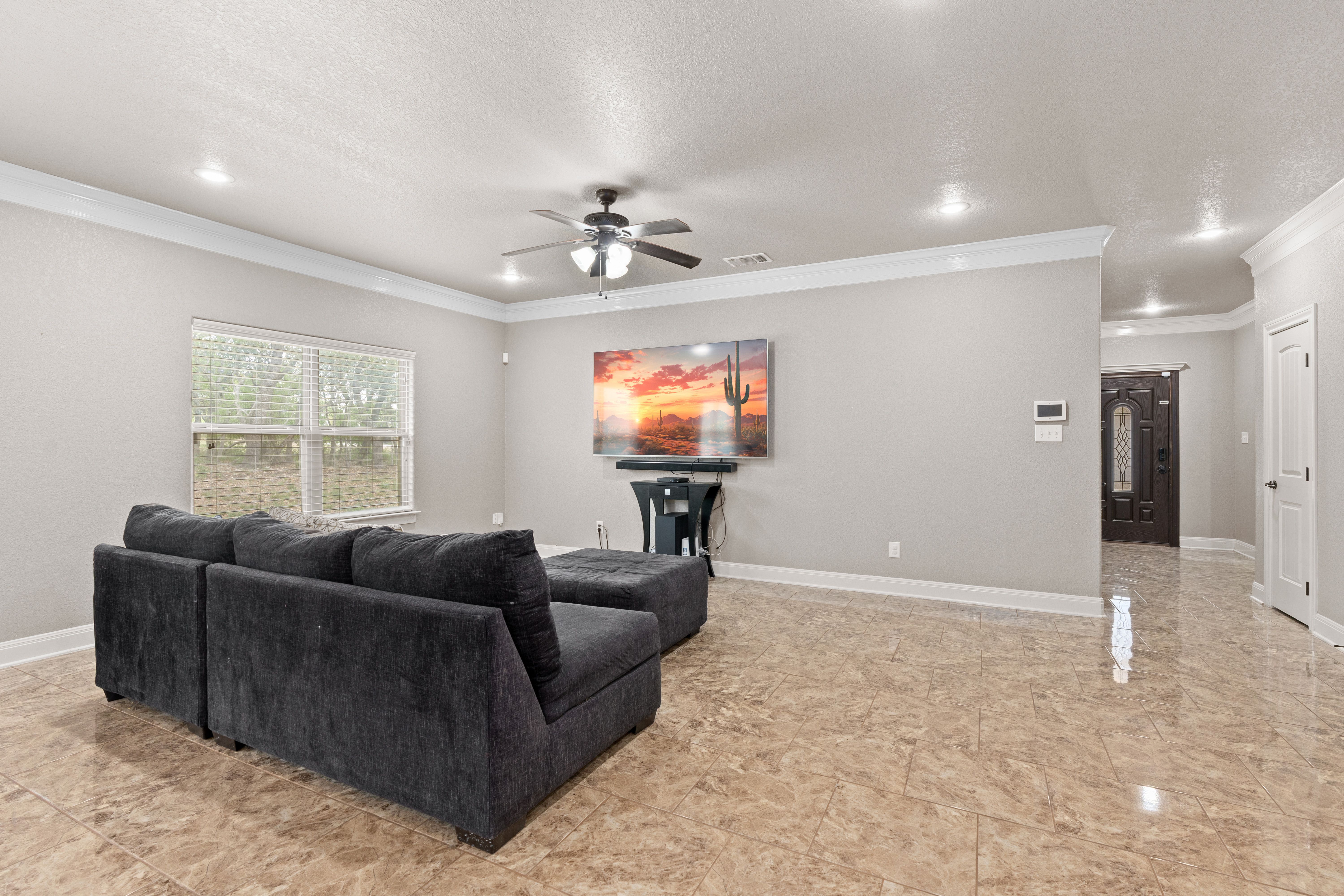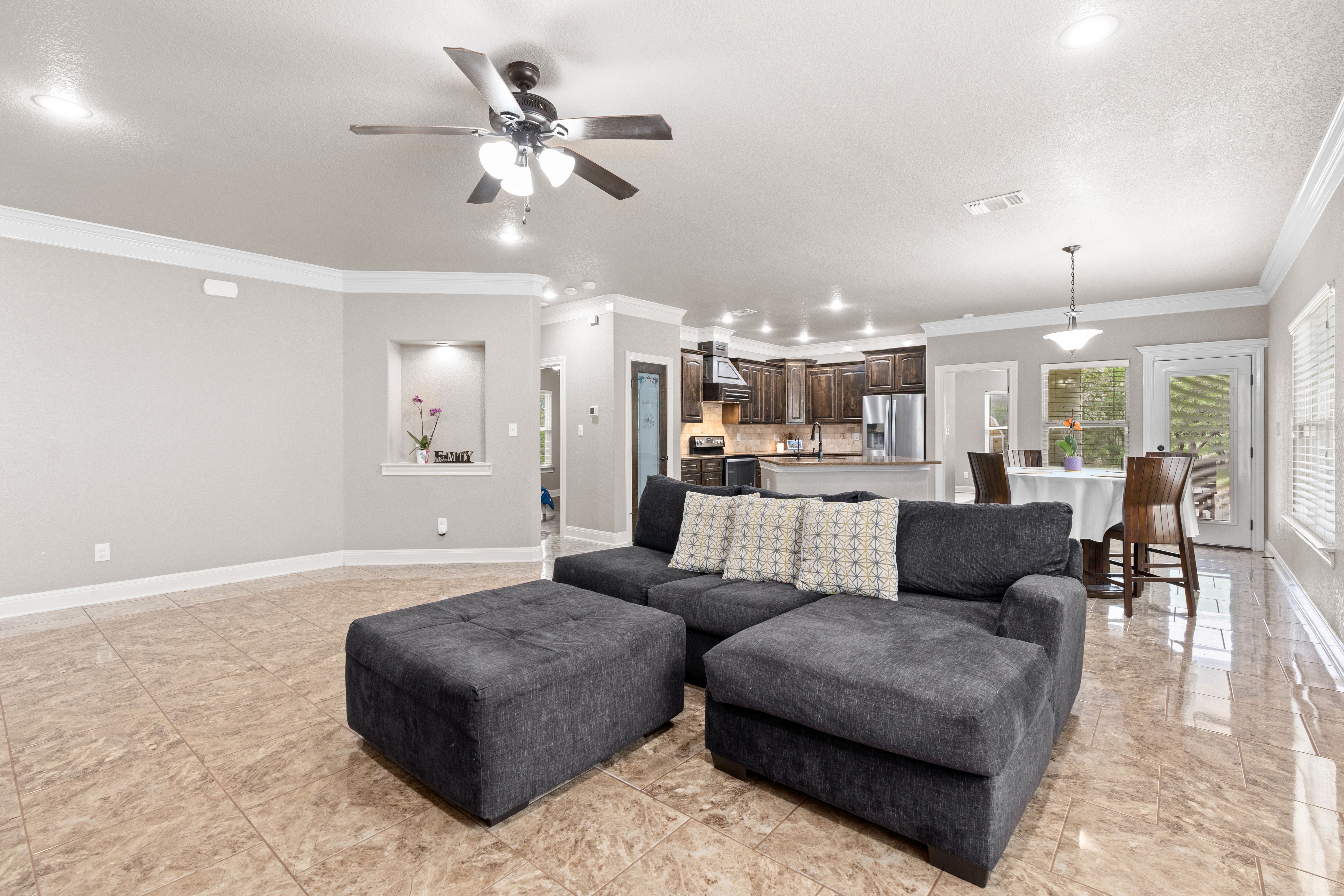 Experience the perfect blend of tranquility and modern country living at 215 County Road 3829. Situated on 1.122 acres, this exceptional single-story home offers a rare opportunity to enjoy peaceful surroundings without sacrificing convenience. Designed with an open floor plan and high ceilings, the home feels spacious, bright, and inviting. The heart of the home features custom solid wood cabinetry, granite countertops, a large kitchen island, and ample space for entertaining. Thoughtful details like crown molding and ceiling fans throughout add both style and comfort. This home is also equipped with solar panels, offering energy efficiency and long-term savings—an added benefit that complements its modern country appeal. Step outside to a deep lot shaded by mature trees, creating a private, serene setting. The covered patio is ideal for relaxing or hosting gatherings while enjoying the beauty of the outdoors. The primary suite offers a true retreat with a garden tub, custom shower, and a well-appointed layout designed for comfort. Located within Medina Valley ISD and just 15 minutes from 1604 and Culebra, this home offers the best of both worlds—peaceful country living with easy access to city amenities.